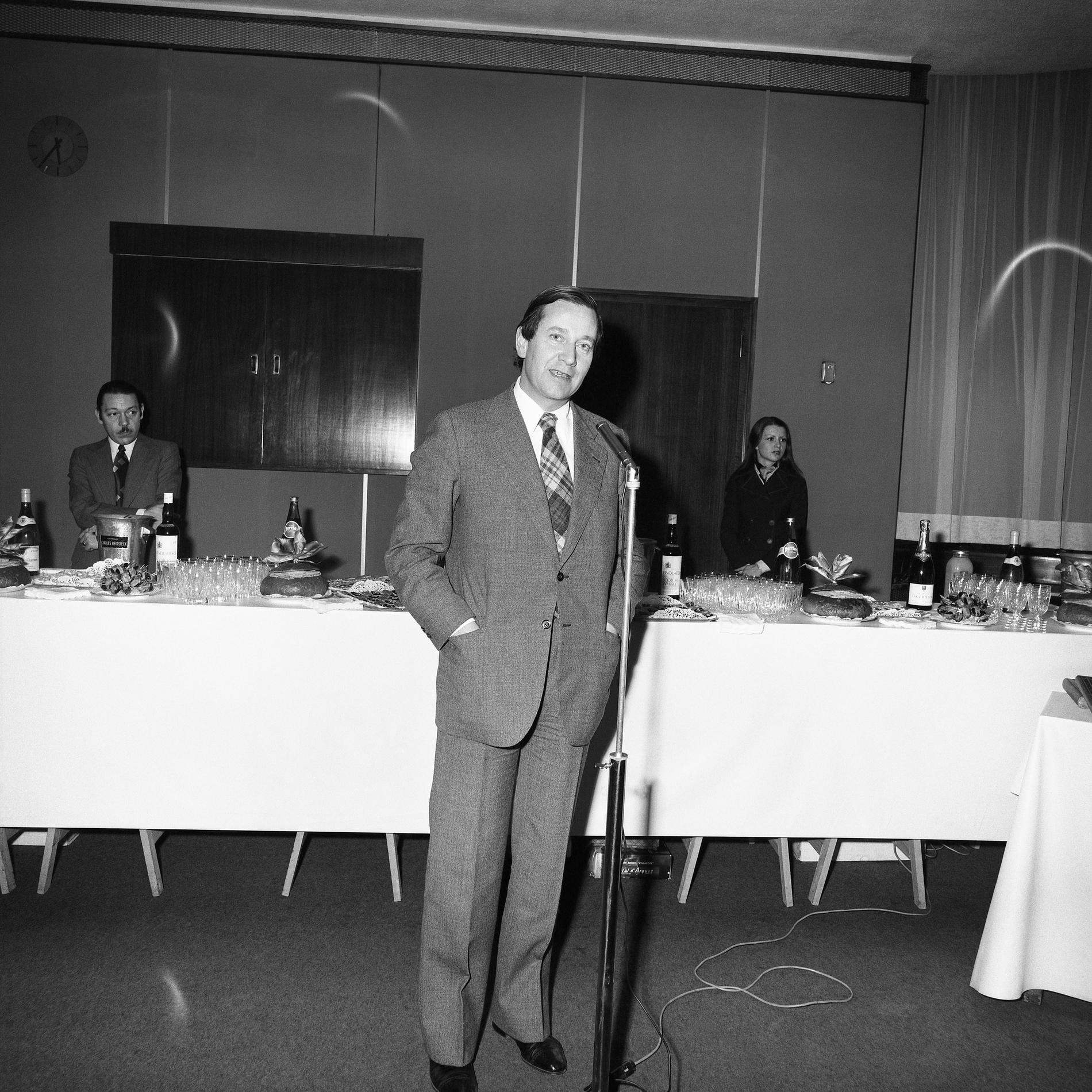 Ci-dessus : M. le Directeur Général des Télécommunications - Gérard Théry revient à la Direction des Télécommunications de Paris Intra-muros, fêter son pot de départ à la DGT.