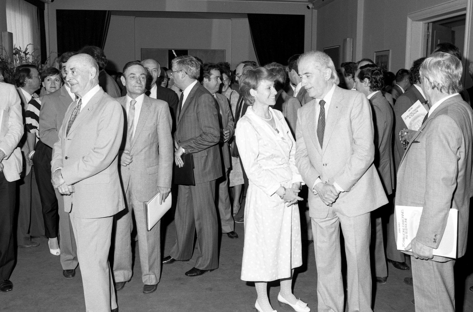 Ci-dessus : la célébration du 20 millionième abonné au téléphone se poursuit au Ministère des PTT, dans le salon bleu.