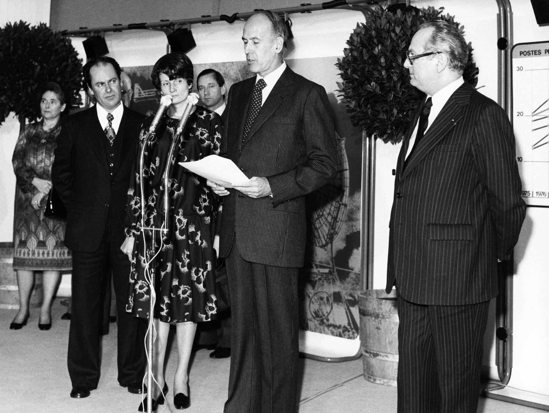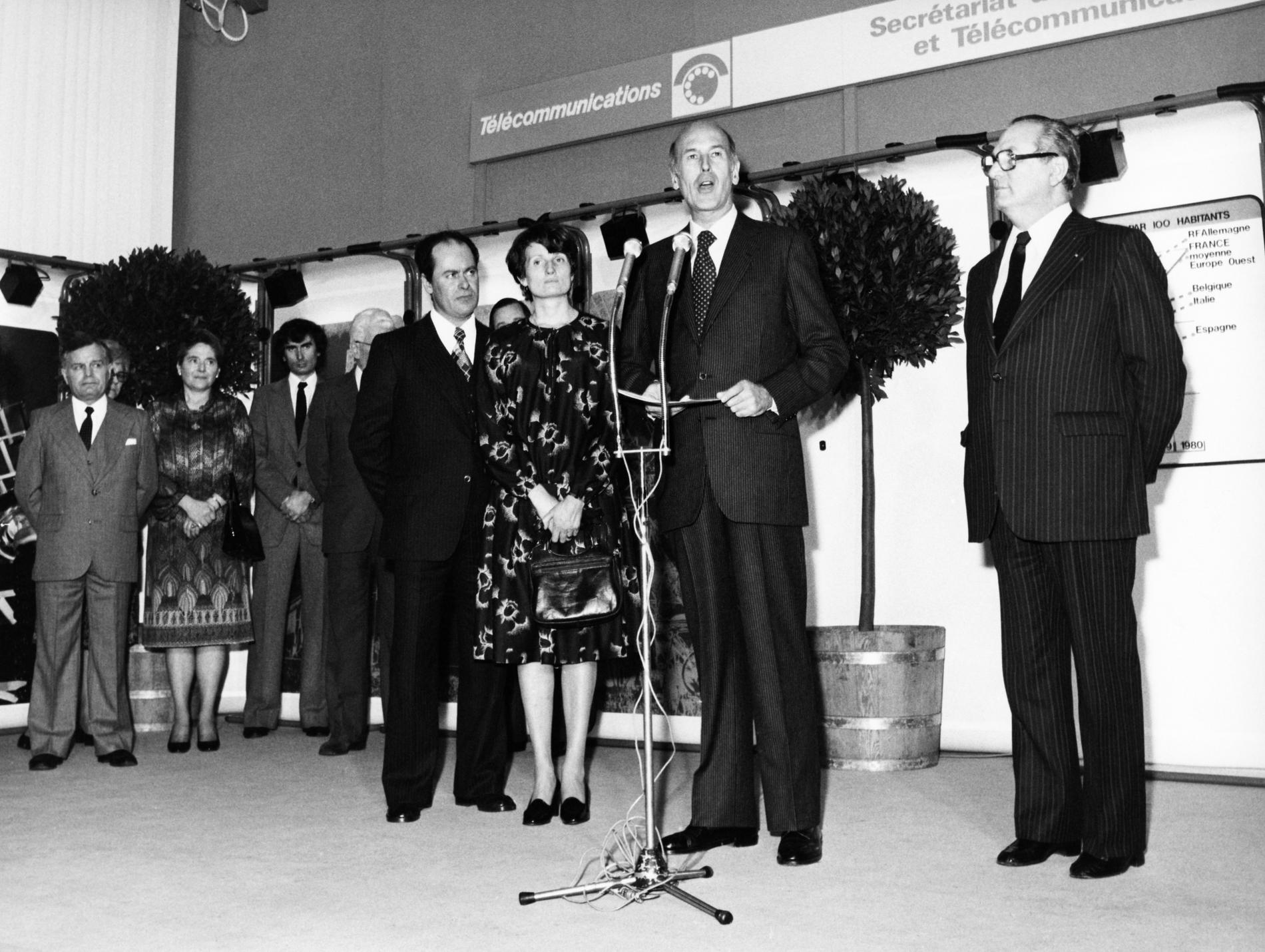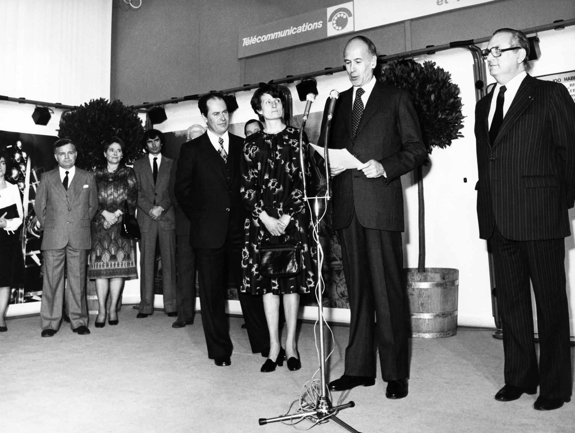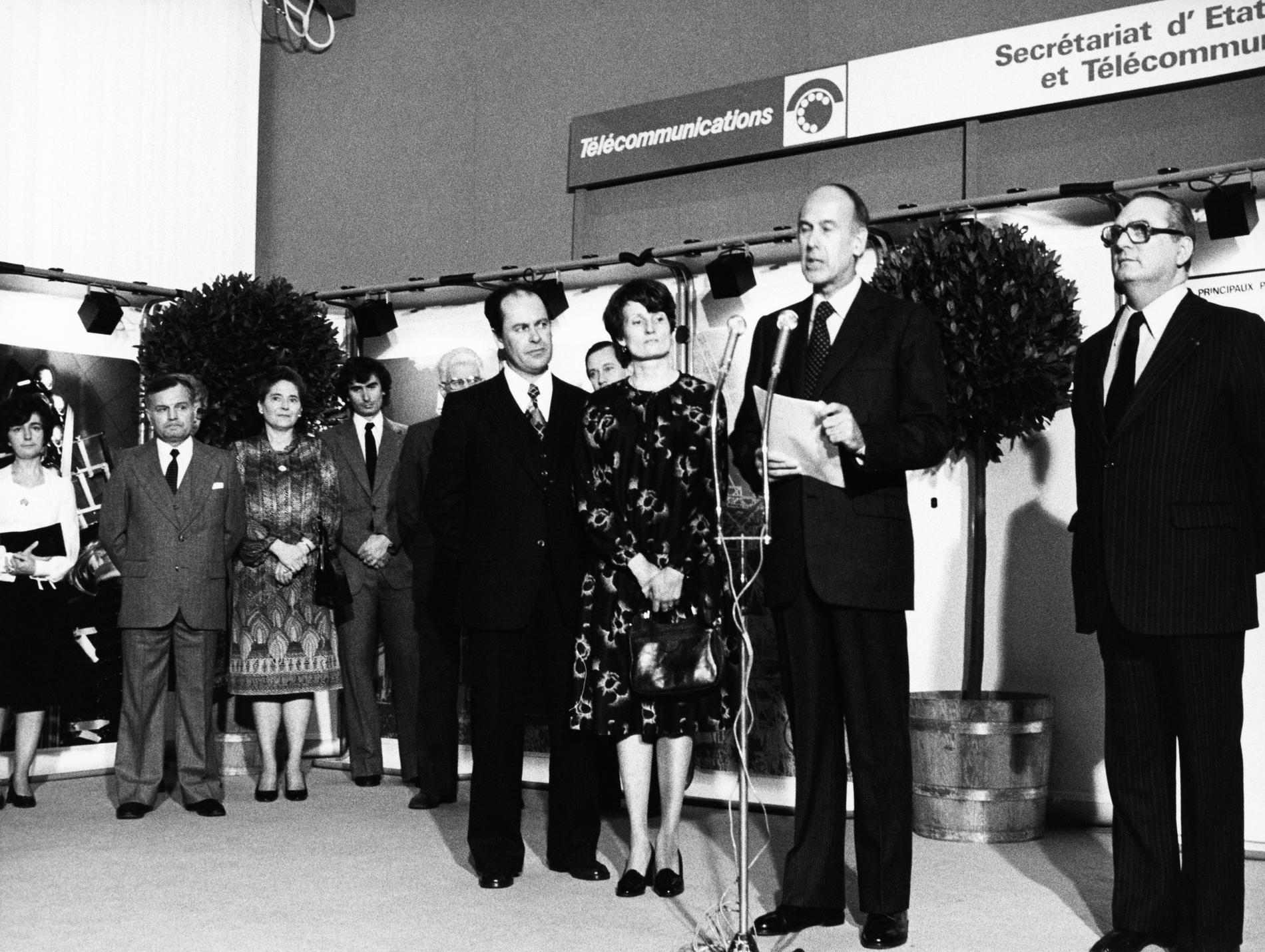 Ci-dessus : M. le Président de la République - Valéry Giscard d'Estaing prononce son allocution, à l'occasion de la célébration du 10 millionième abonné au téléphone.
