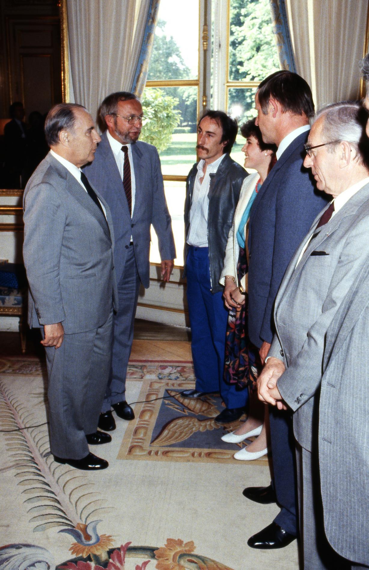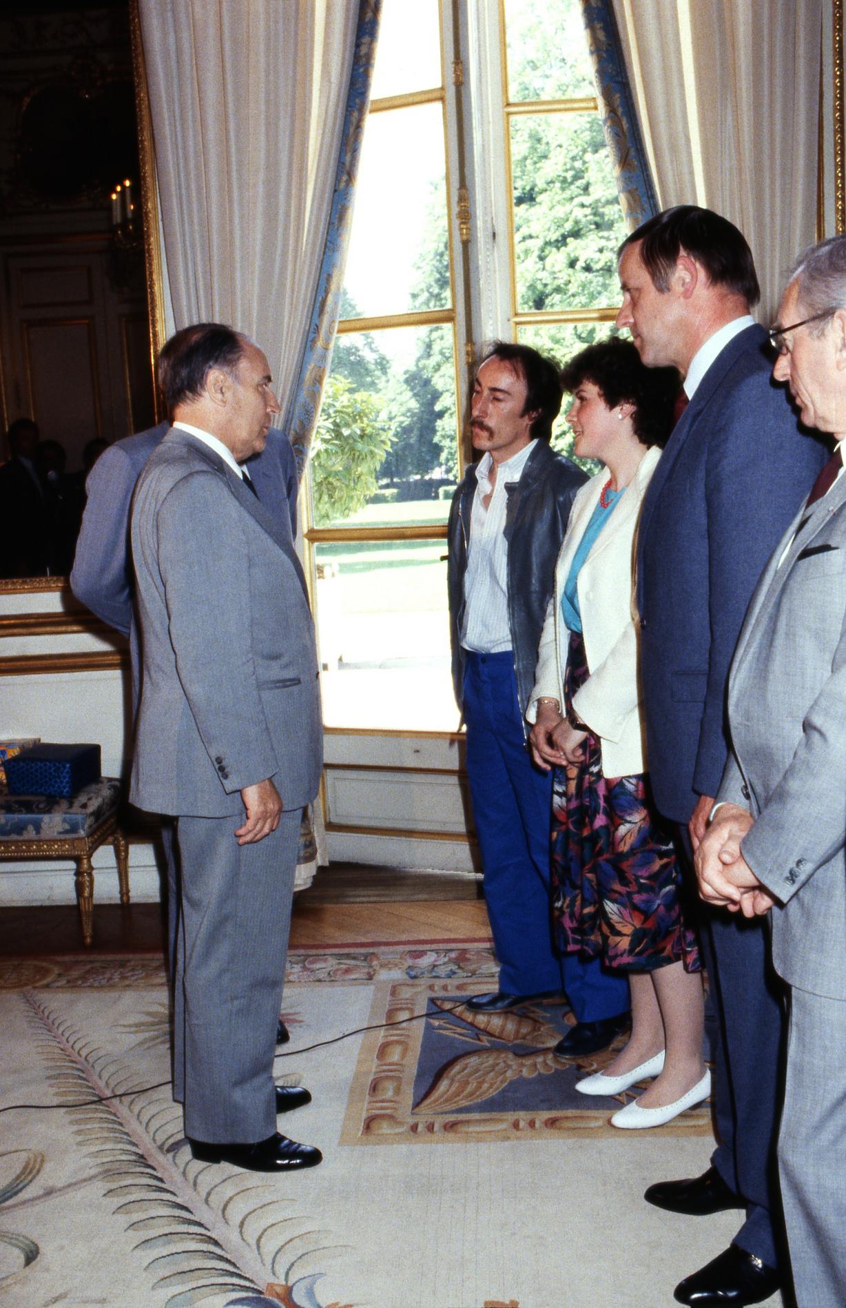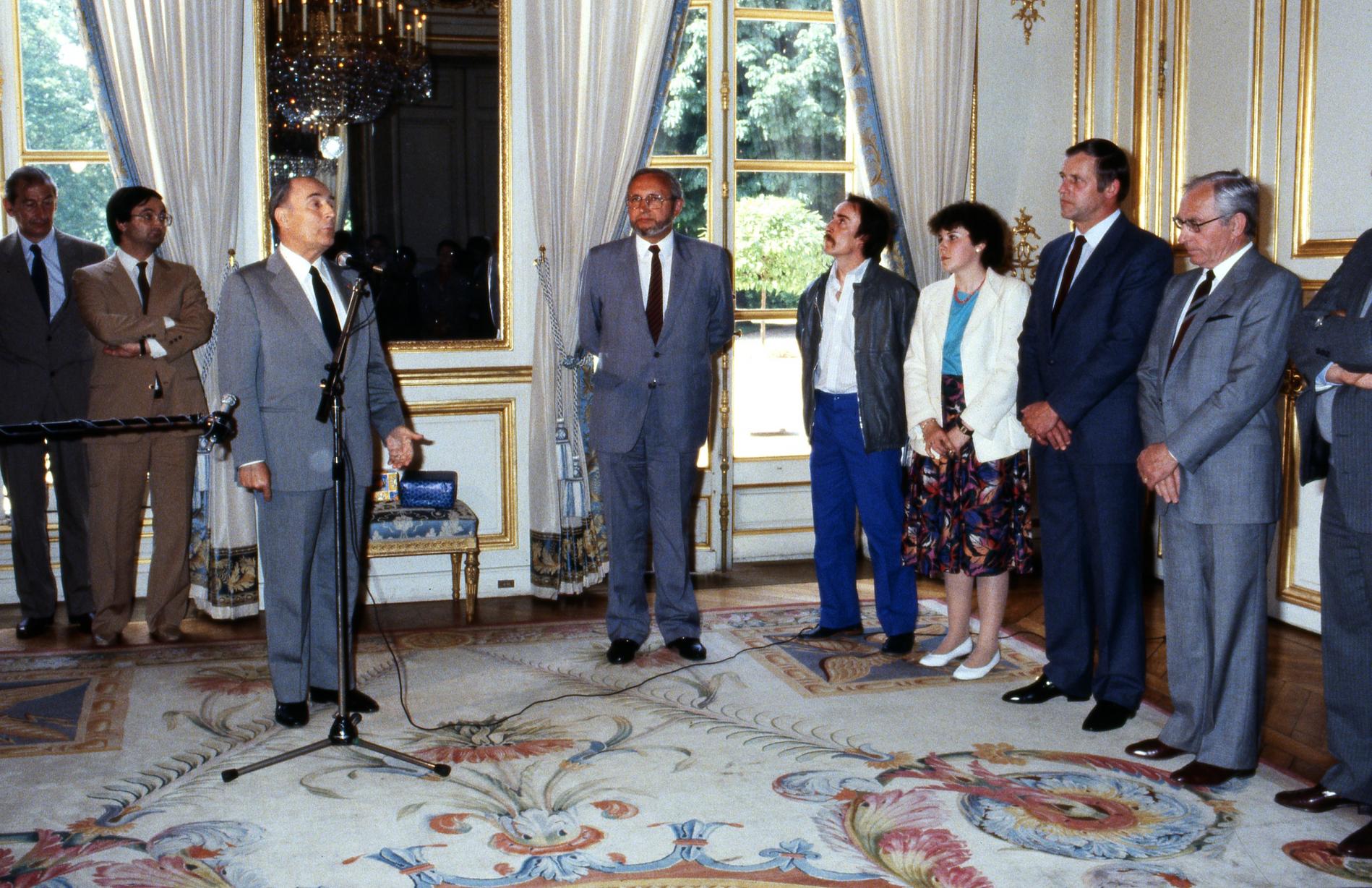 Ci-dessus : célébration du 20 millionième abonné au téléphone français, au Palais de l'Élysée, par M. le Président de la République - François Mitterrand.