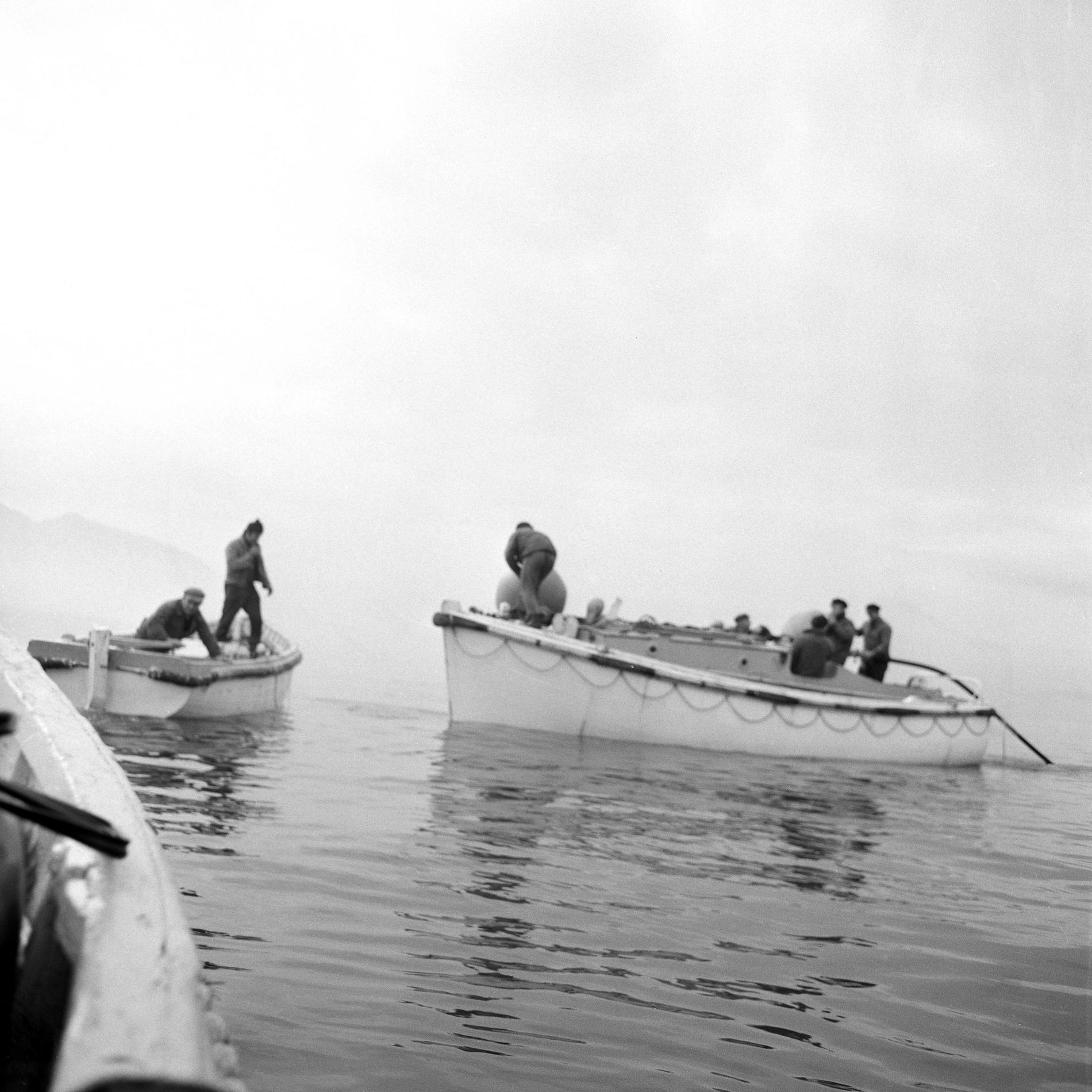 Ci-dessus : pose d'un câble sous-marin dans les années 1960.