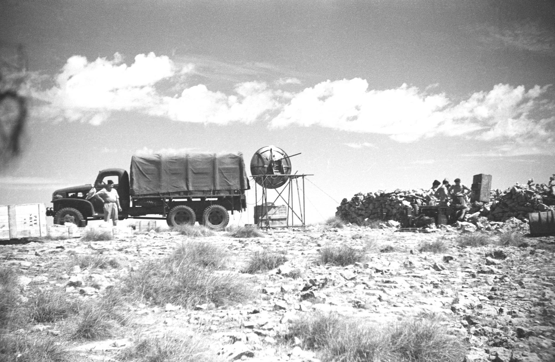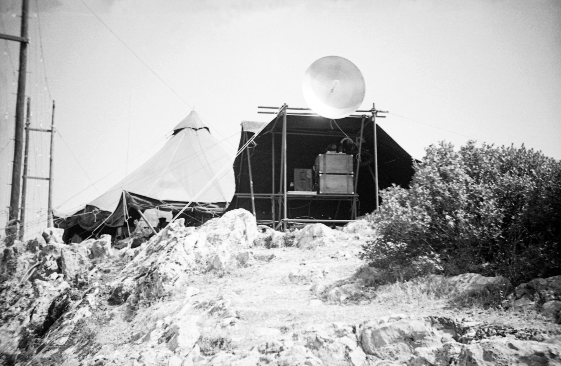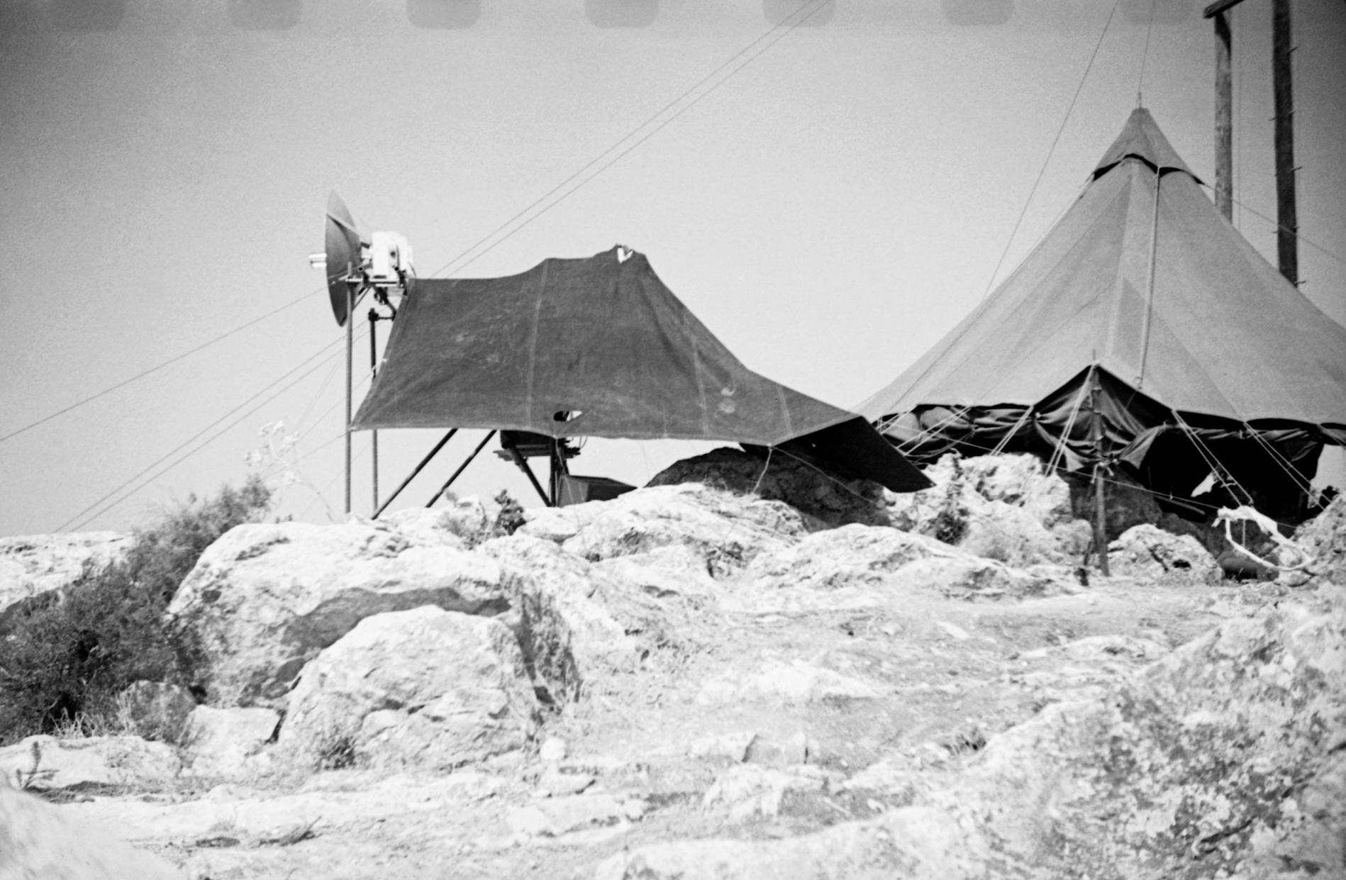 Ci-dessus : la Station Hertzienne expérimentale du Bou Kornine (Tunisie), le campement et l'équipe.