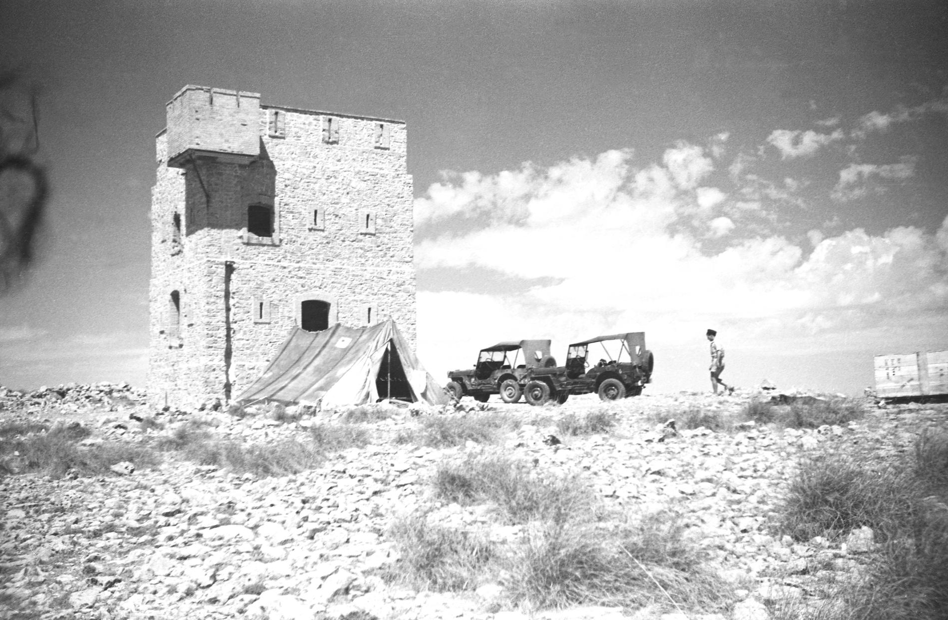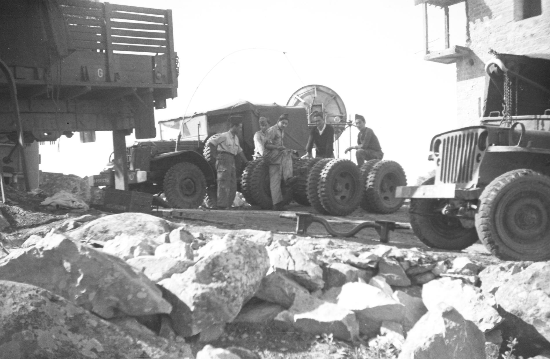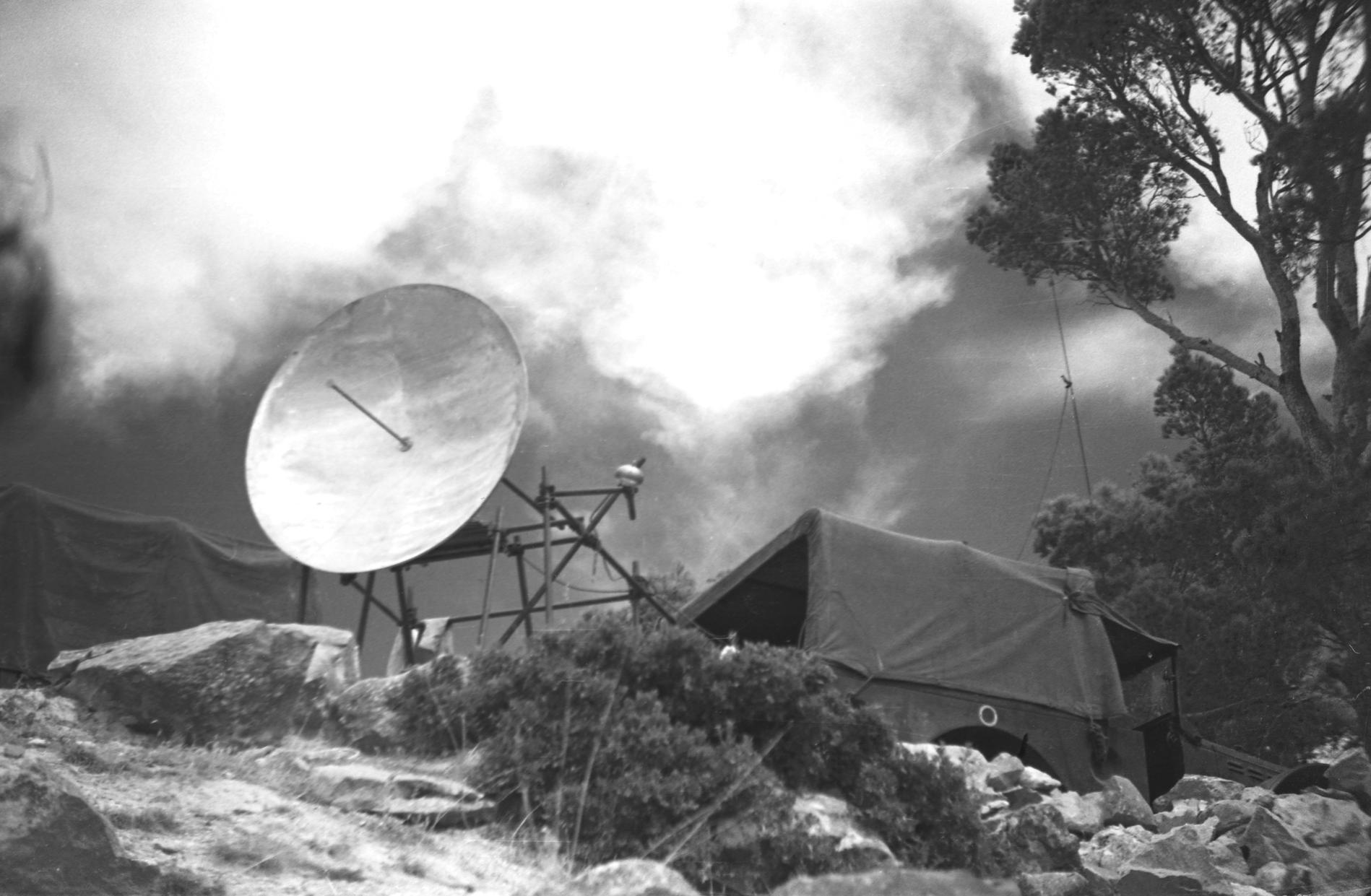 Ci-dessus : la Station Hertzienne expérimentale du Bou Kornine (Tunisie), le campement et l'équipe.