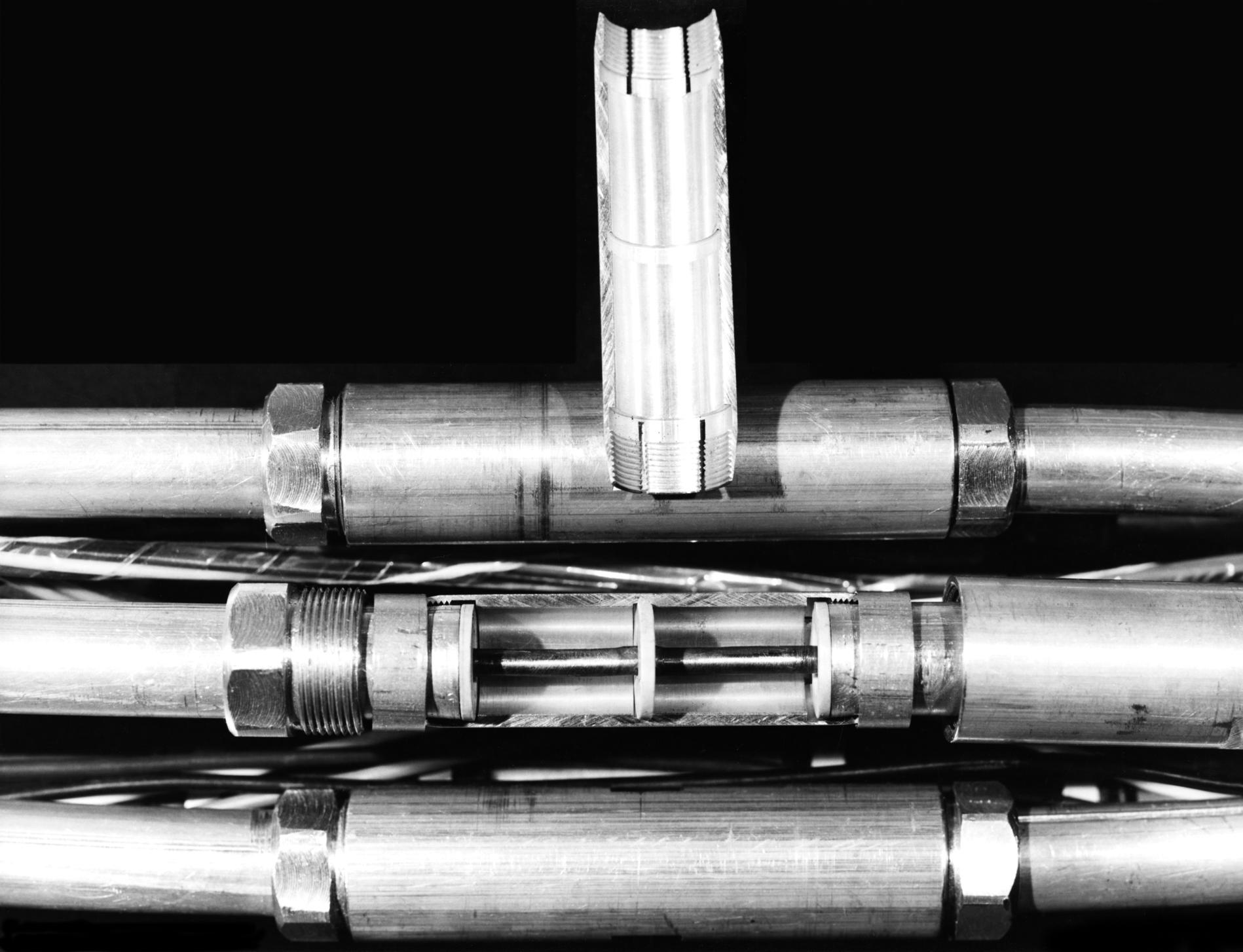 Ci-dessus : vue d'une épissure de deux tronçons de Câbles Coaxiaux.