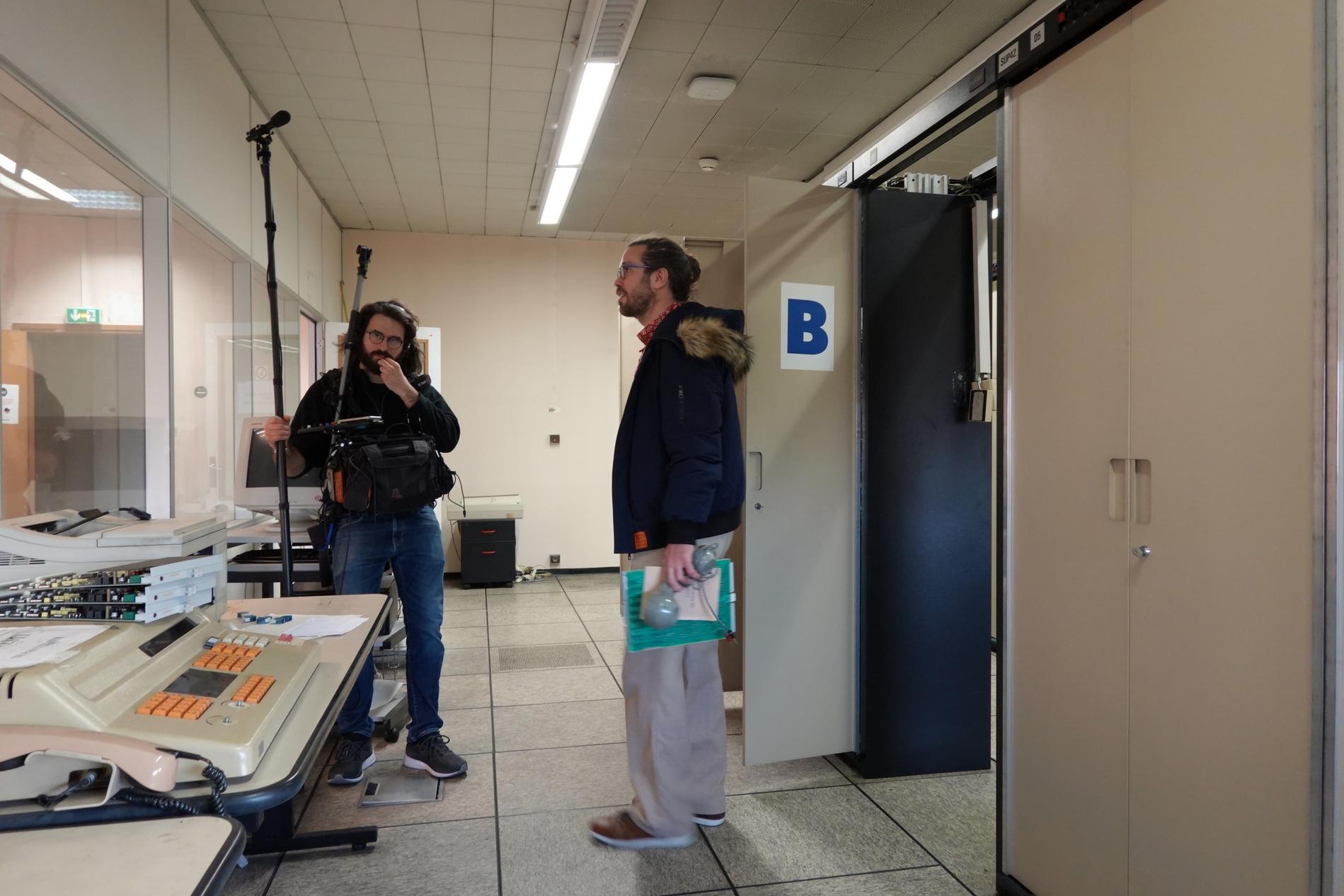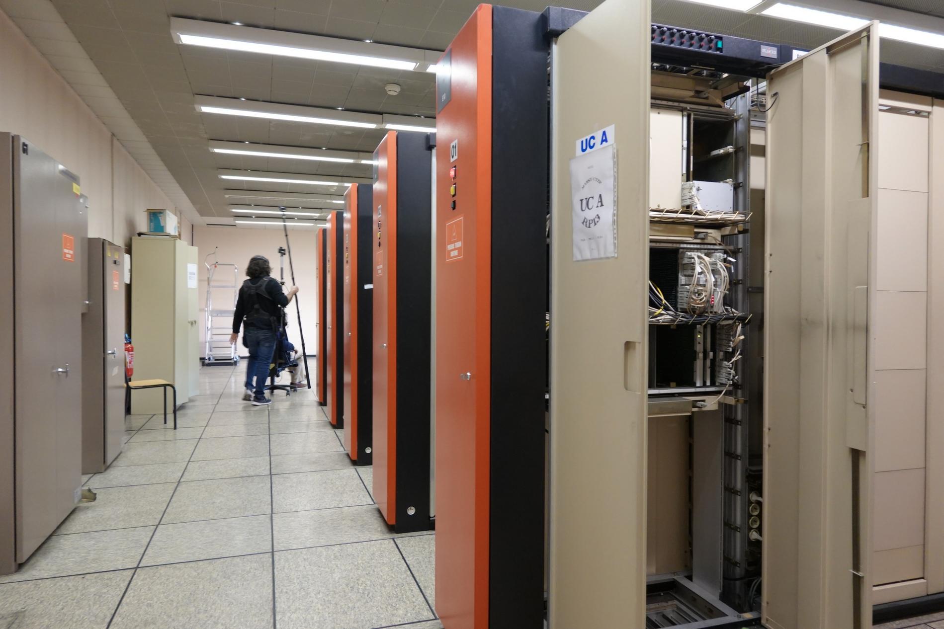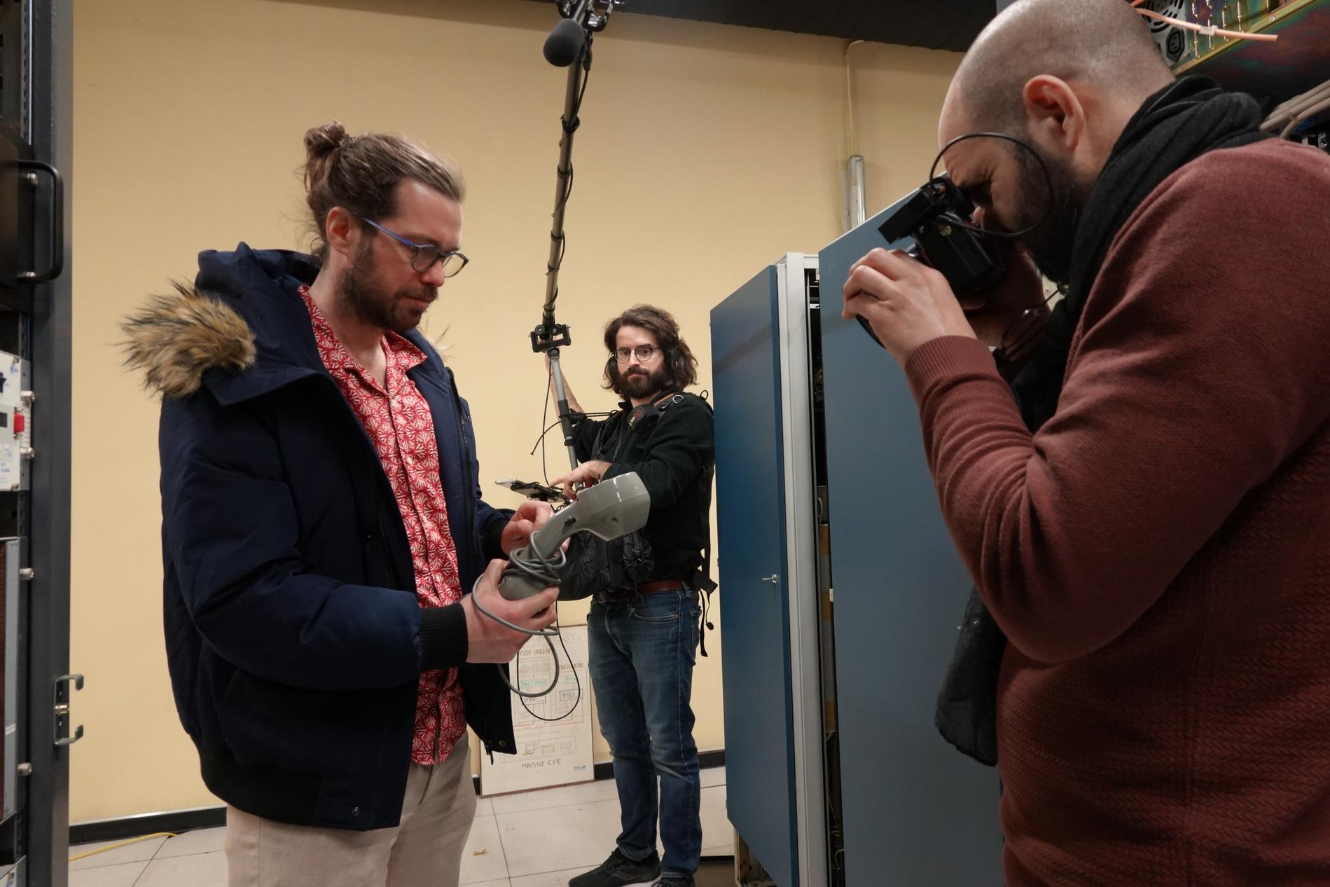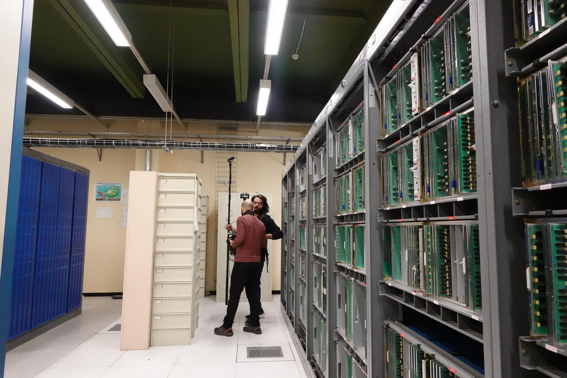 Ci-dessus : L'équipe technique du documentaire "Le 36.15 ne répond plus" tourne les séquences relatives au Centre Téléphonique de Transit Massy C.