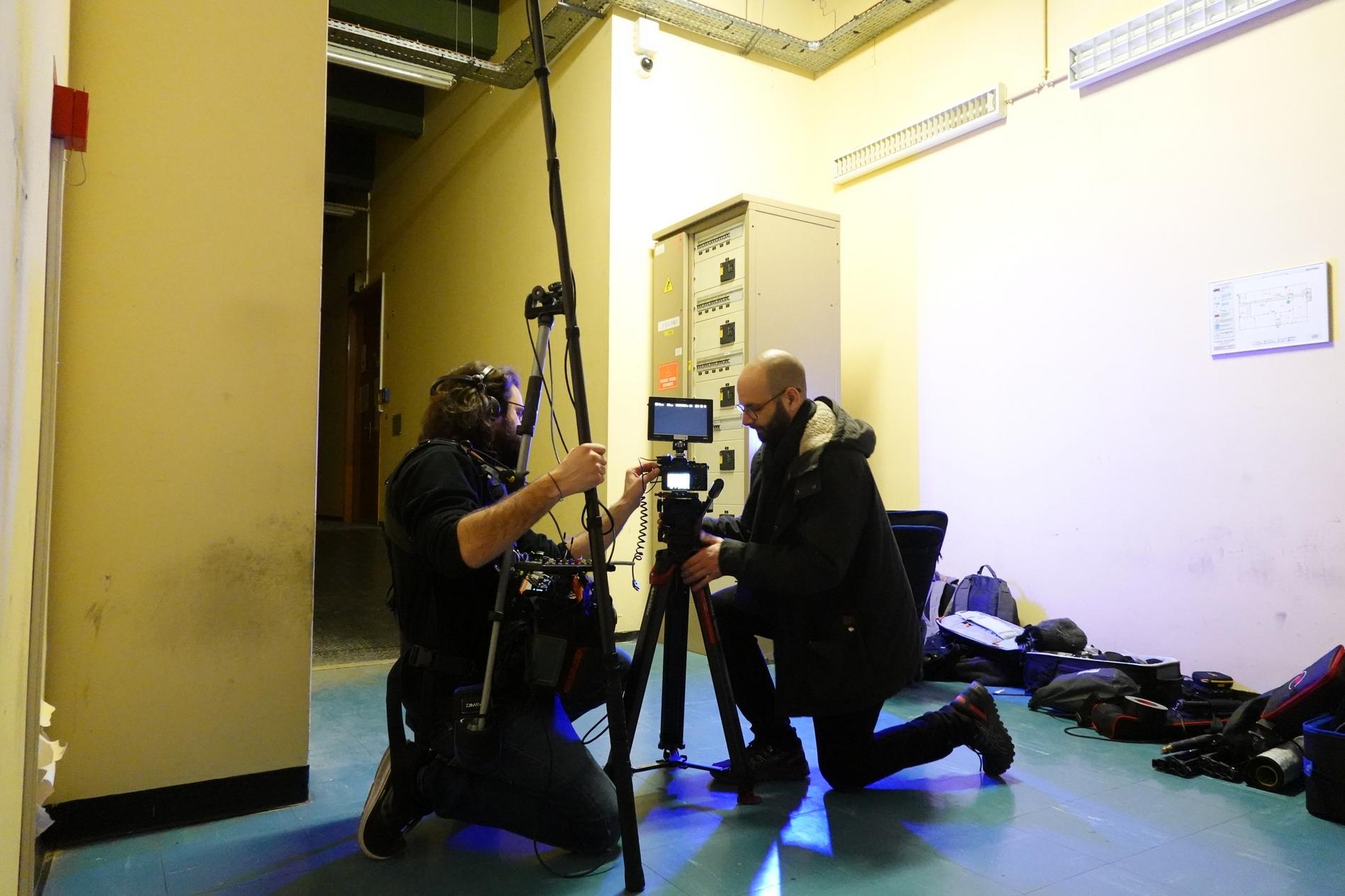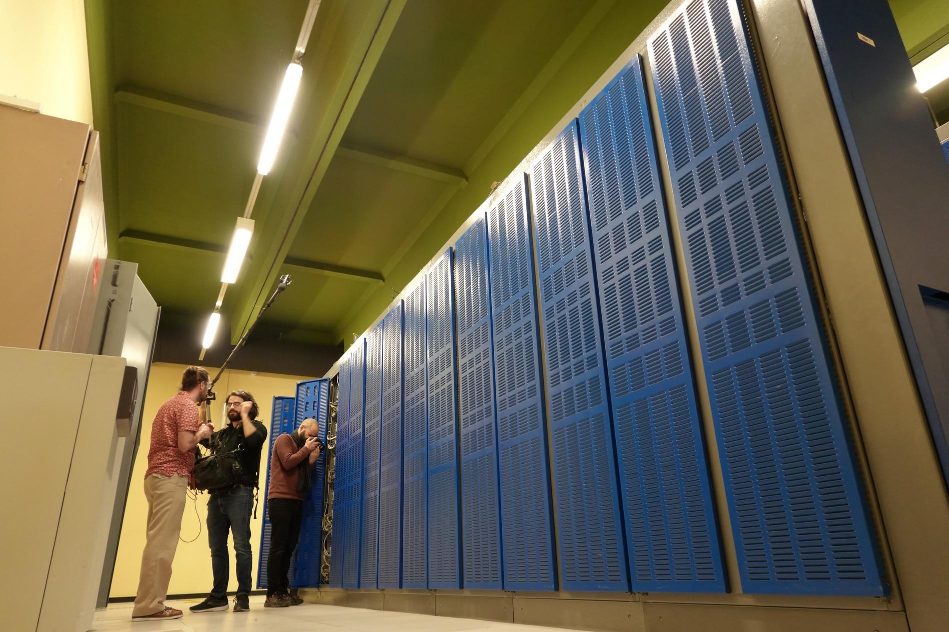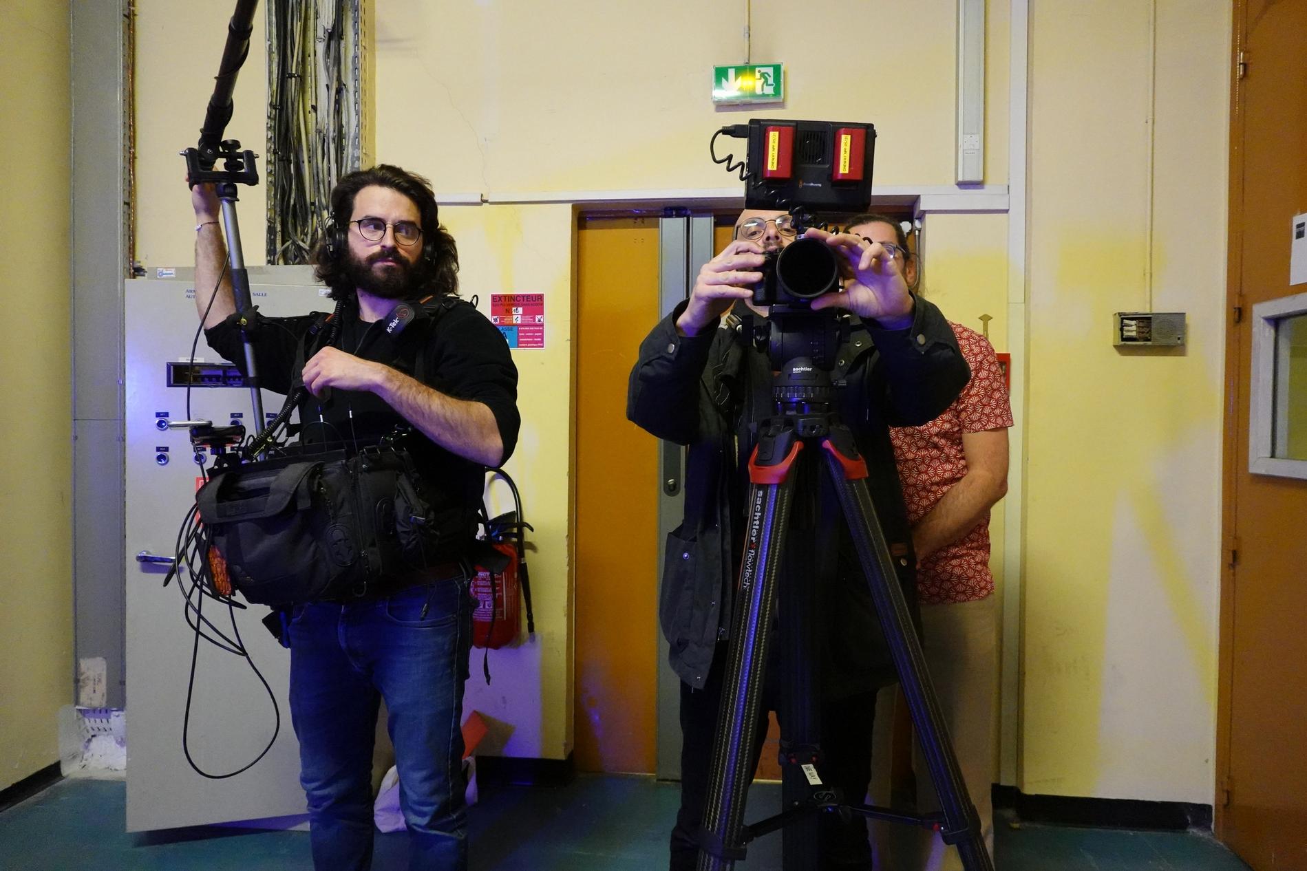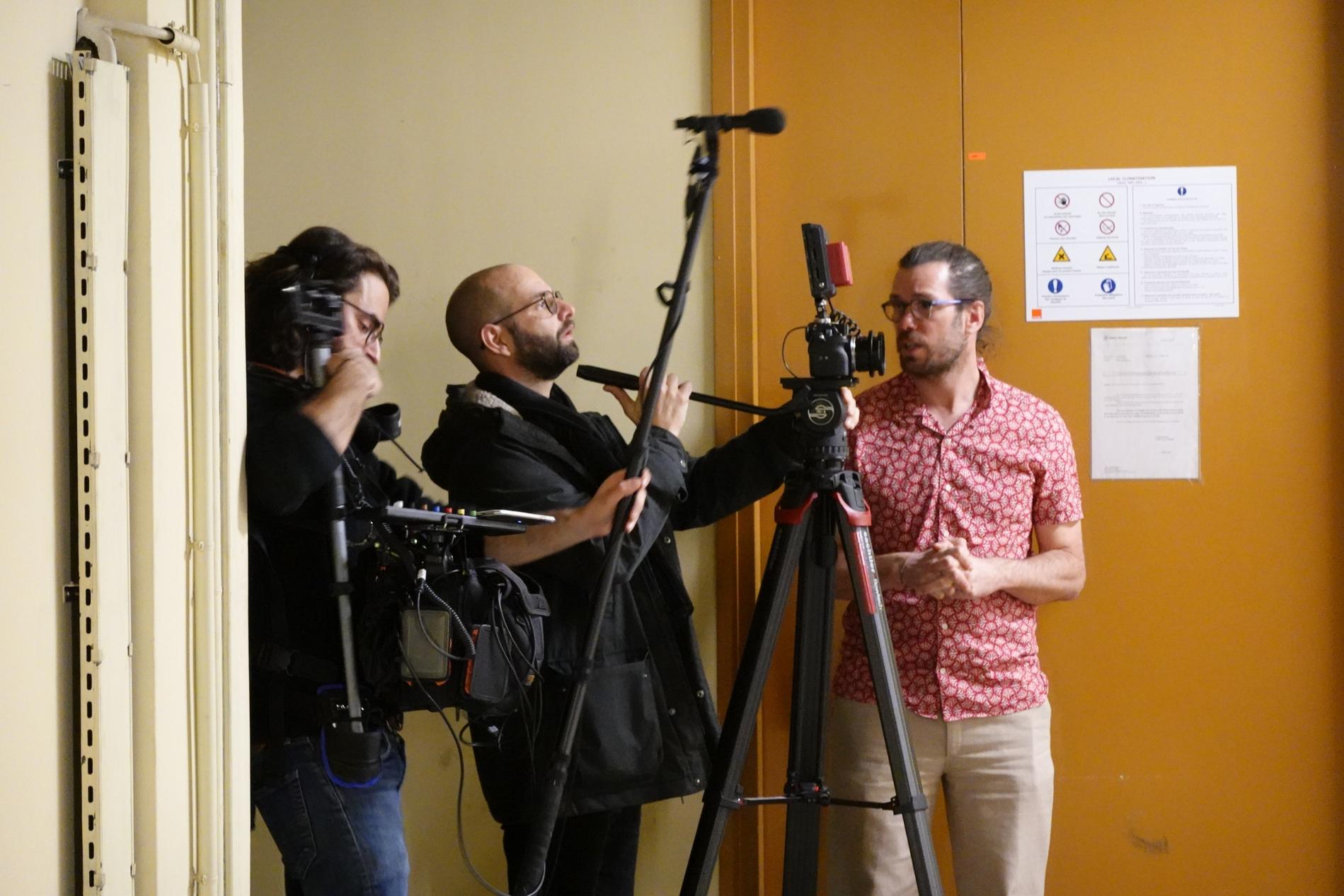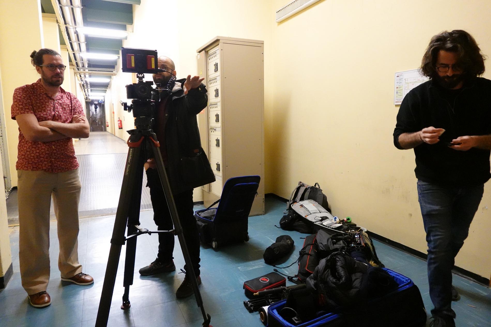 Ci-dessus : L'équipe technique du documentaire "Le 36.15 ne répond plus" tourne les séquences relatives au Centre Téléphonique de Transit Massy C.