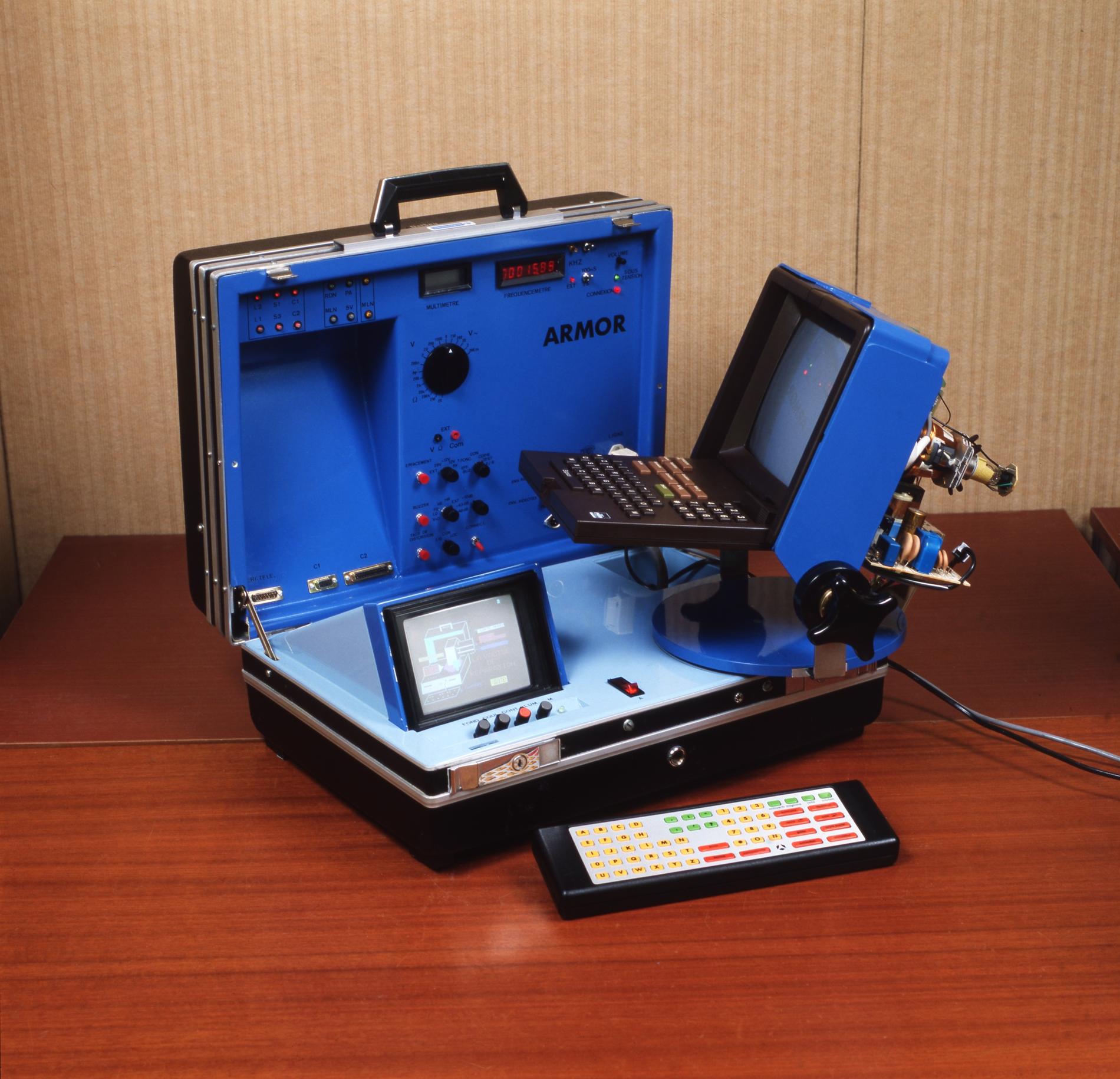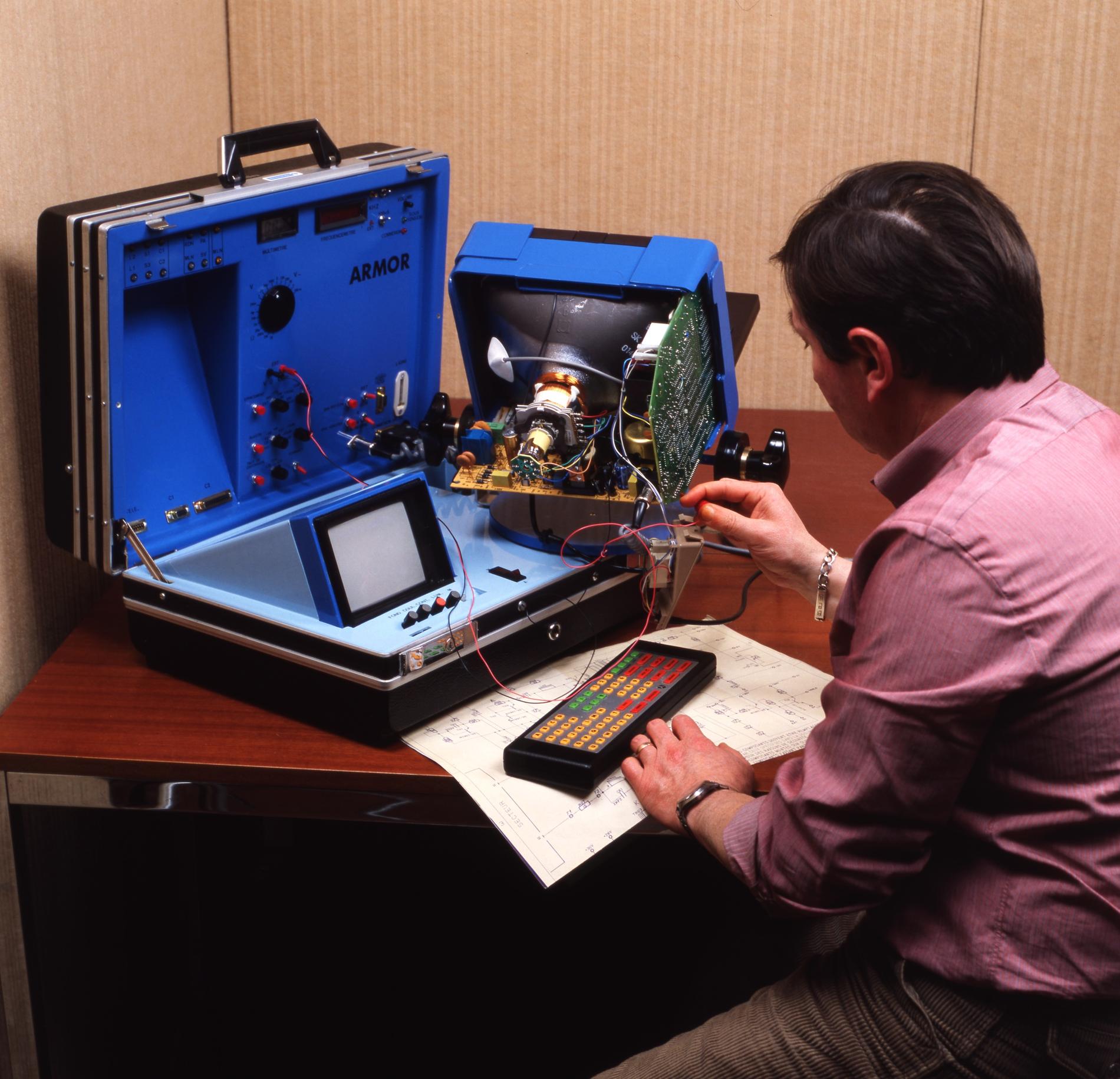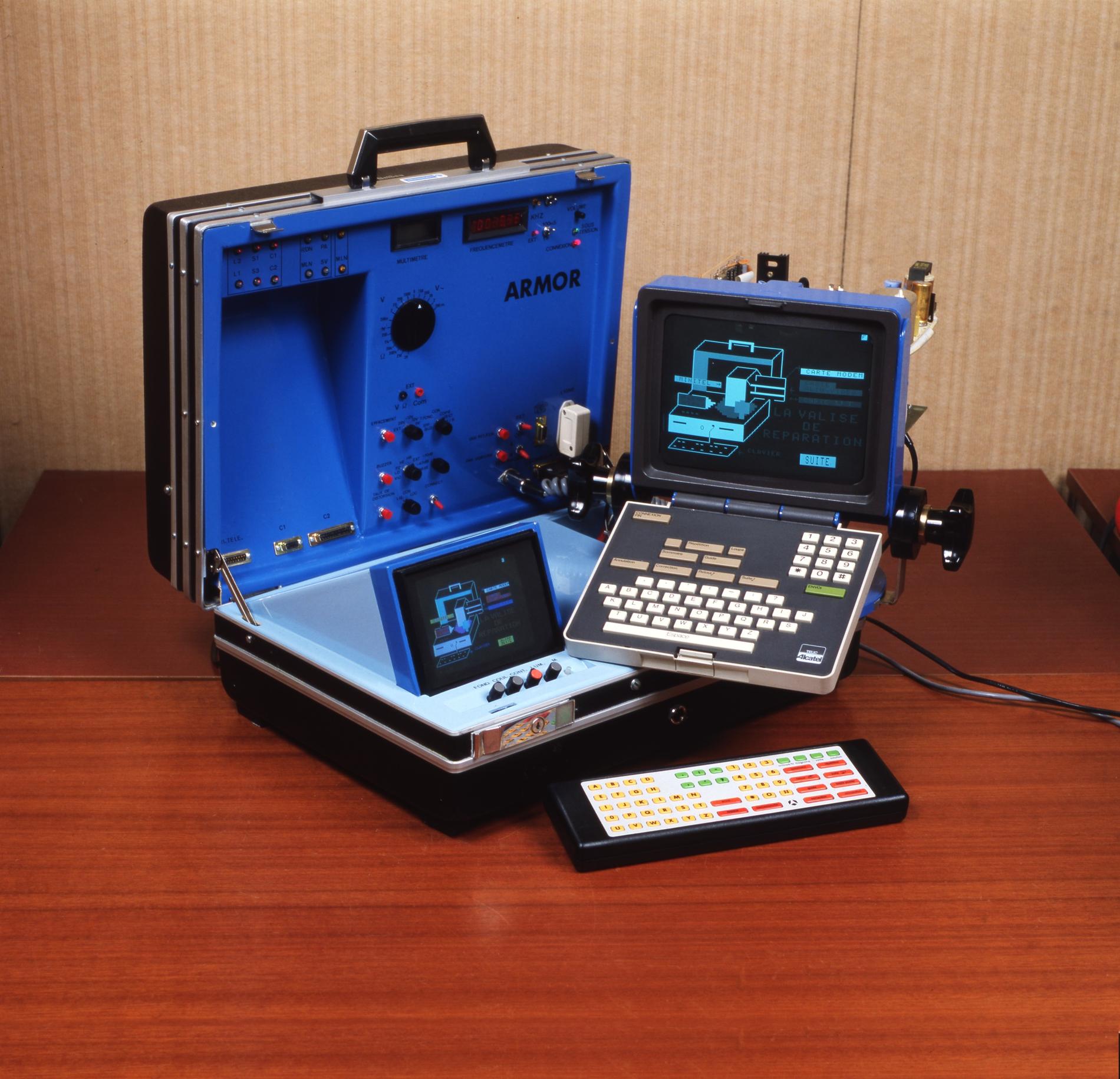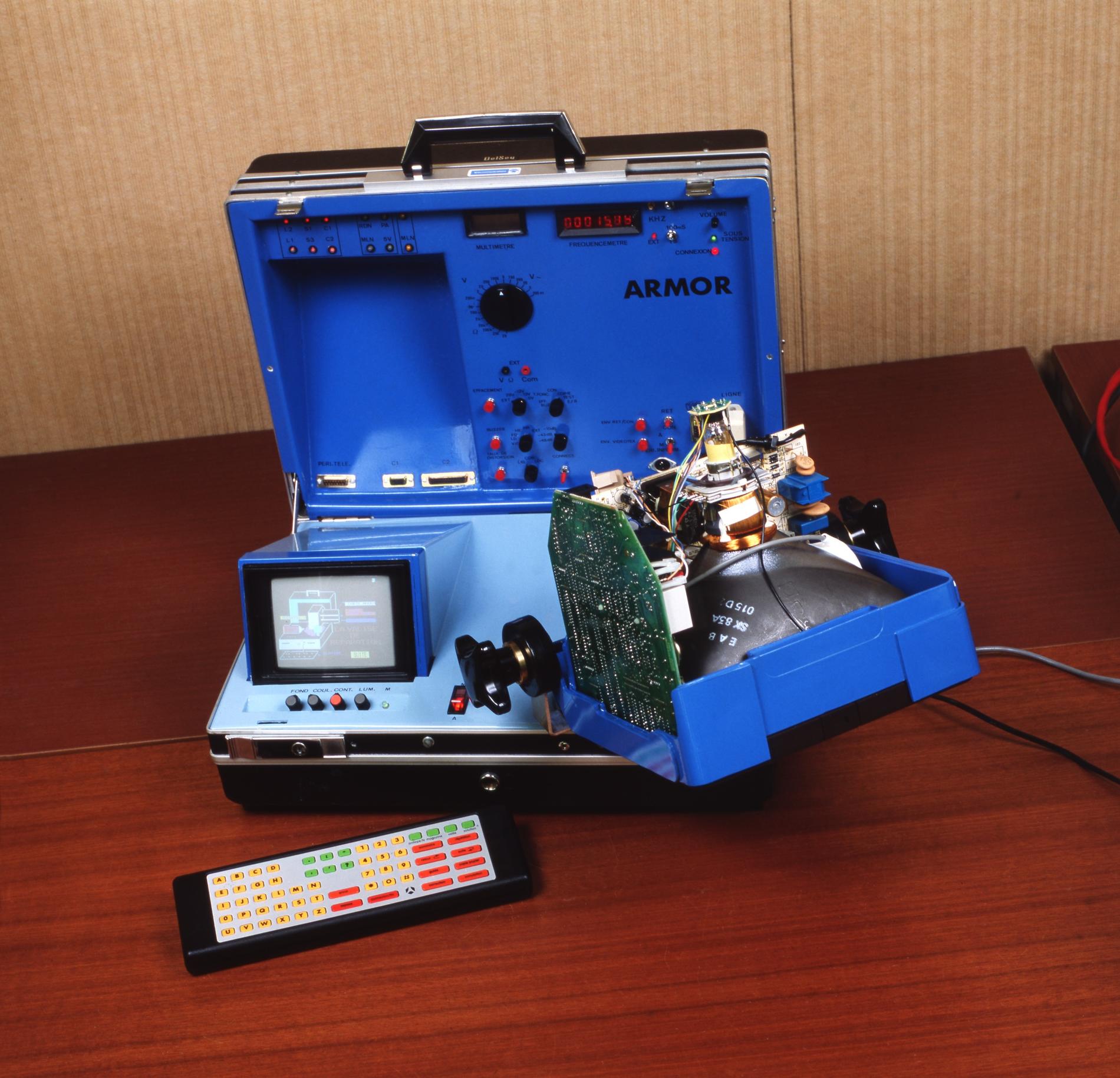 Ci-dessus : le Banc d'Essais portable ARMOR pour Minitel est créé pour que les agents des télécommunications spécialisés puissent dépanner rapidement les terminaux.