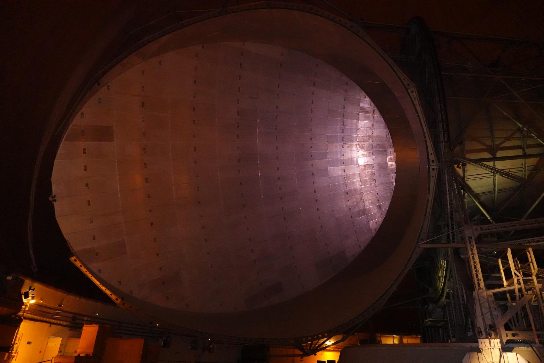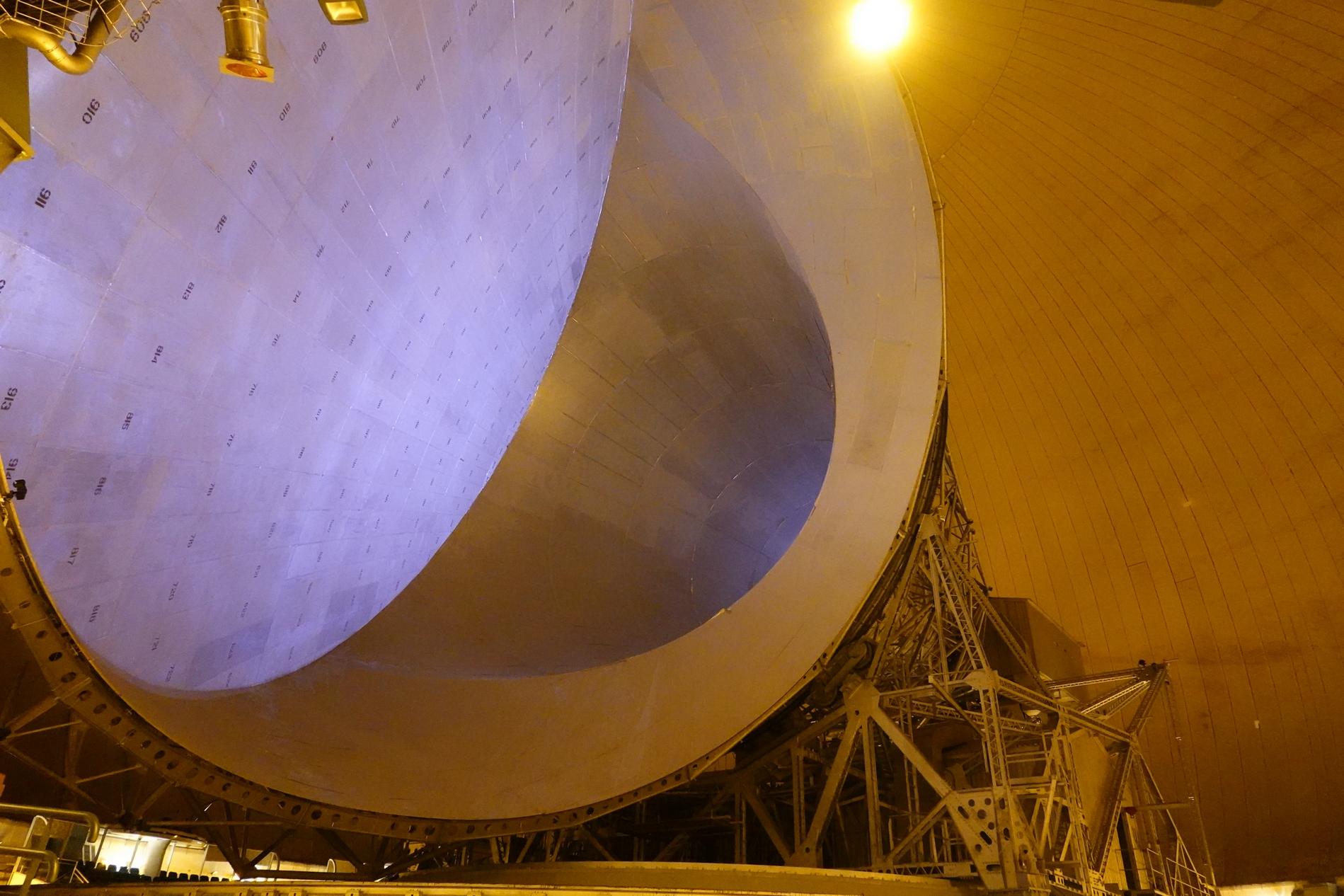 Ci-dessus : vue du Radôme provisoire (dit : Shelter), une fois mis en place (poids de la toile de nylon enduite de vinyle : 10 tonnes).