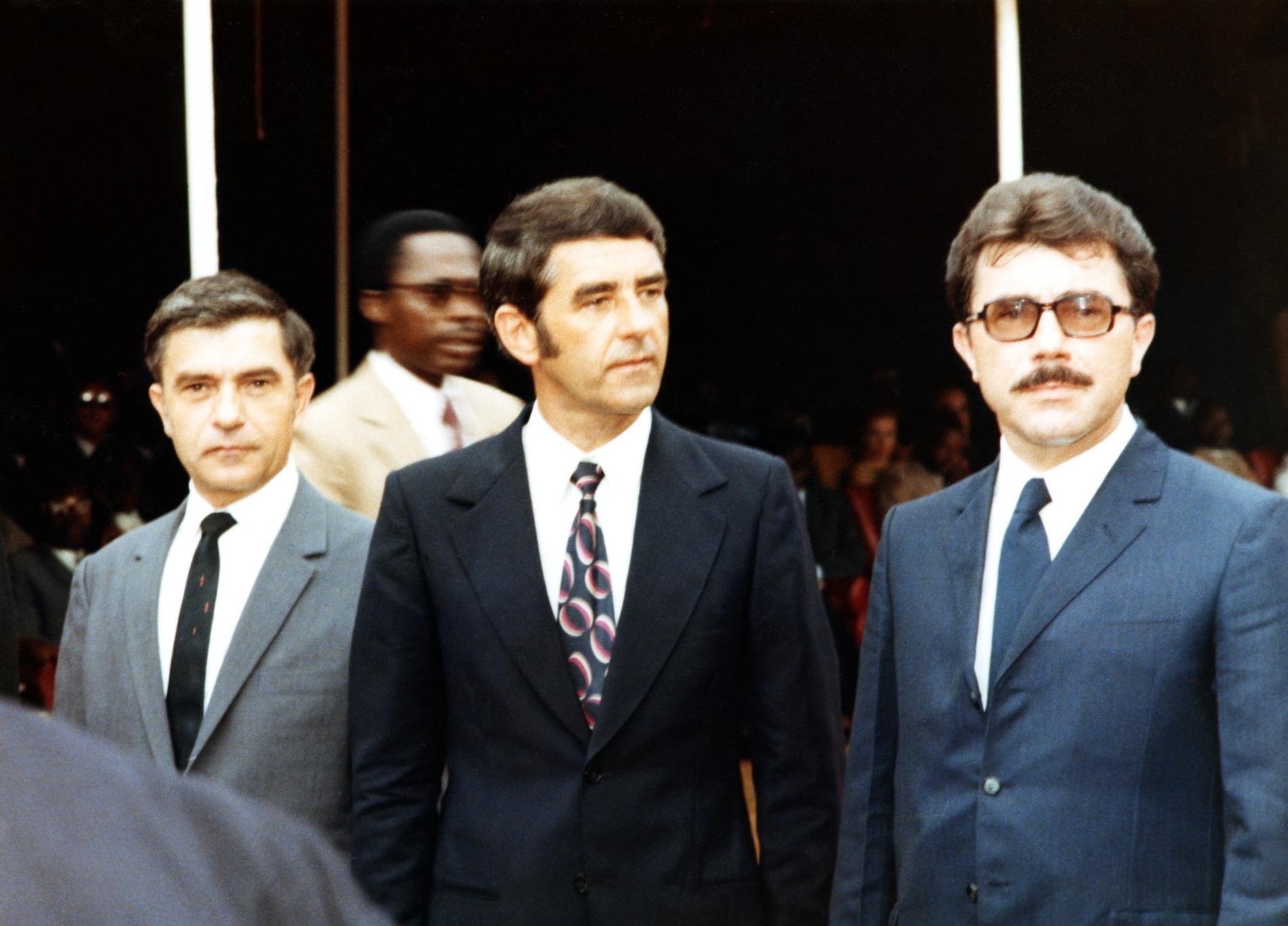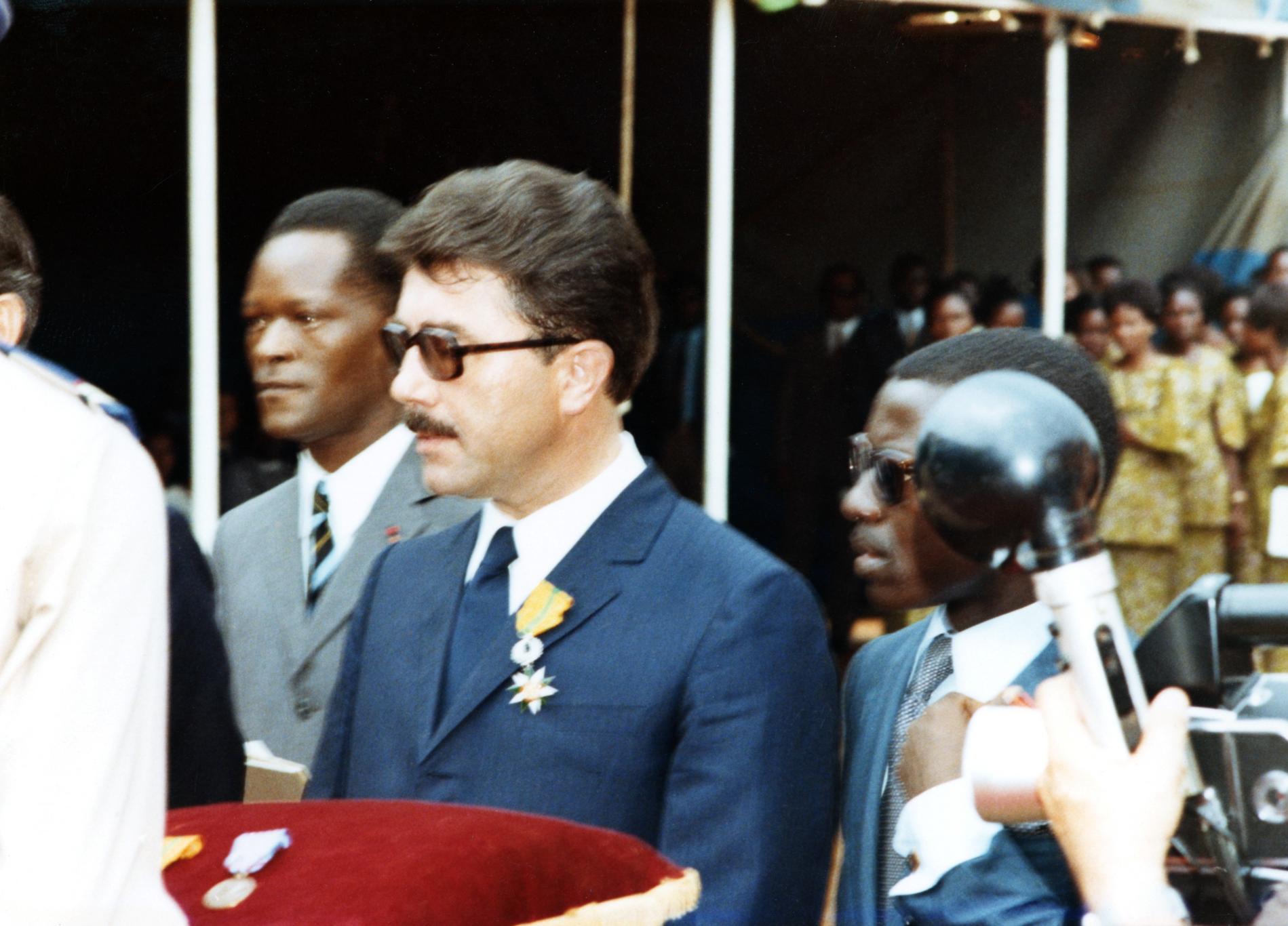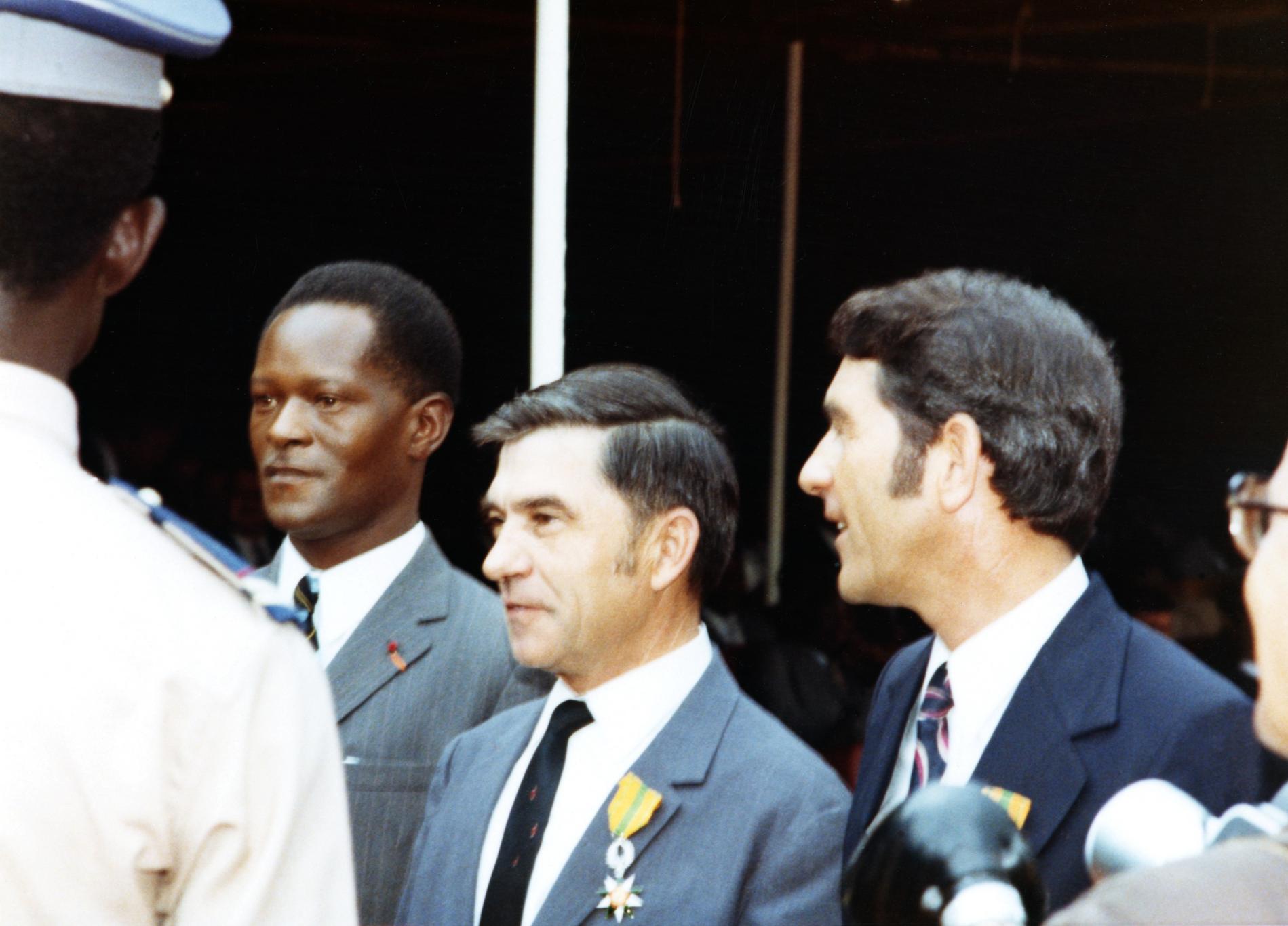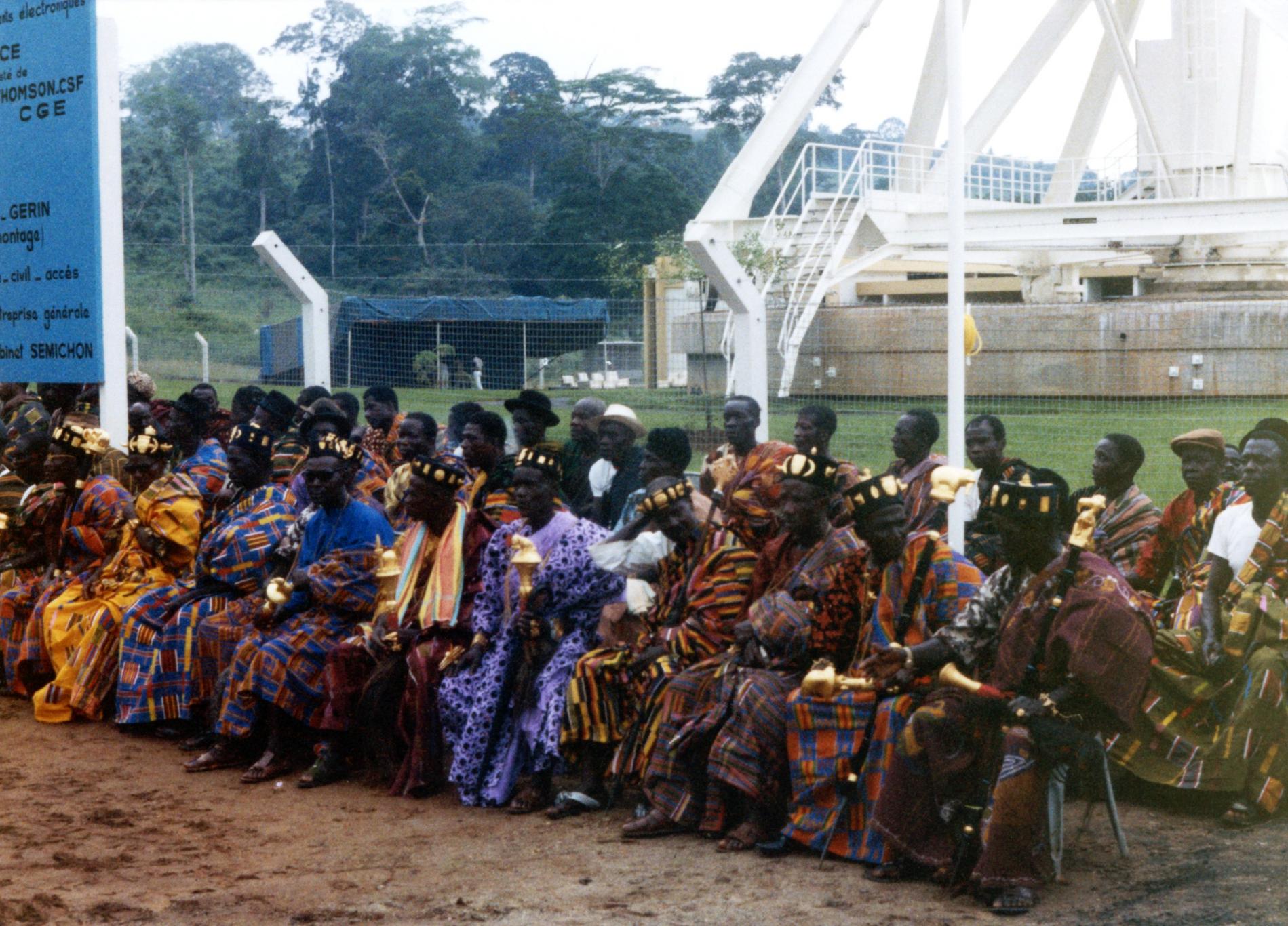 Ci-dessus : cérémonie d'inauguration de la Station d’Émission/Réception de Télécommunications par Satellite d'Akakro, près d'Abidjan, en République de Côte d'Ivoire le 27 novembre 1972.