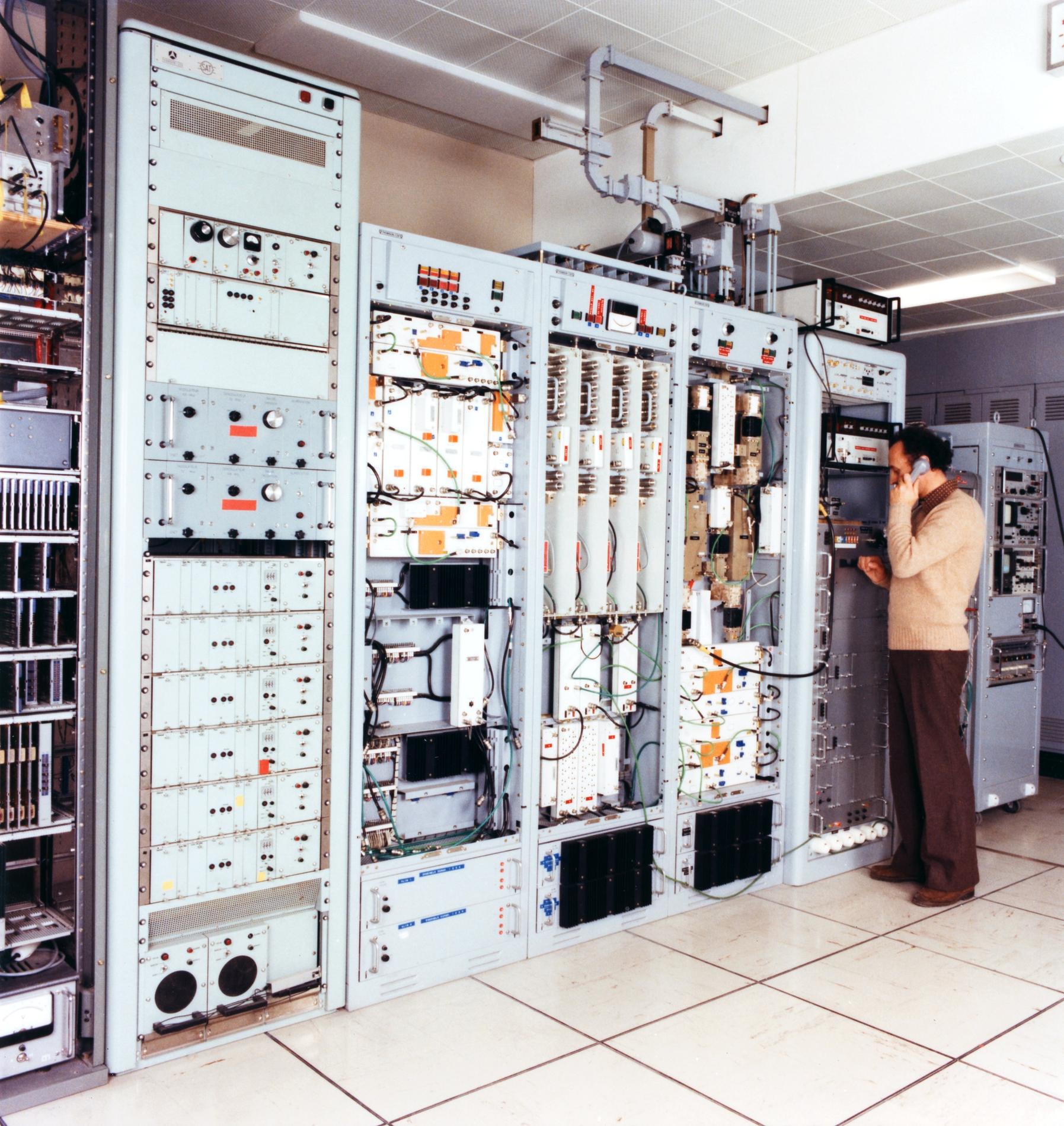 Ci-dessus : Équipements de la Station terrienne Émission/Réception de l'antenne PB2, conçus et construits par la Compagnie Thomson-CSF - de conception entièrement française.