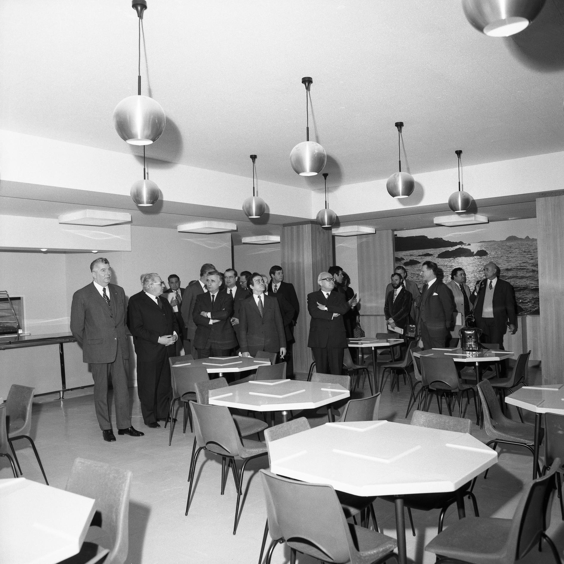Ci-dessus : inauguration solennelle du Centre Téléphonique Tuileries par M. le Premier Ministre - Pierre Messmer, entouré de hautes personnalités.