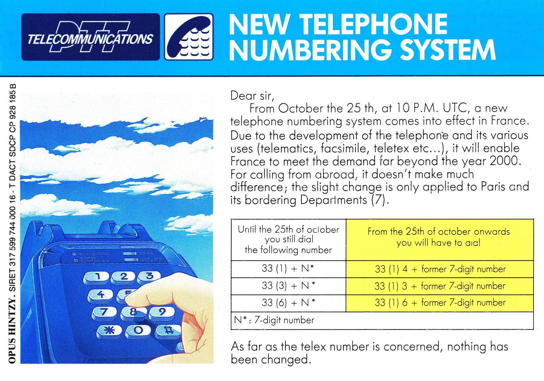En 1985, à la veille du nouveau plan de numérotation téléphonique devenu impérieux, la France est donc pourvue d’un plan de numérotage en vigueur depuis 1955 et ajusté dans l’urgence à plusieurs reprises depuis 1974.