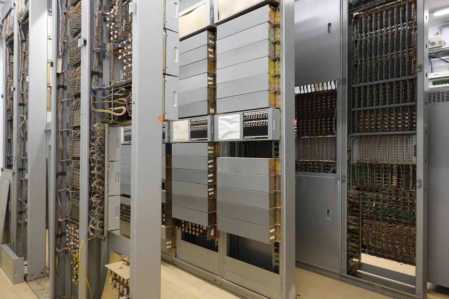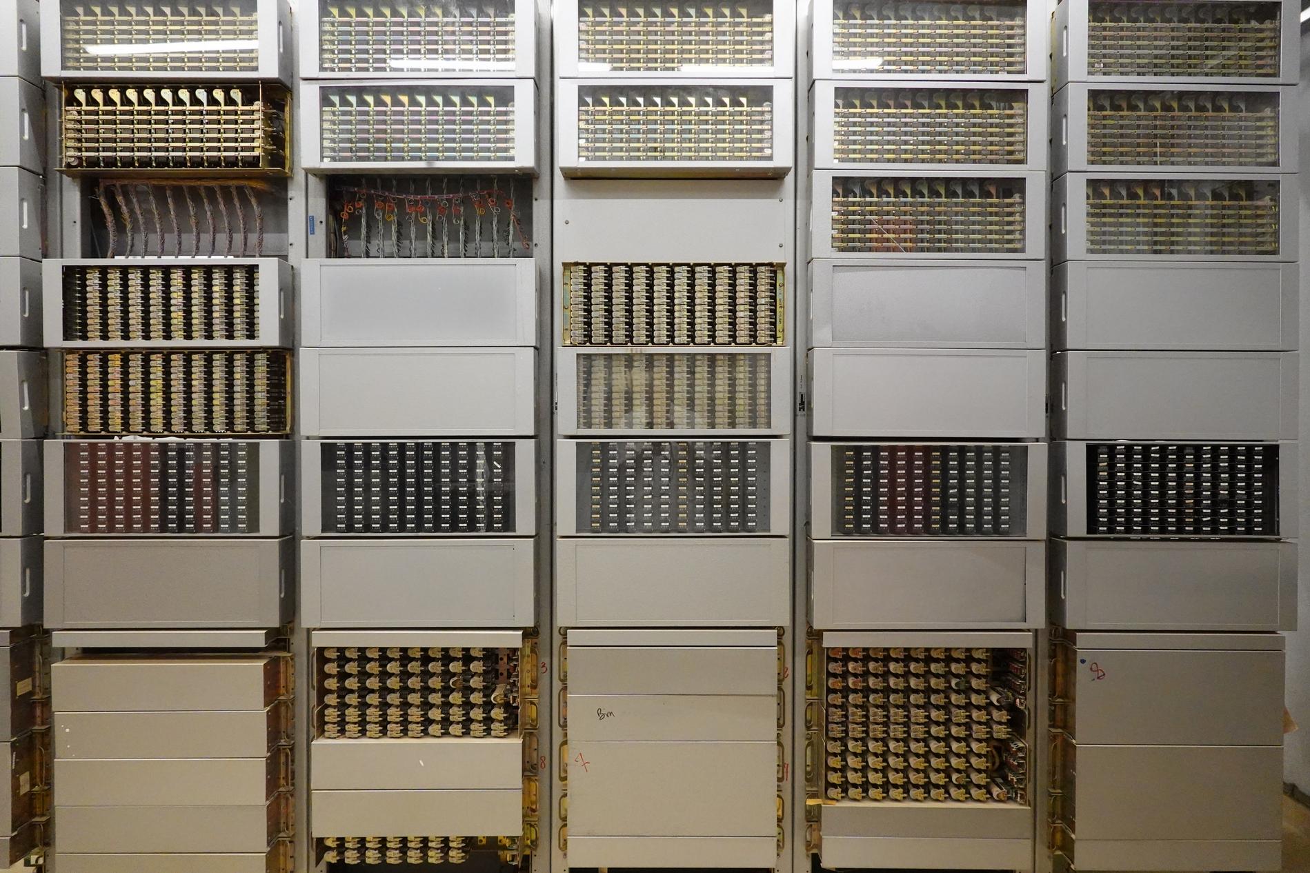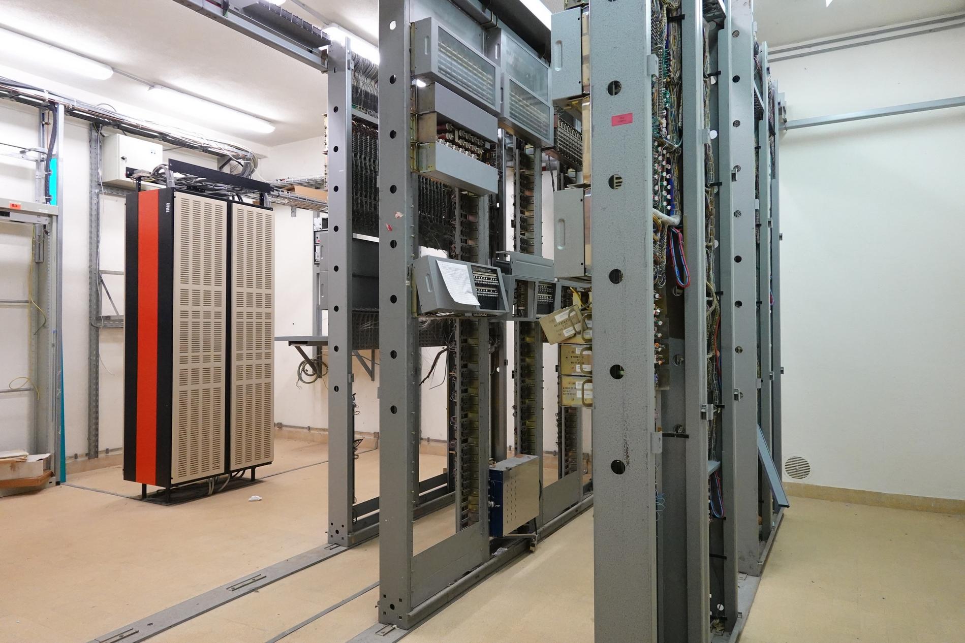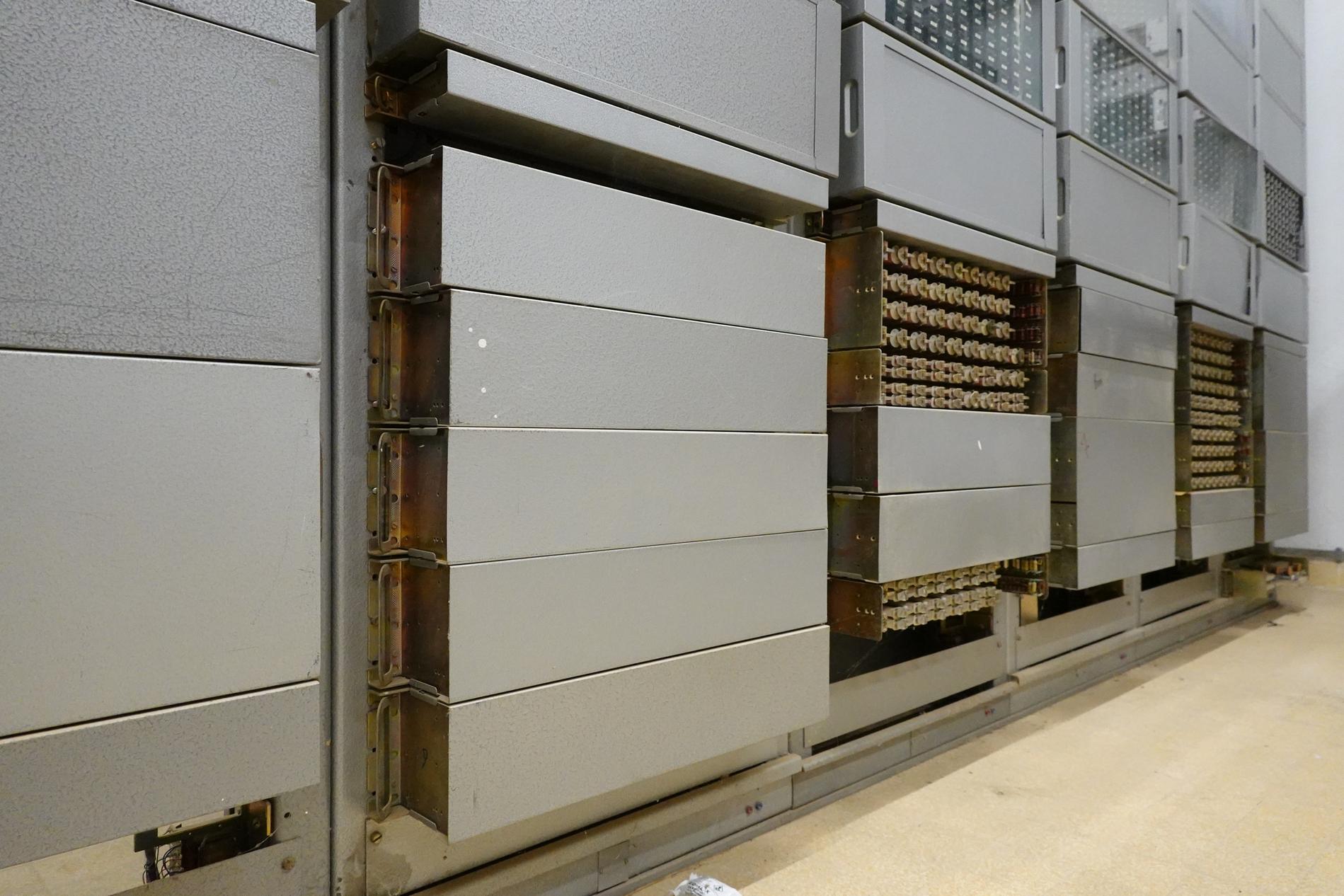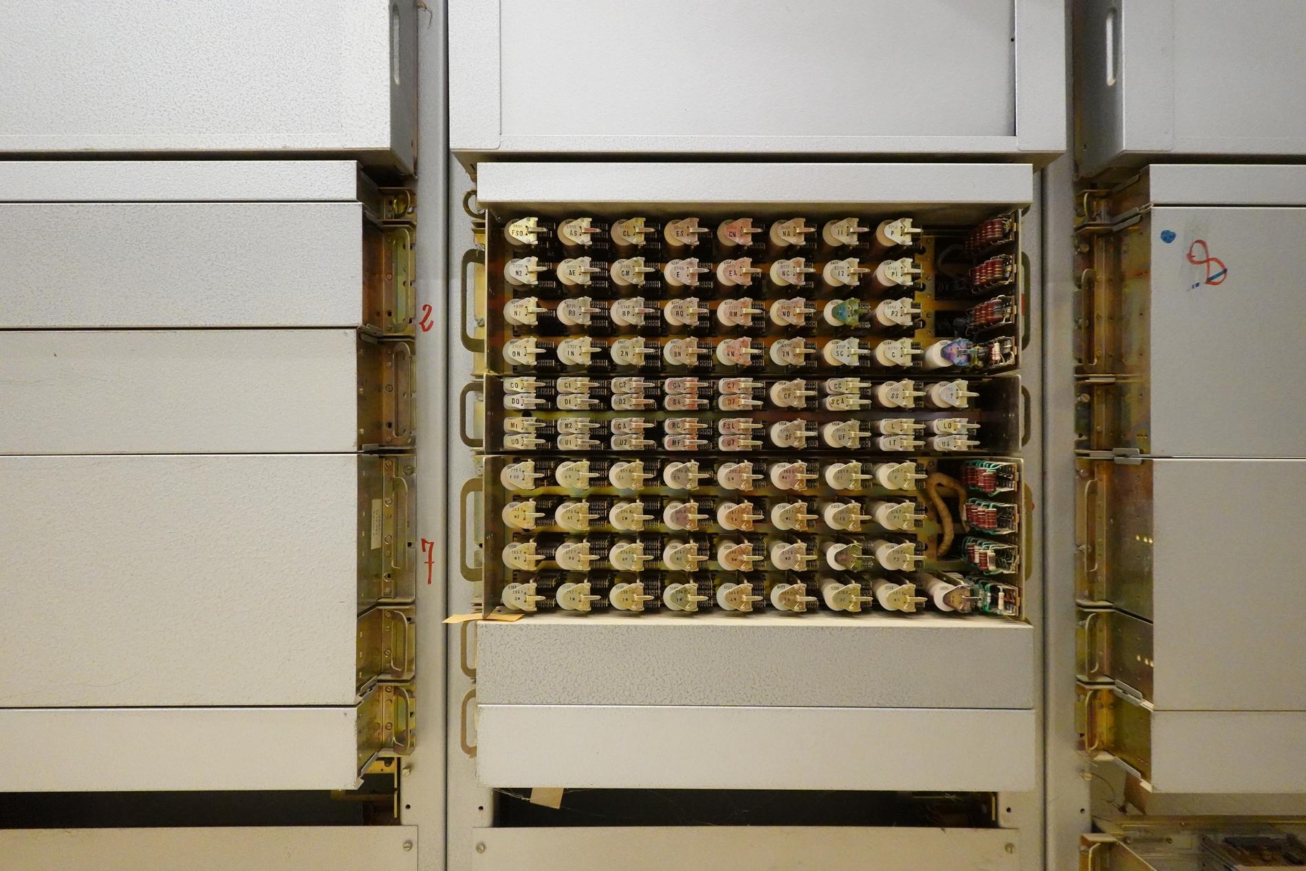 Ci-dessus : baies d'une Unité de Commande Électronique à microprocesseurs venant en remplacement d'une Unité de Commande Électromécanique, dans un Commutateur Crossbar CP400.