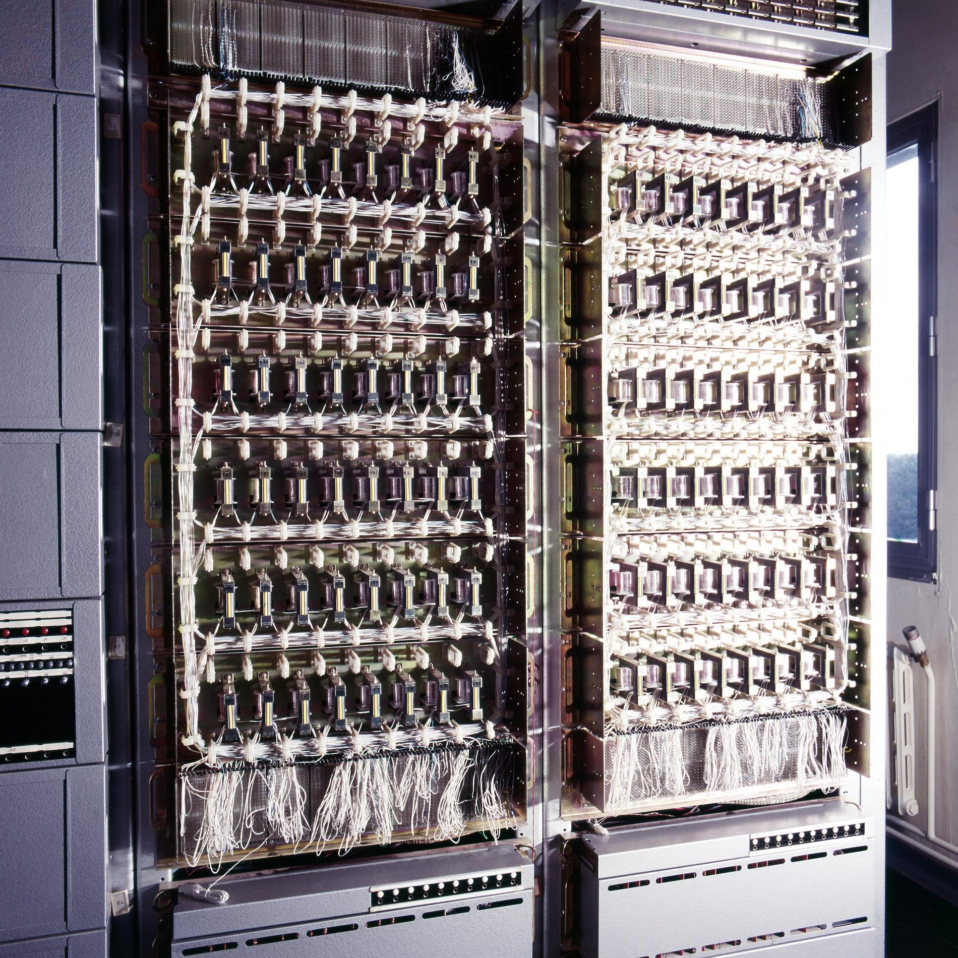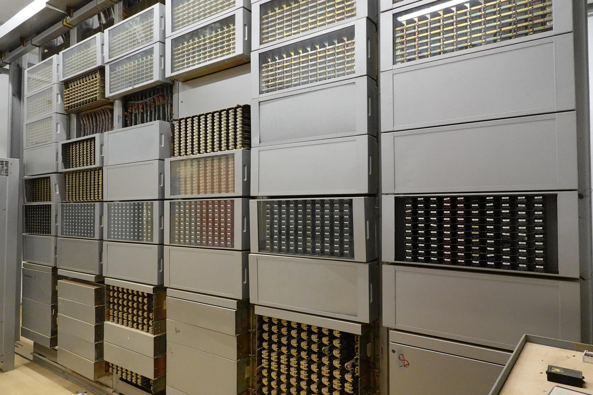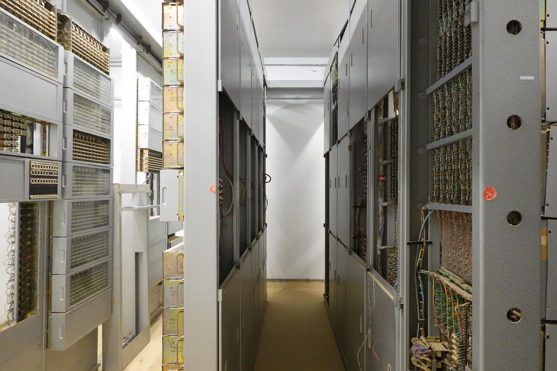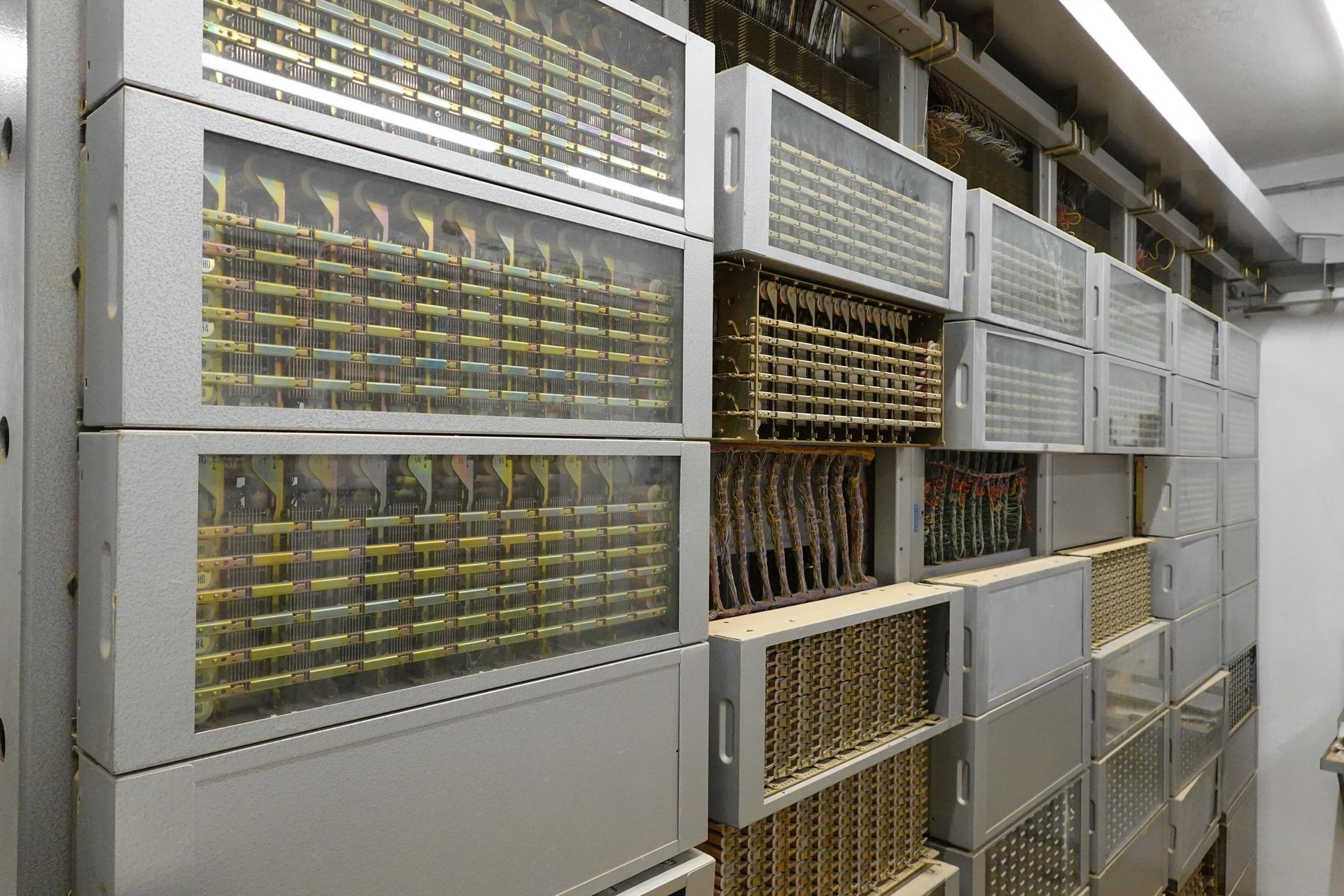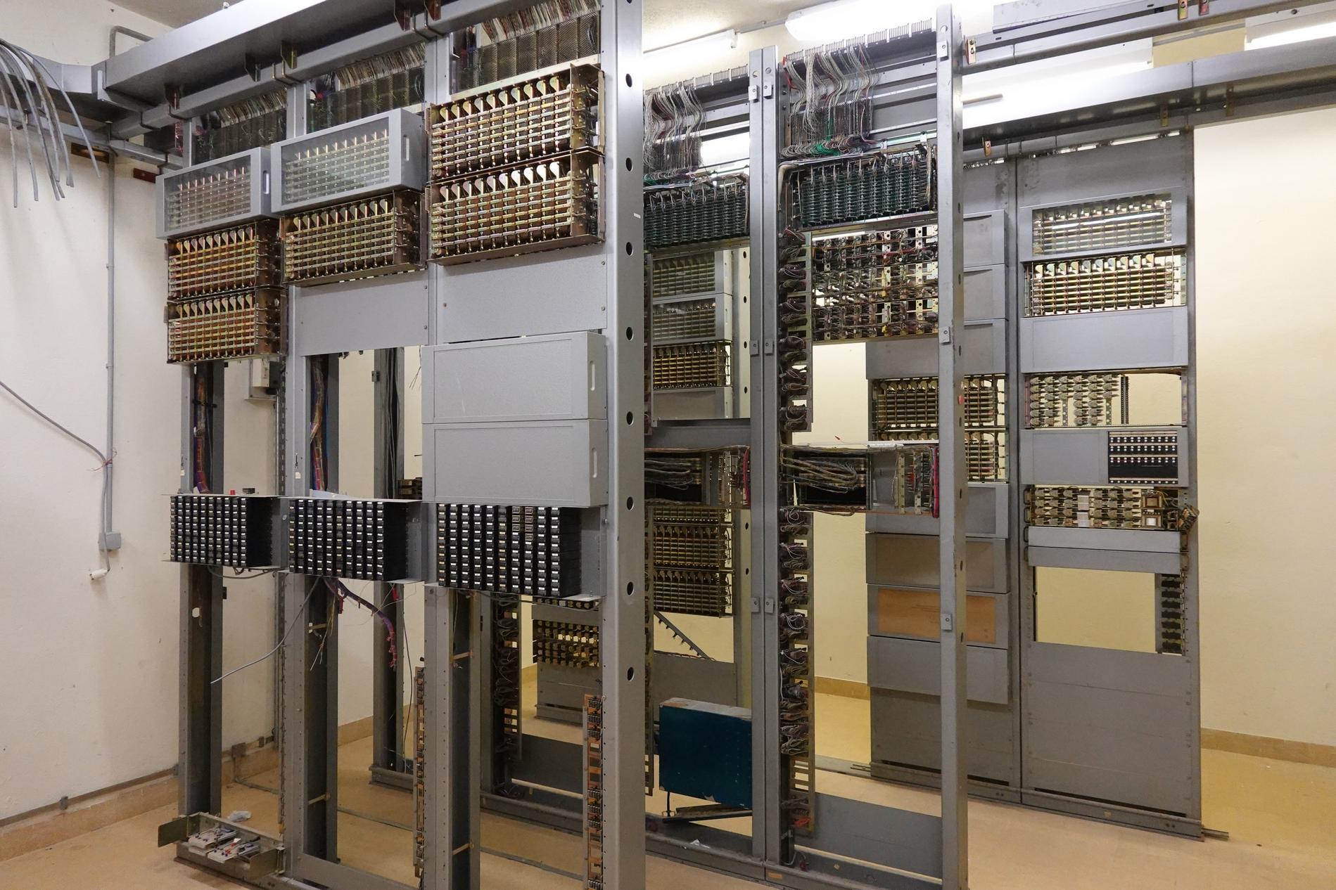 Ci-dessus : baies d'une Unité de Commande Électronique à microprocesseurs venant en remplacement d'une Unité de Commande Électromécanique, dans un Commutateur Crossbar CP400.