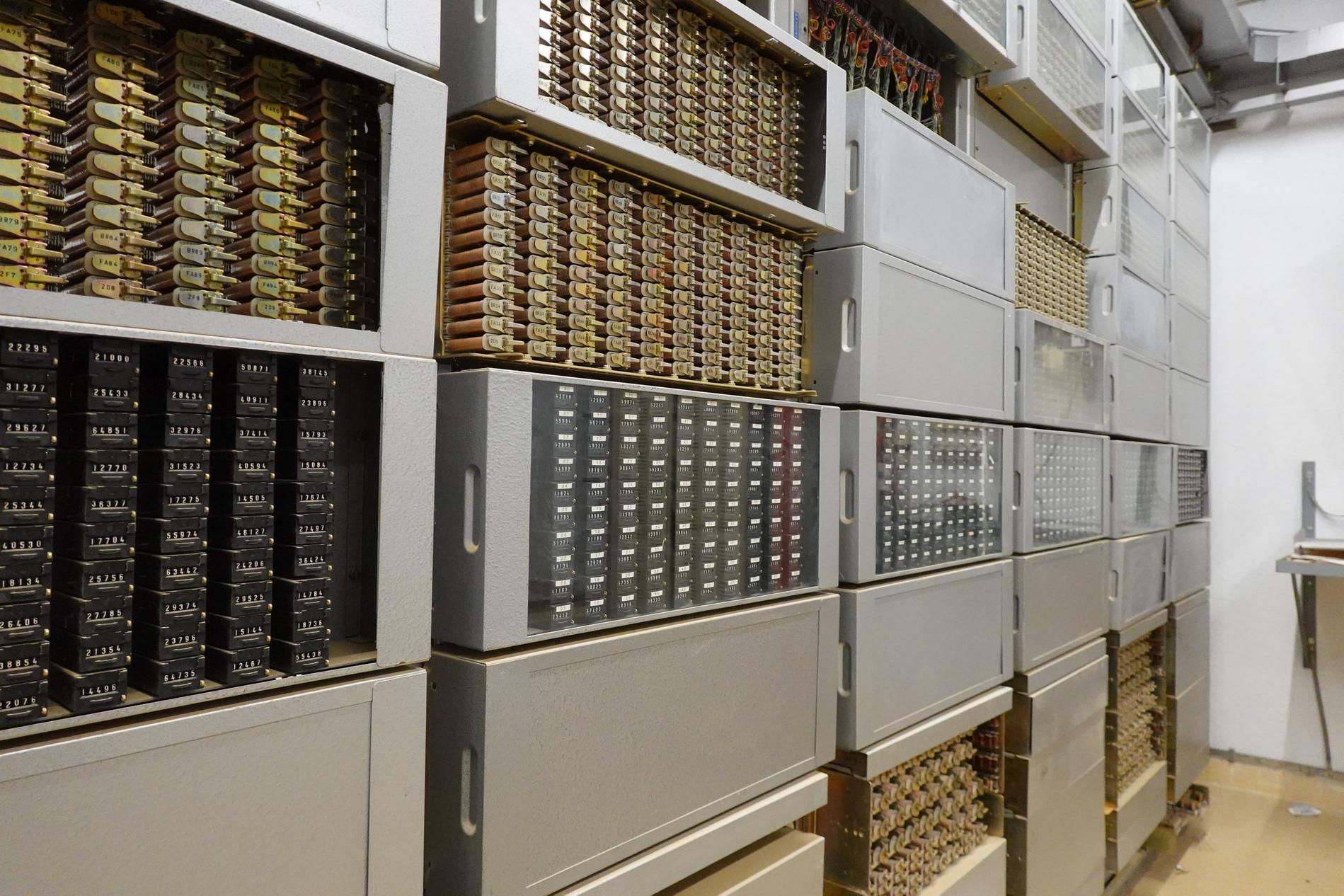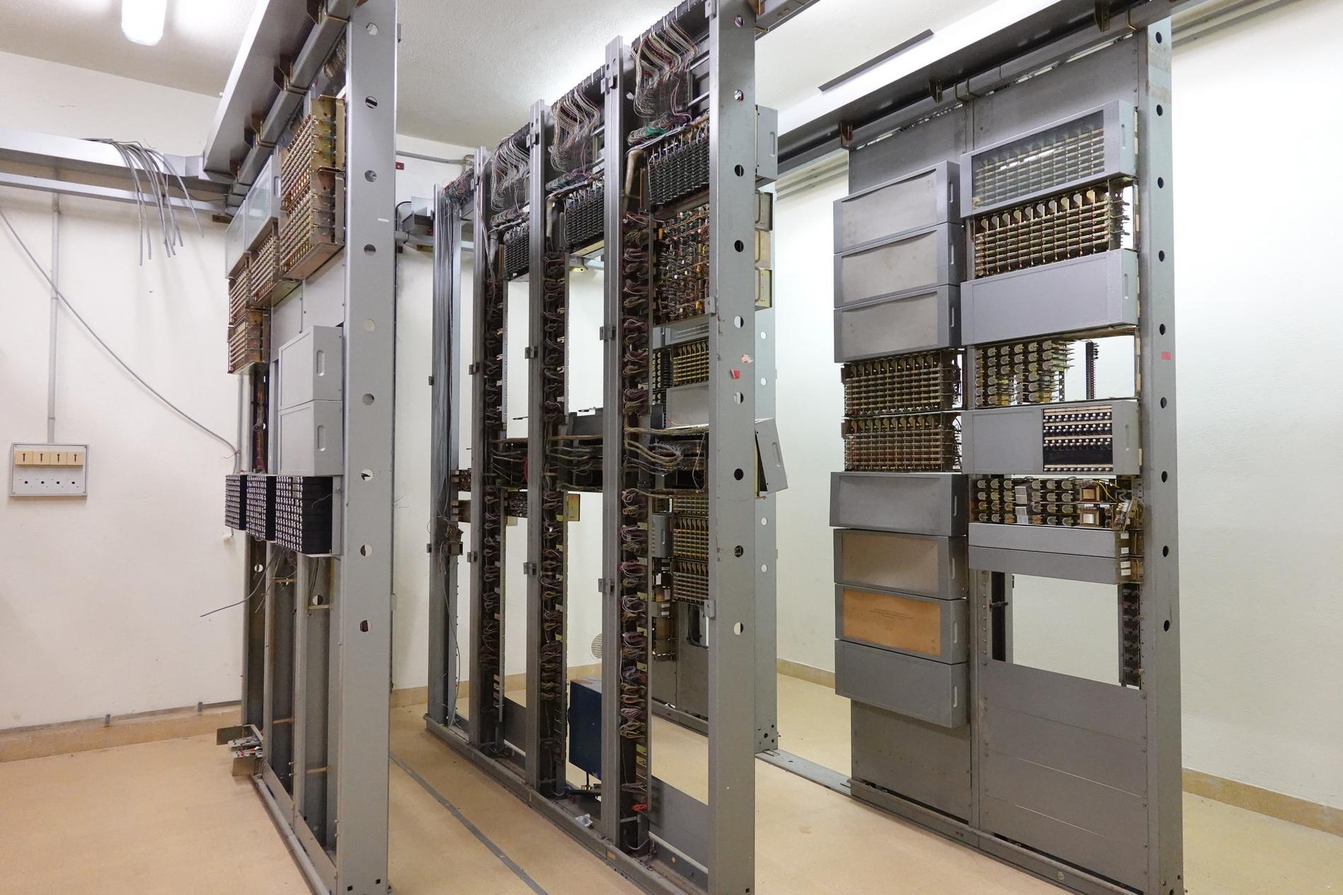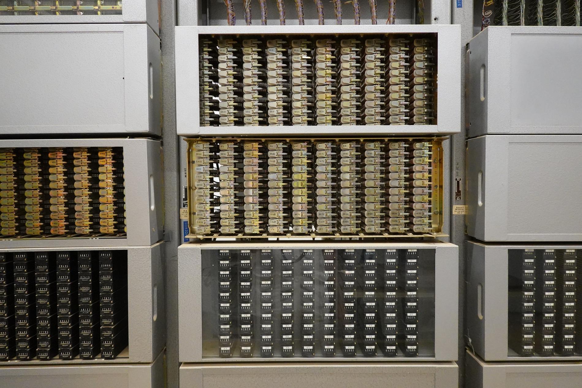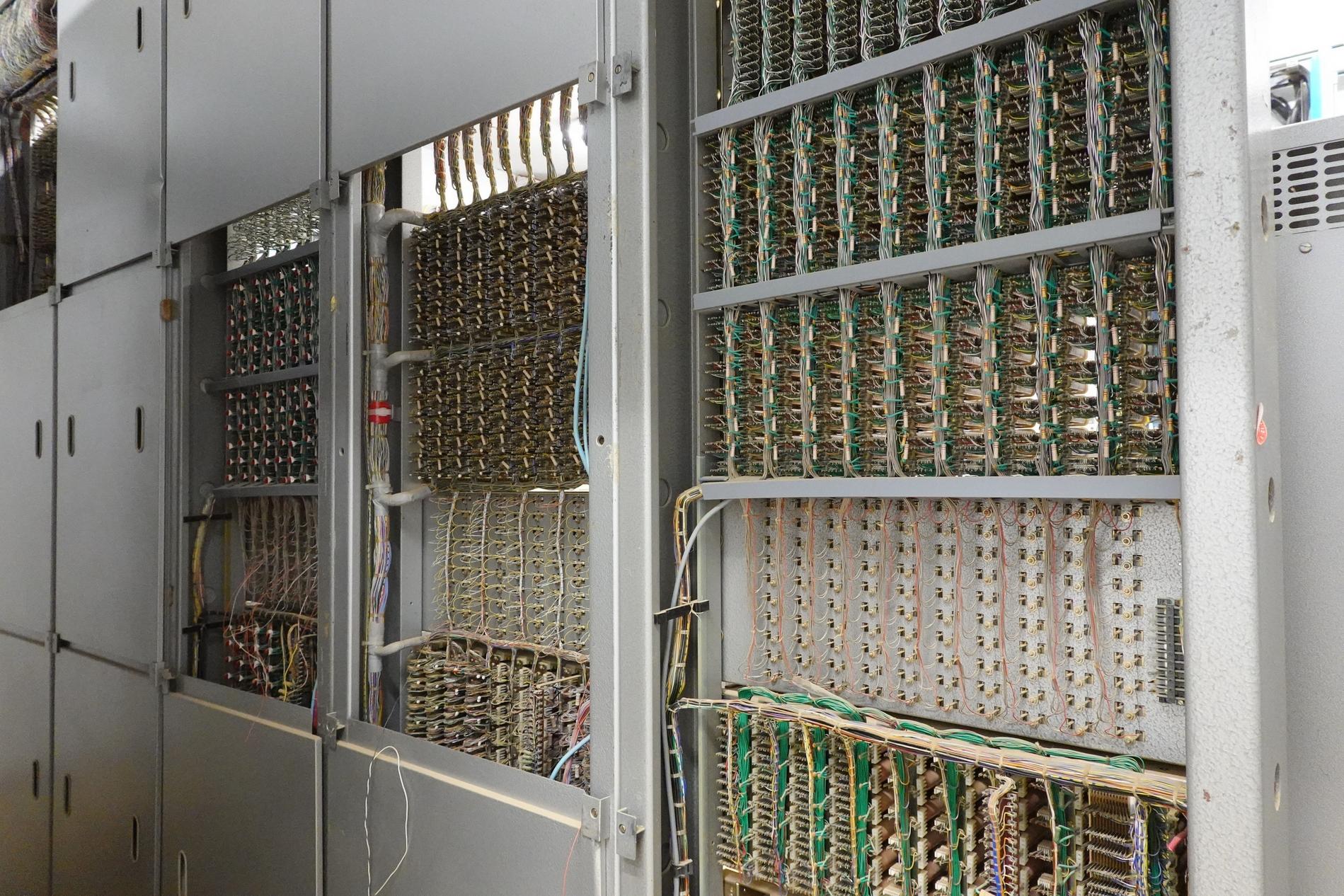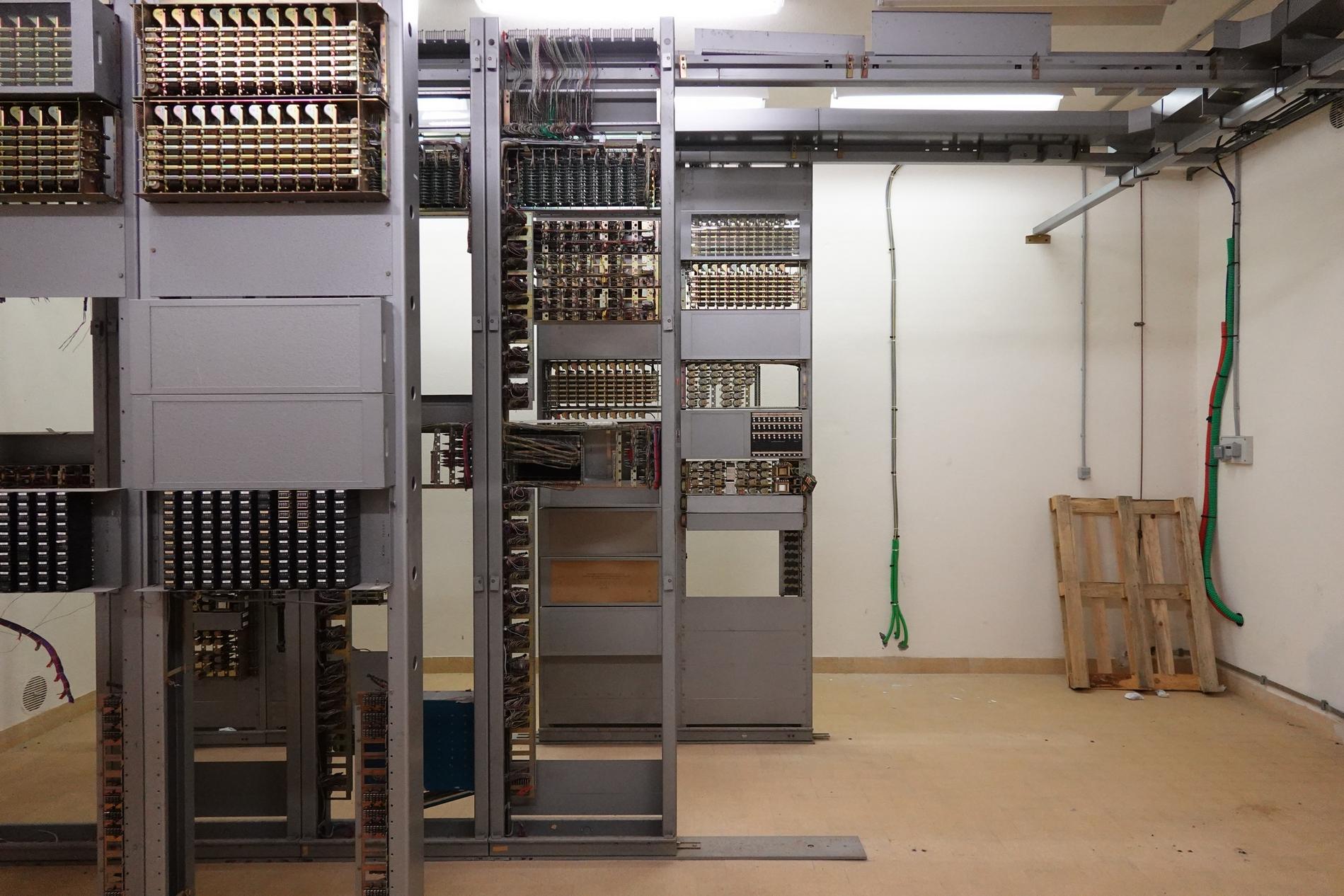 Ci-dessus : baies d'une Unité de Commande Électronique à microprocesseurs venant en remplacement d'une Unité de Commande Électromécanique, dans un Commutateur Crossbar CP400.
