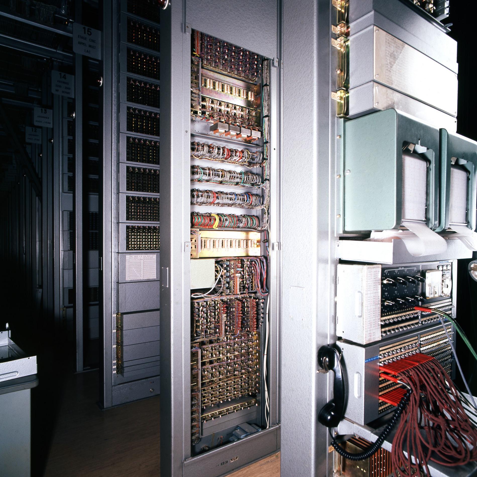 Ci-dessus : Commutateur PENTACONTA Type 520 de Melun (Prototype français) mis en service le 23 juillet 1955.