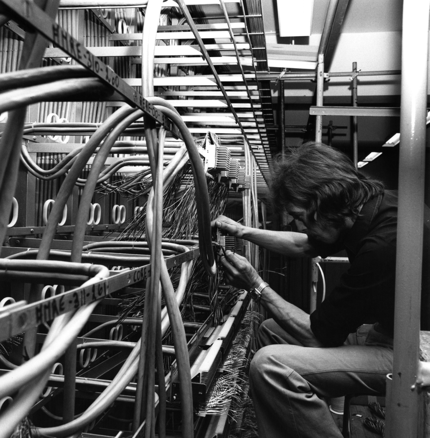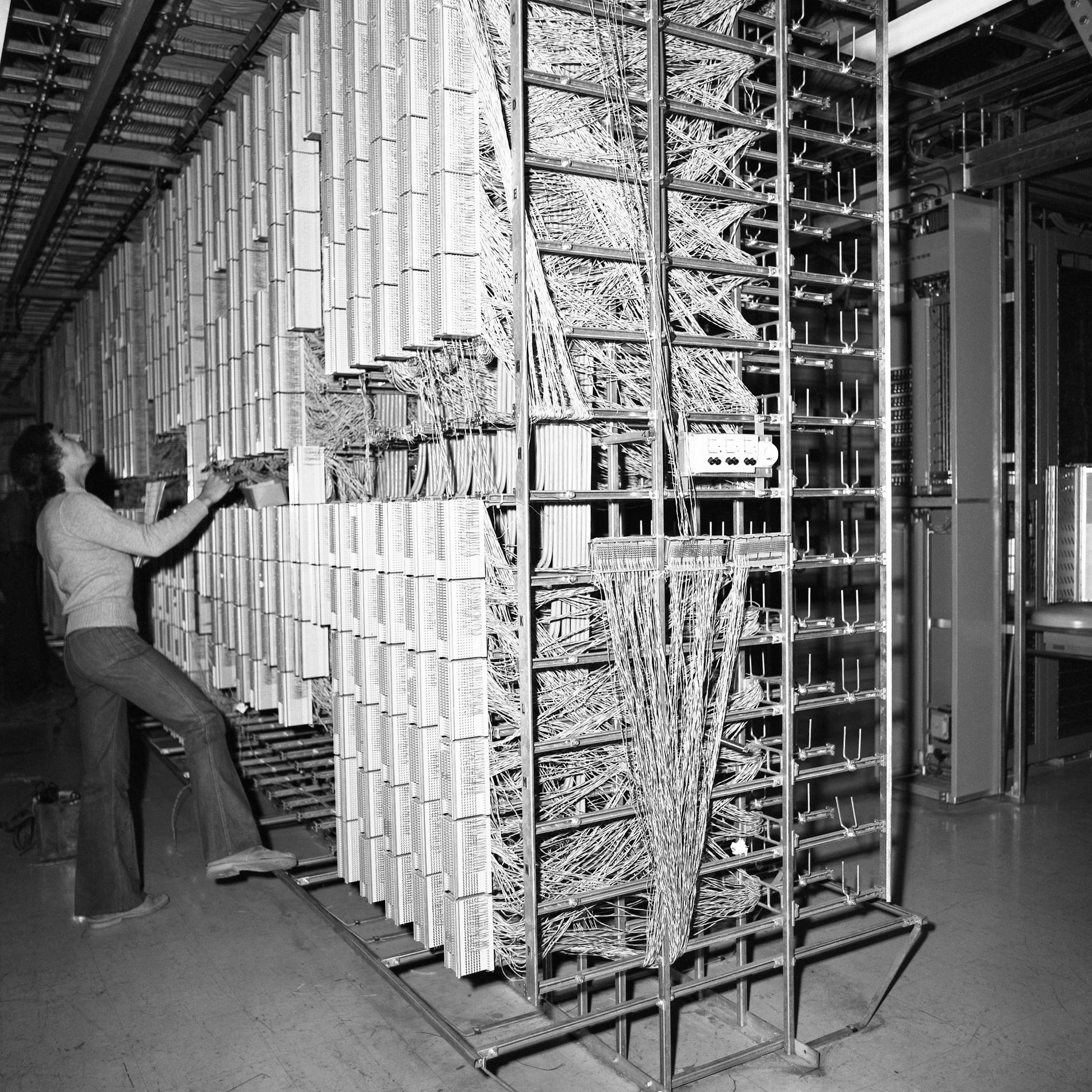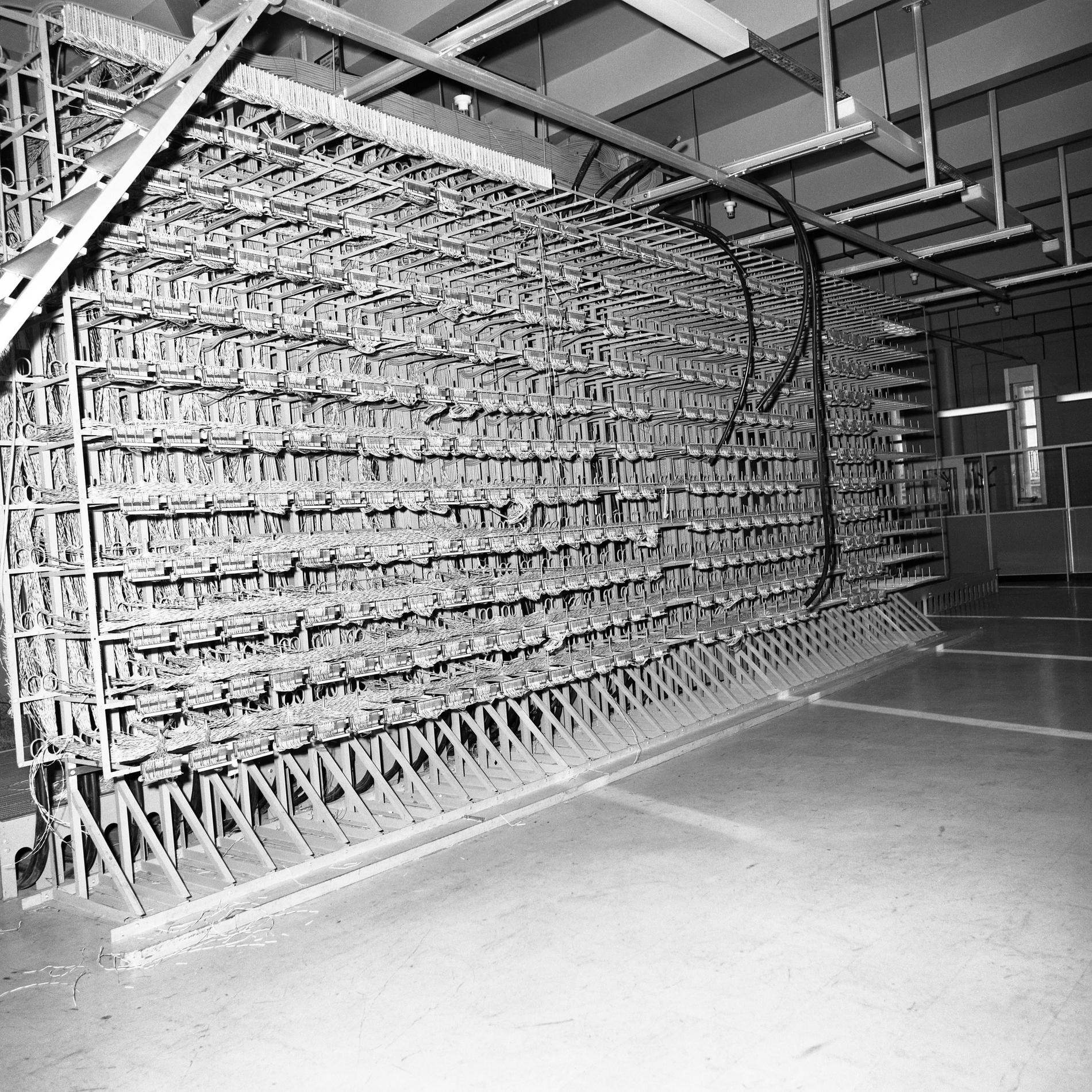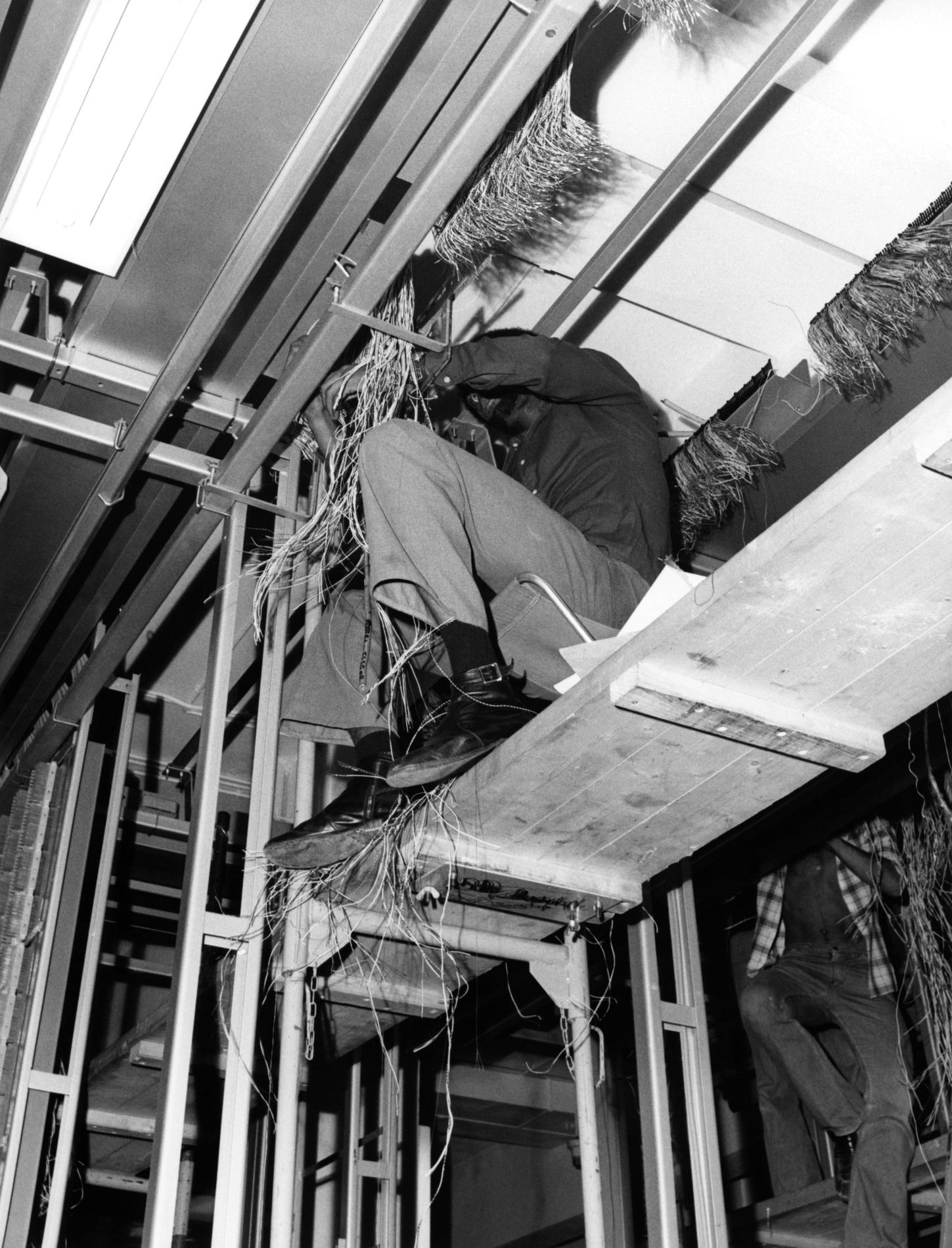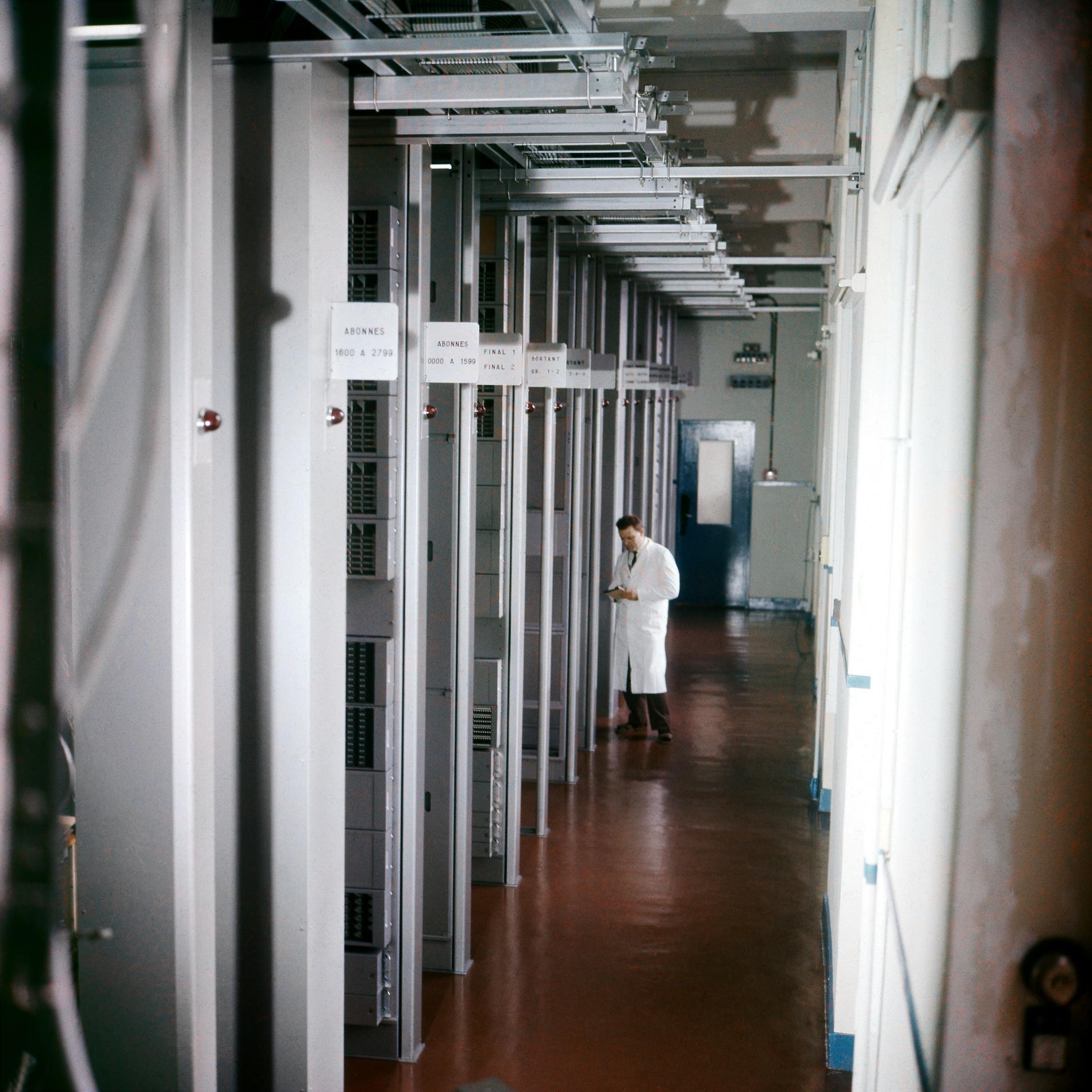 Ci-dessus : Agents de la Société des Téléphones Ericsson (STE) dans le futur Répartiteur d'Abonnés de Cergy en cours de constitution.
