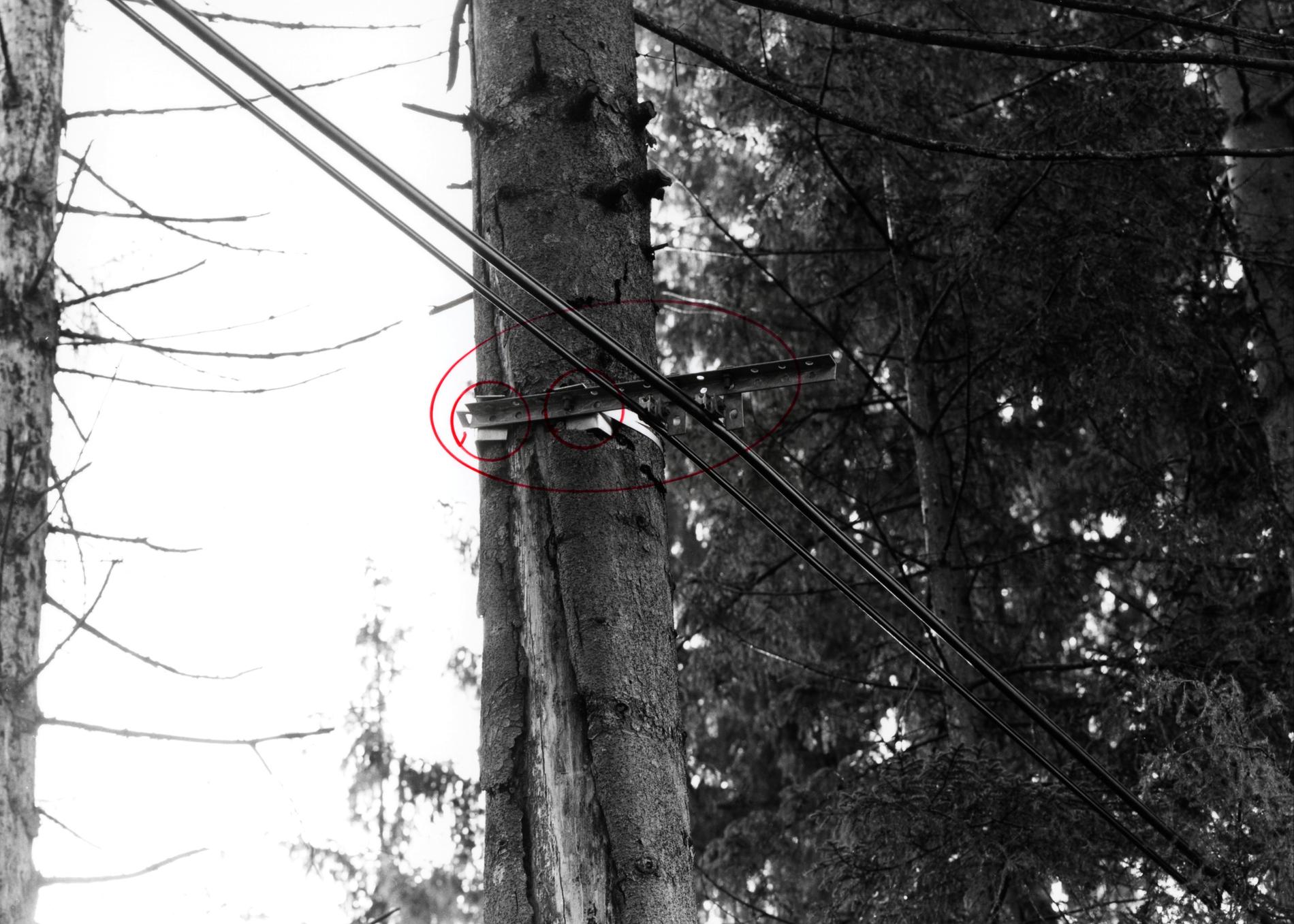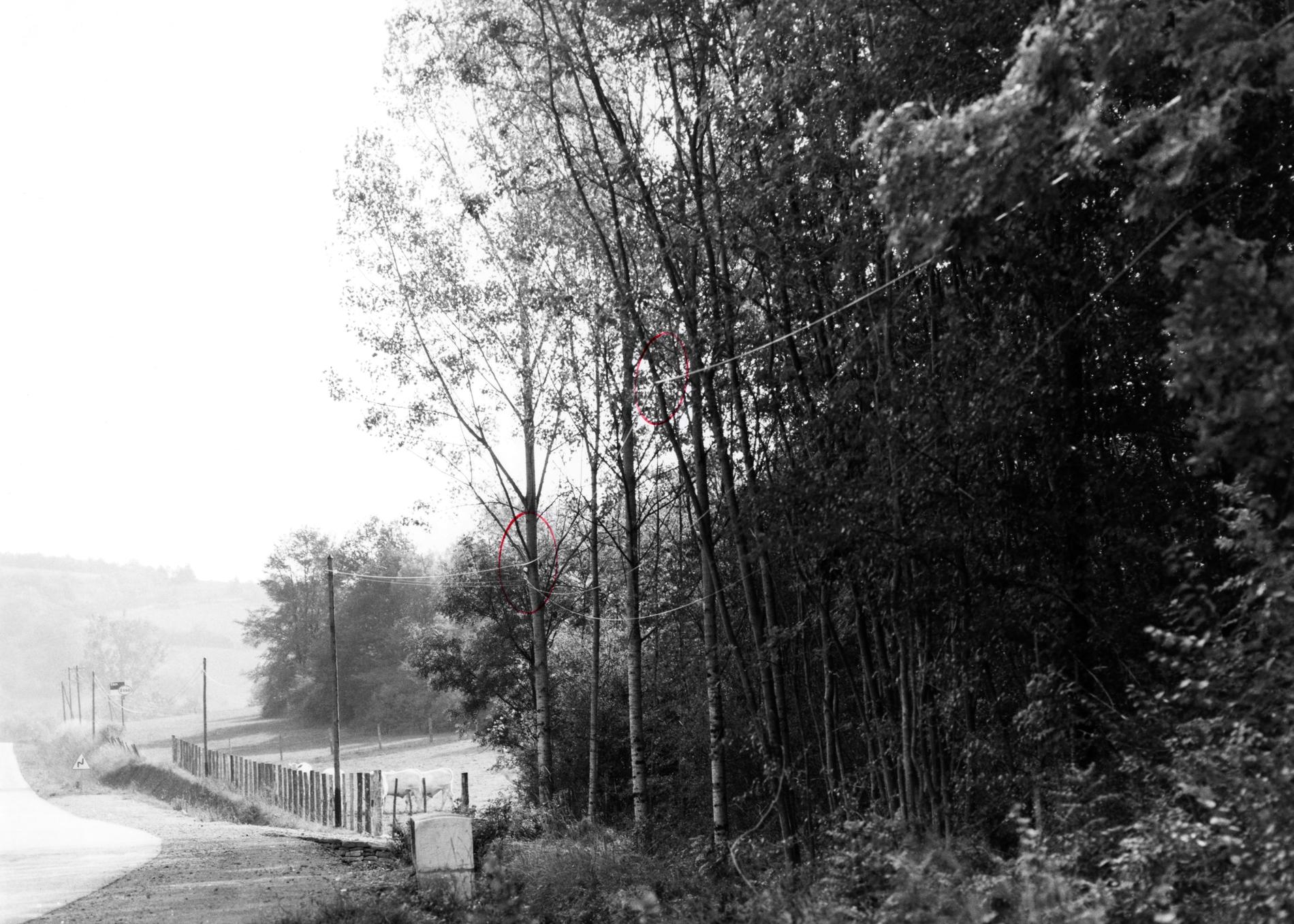 Ci-dessus : dans la France profonde, en lisière de forêt, l'Administration des PTT a parfois utilisé des arbres comme poteaux téléphoniques !