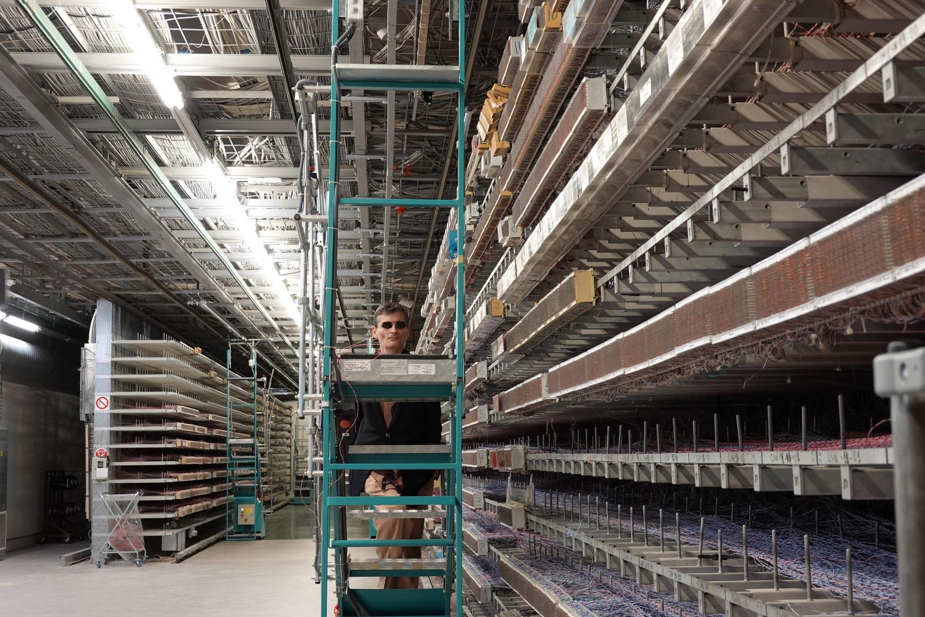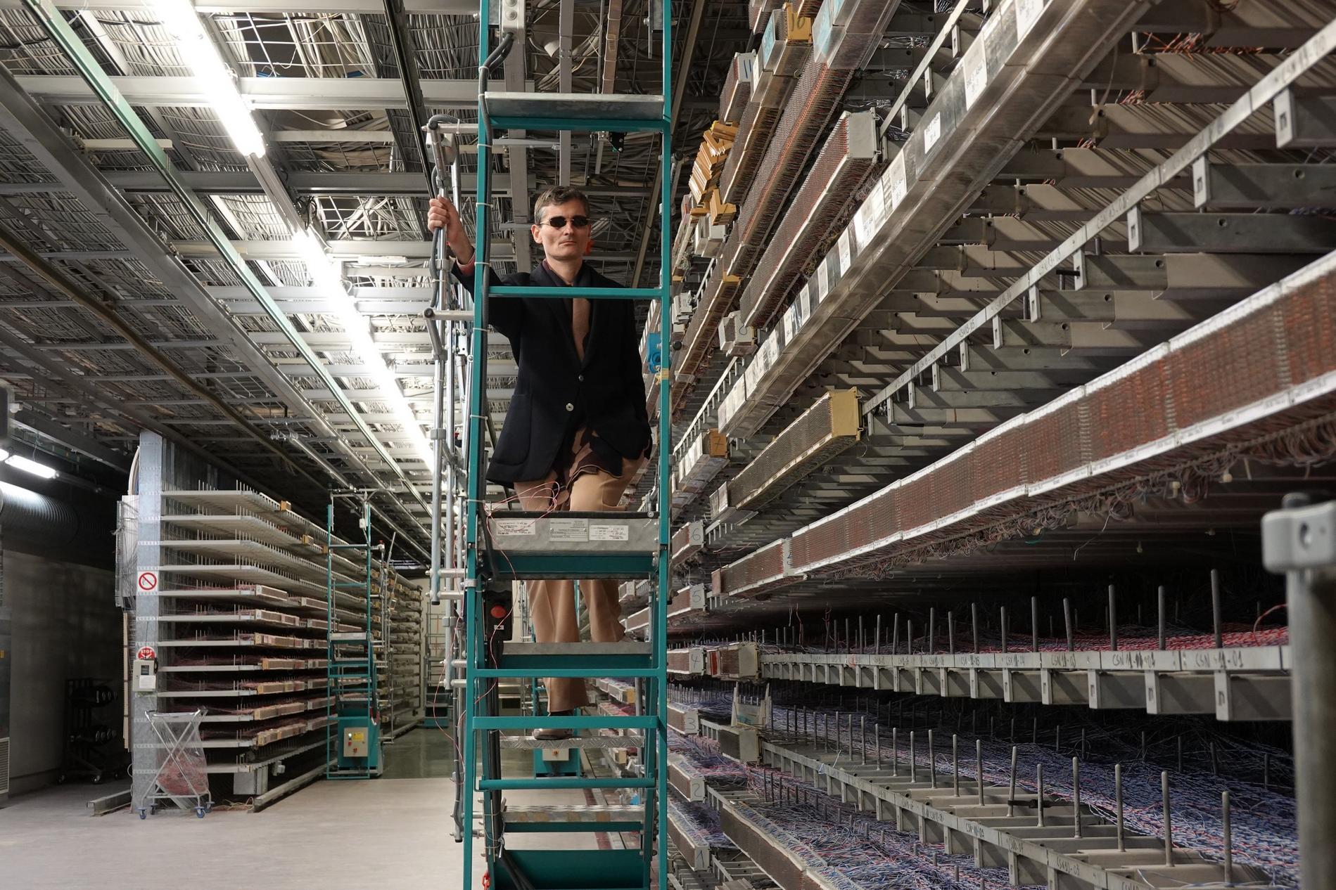Ci-dessus : galerie souterraine qui constitue la sortie de câbles d'un centre téléphonique parisien. (Quartier de la Porte Maillot)
