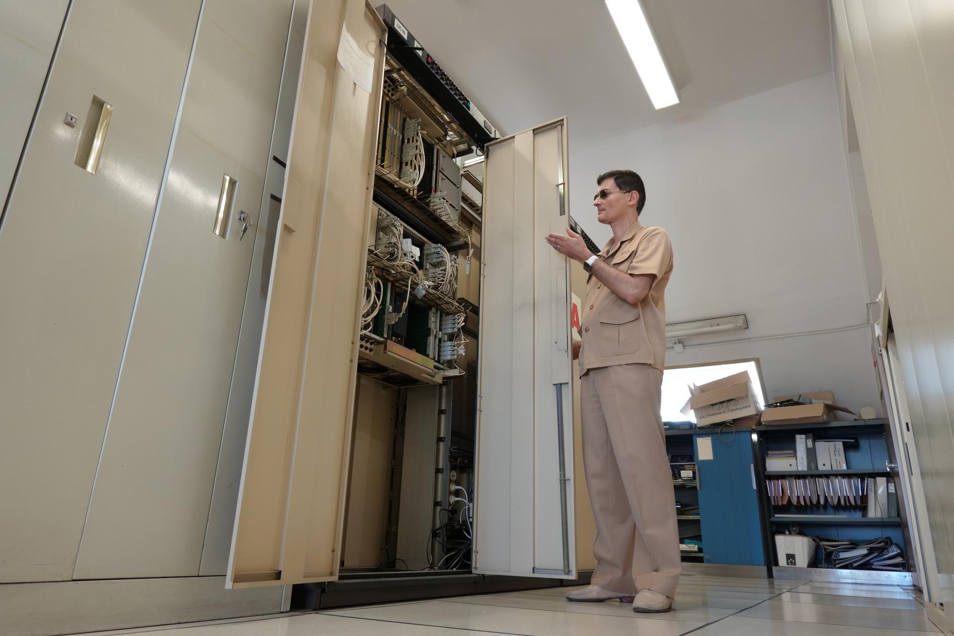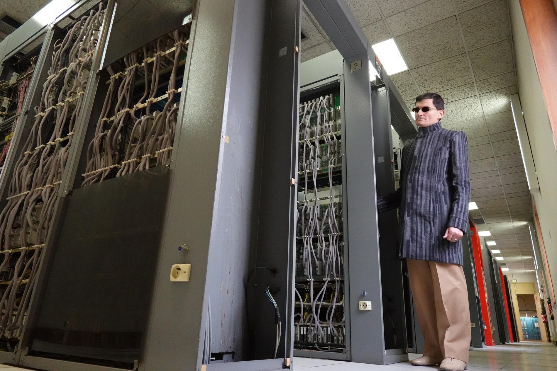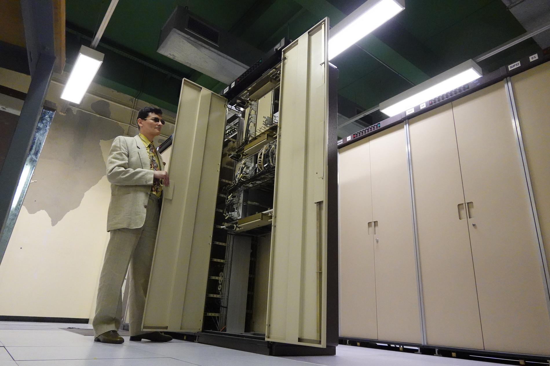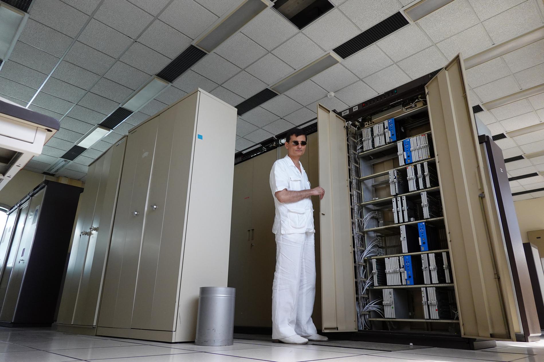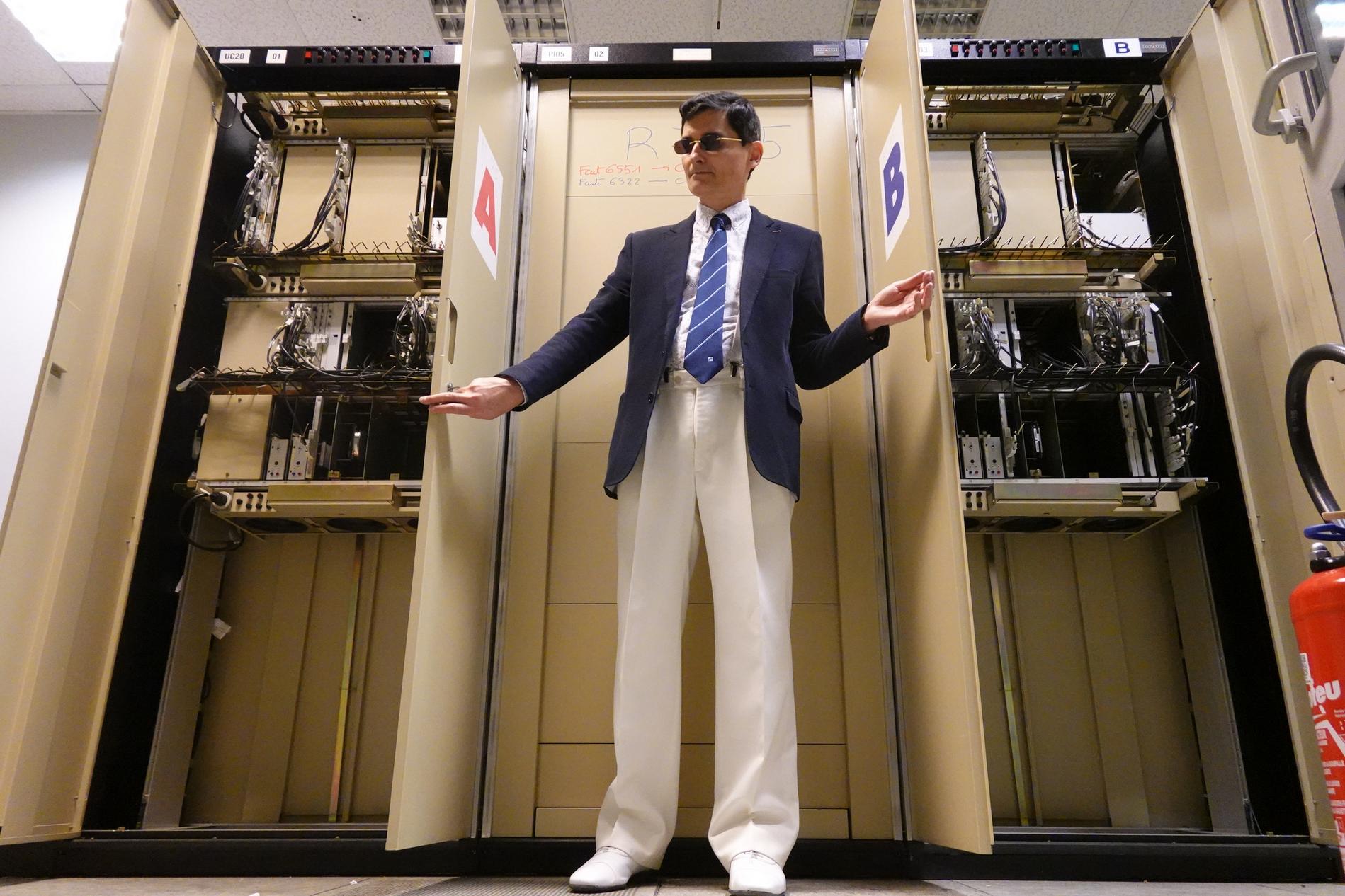Ci-dessus : le soir de l'arrêt définitif de l'ultime Commutateur MT25 de France - AULNAY A3 (BB03), à Aulnay-sous-Bois (93), moi-même présent avec une partie de l'équipe, devant les Calculateurs.