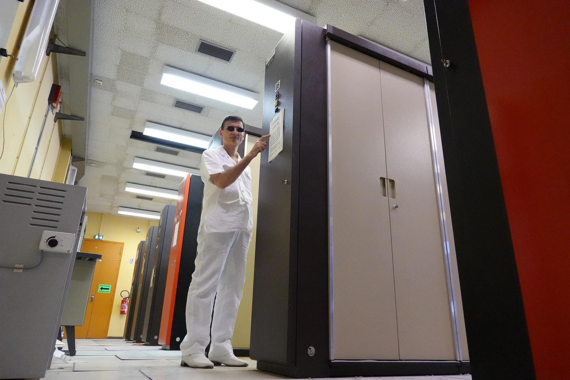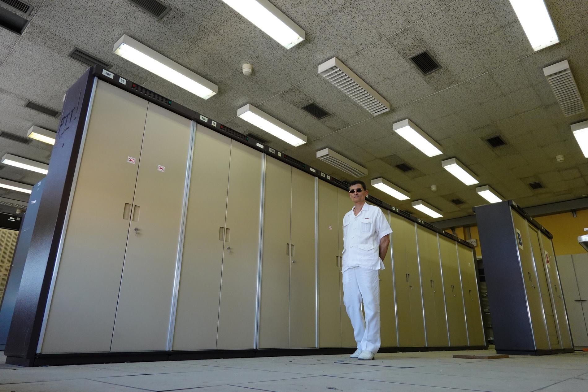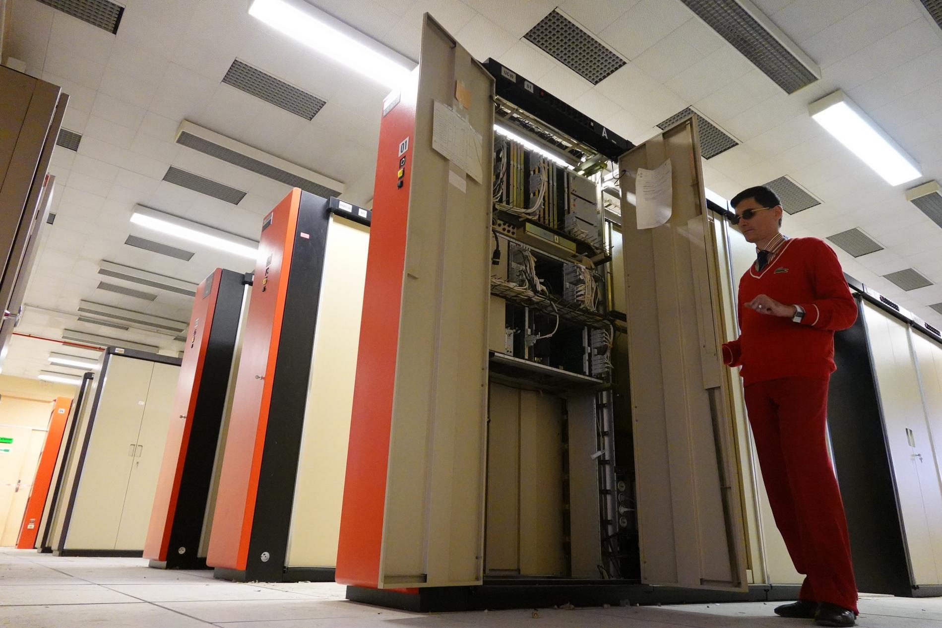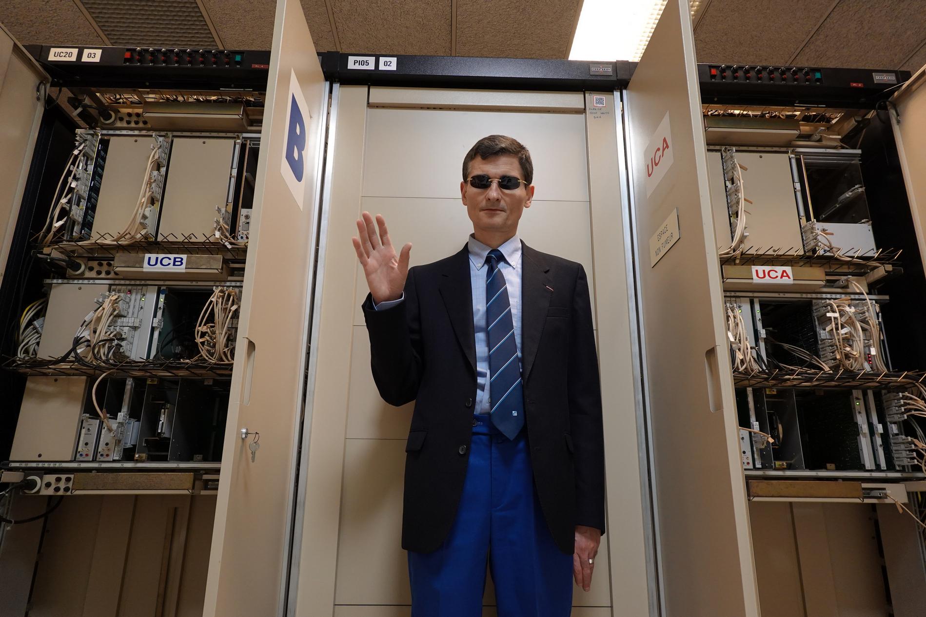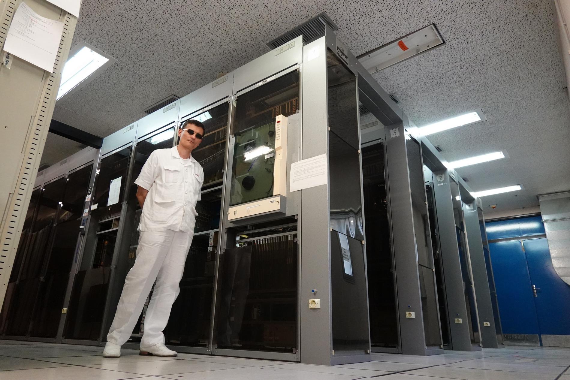 Ci-dessus : le soir de l'arrêt définitif de l'ultime Commutateur MT25 de France - AULNAY A3 (BB03), à Aulnay-sous-Bois (93), moi-même présent avec une partie de l'équipe, devant les Calculateurs.