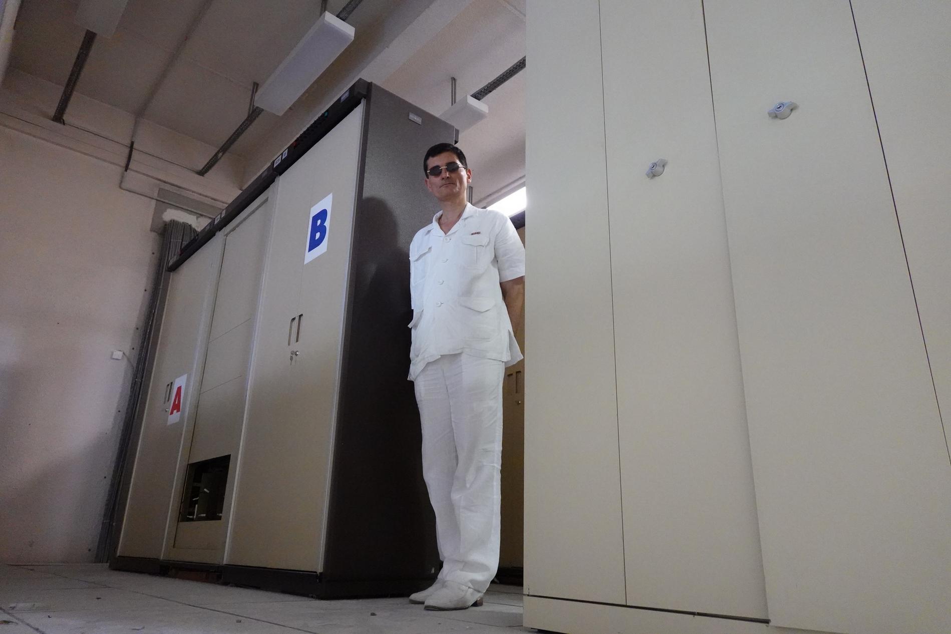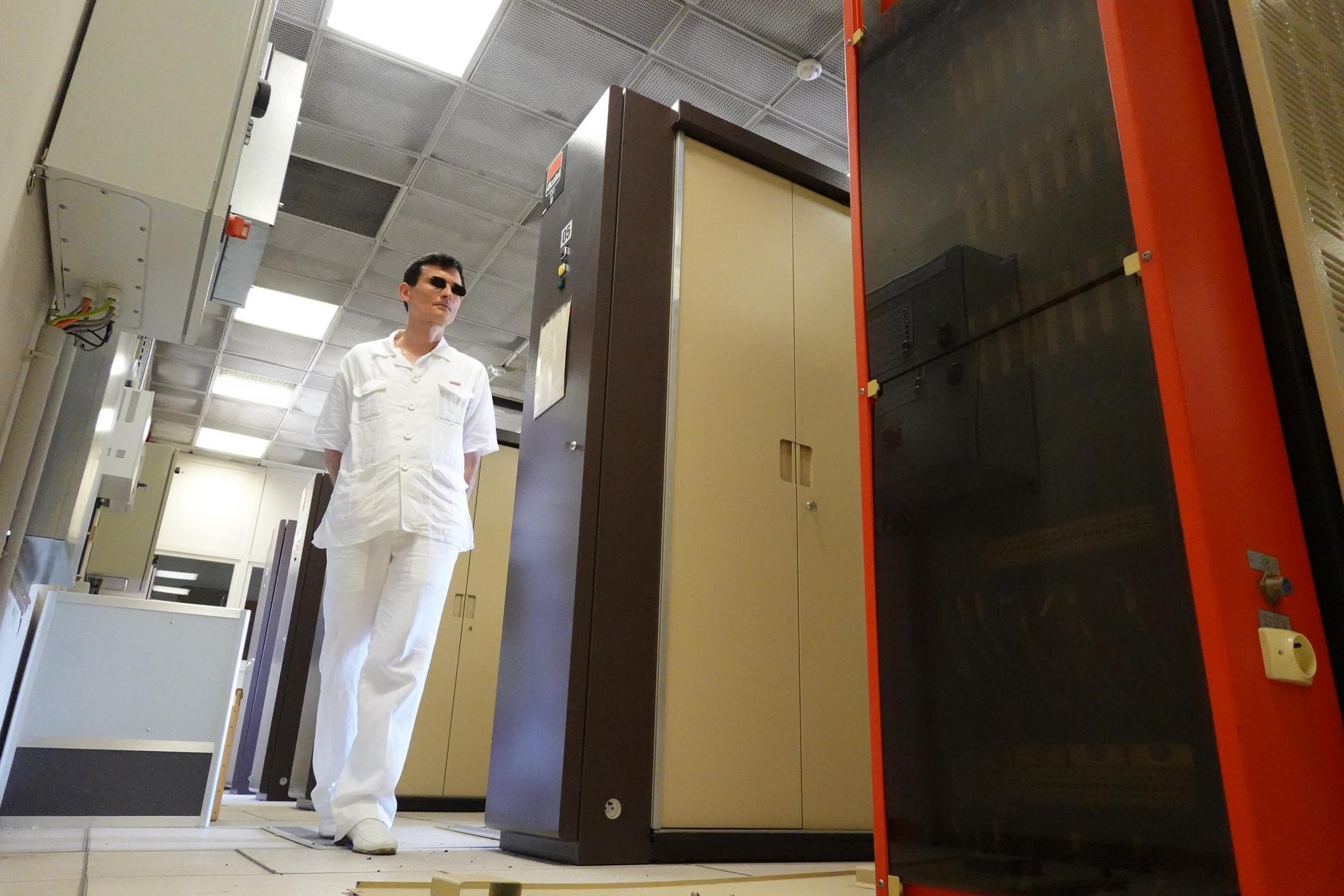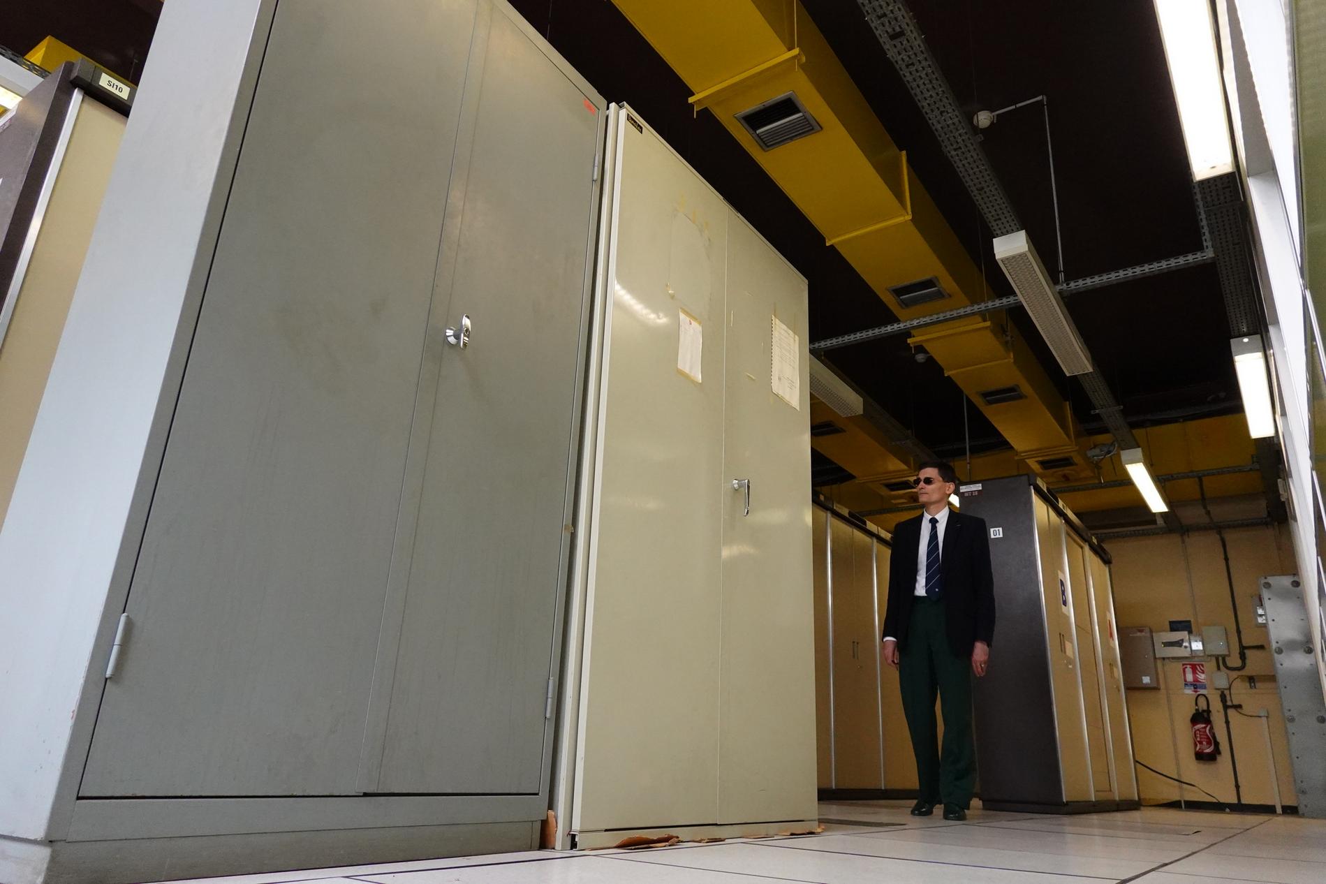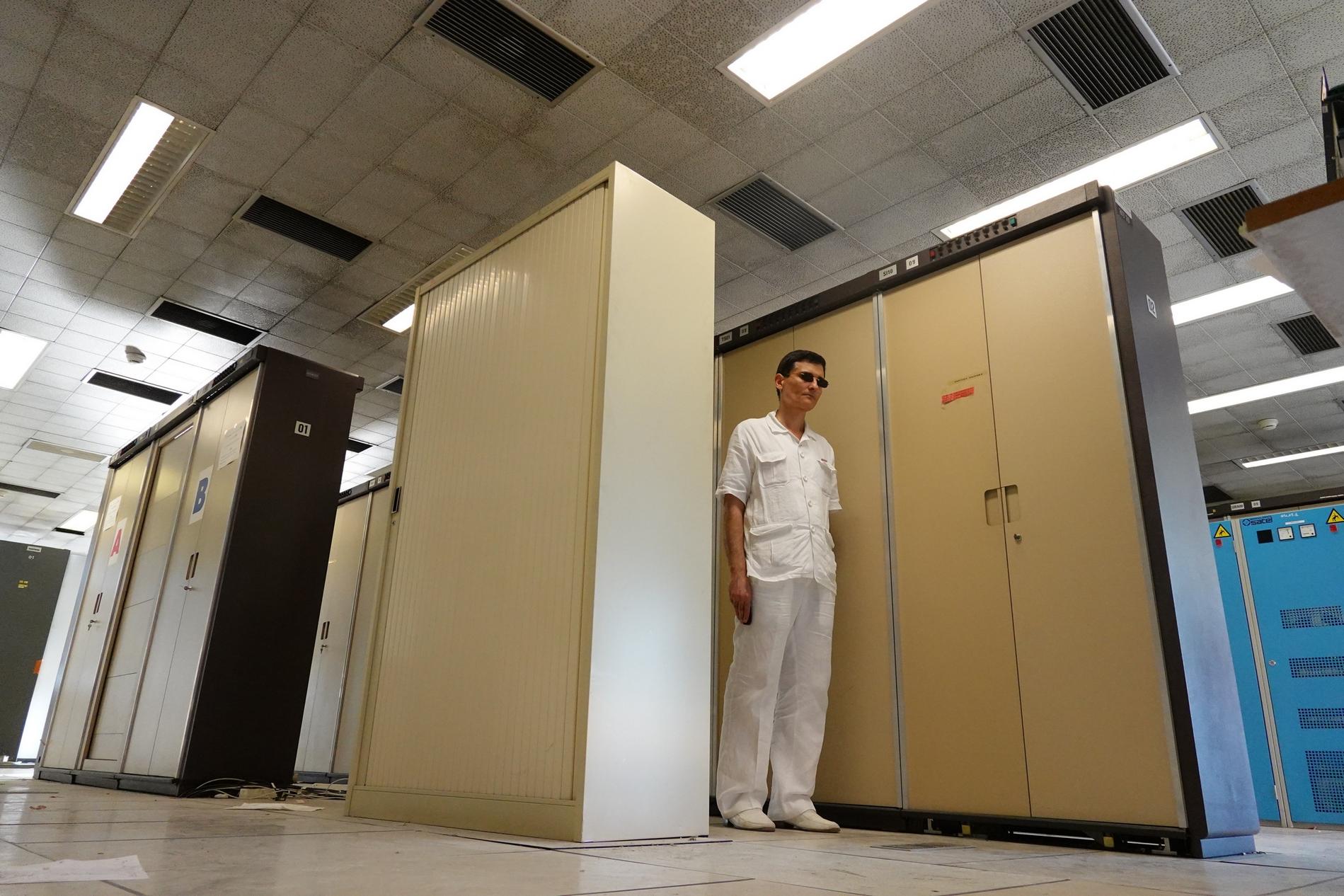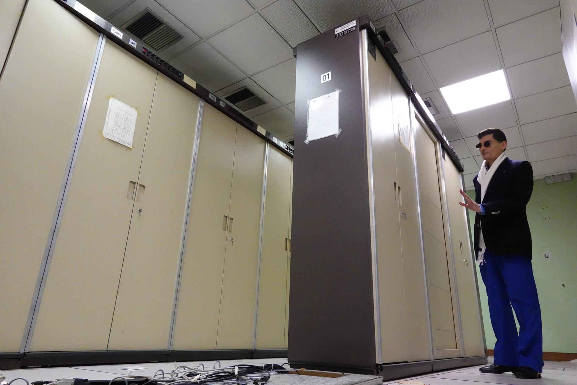 Ci-dessus : le soir de l'arrêt définitif de l'ultime Commutateur MT25 de France - AULNAY A3 (BB03), à Aulnay-sous-Bois (93), moi-même présent avec une partie de l'équipe, devant les Calculateurs.