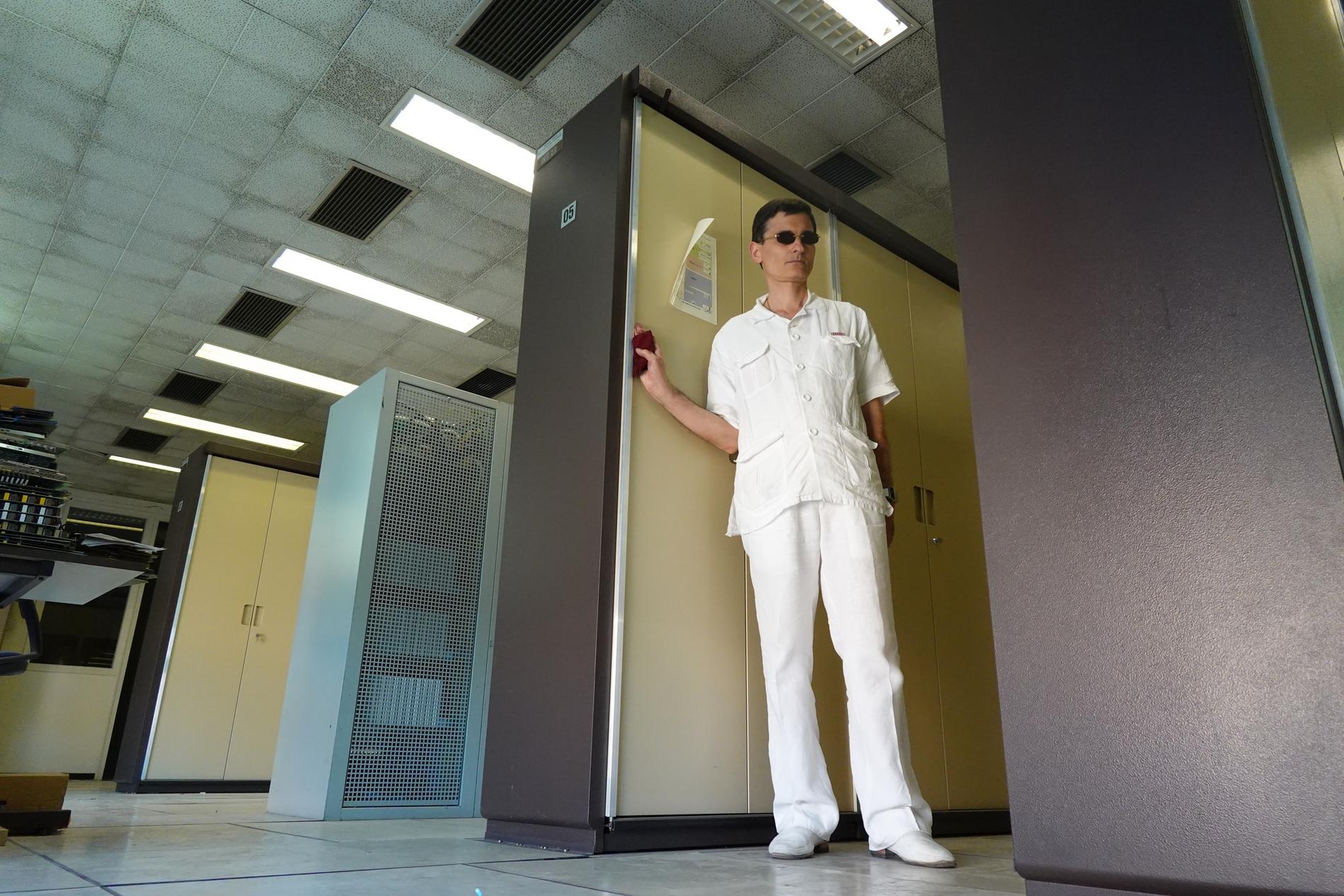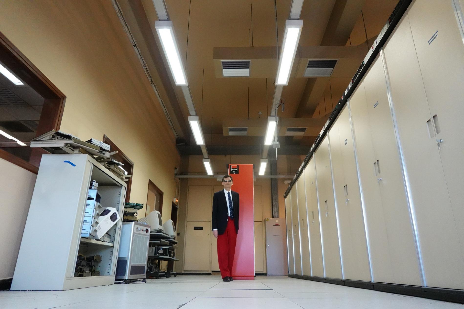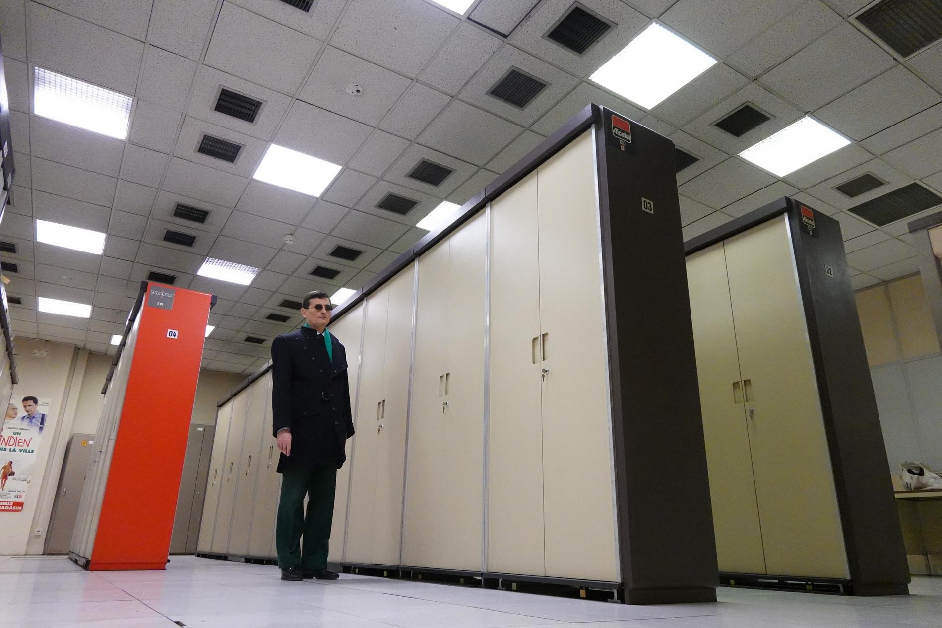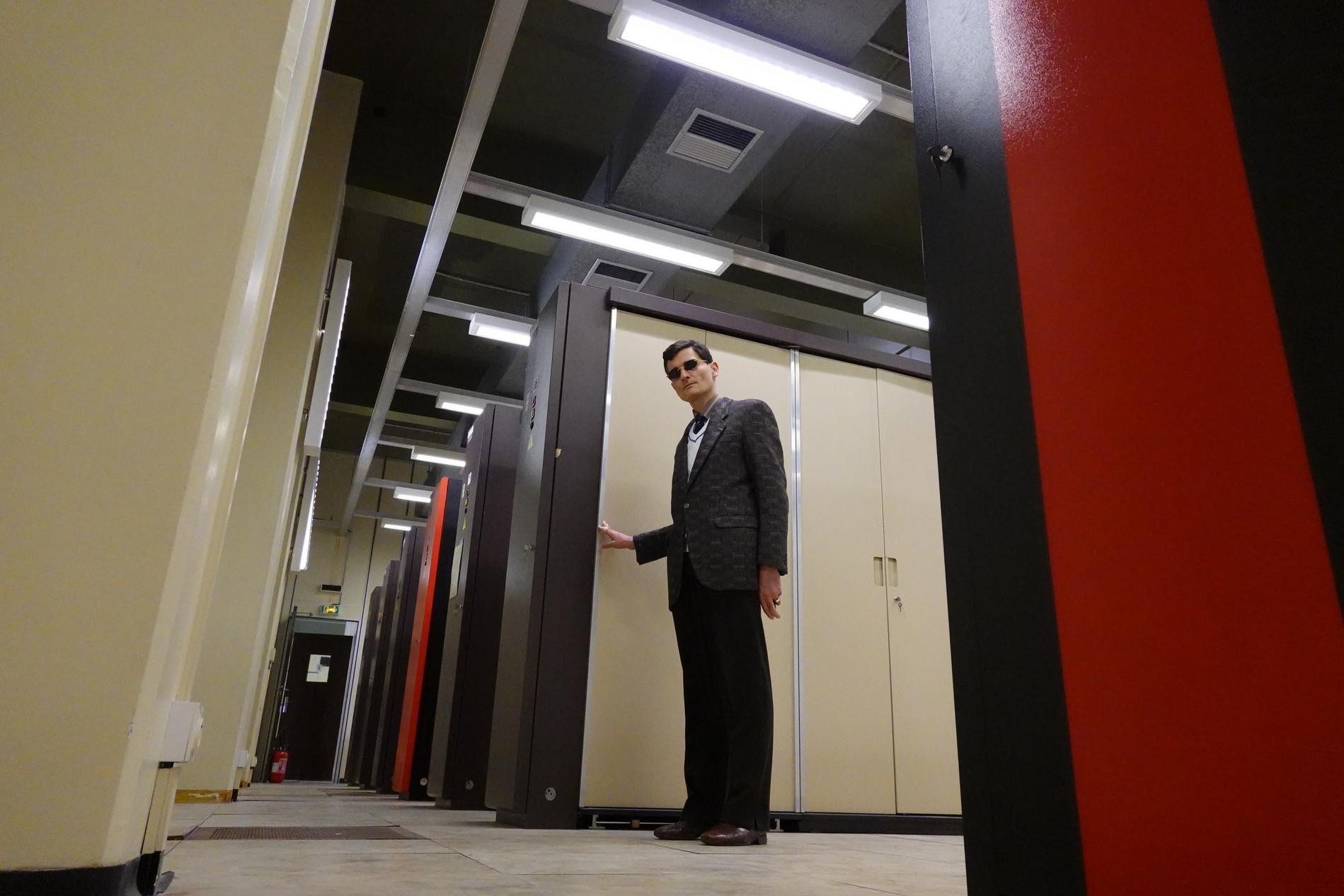 Ci-dessus : le soir de l'arrêt définitif de l'ultime Commutateur MT25 de France - AULNAY A3 (BB03), à Aulnay-sous-Bois (93), moi-même présent avec une partie de l'équipe, devant les Calculateurs.