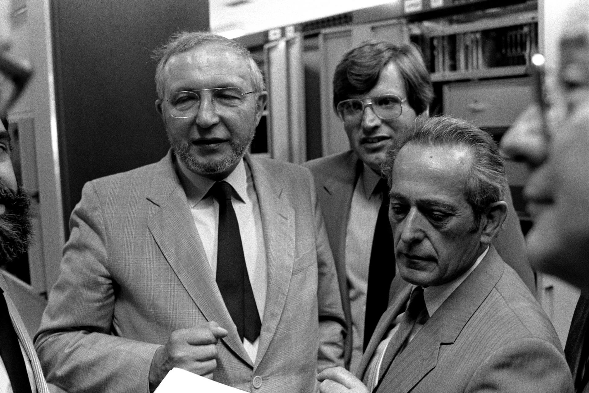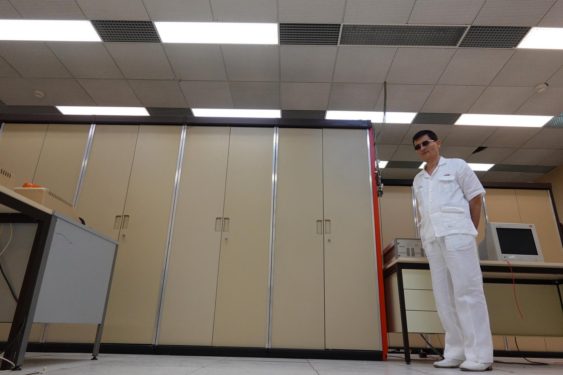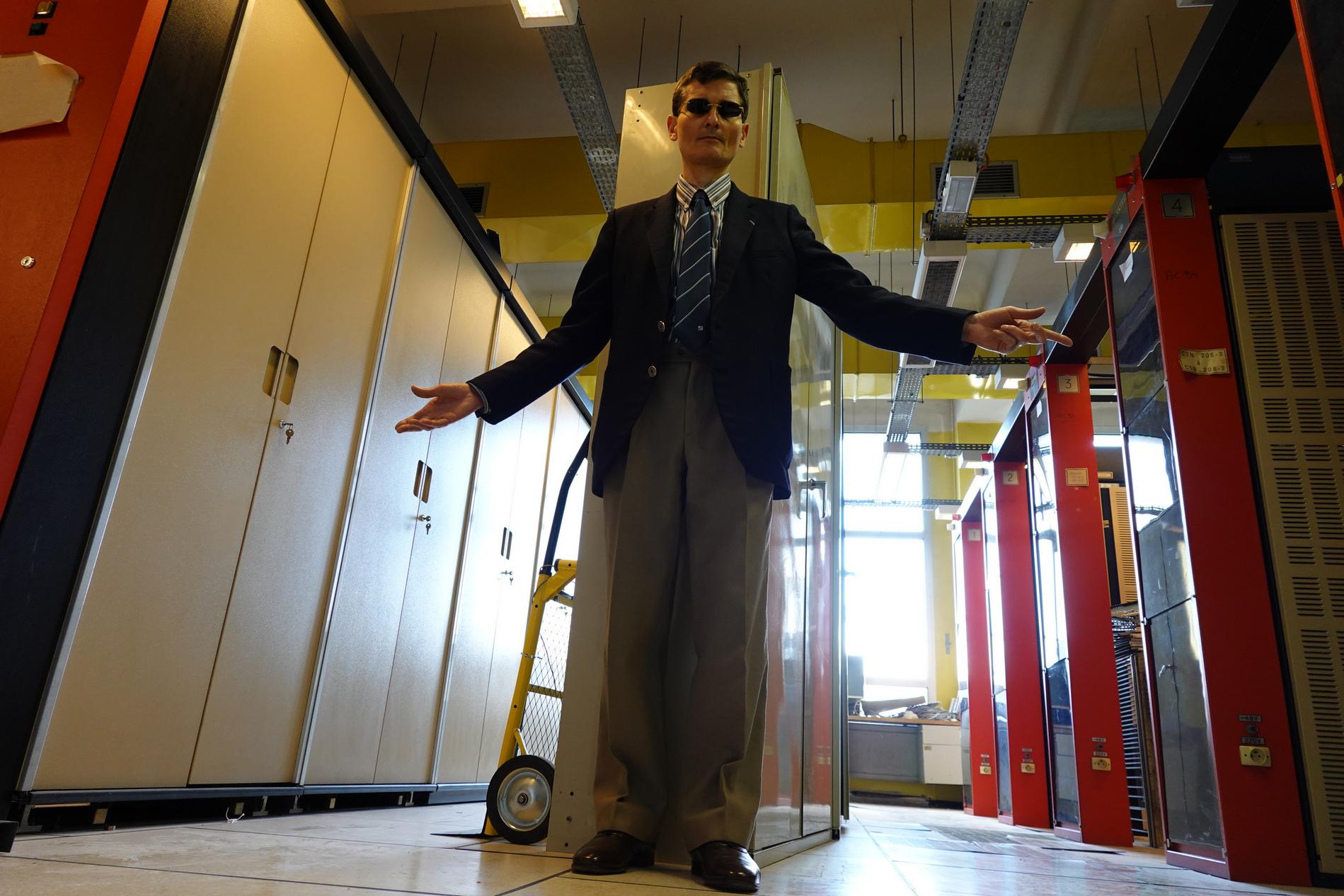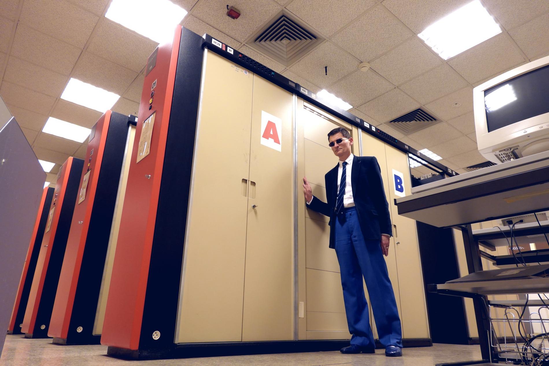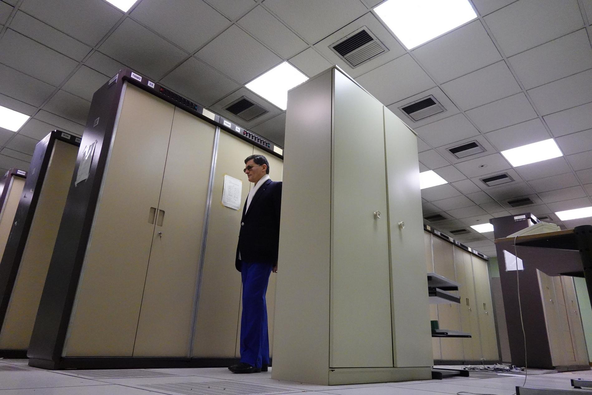 Ci-dessus : le soir de l'arrêt définitif de l'ultime Commutateur MT25 de France - AULNAY A3 (BB03), à Aulnay-sous-Bois (93), moi-même présent avec une partie de l'équipe, devant les Calculateurs.