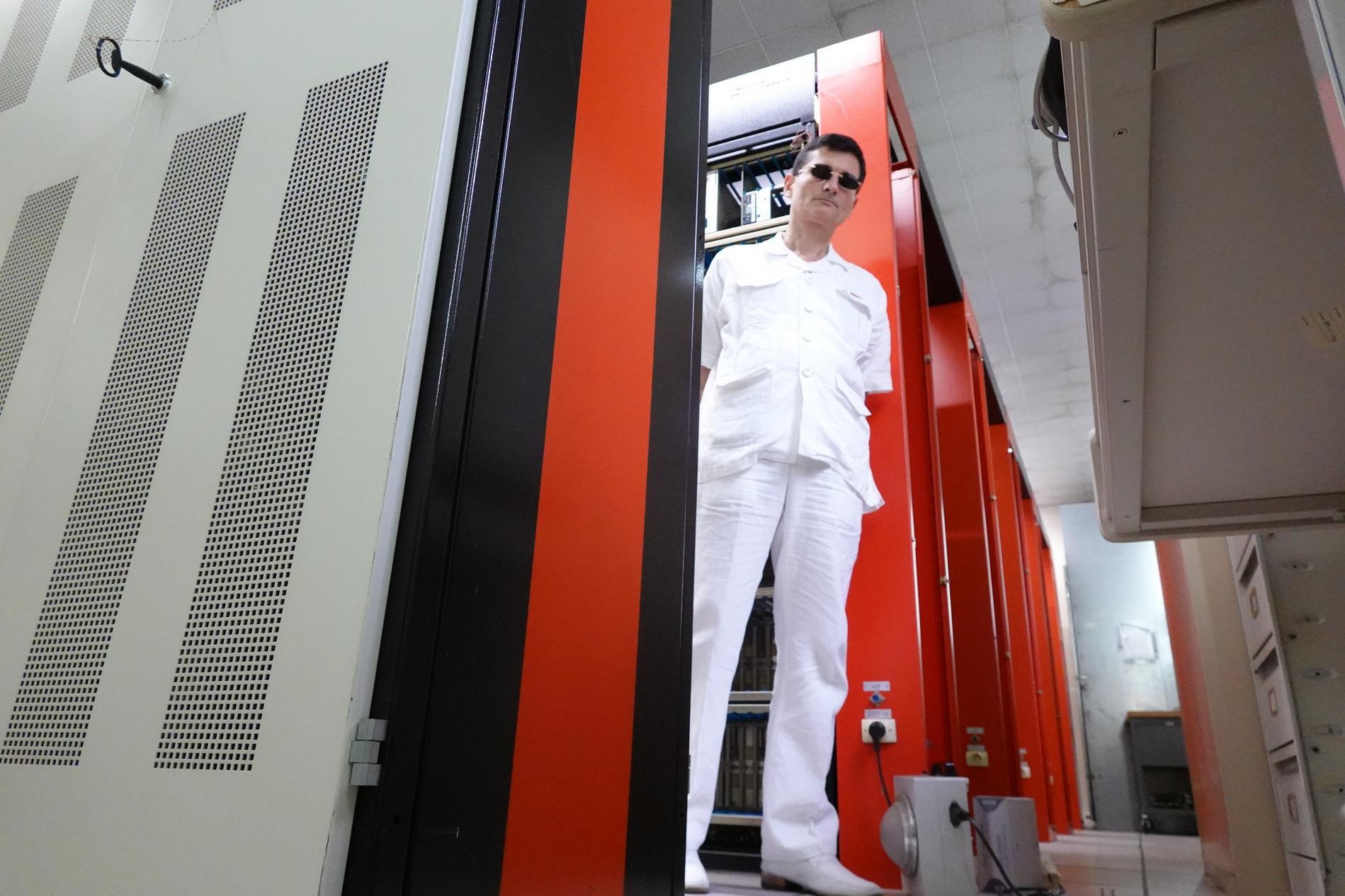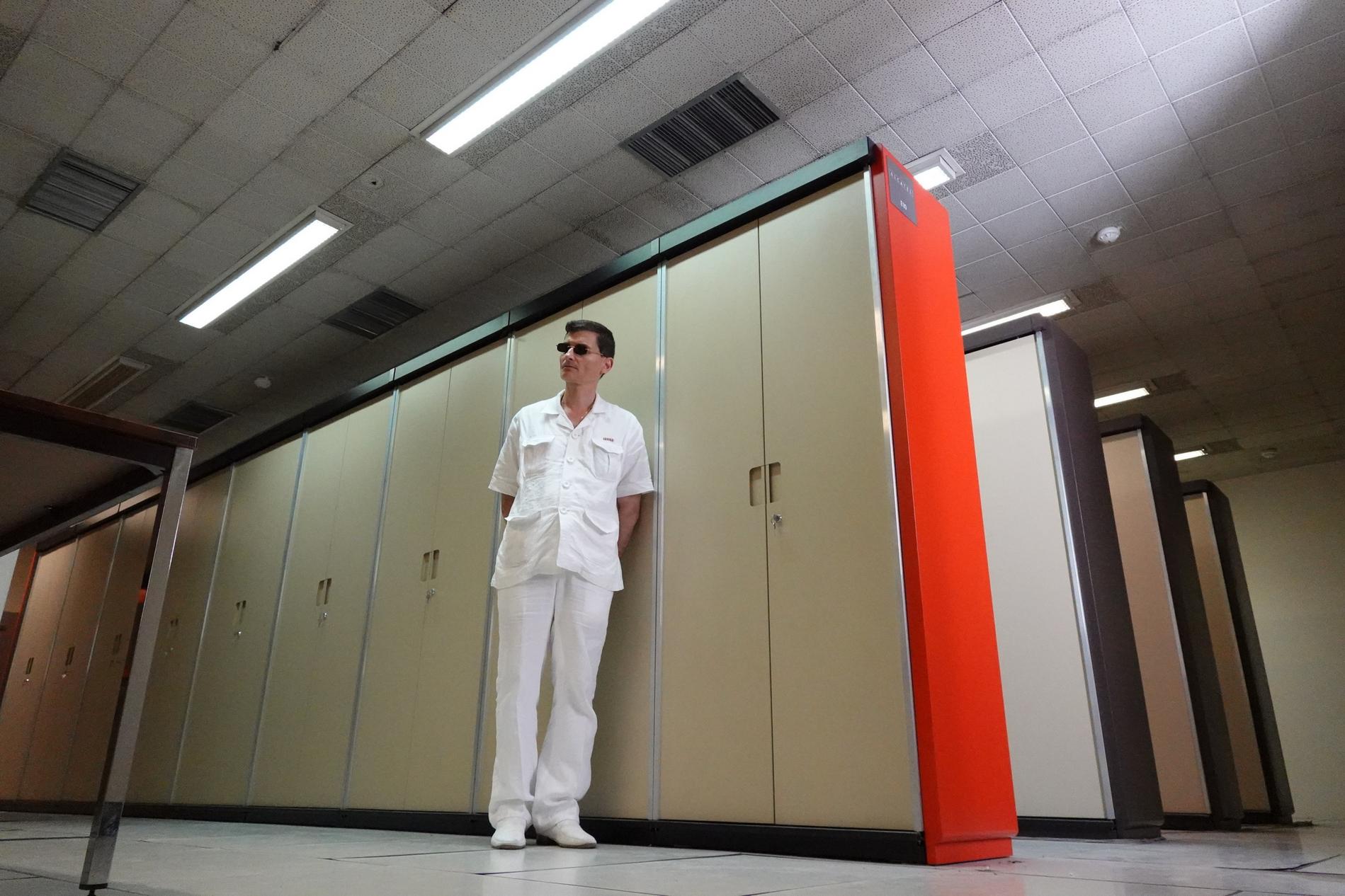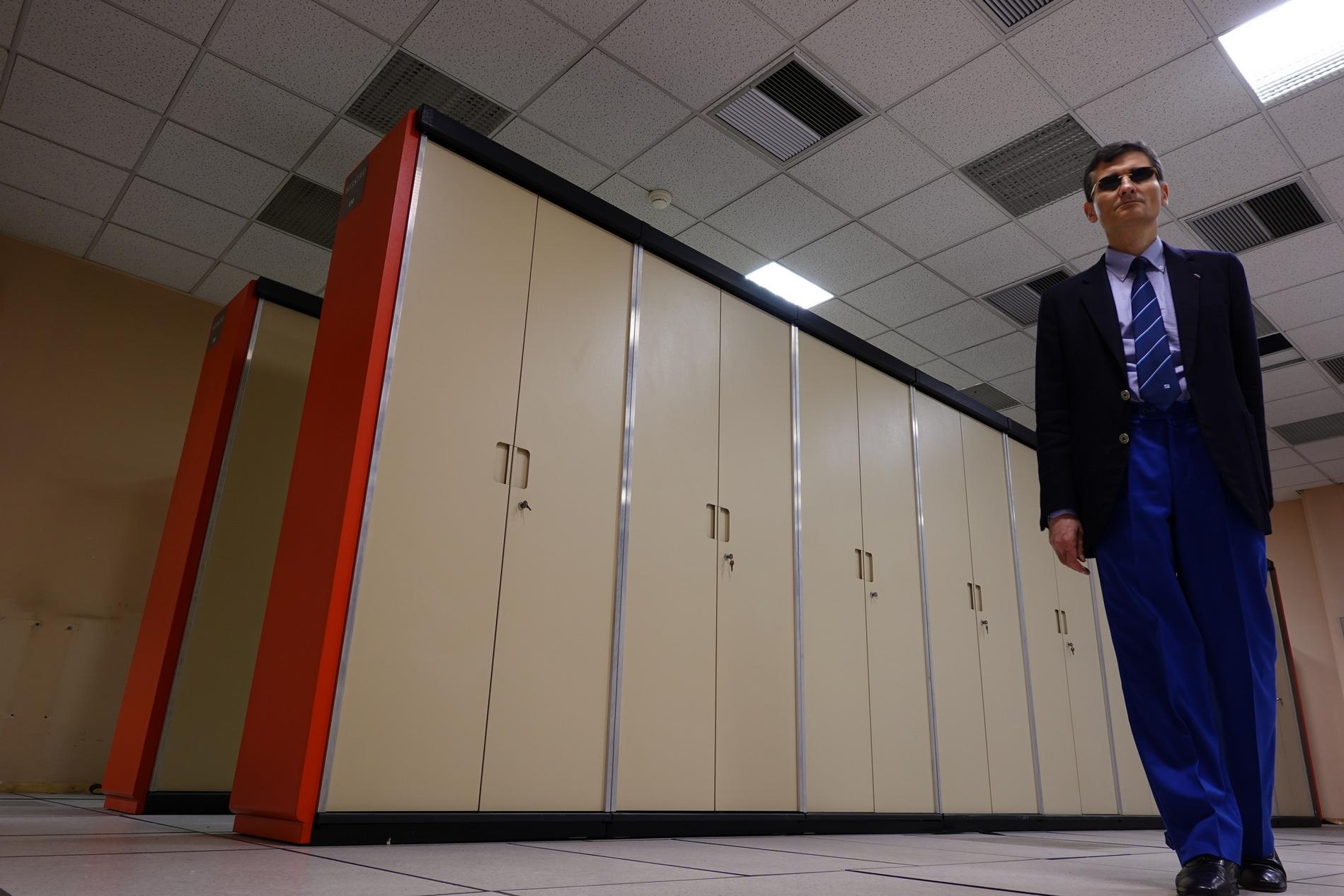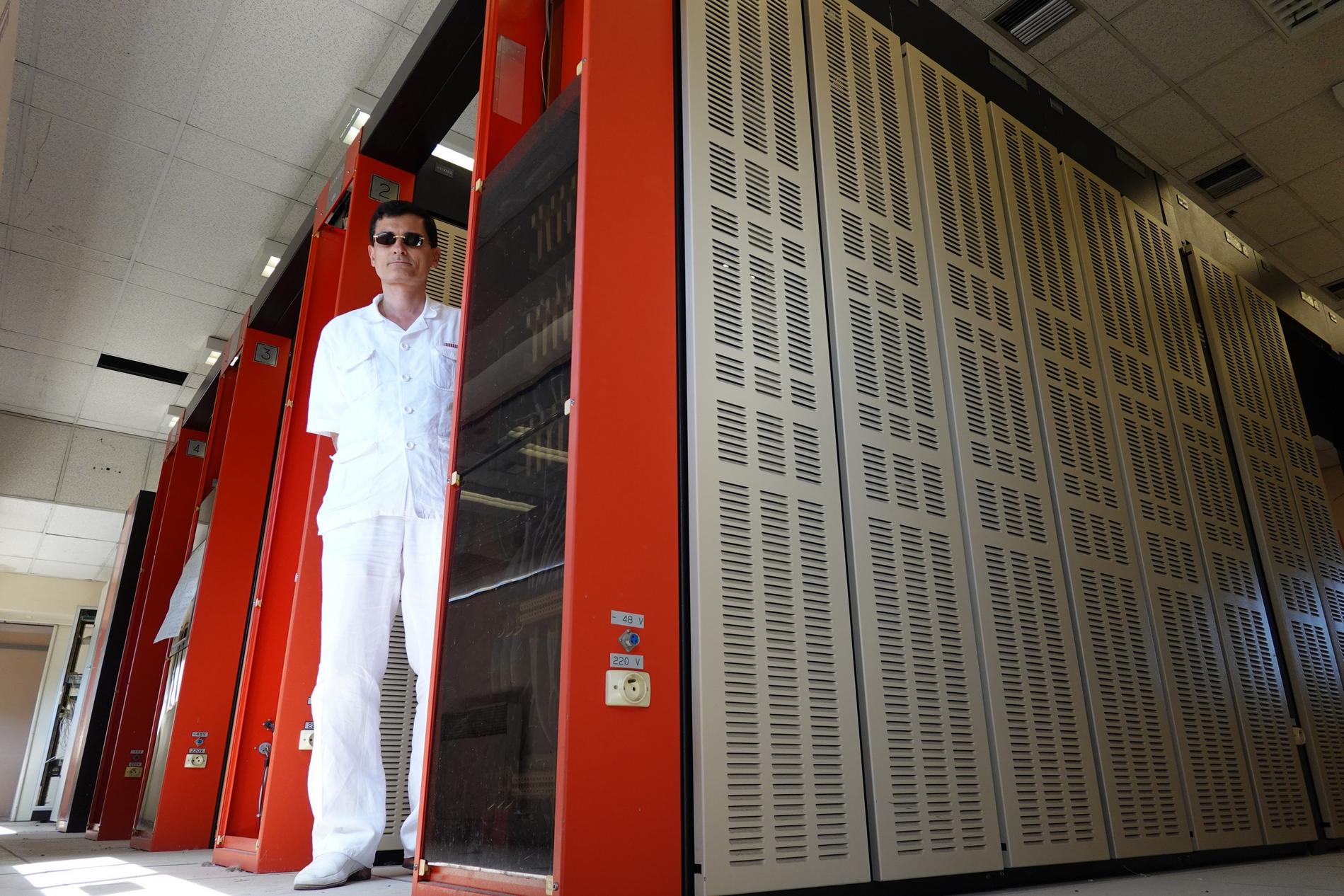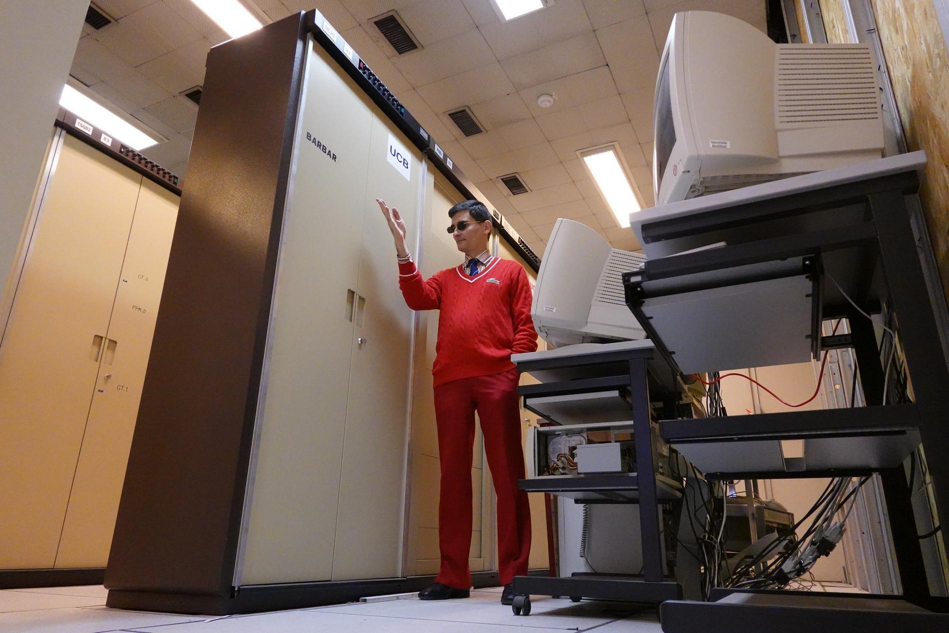 Ci-dessus : le soir de l'arrêt définitif de l'ultime Commutateur MT25 de France - AULNAY A3 (BB03), à Aulnay-sous-Bois (93), moi-même présent avec une partie de l'équipe, devant les Calculateurs.