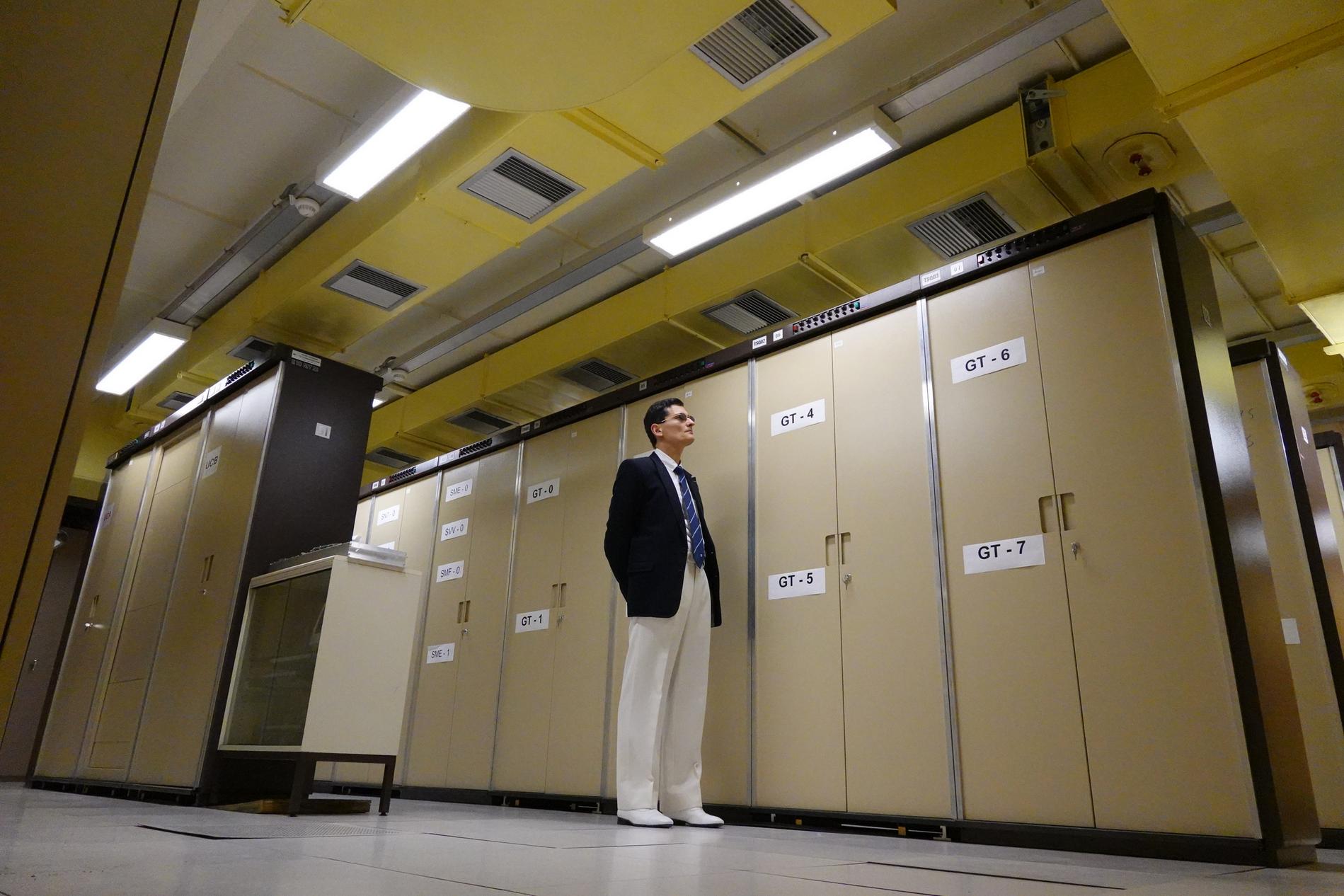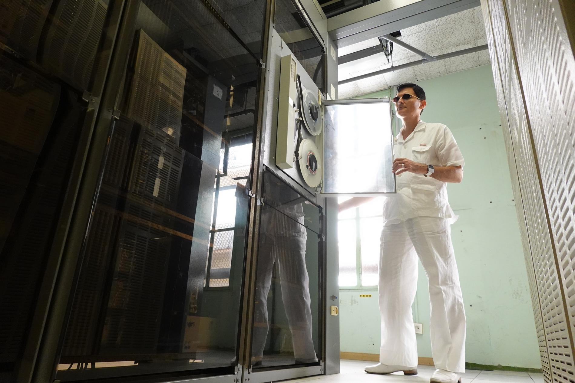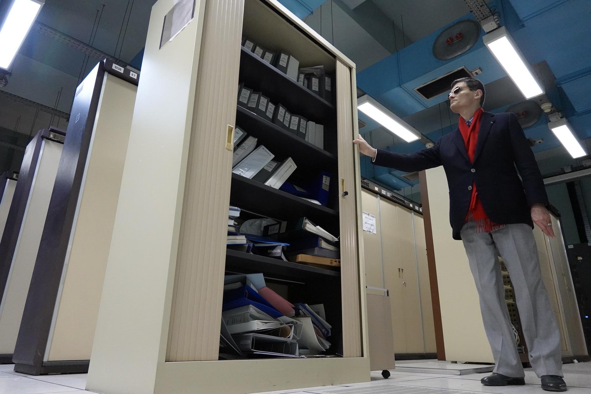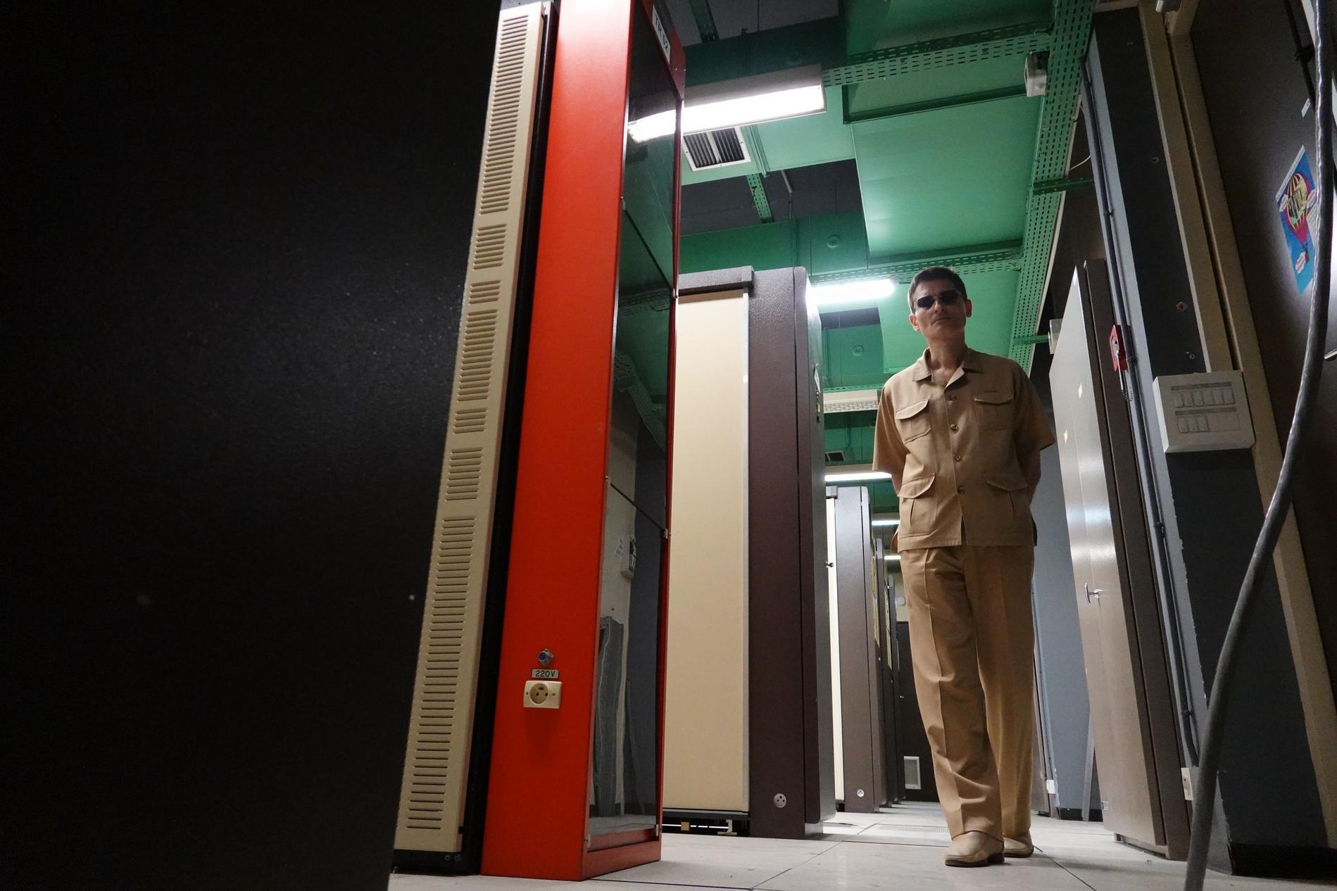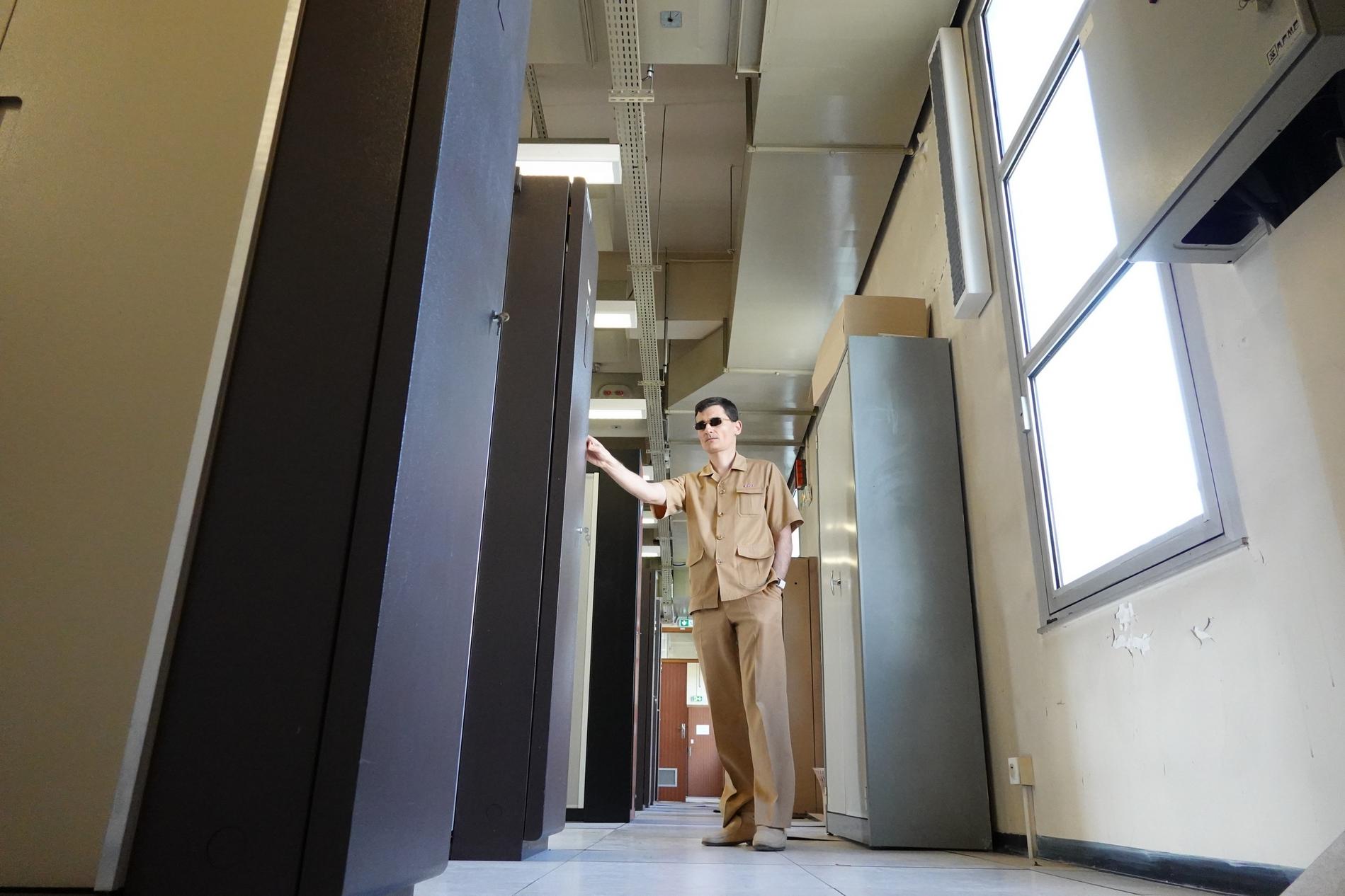 Ci-dessus : le soir de l'arrêt définitif de l'ultime Commutateur MT25 de France - AULNAY A3 (BB03), à Aulnay-sous-Bois (93), moi-même présent avec une partie de l'équipe, devant les Calculateurs.