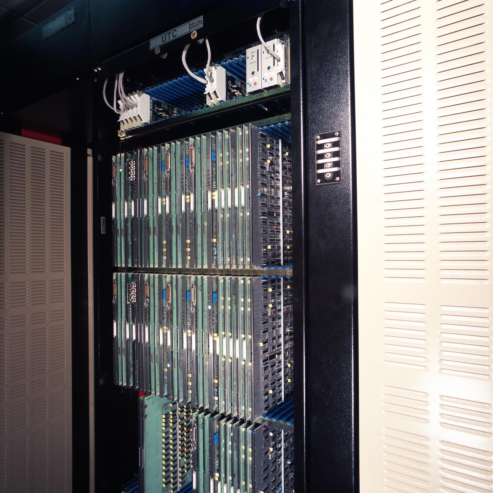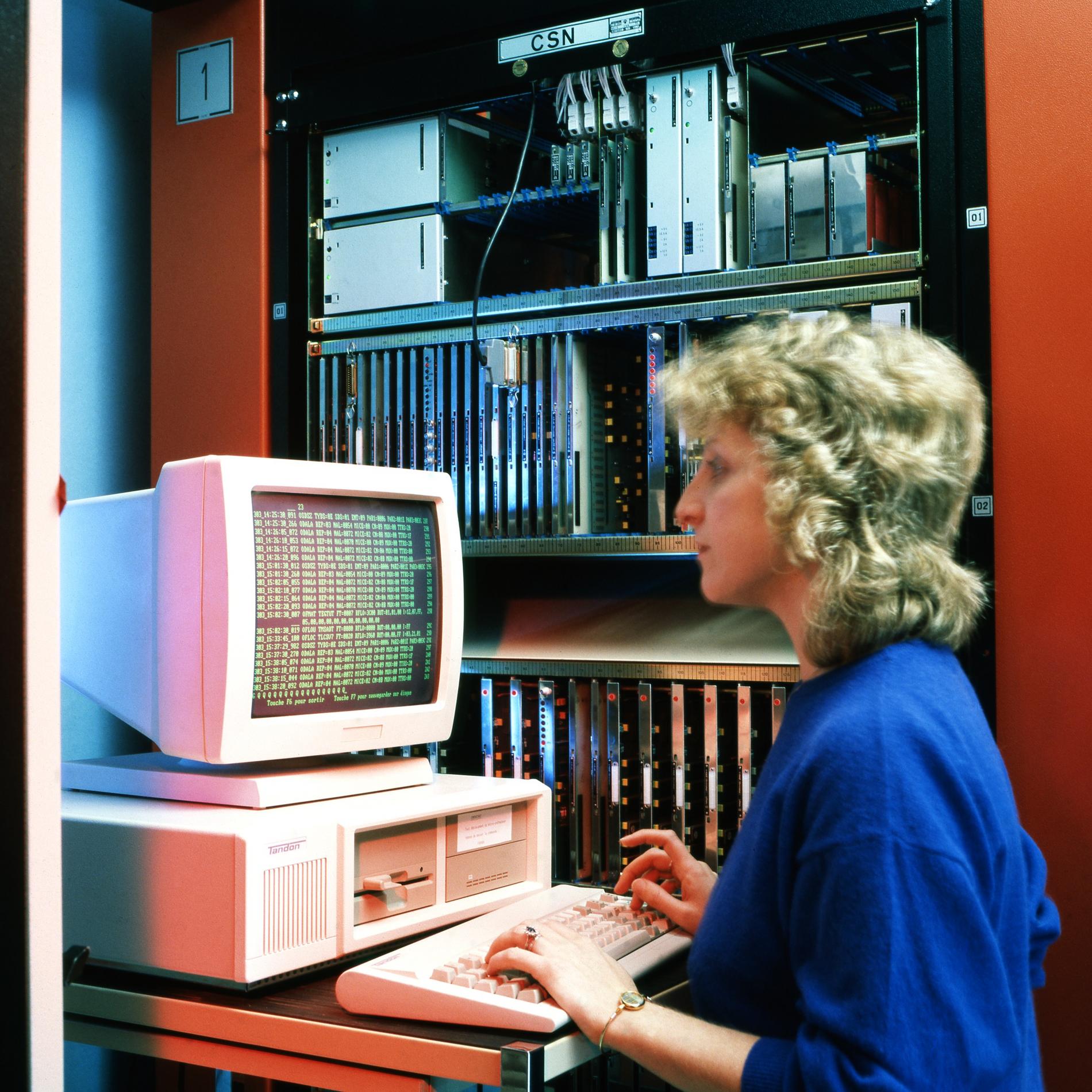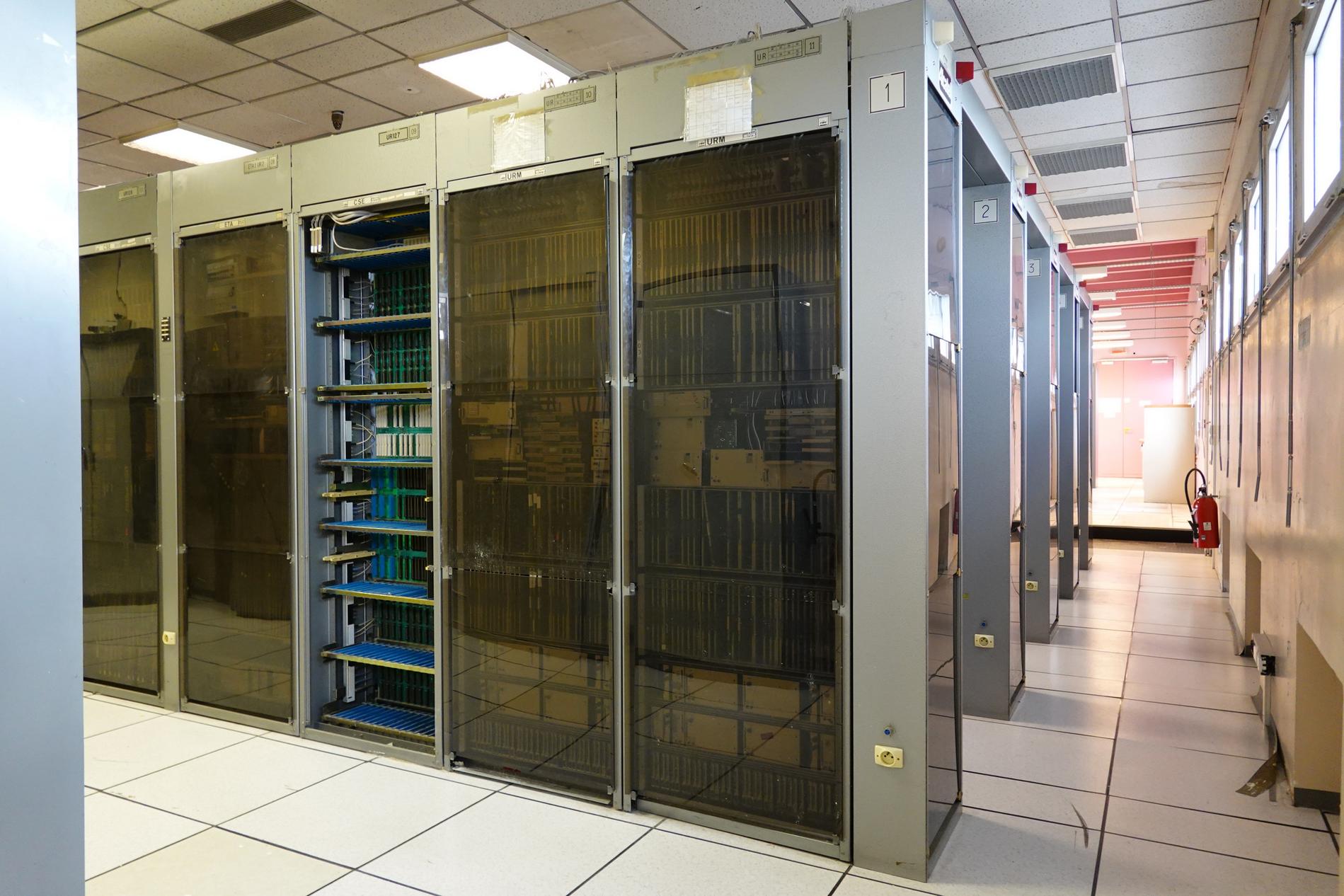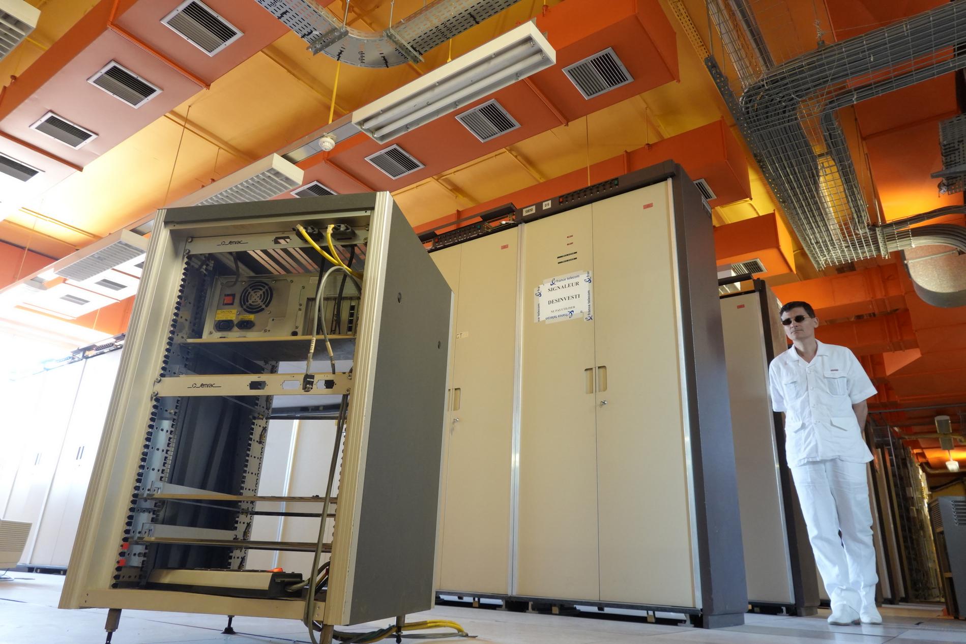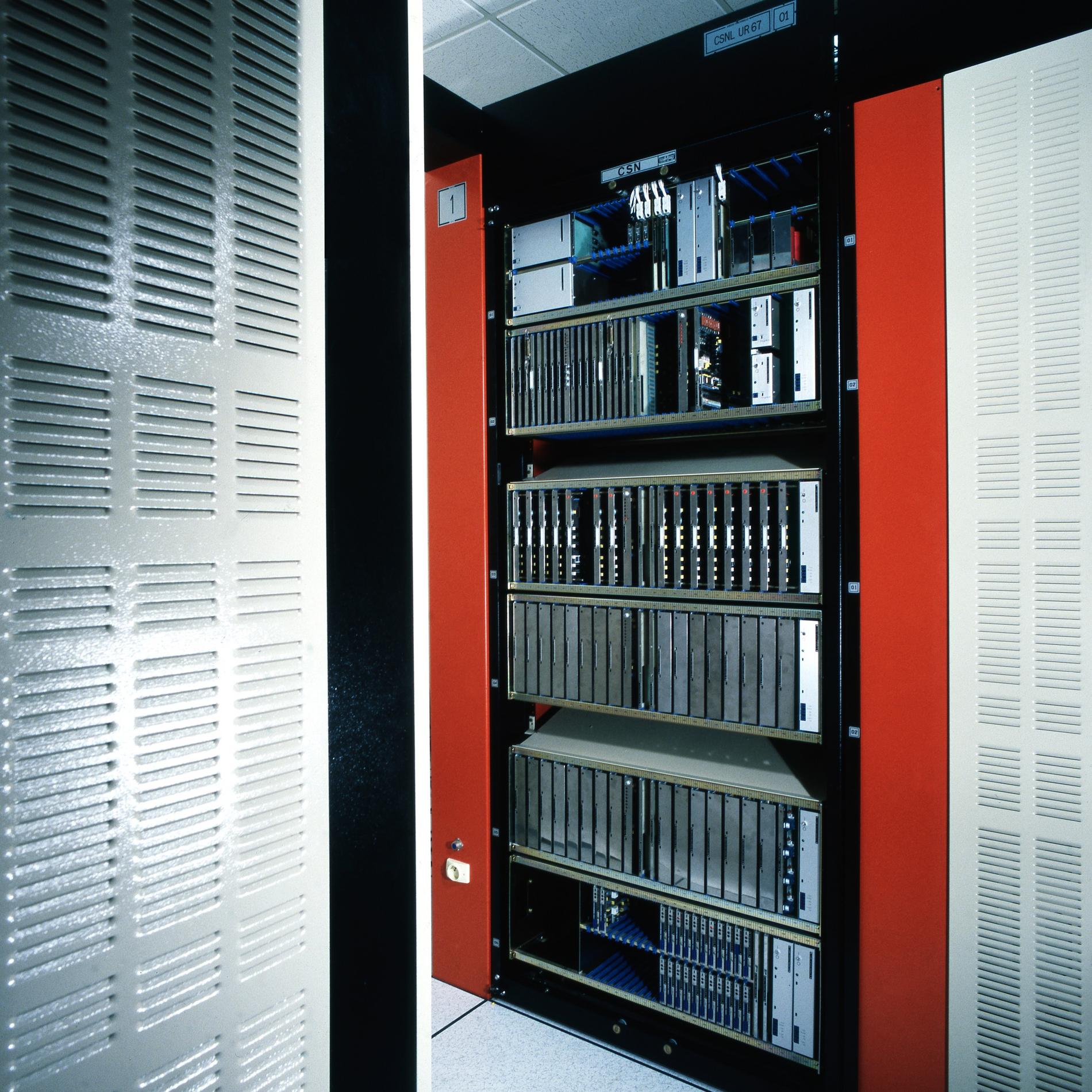 Ci-dessus : vue des tous premiers CSN (Centre Satellite Numérique) mis en service ; nous reconnaissons la présentation en baies ne comportant pas de portes. (en lieu et place, des panneaux en plexiglas qui sont absents sur l'image.)