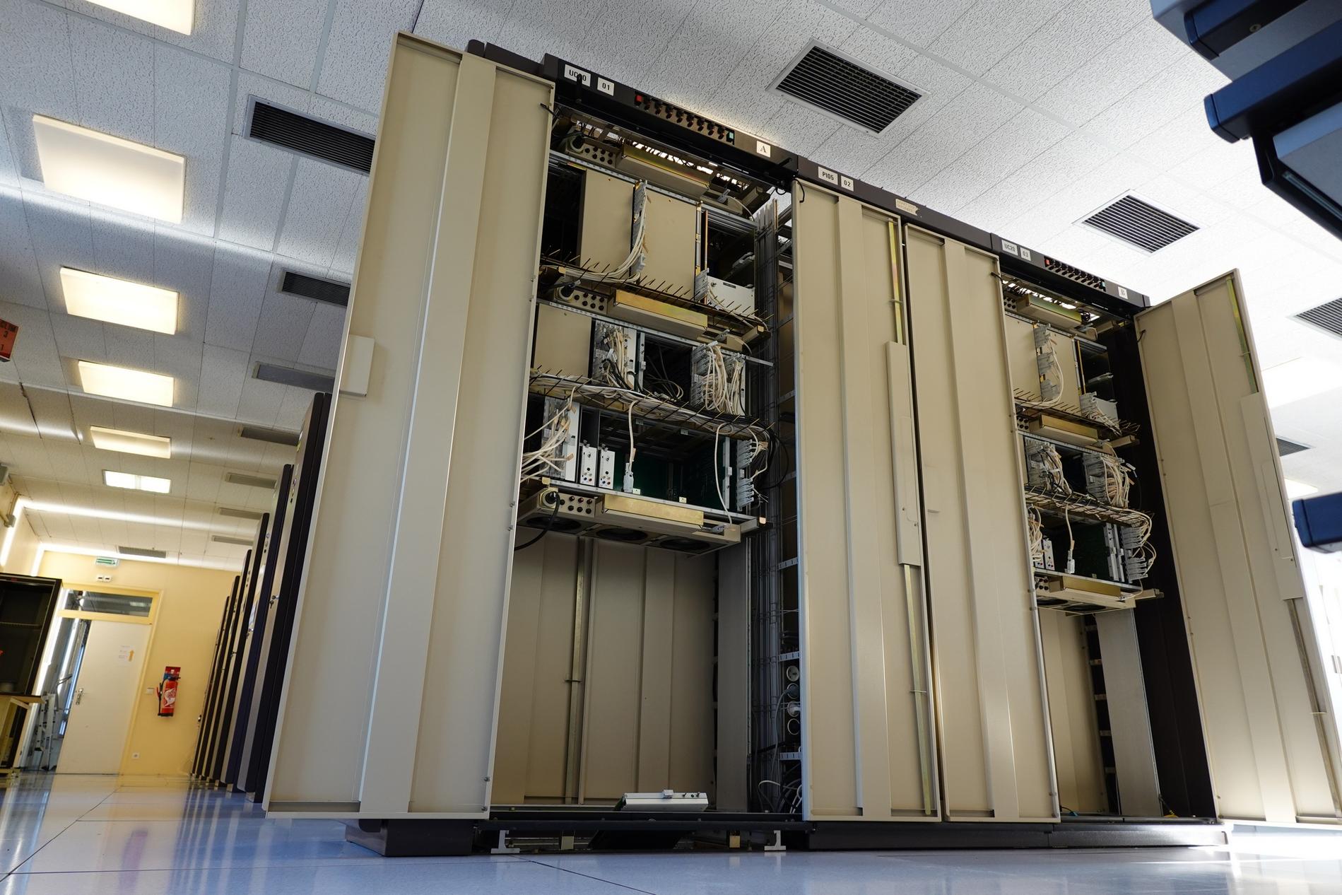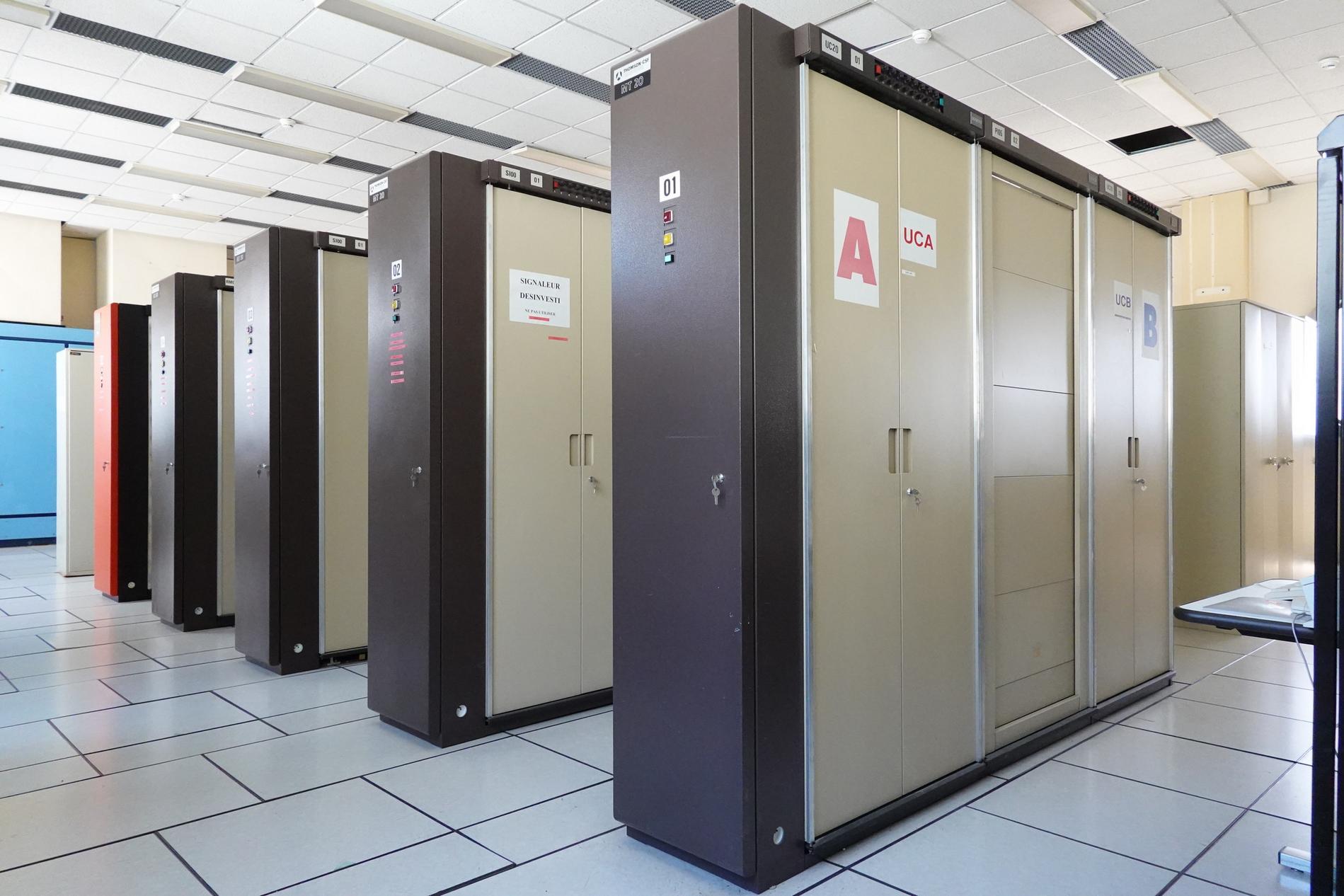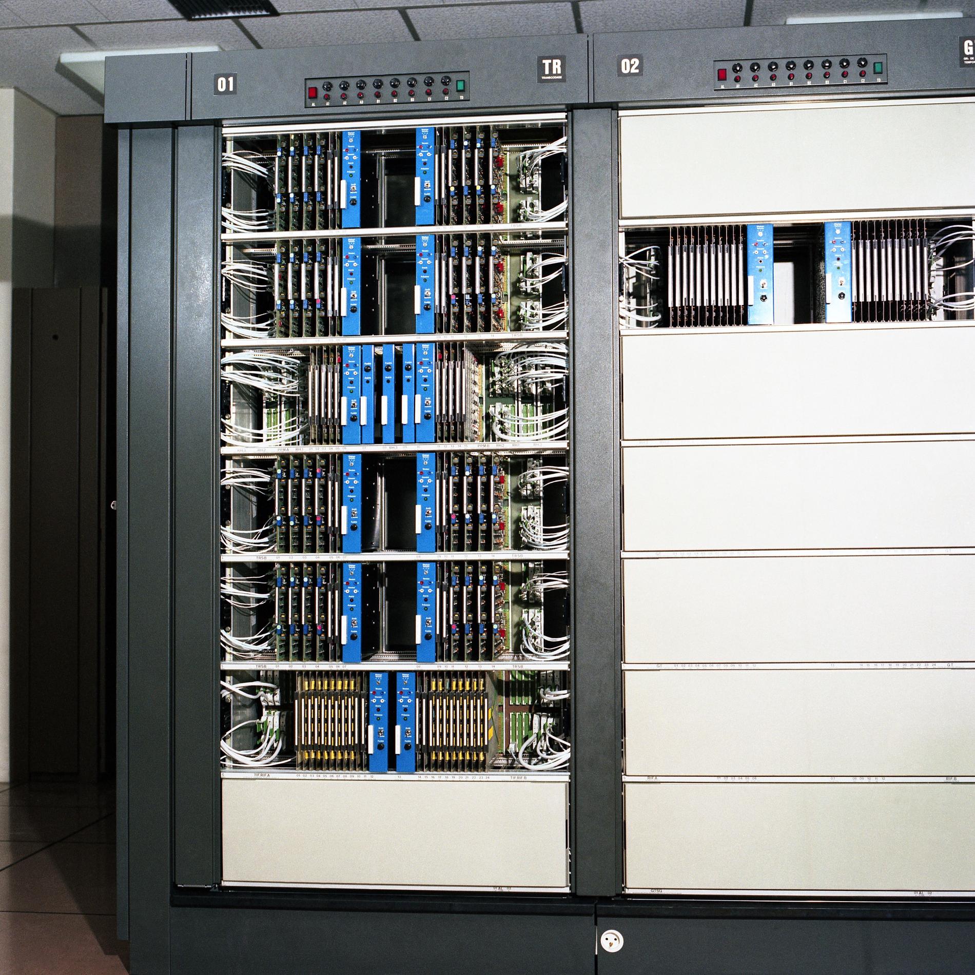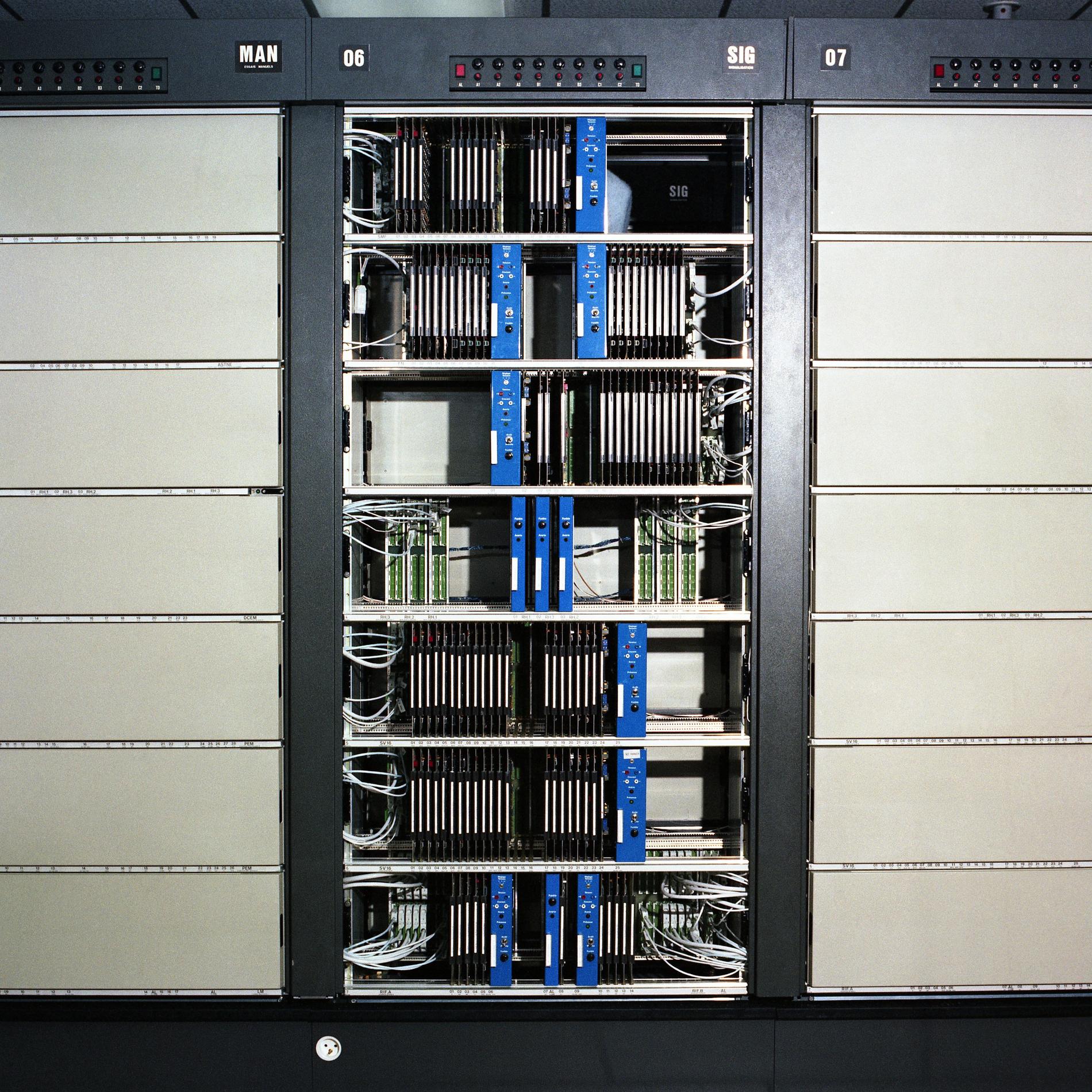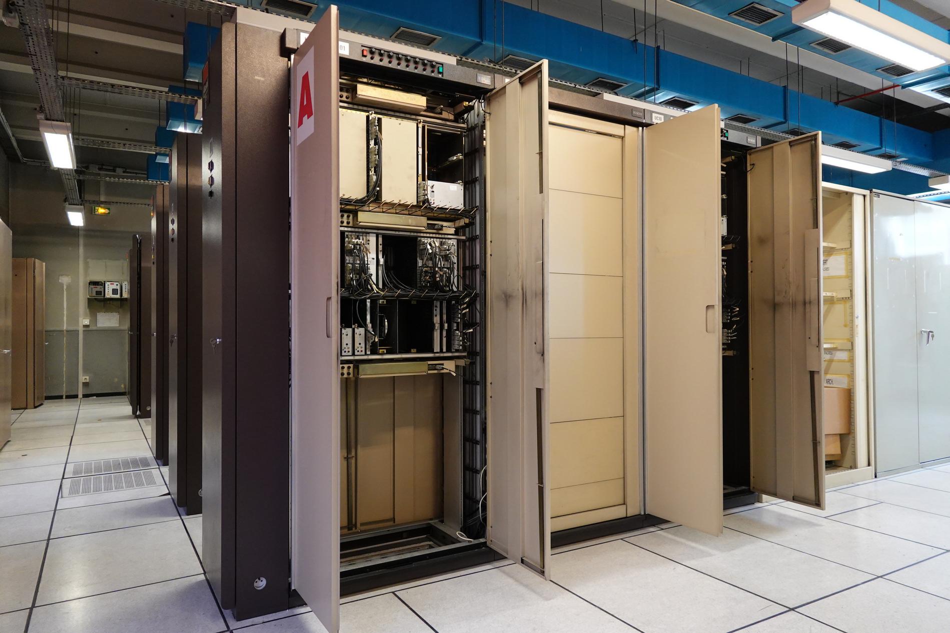 Ci-dessus : vue des tous premiers CSN (Centre Satellite Numérique) mis en service ; nous reconnaissons la présentation en baies ne comportant pas de portes. (en lieu et place, des panneaux en plexiglas qui sont absents sur l'image.)