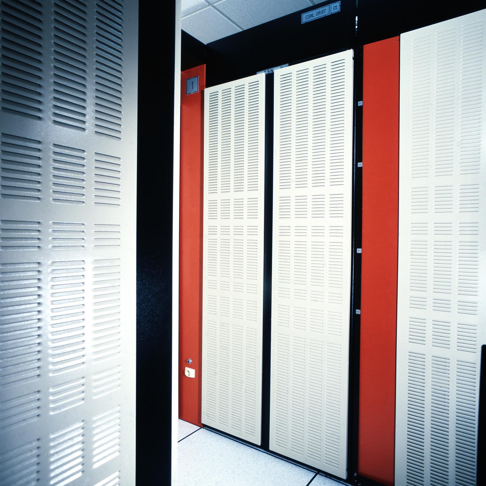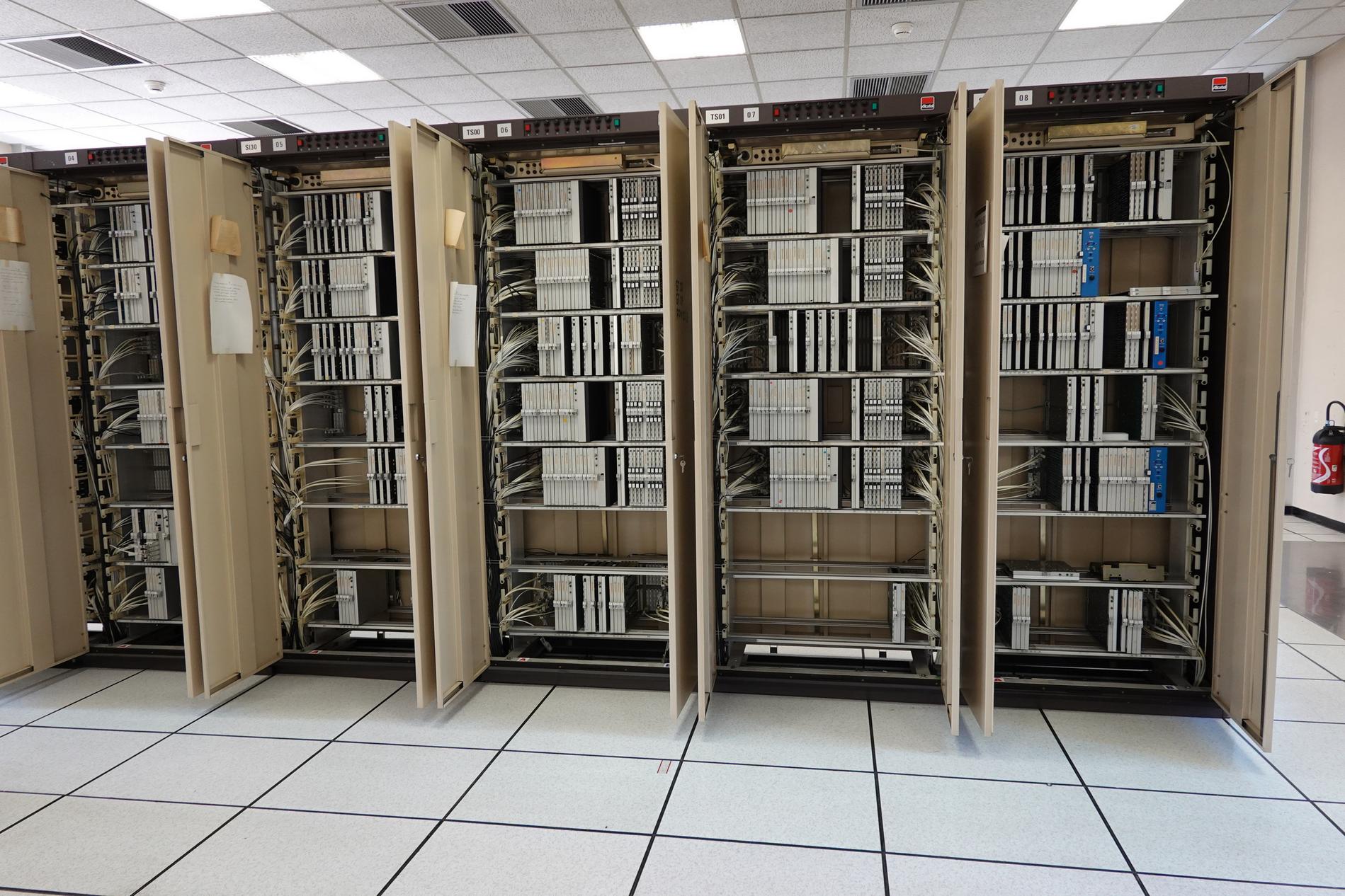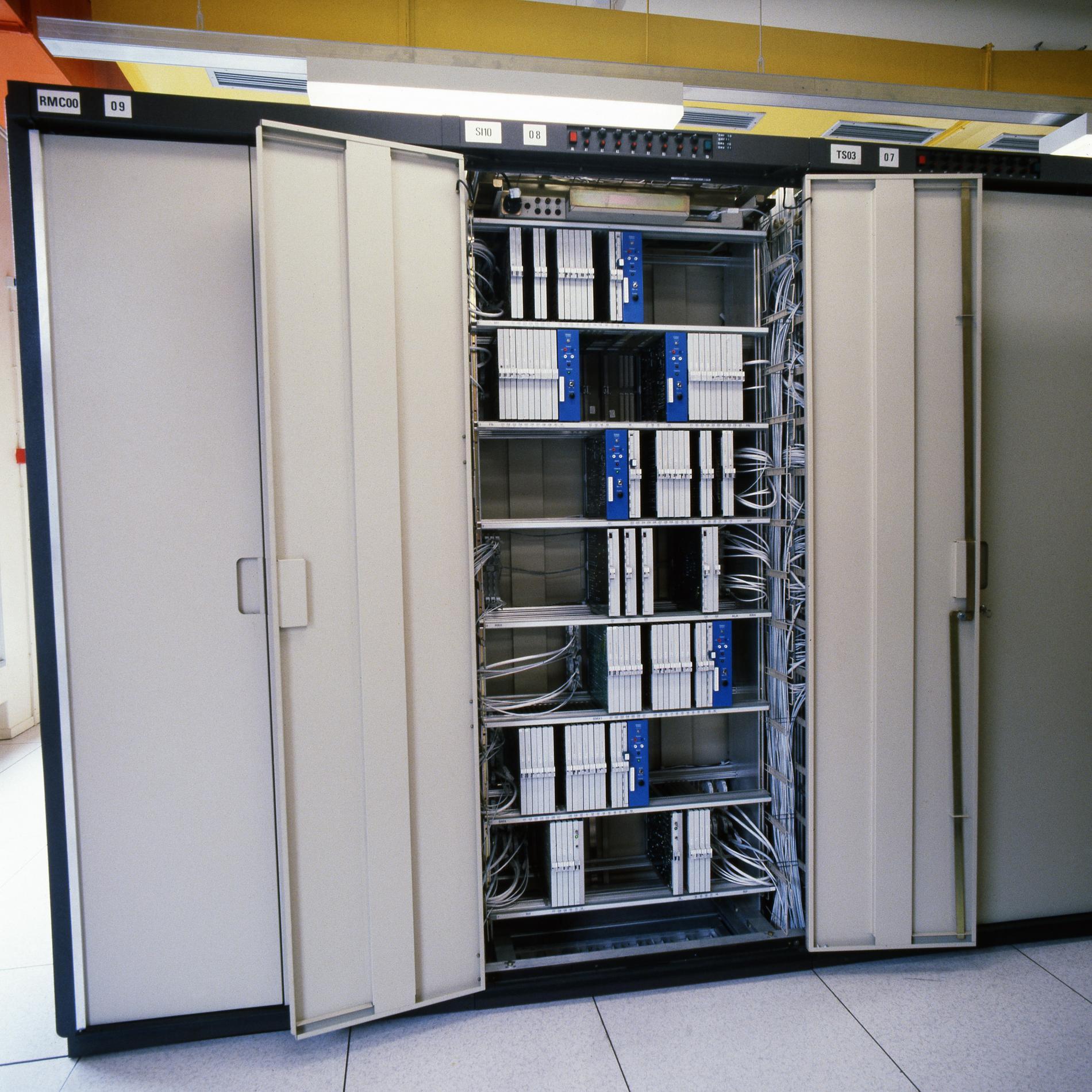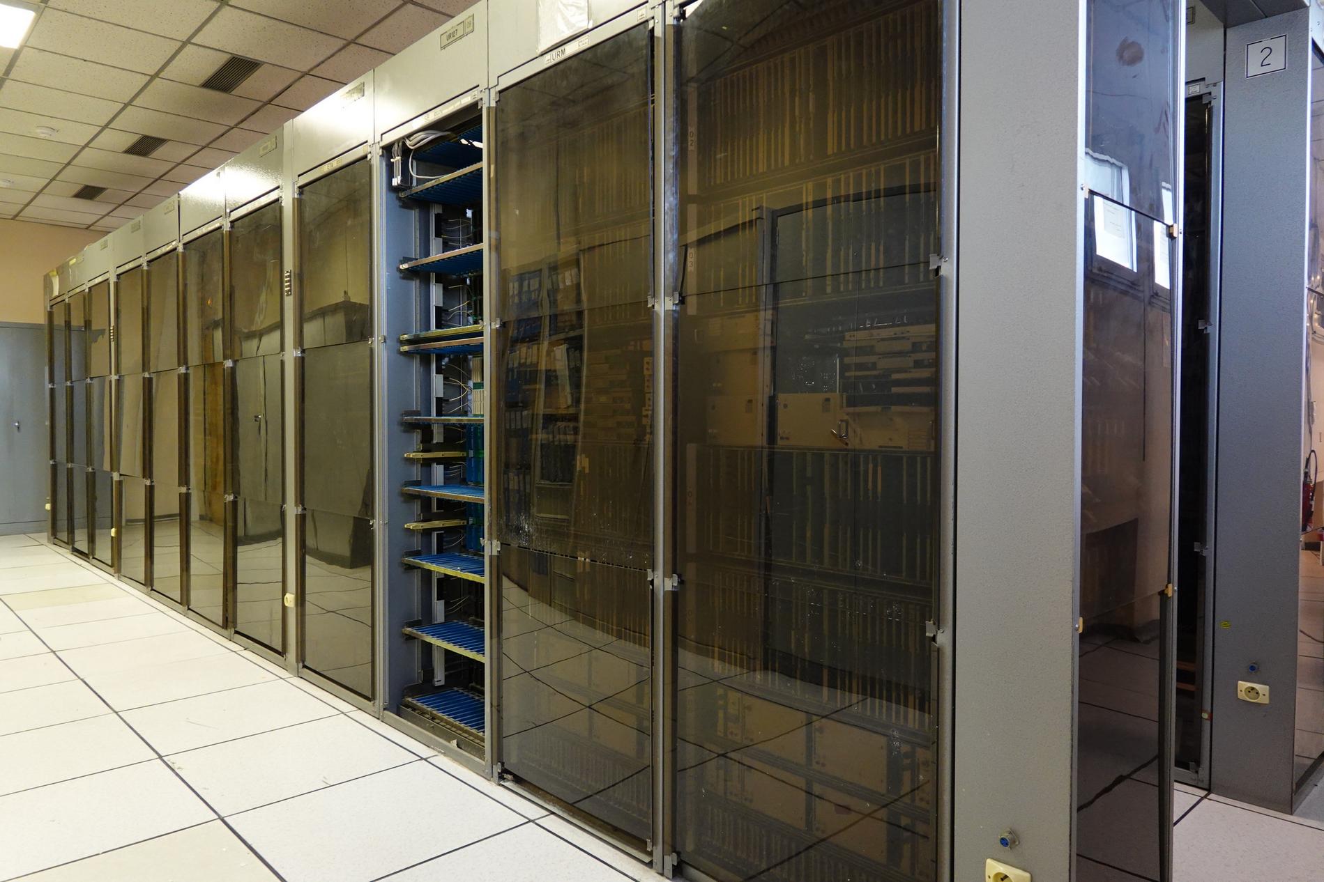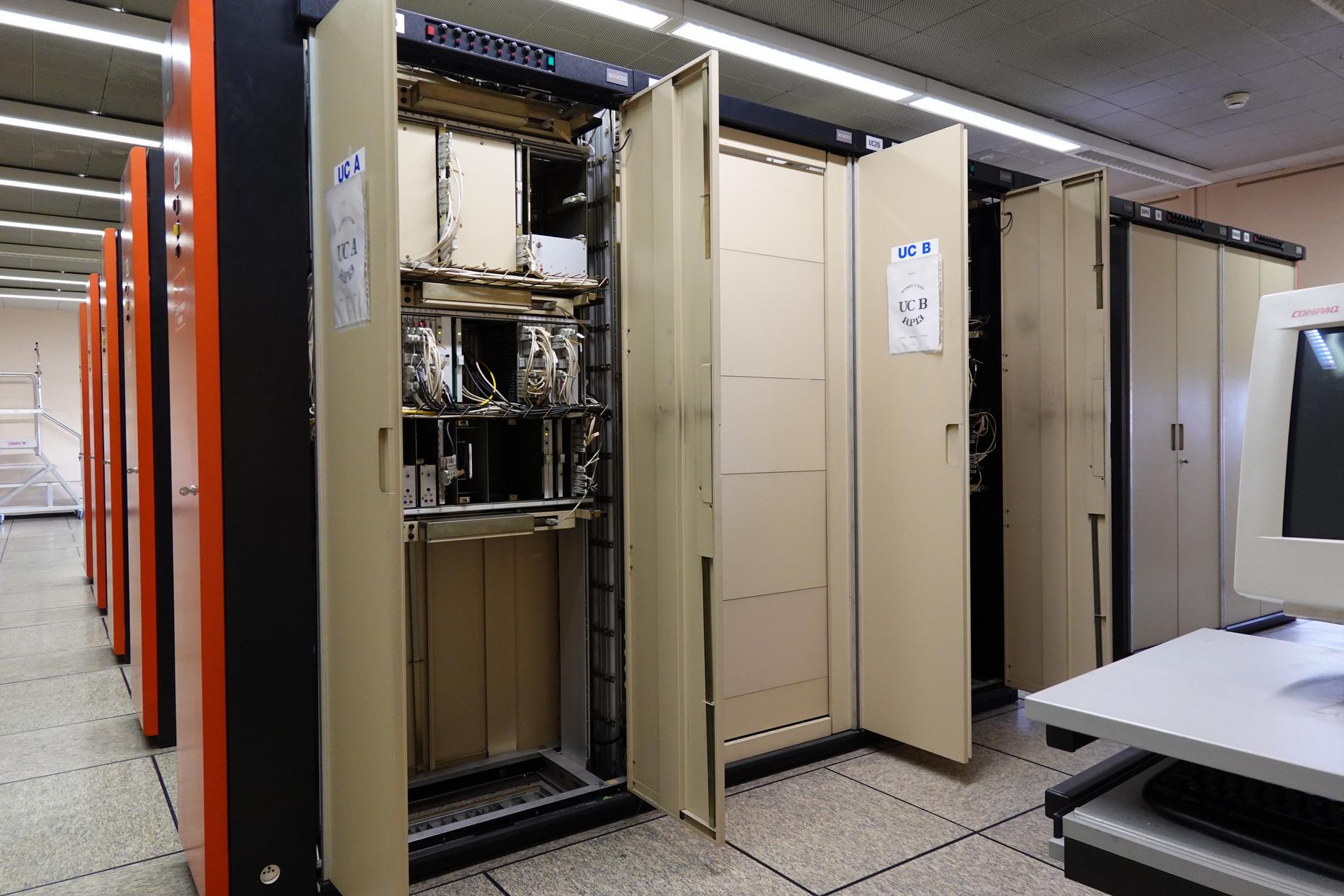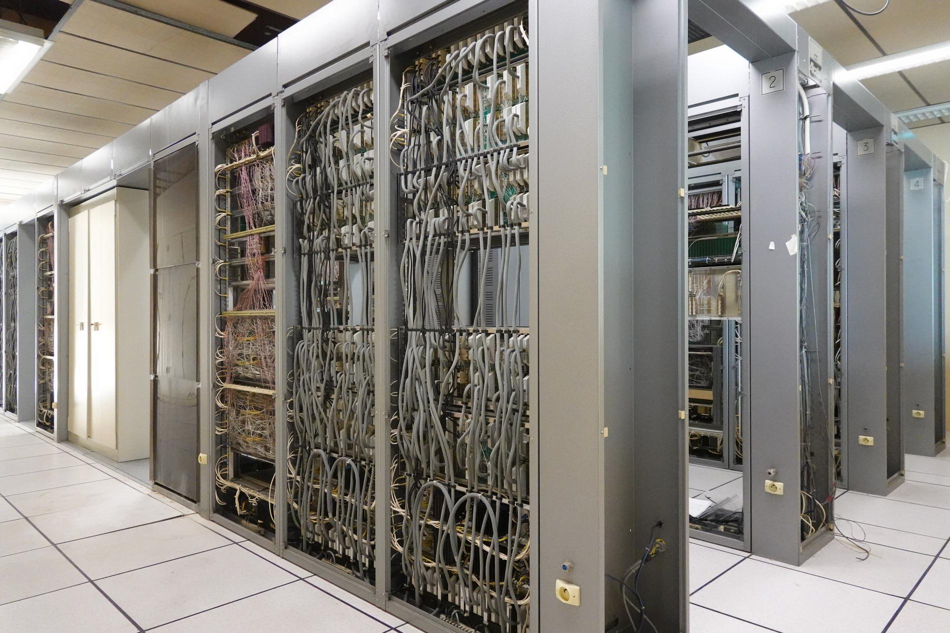 Ci-dessus : vue des tous premiers CSN (Centre Satellite Numérique) mis en service ; nous reconnaissons la présentation en baies ne comportant pas de portes. (en lieu et place, des panneaux en plexiglas qui sont absents sur l'image.)