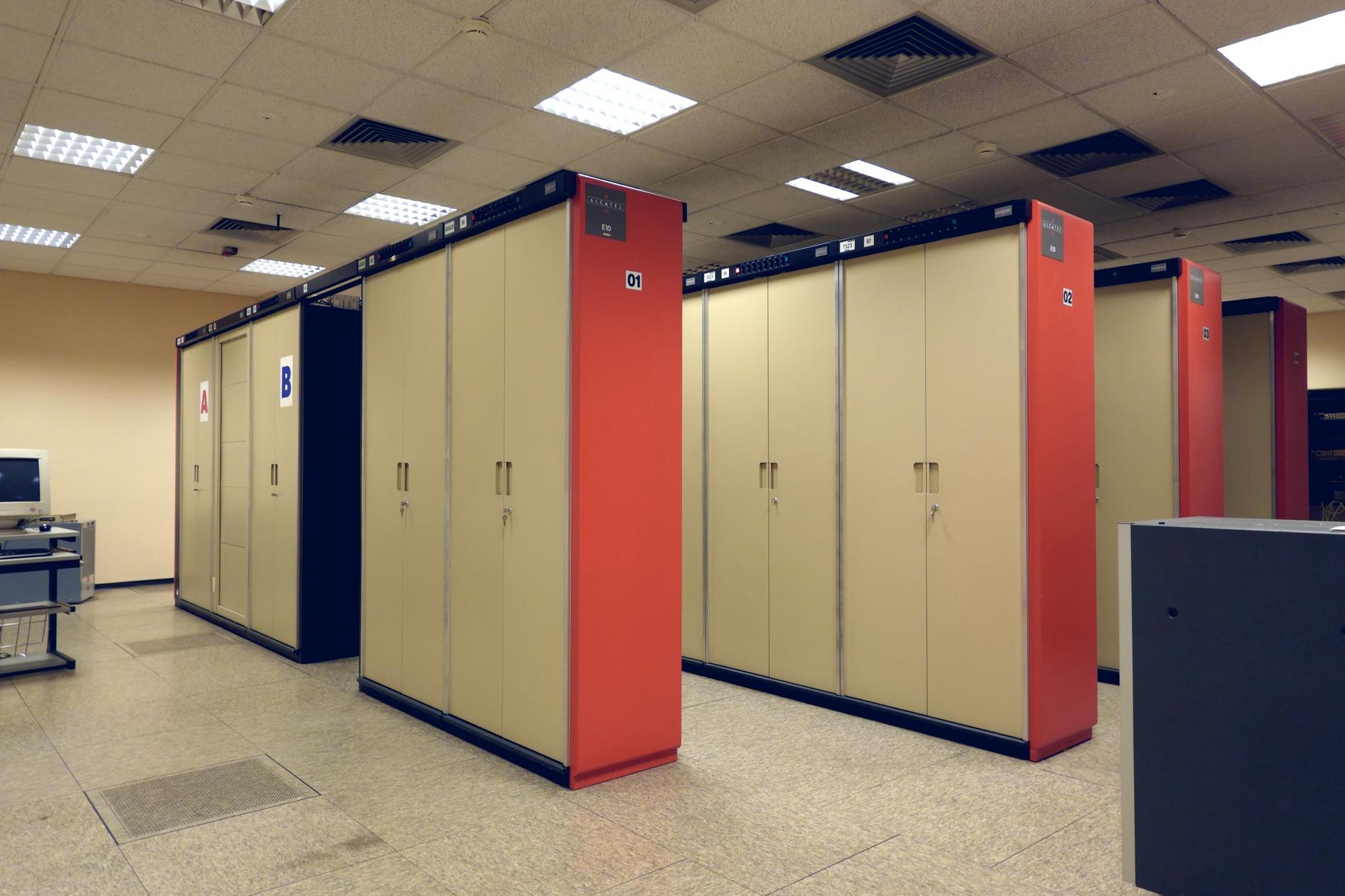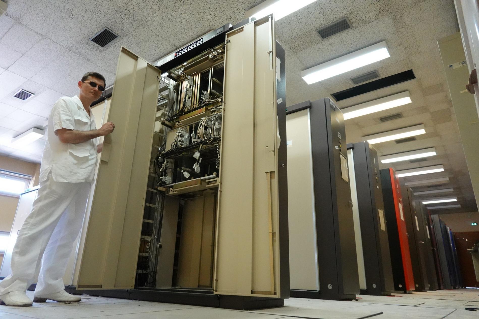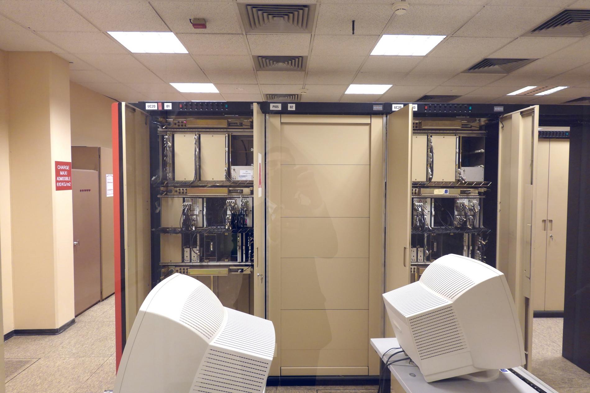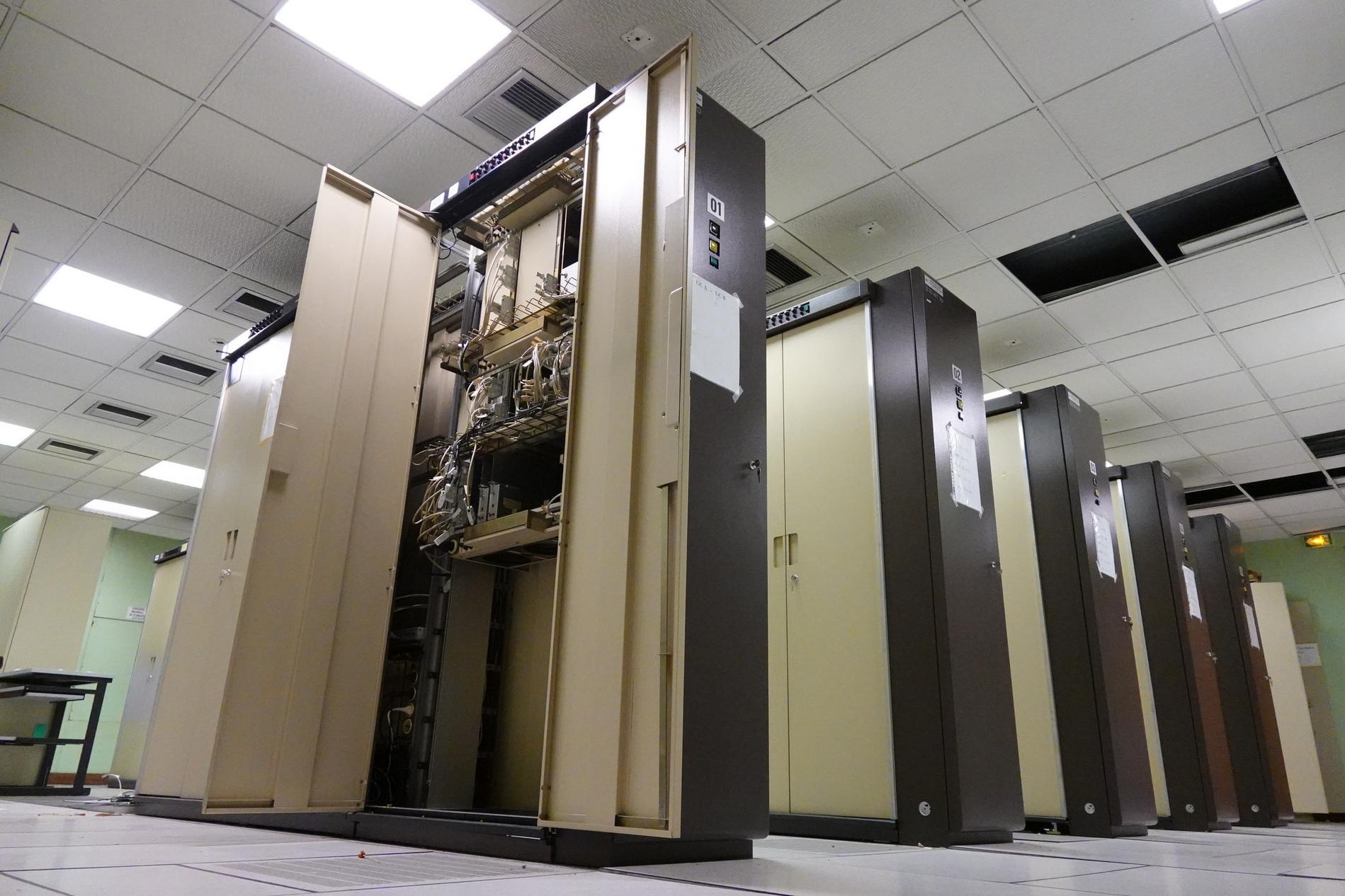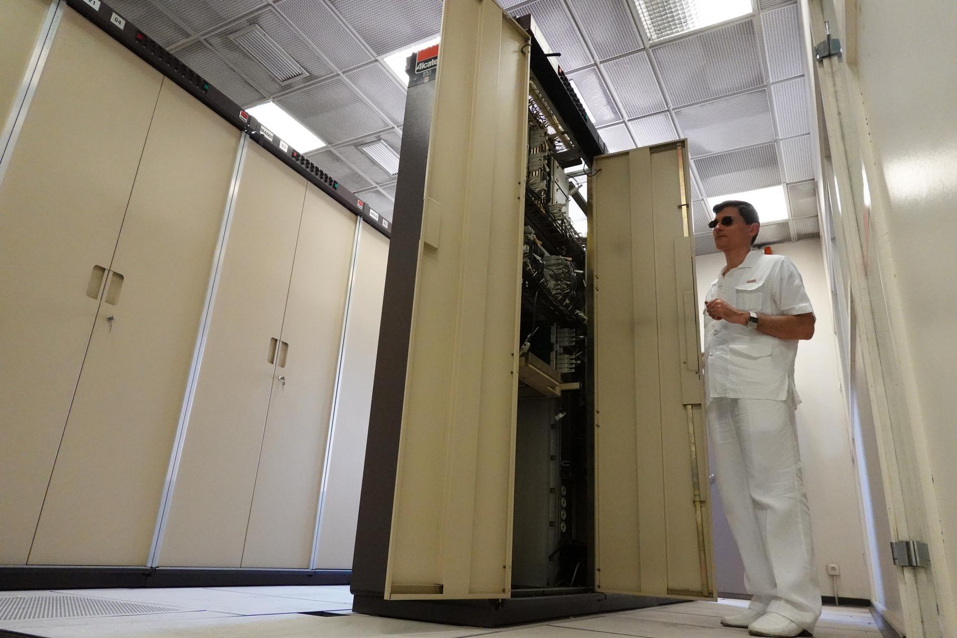 Ci-dessus : vue des tous premiers CSN (Centre Satellite Numérique) mis en service ; nous reconnaissons la présentation en baies ne comportant pas de portes. (en lieu et place, des panneaux en plexiglas qui sont absents sur l'image.)