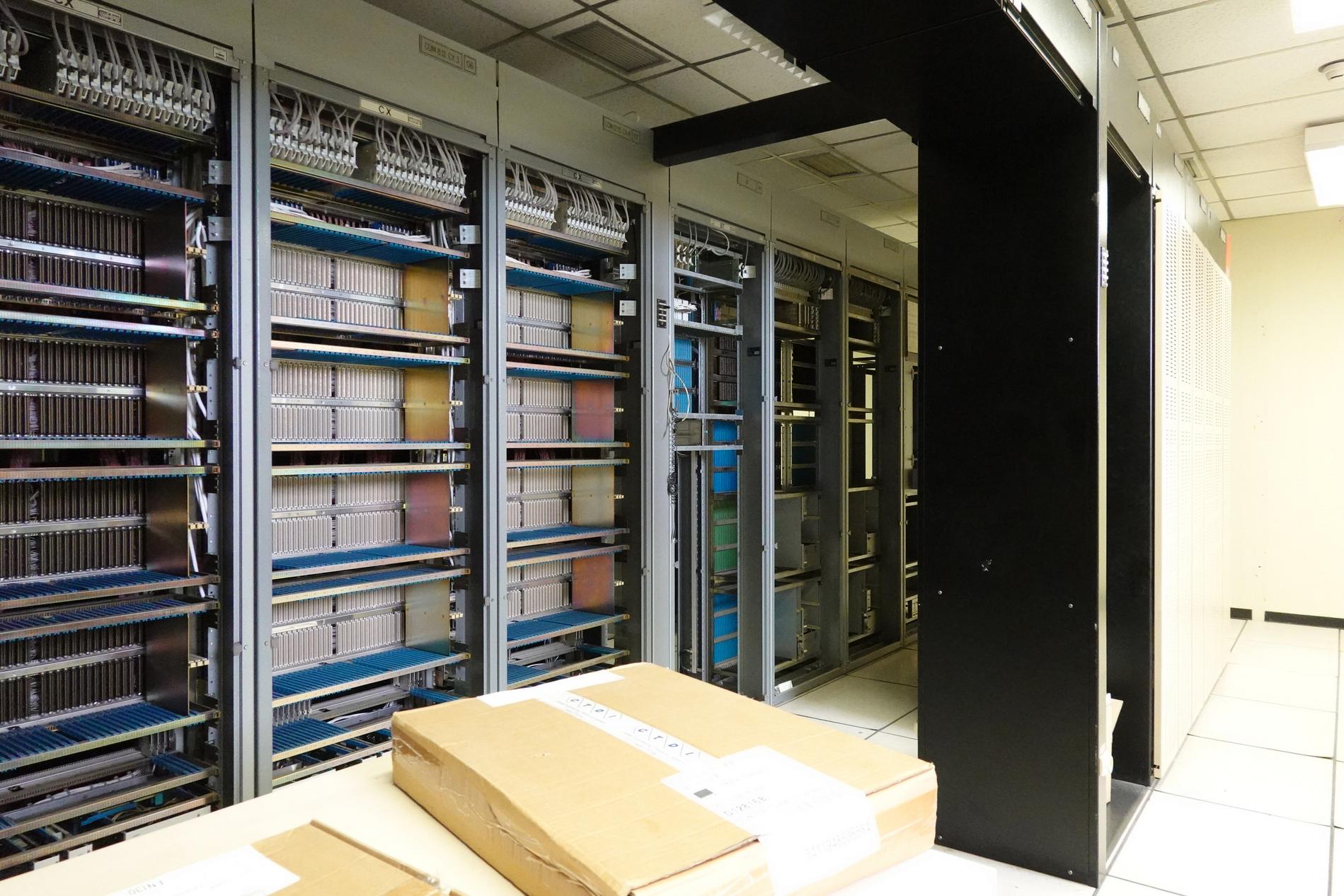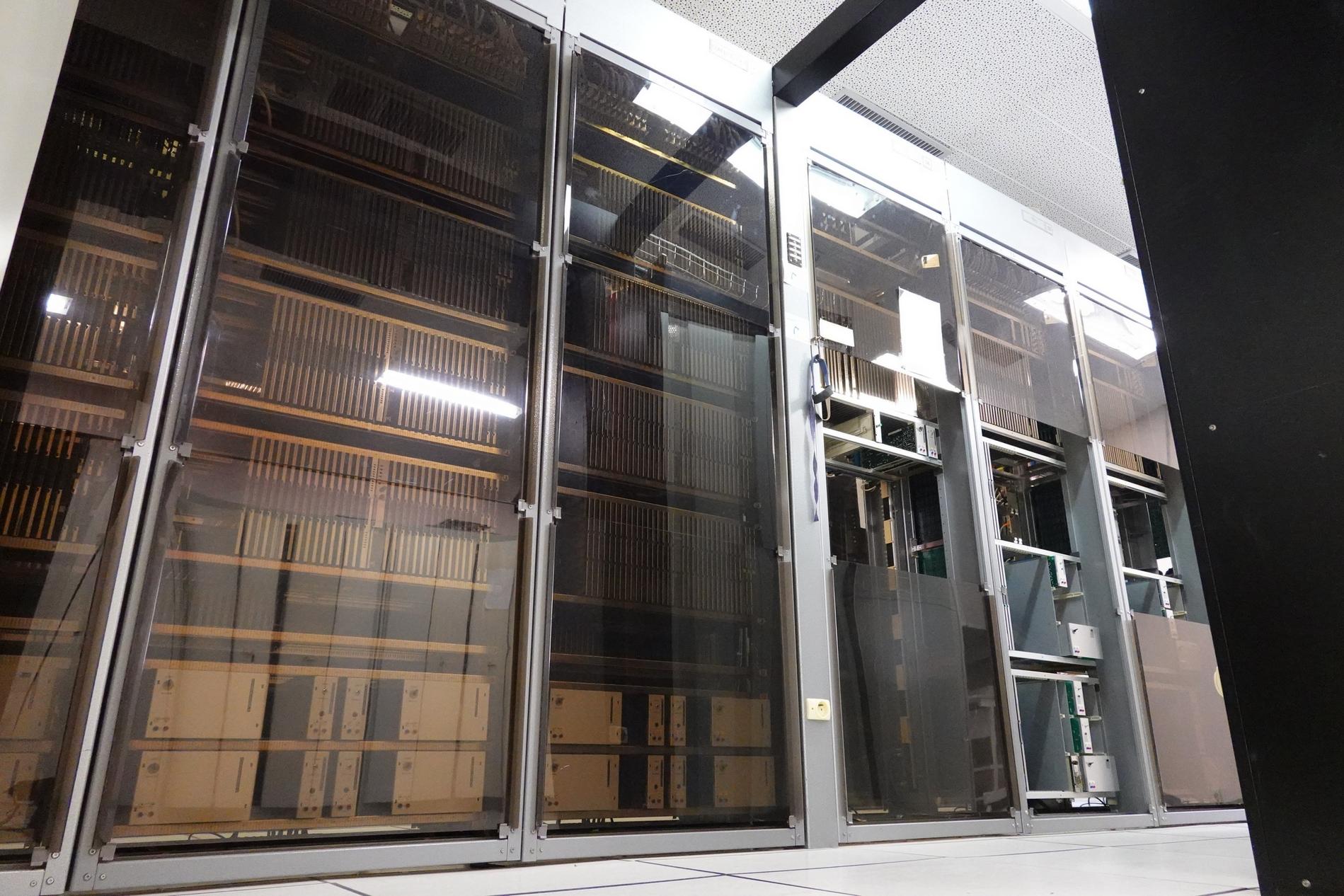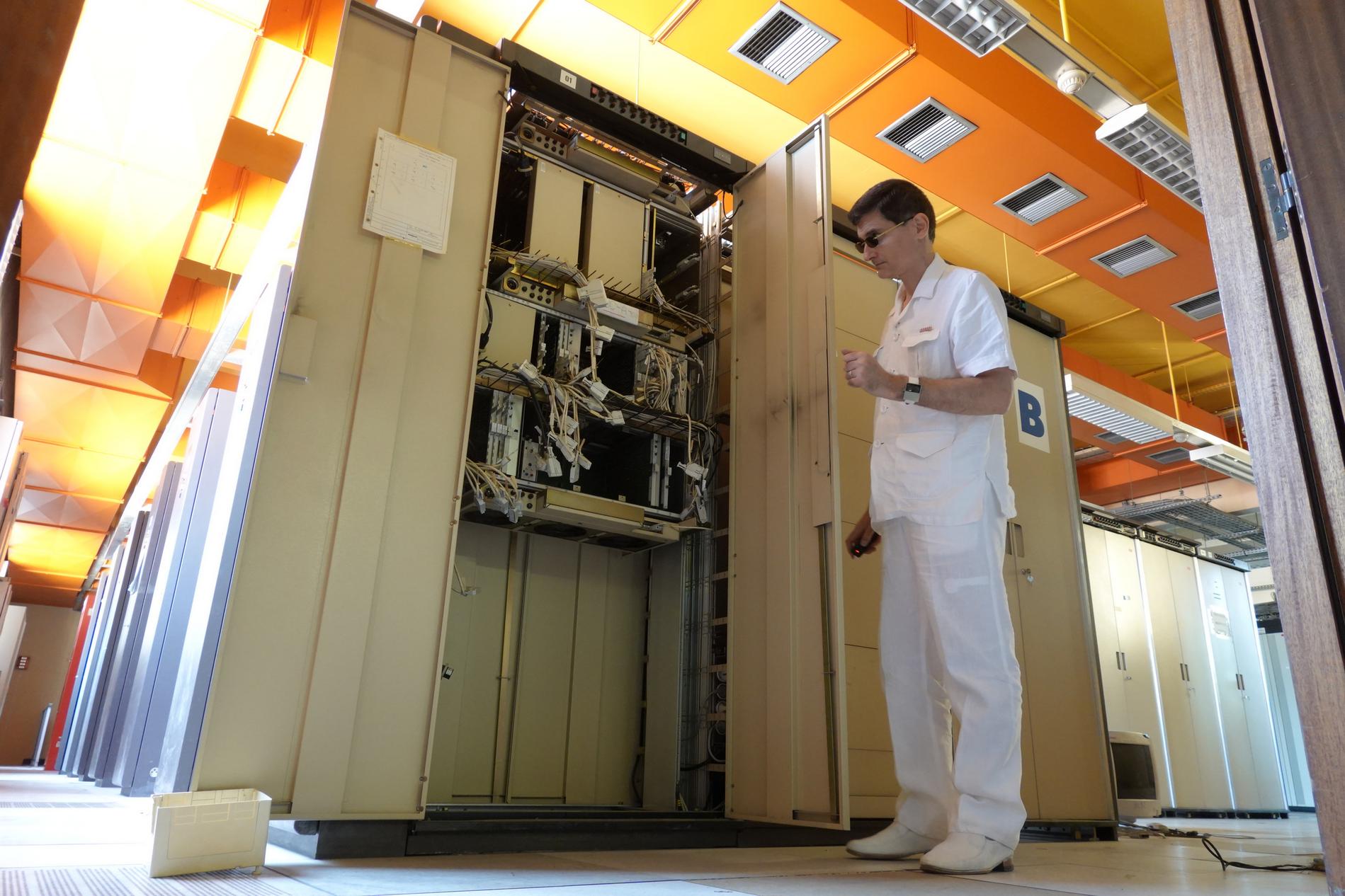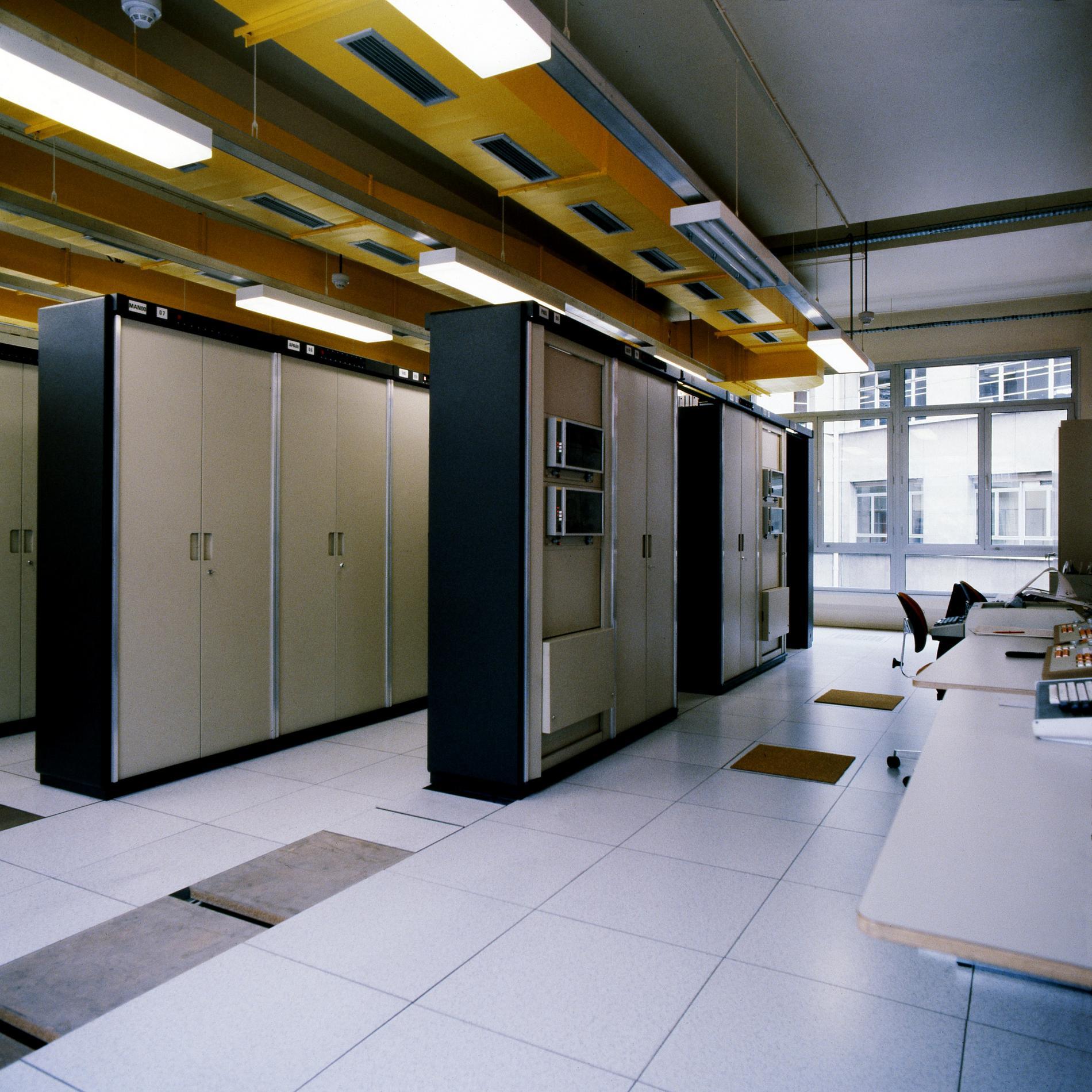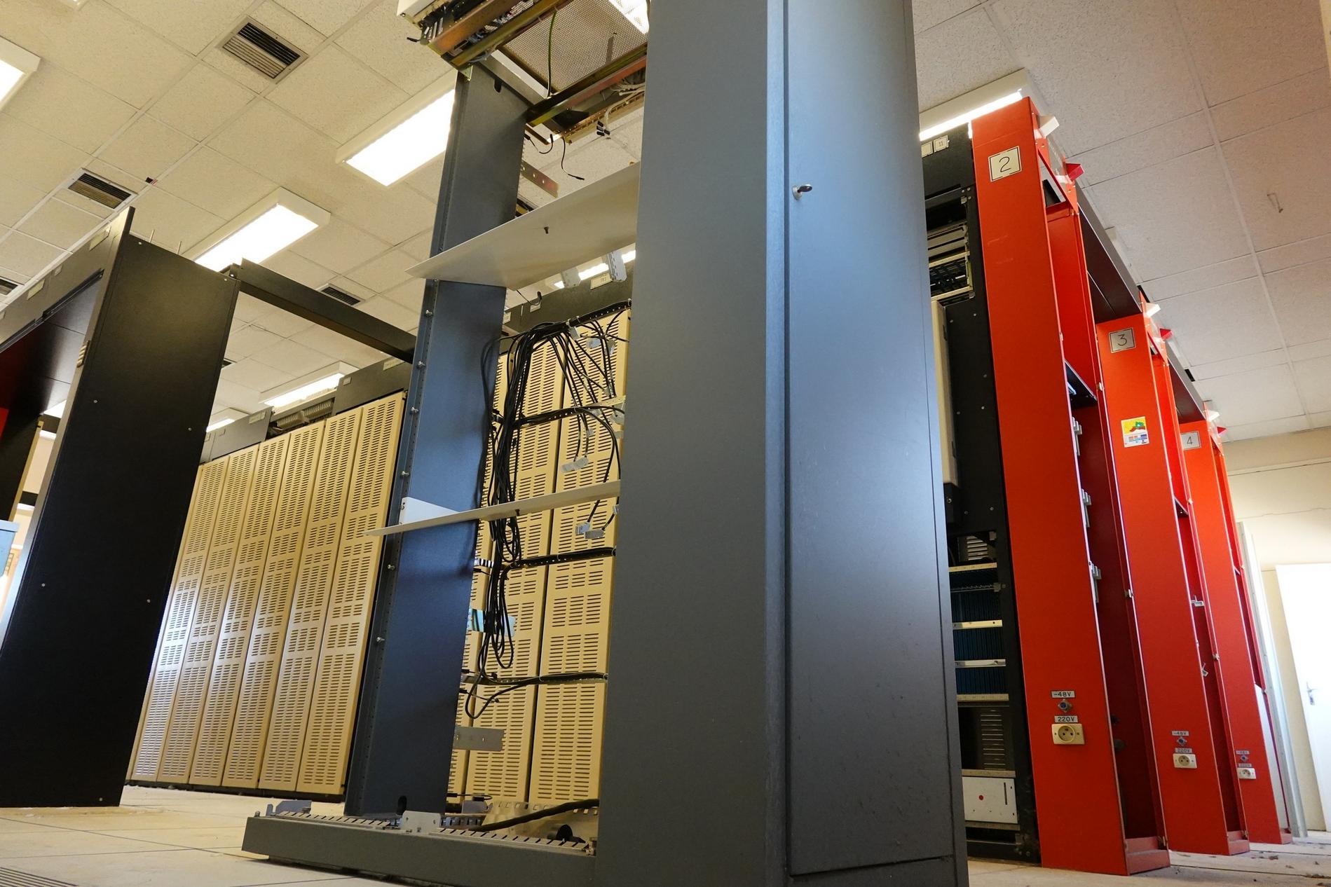 Ci-dessus : vue des tous premiers CSN (Centre Satellite Numérique) mis en service ; nous reconnaissons la présentation en baies ne comportant pas de portes. (en lieu et place, des panneaux en plexiglas qui sont absents sur l'image.)