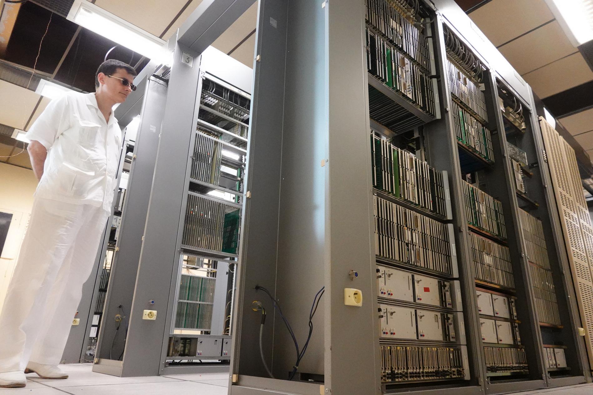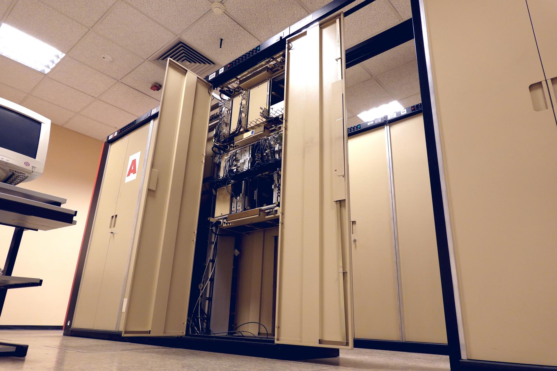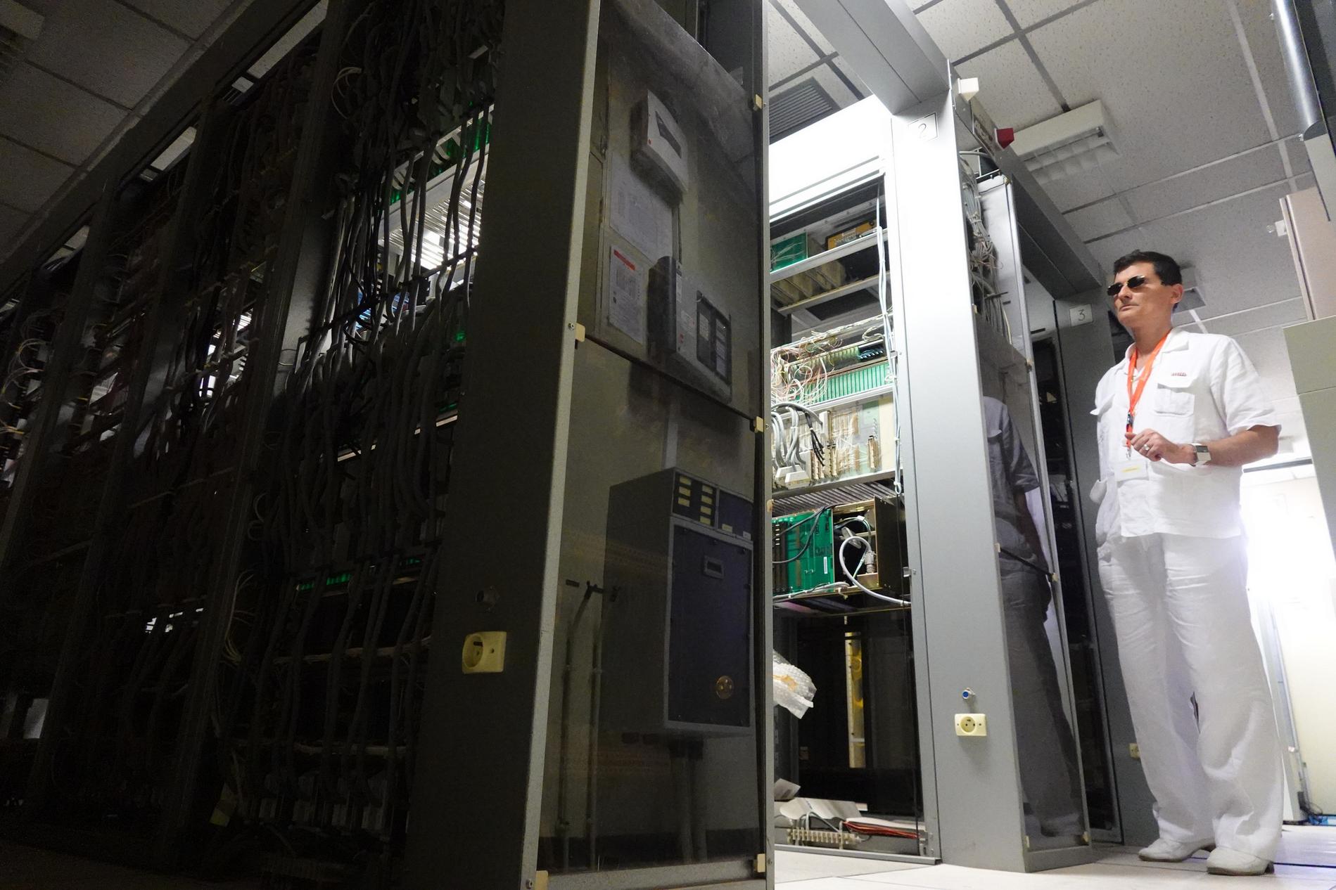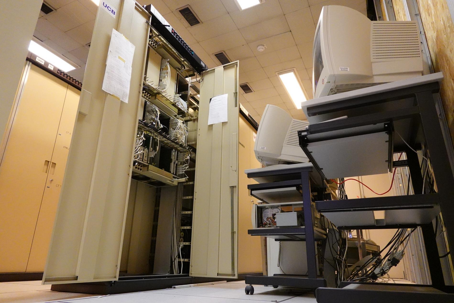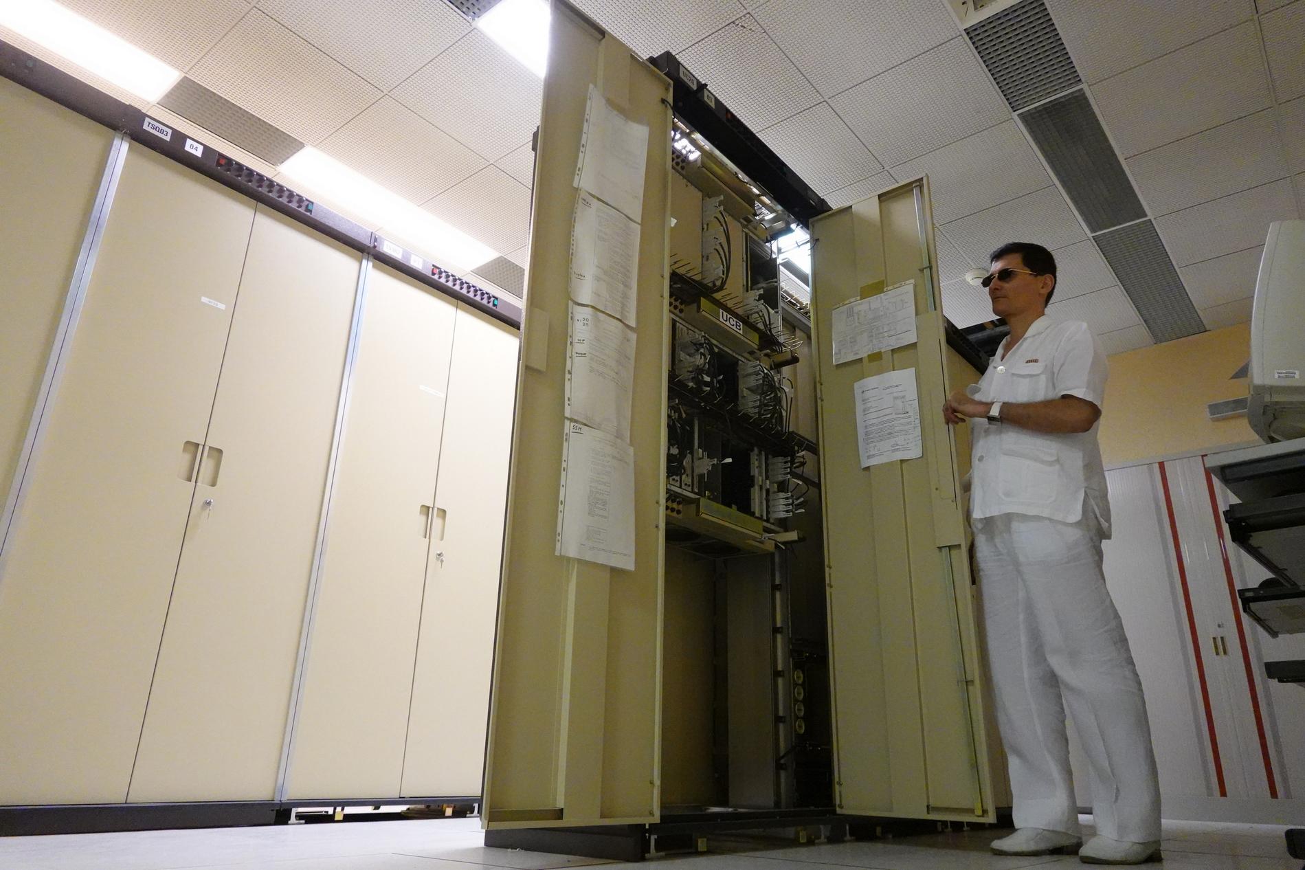 Ci-dessus : vue des tous premiers CSN (Centre Satellite Numérique) mis en service ; nous reconnaissons la présentation en baies ne comportant pas de portes. (en lieu et place, des panneaux en plexiglas qui sont absents sur l'image.)