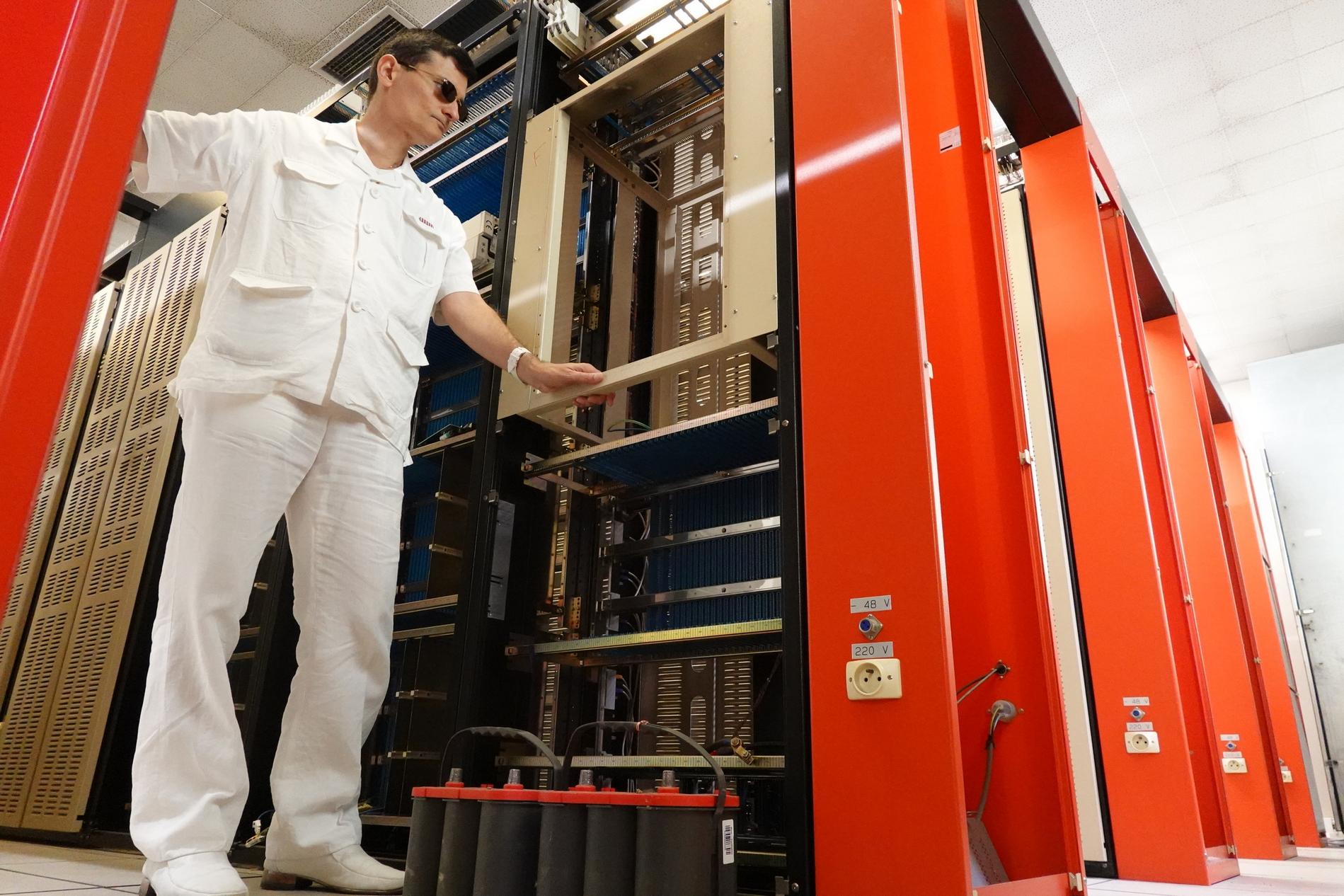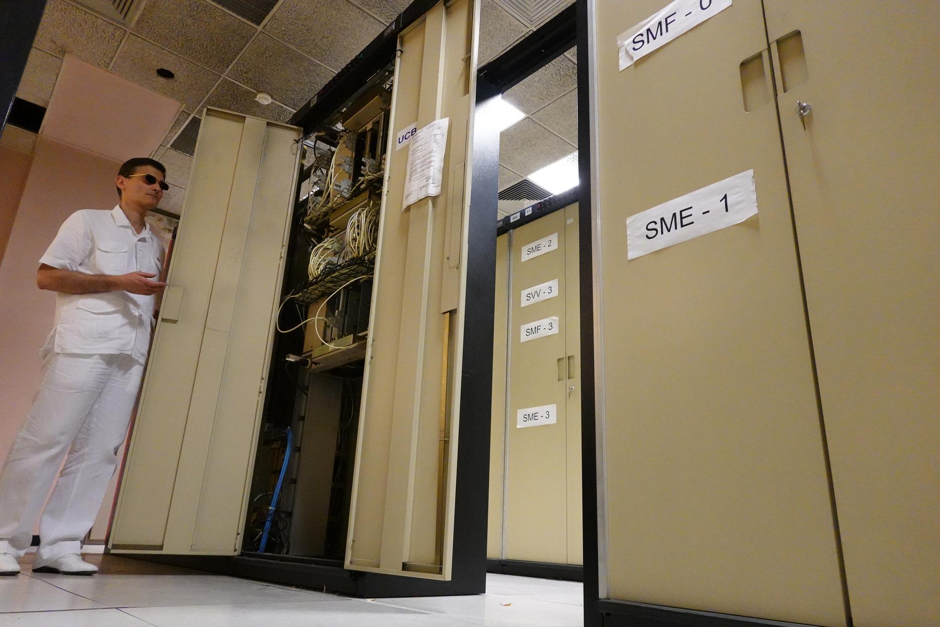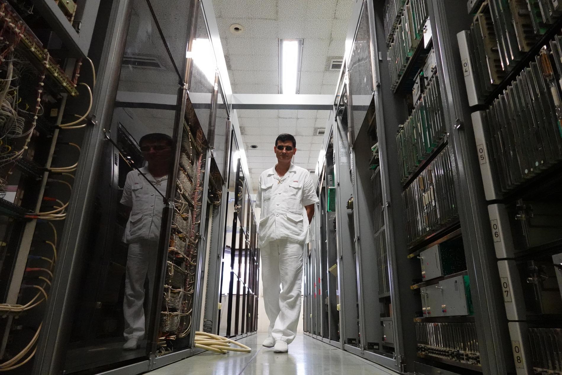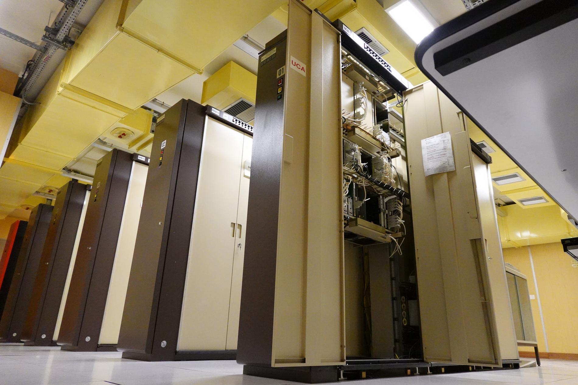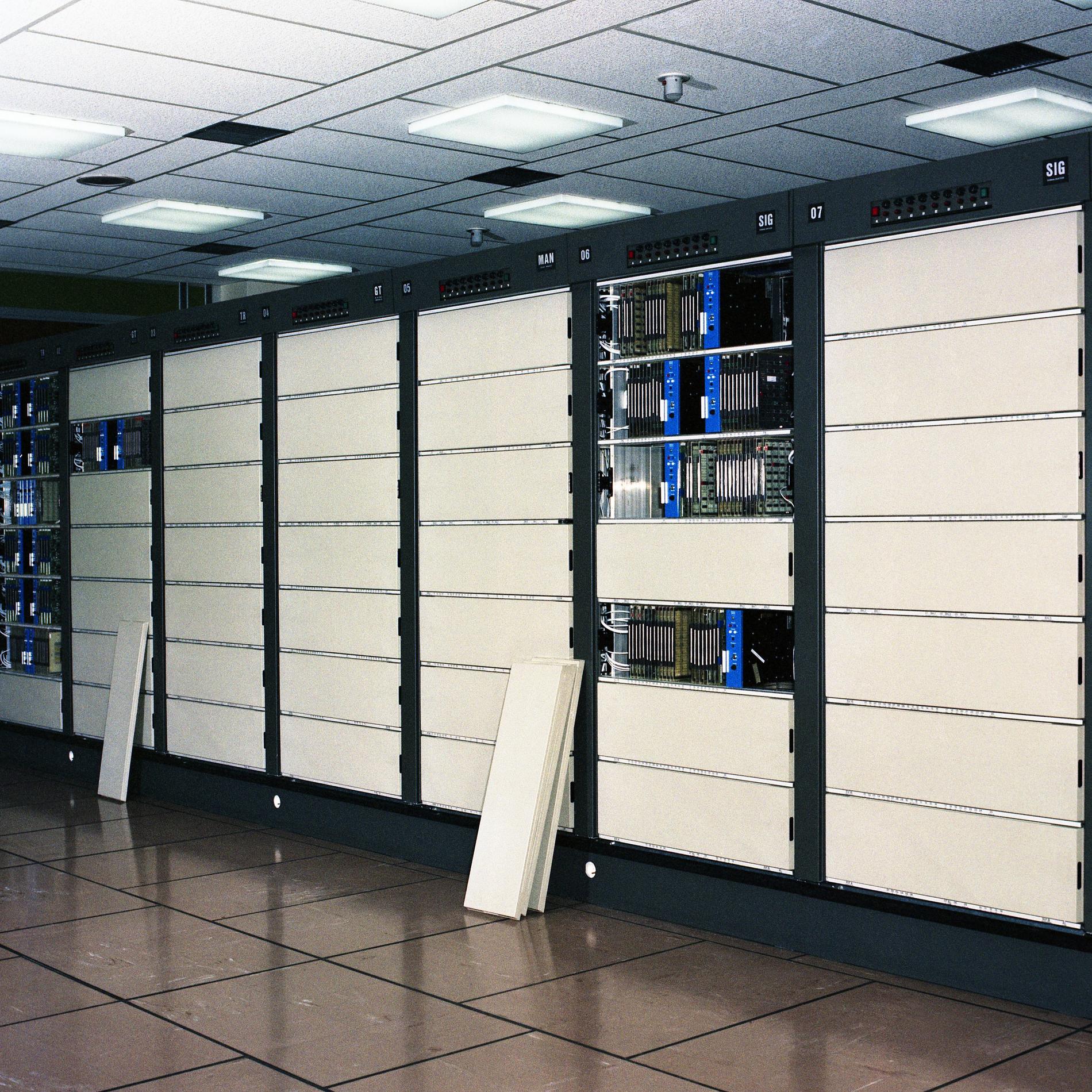 Ci-dessus : vue des tous premiers CSN (Centre Satellite Numérique) mis en service ; nous reconnaissons la présentation en baies ne comportant pas de portes. (en lieu et place, des panneaux en plexiglas qui sont absents sur l'image.)