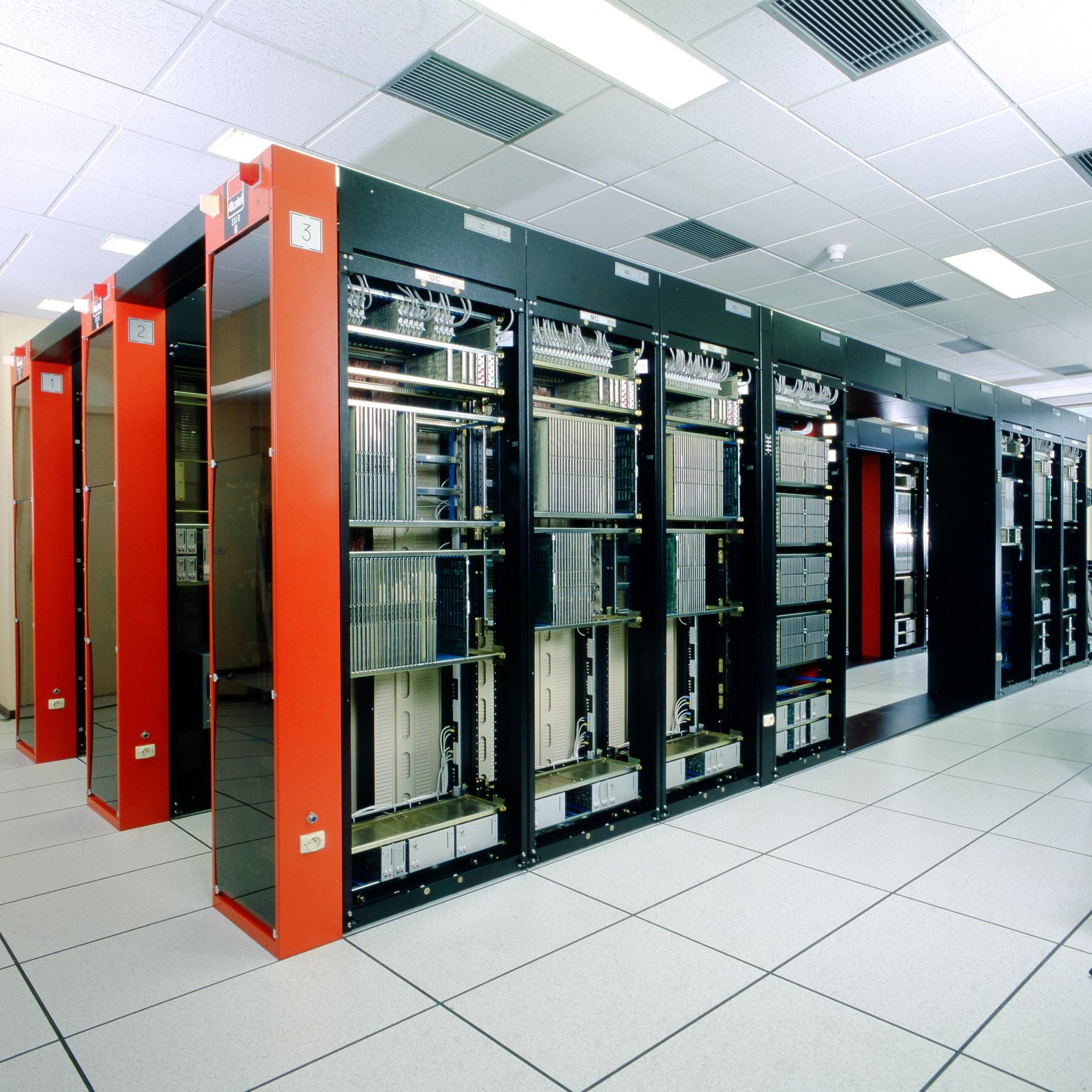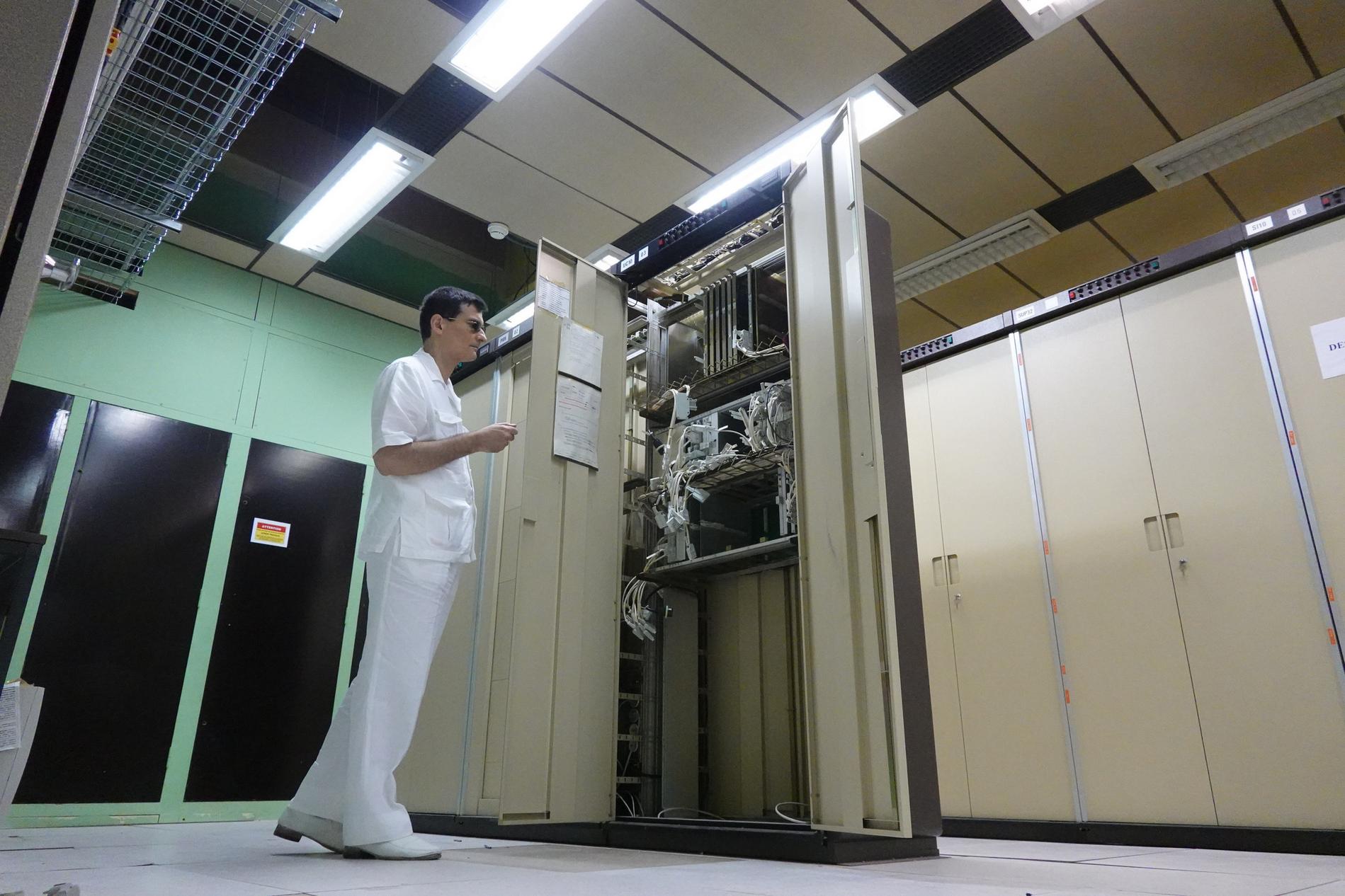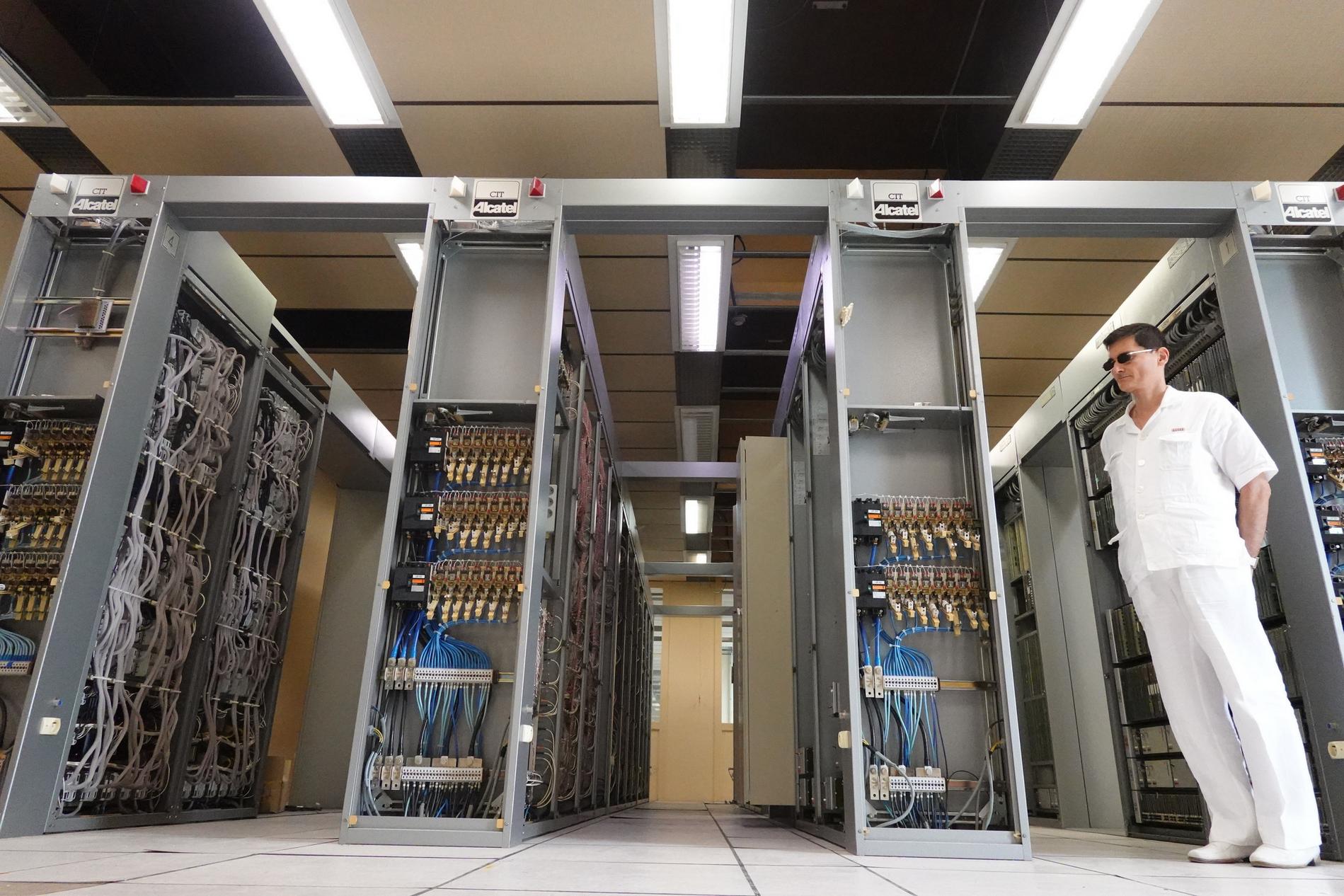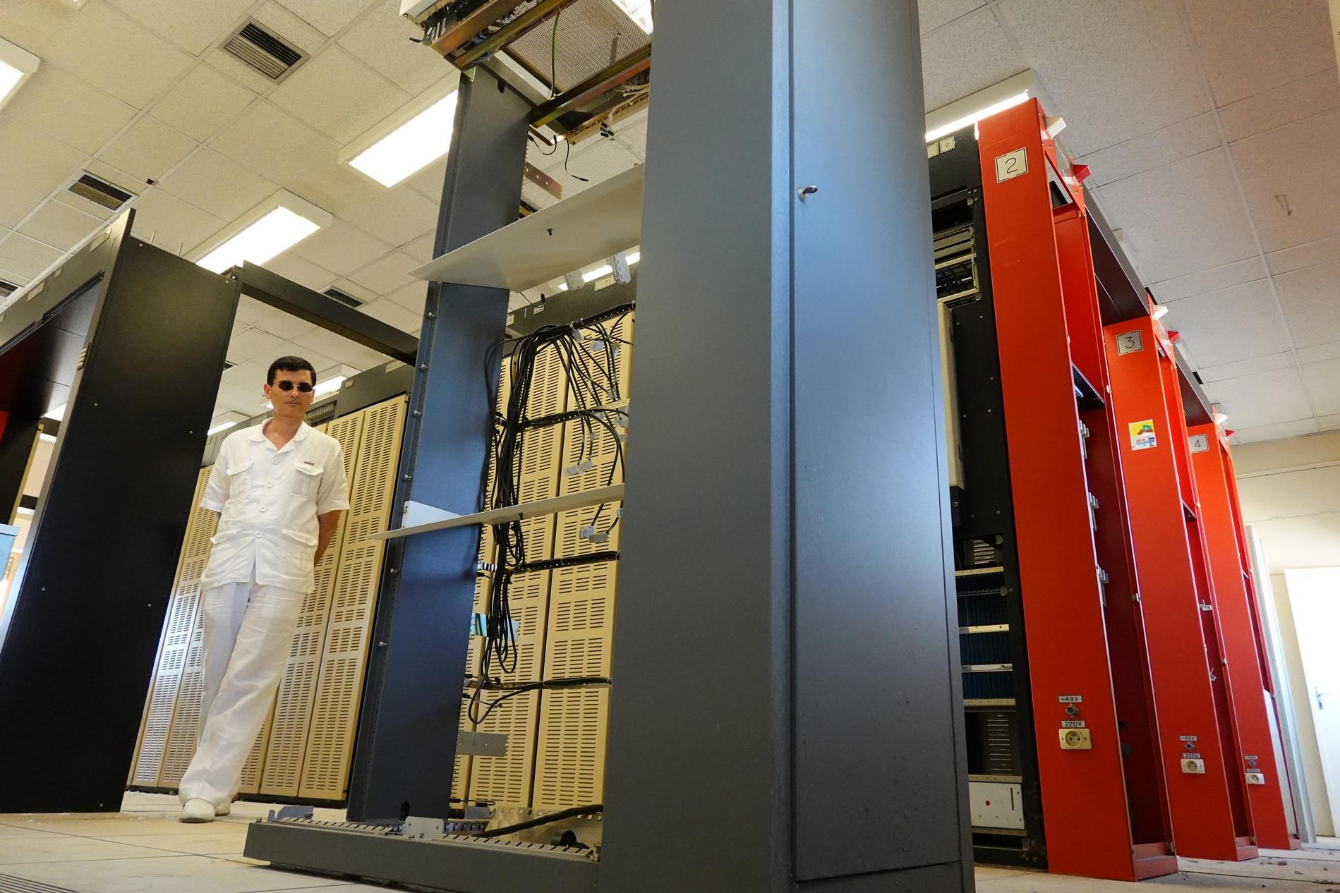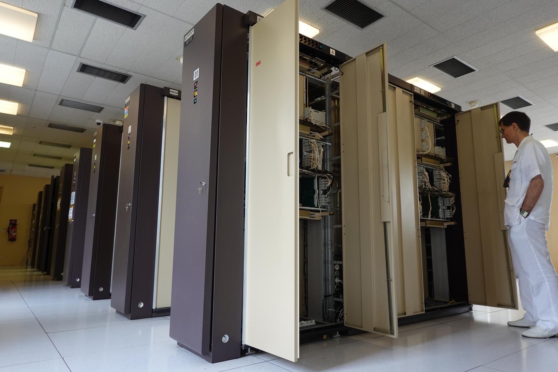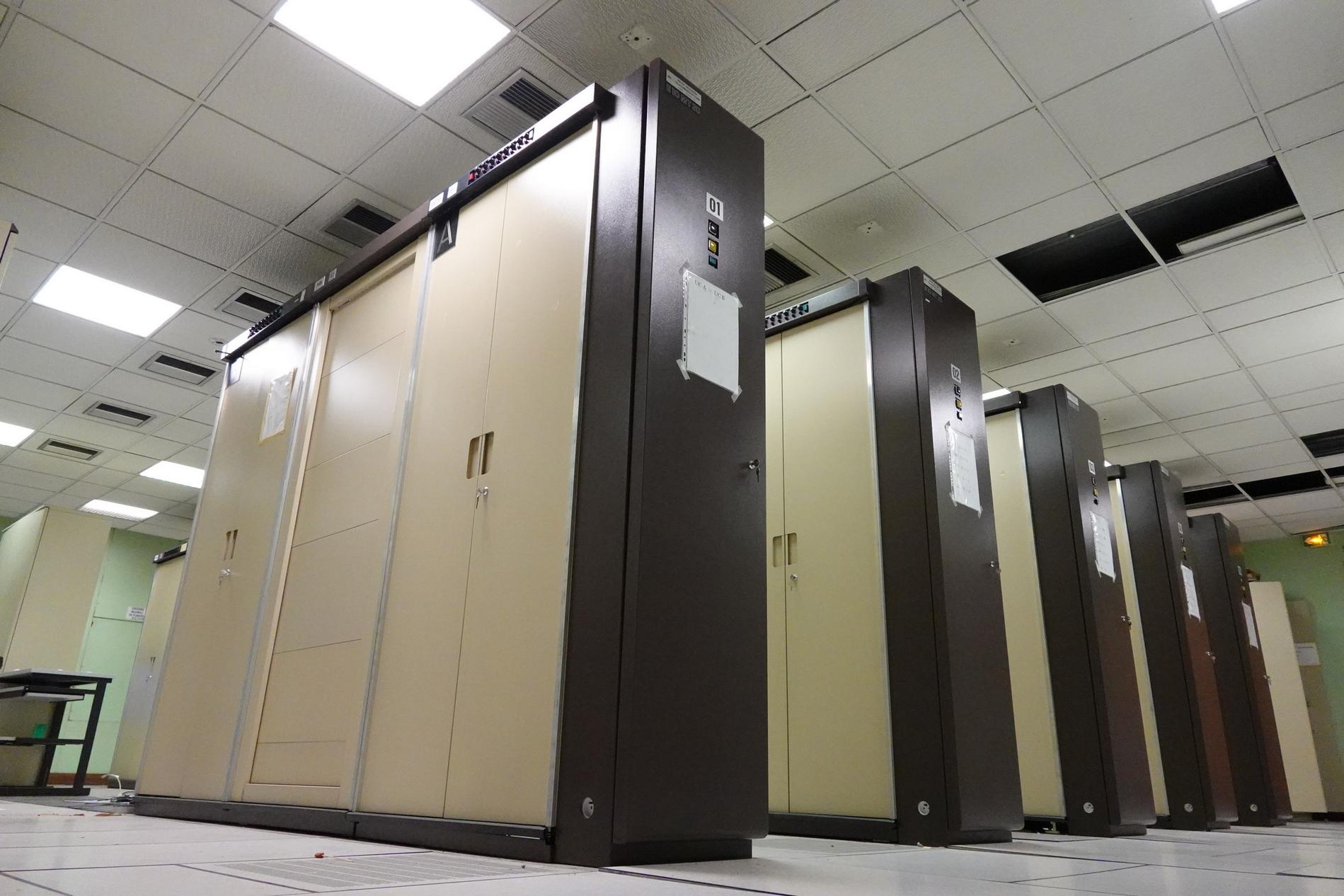 Ci-dessus : vue des tous premiers CSN (Centre Satellite Numérique) mis en service ; nous reconnaissons la présentation en baies ne comportant pas de portes. (en lieu et place, des panneaux en plexiglas qui sont absents sur l'image.)
