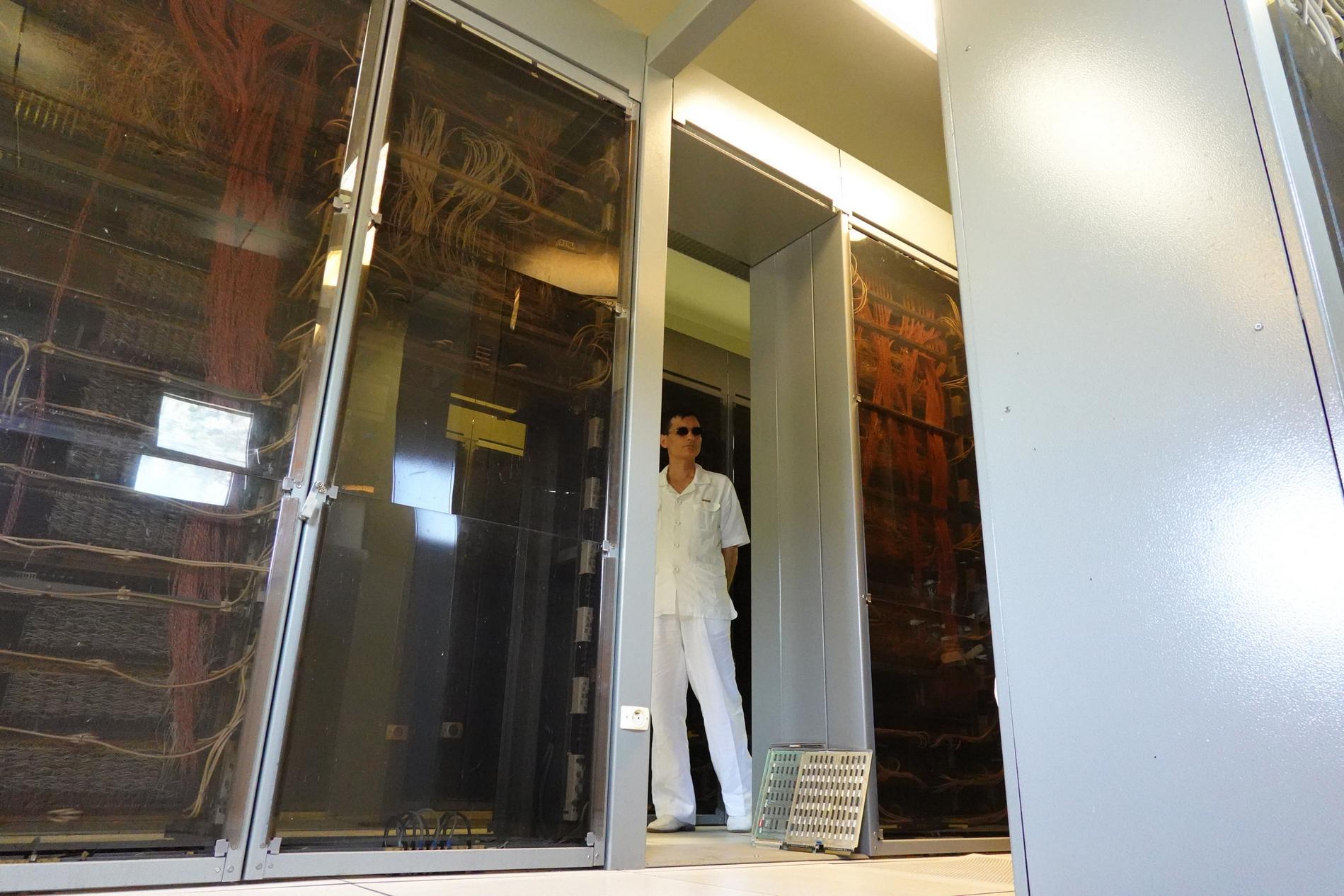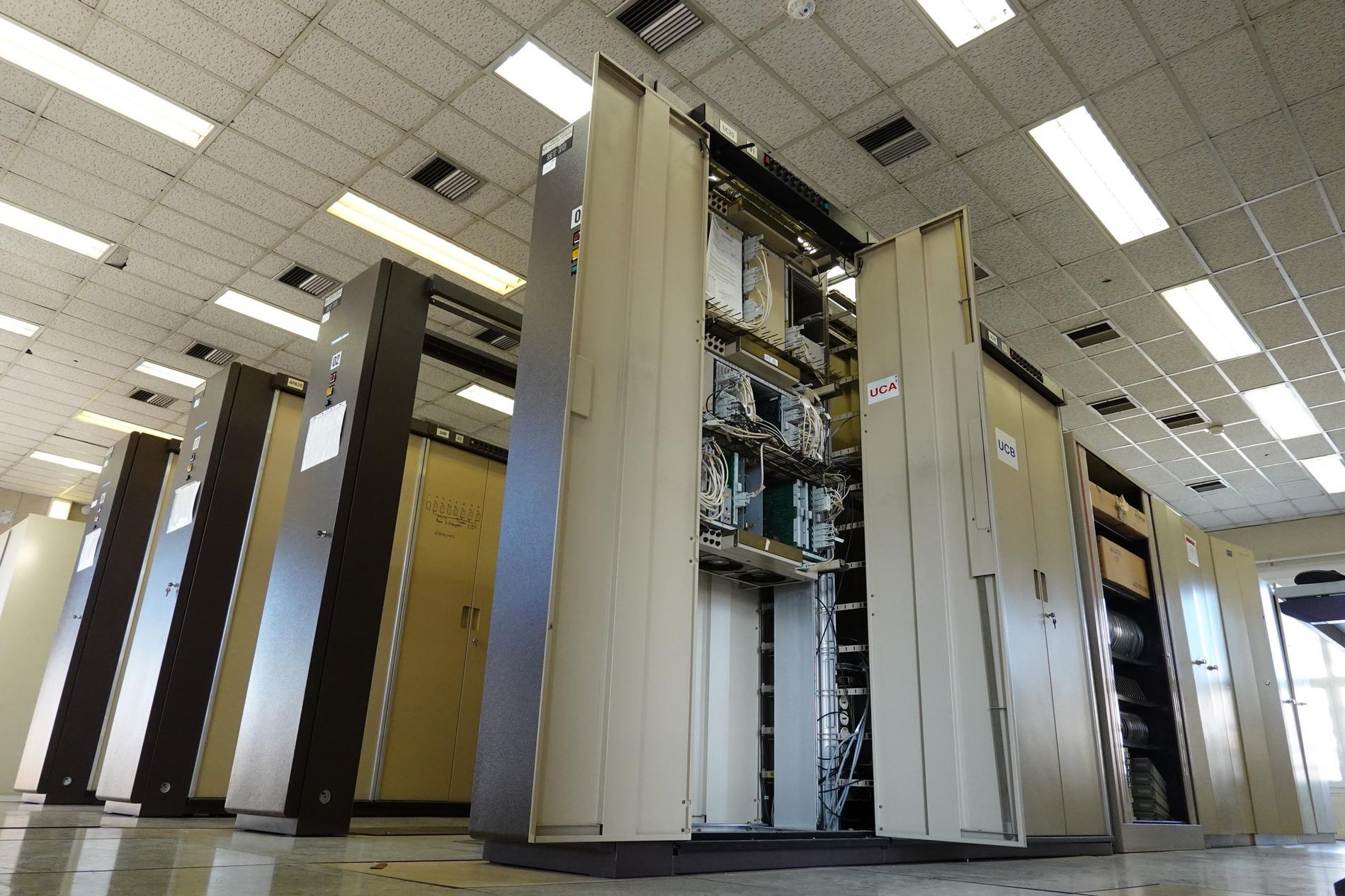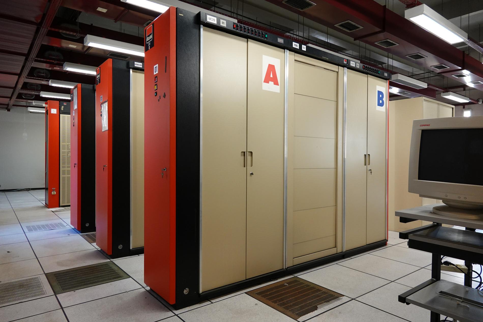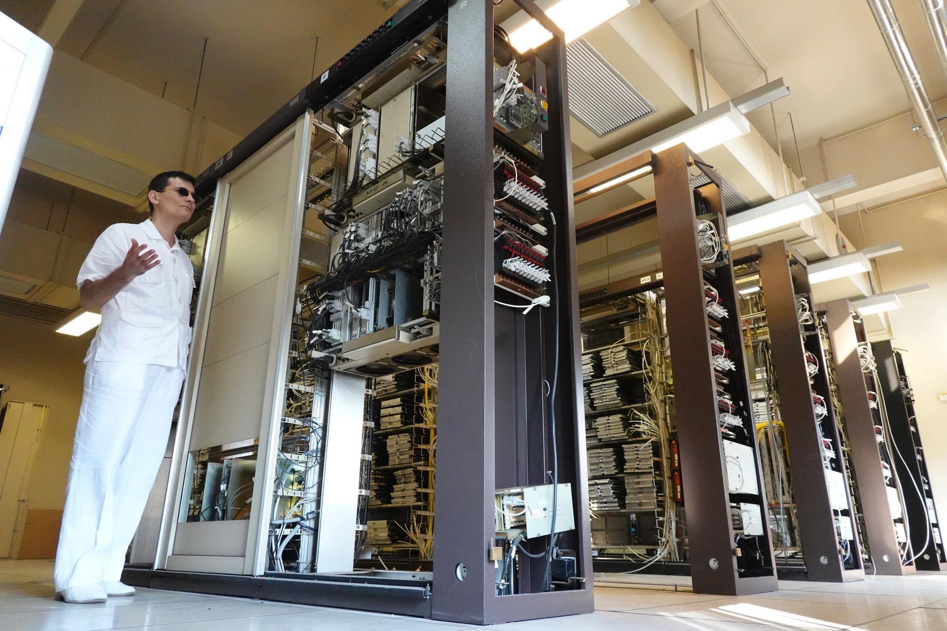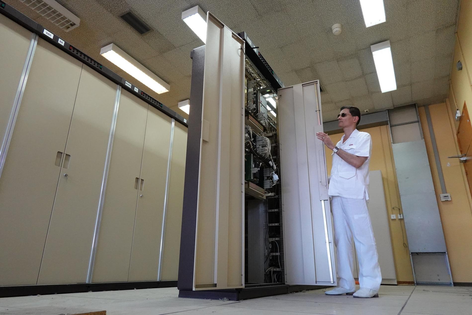 Ci-dessus : vue des tous premiers CSN (Centre Satellite Numérique) mis en service ; nous reconnaissons la présentation en baies ne comportant pas de portes. (en lieu et place, des panneaux en plexiglas qui sont absents sur l'image.)