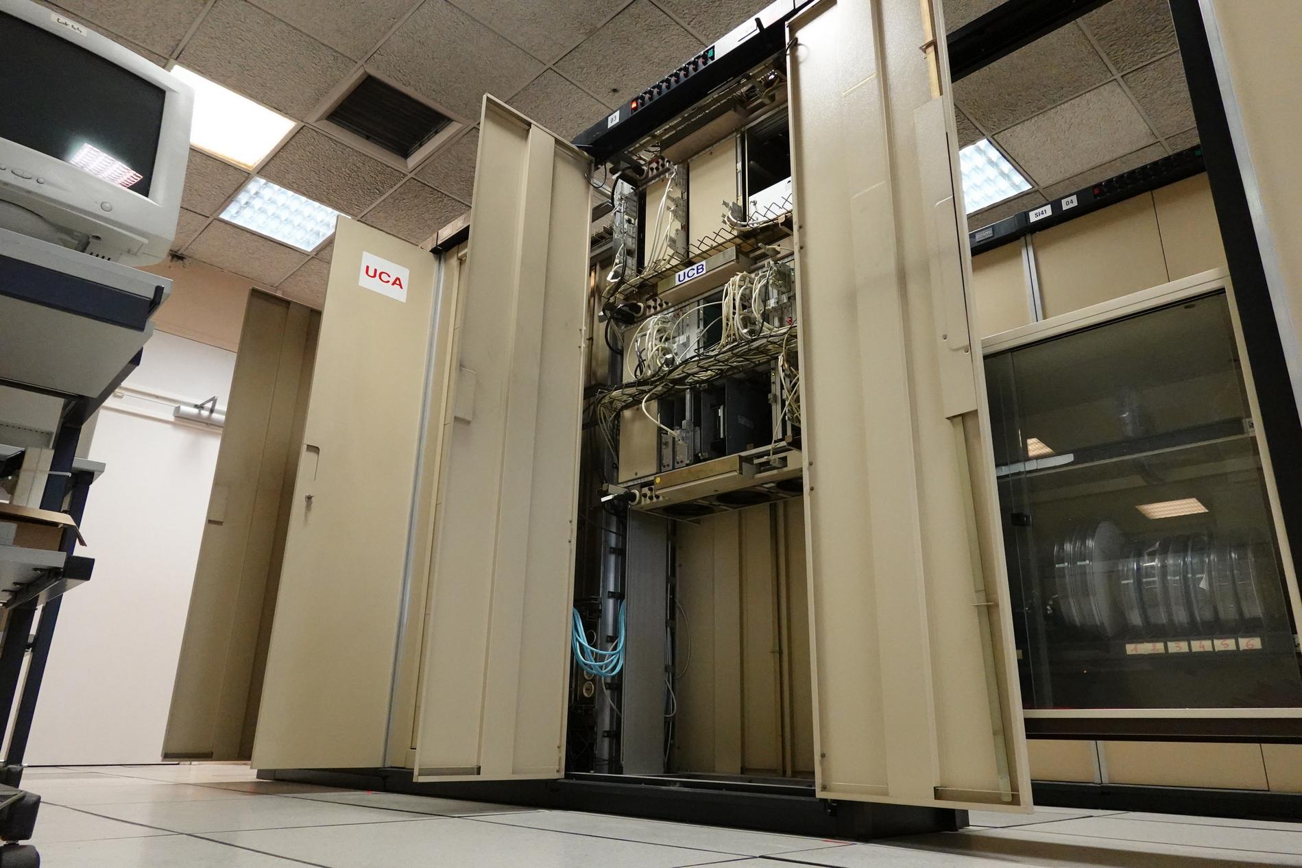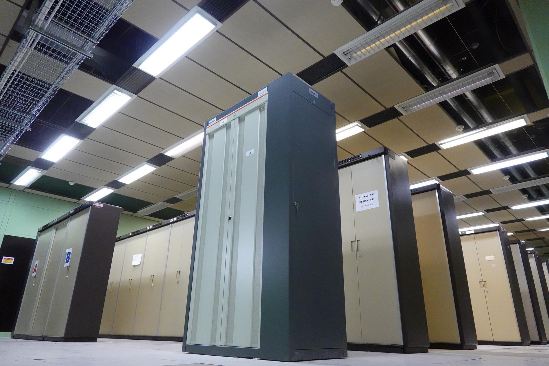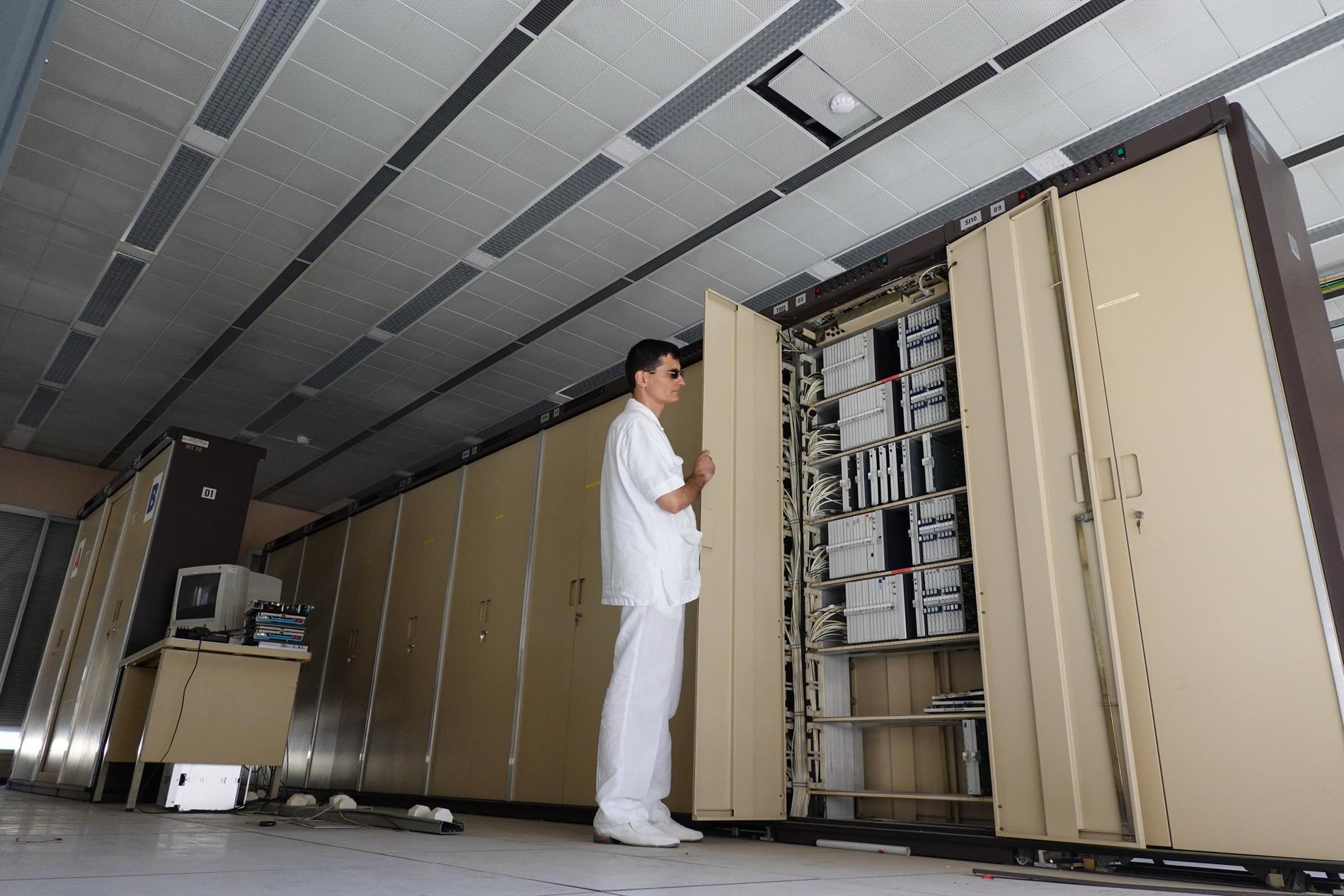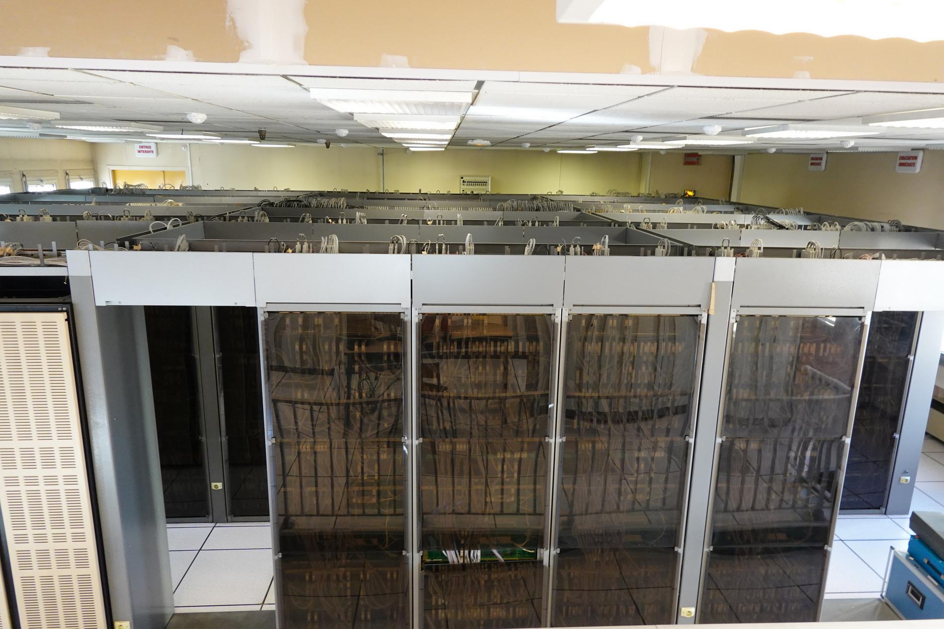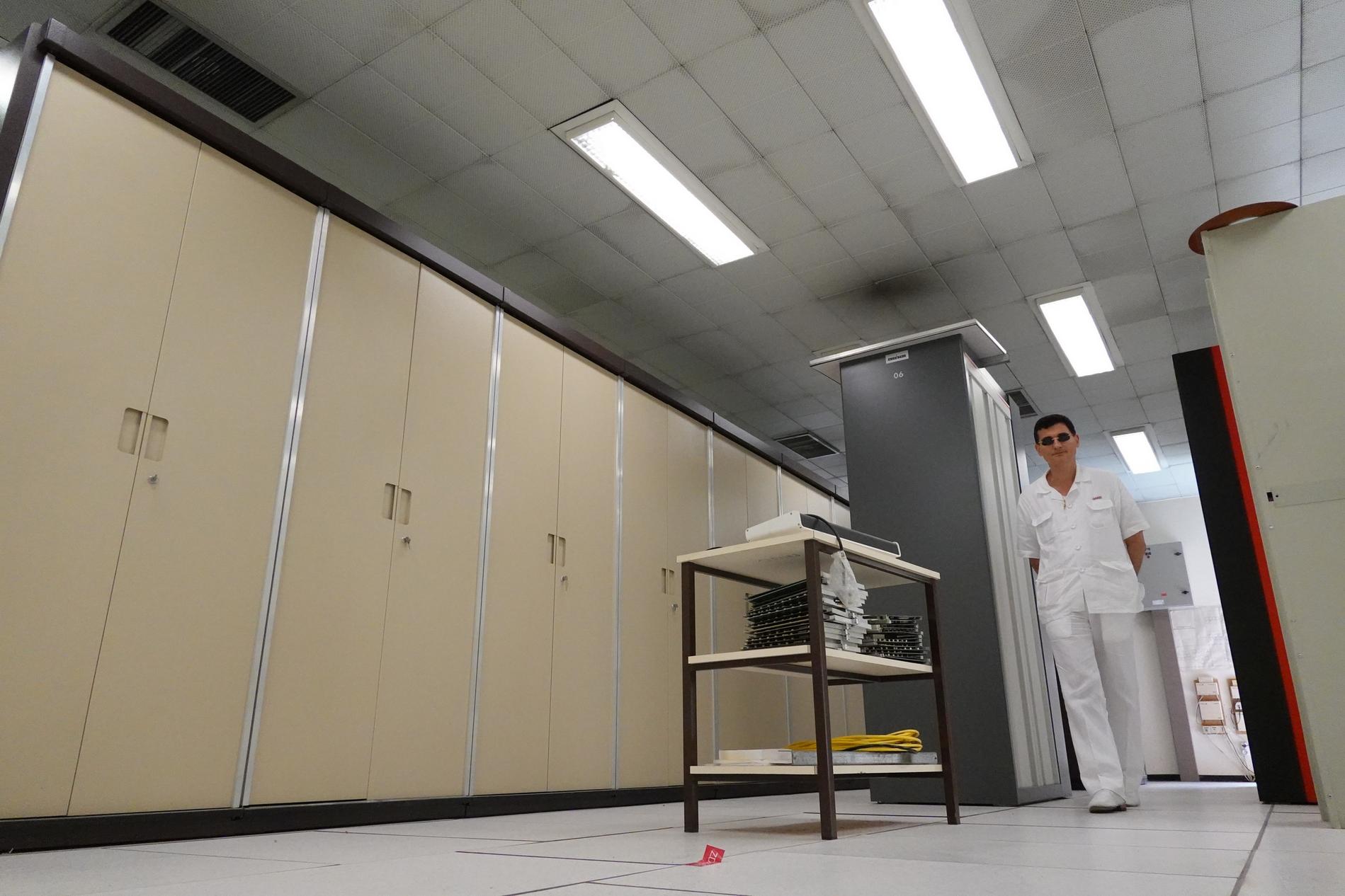 Ci-dessus : vue des tous premiers CSN (Centre Satellite Numérique) mis en service ; nous reconnaissons la présentation en baies ne comportant pas de portes. (en lieu et place, des panneaux en plexiglas qui sont absents sur l'image.)