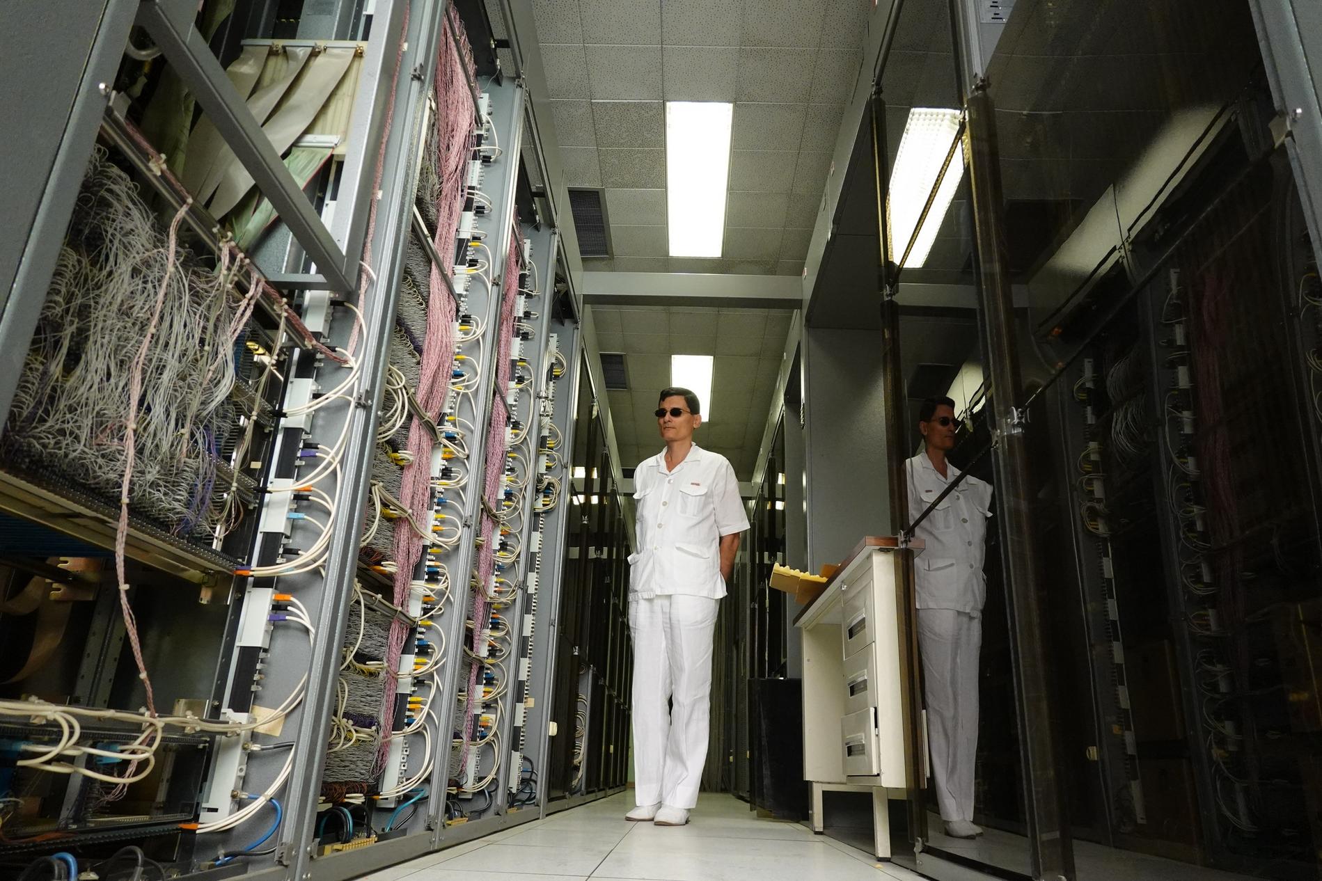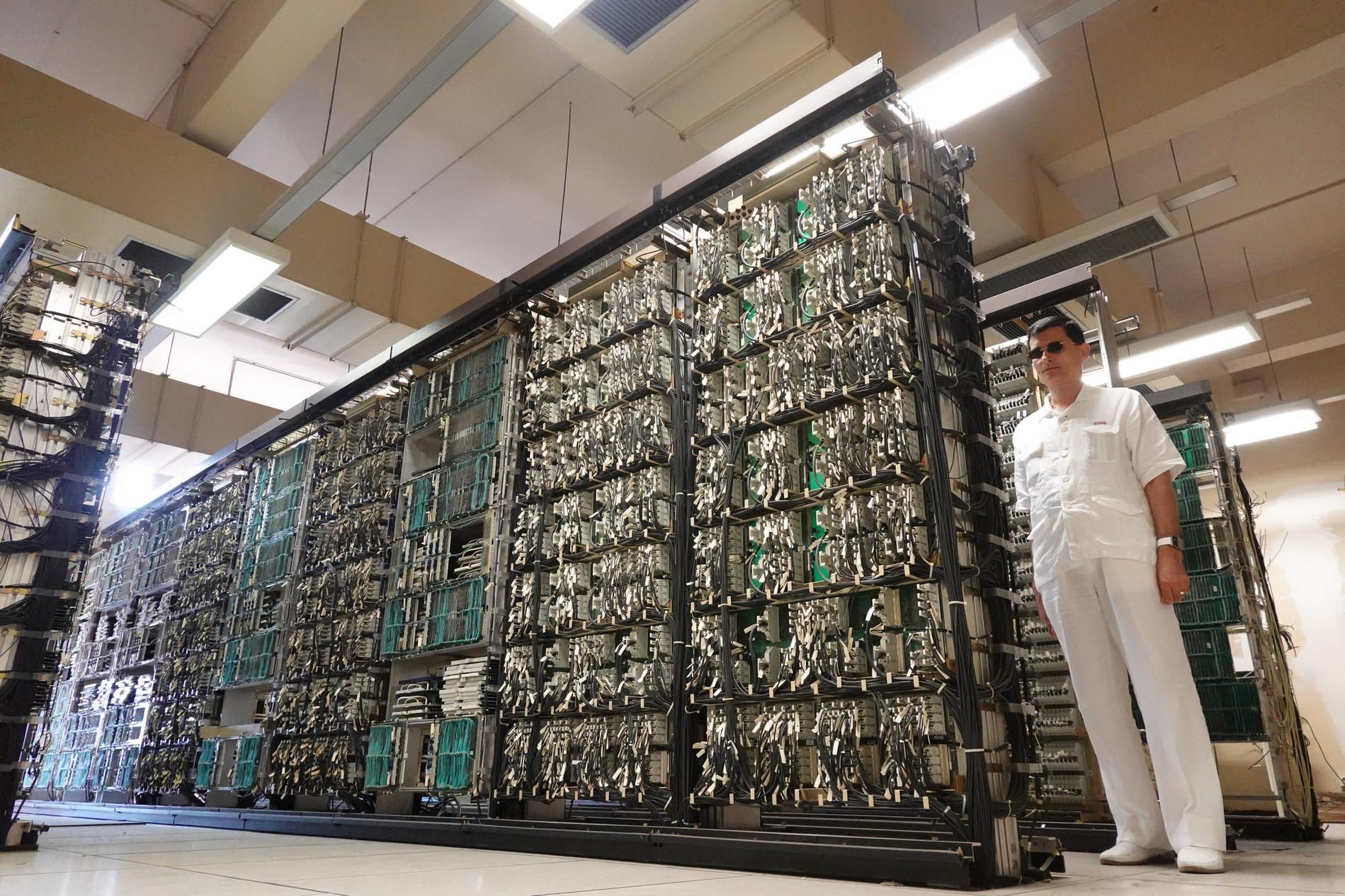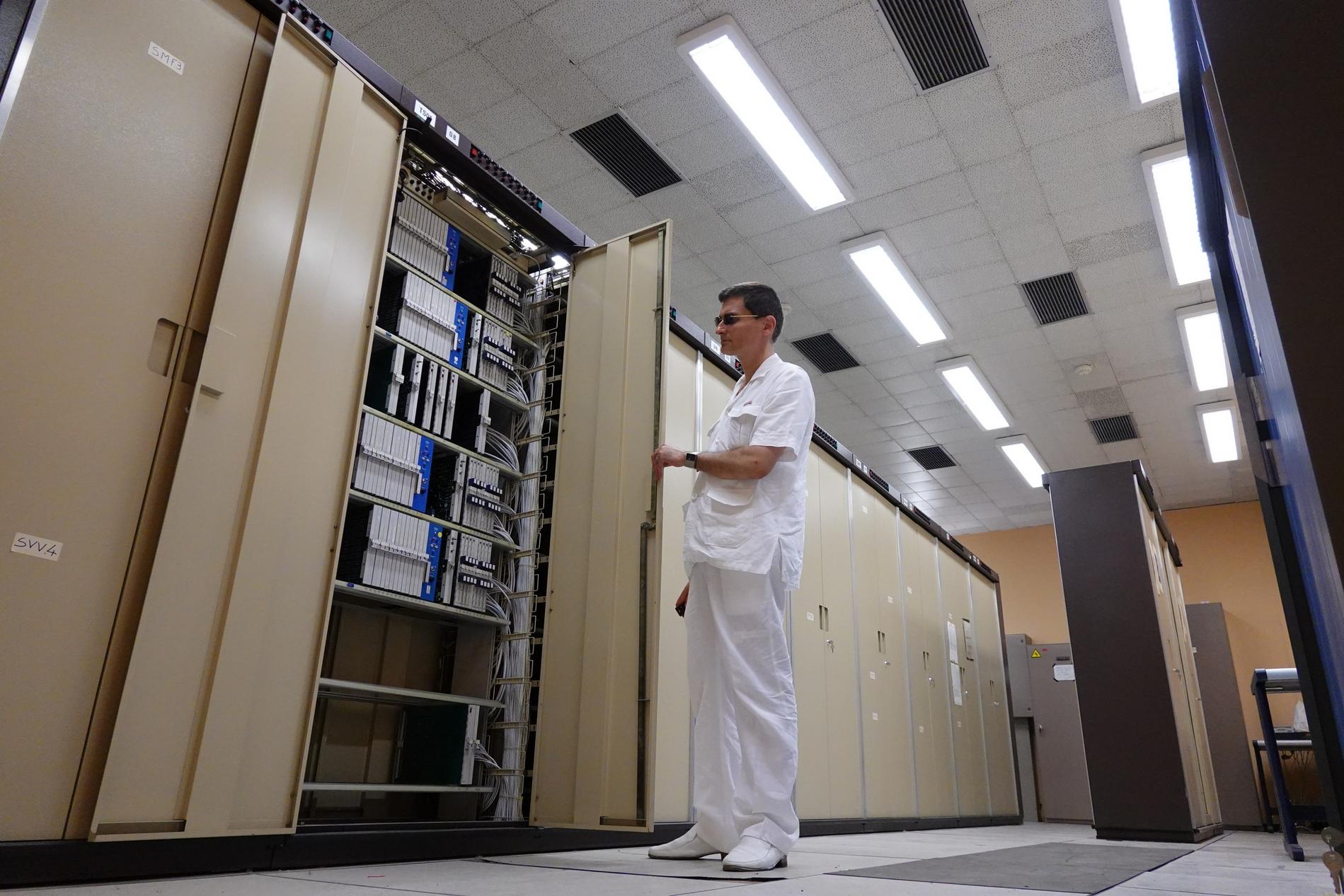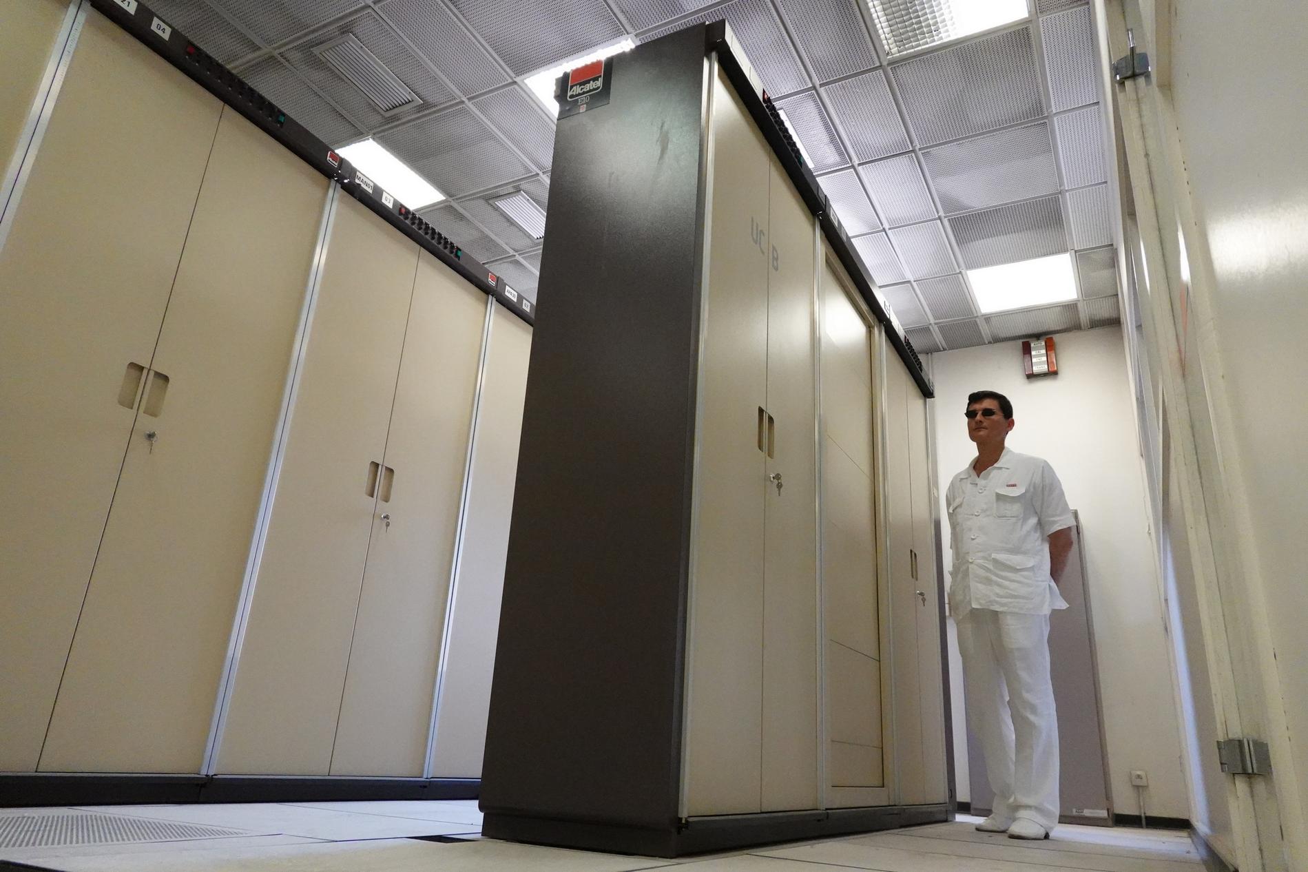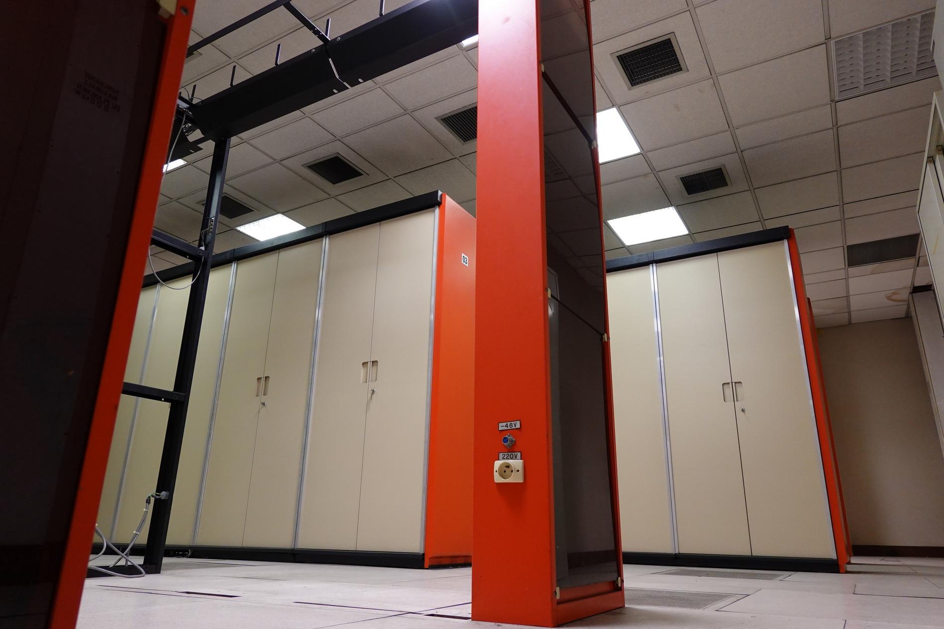 Ci-dessus : vue des tous premiers CSN (Centre Satellite Numérique) mis en service ; nous reconnaissons la présentation en baies ne comportant pas de portes. (en lieu et place, des panneaux en plexiglas qui sont absents sur l'image.)