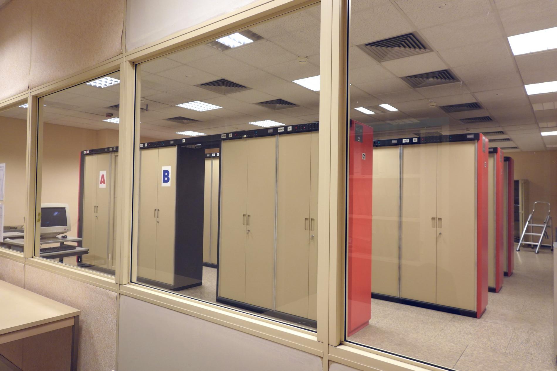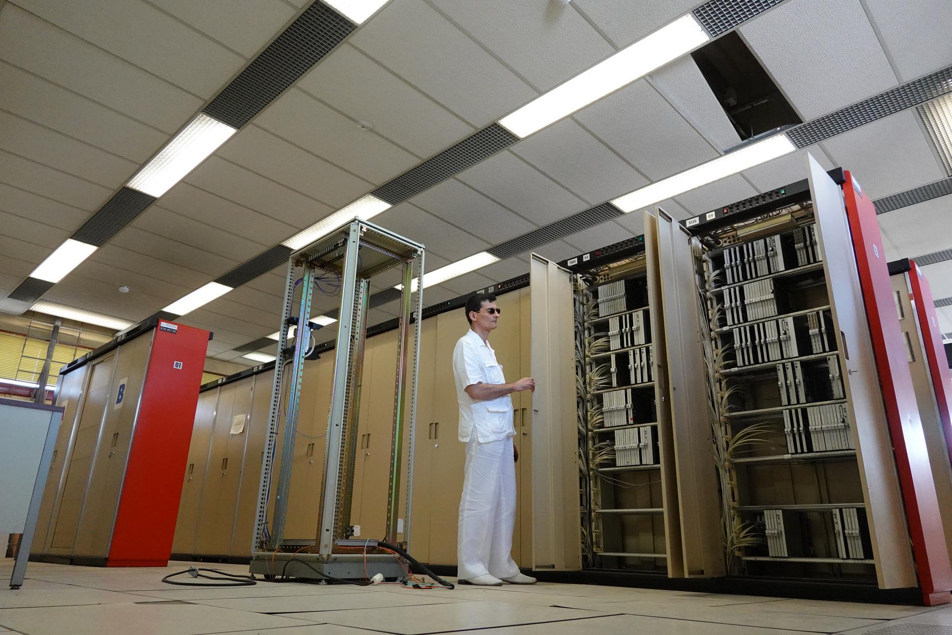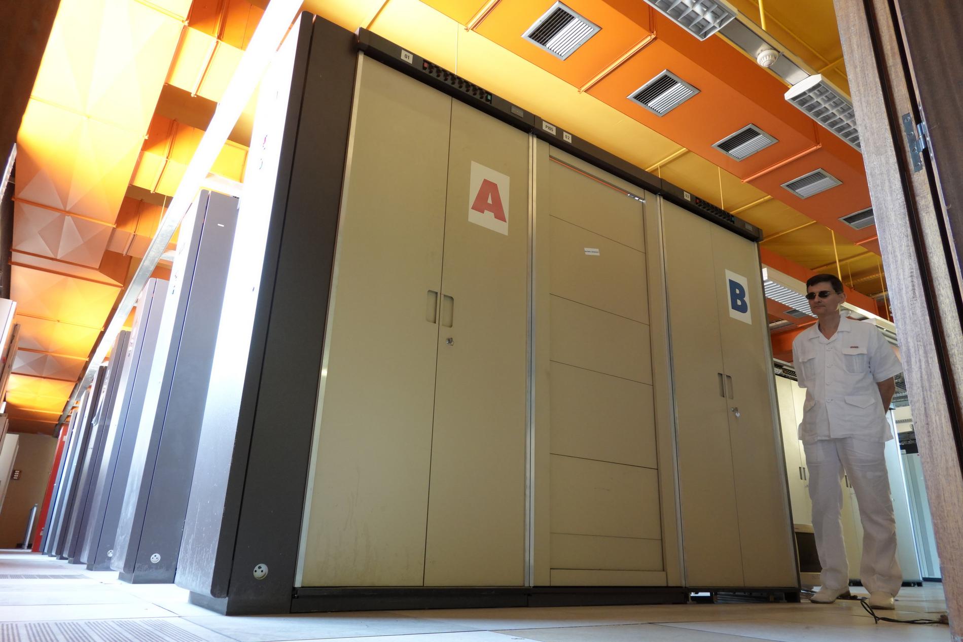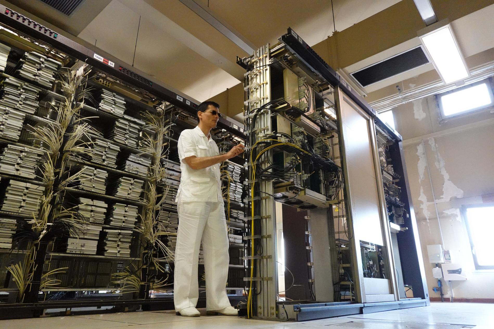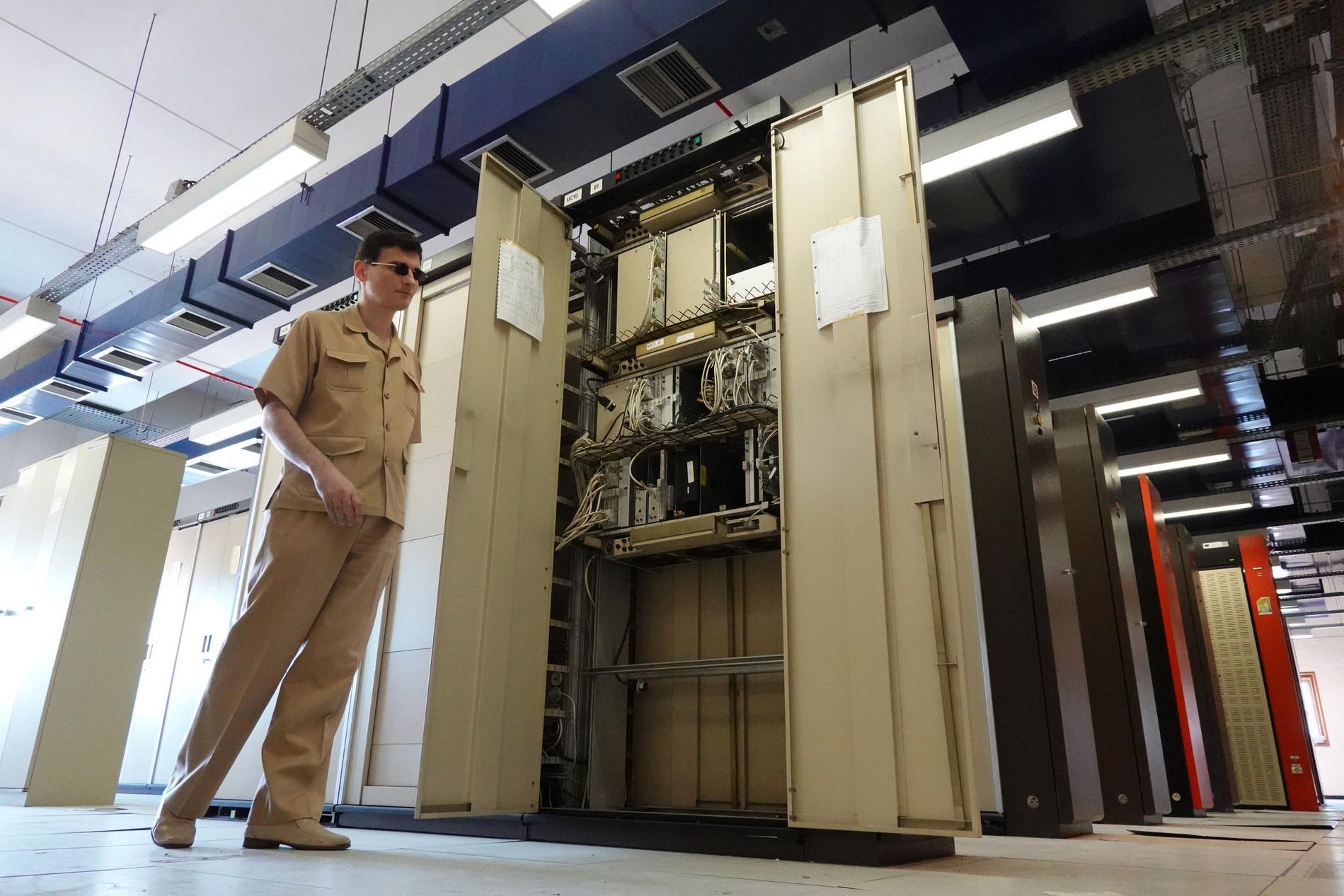 Ci-dessus : vue des tous premiers CSN (Centre Satellite Numérique) mis en service ; nous reconnaissons la présentation en baies ne comportant pas de portes. (en lieu et place, des panneaux en plexiglas qui sont absents sur l'image.)