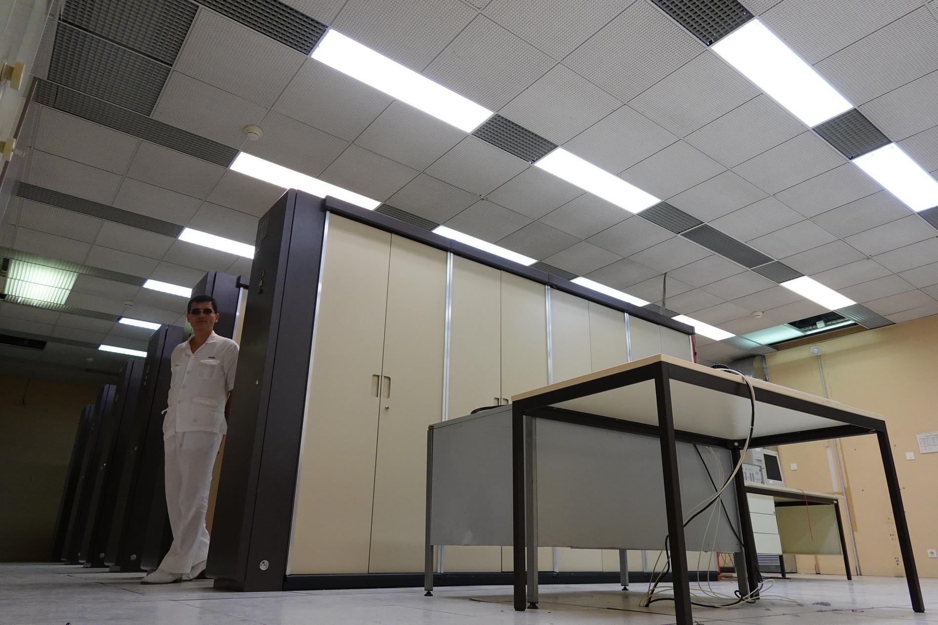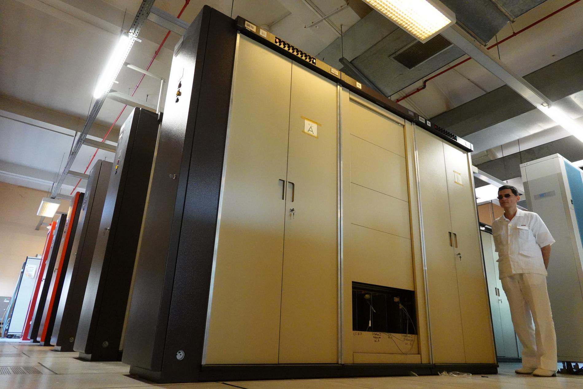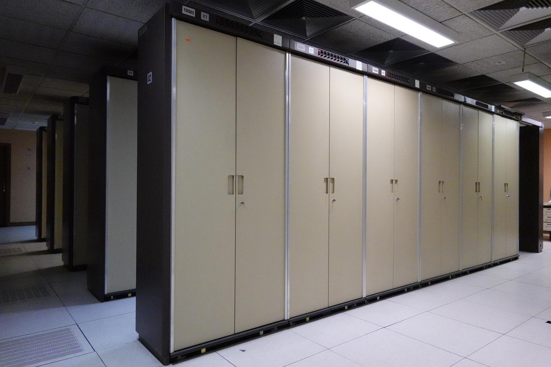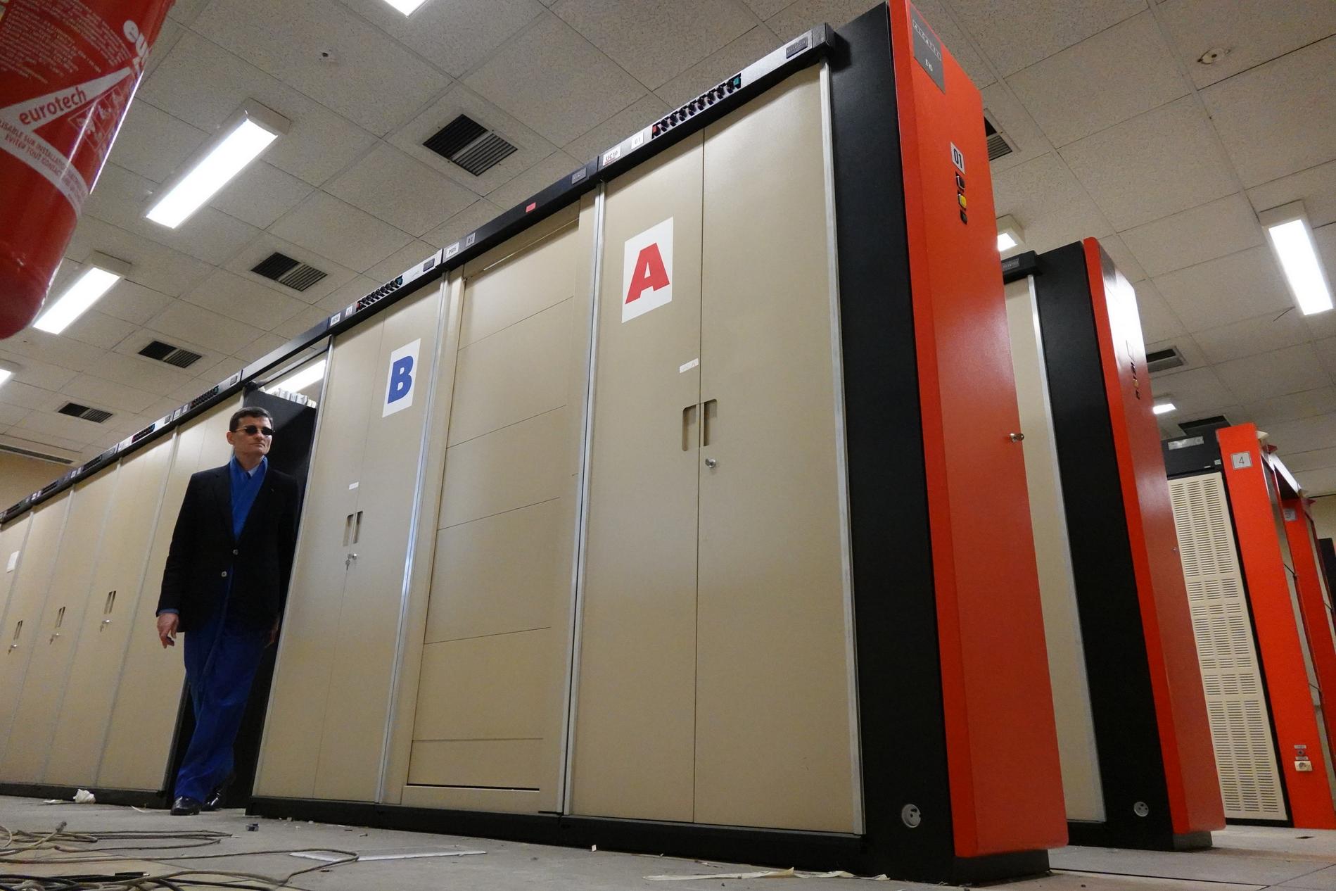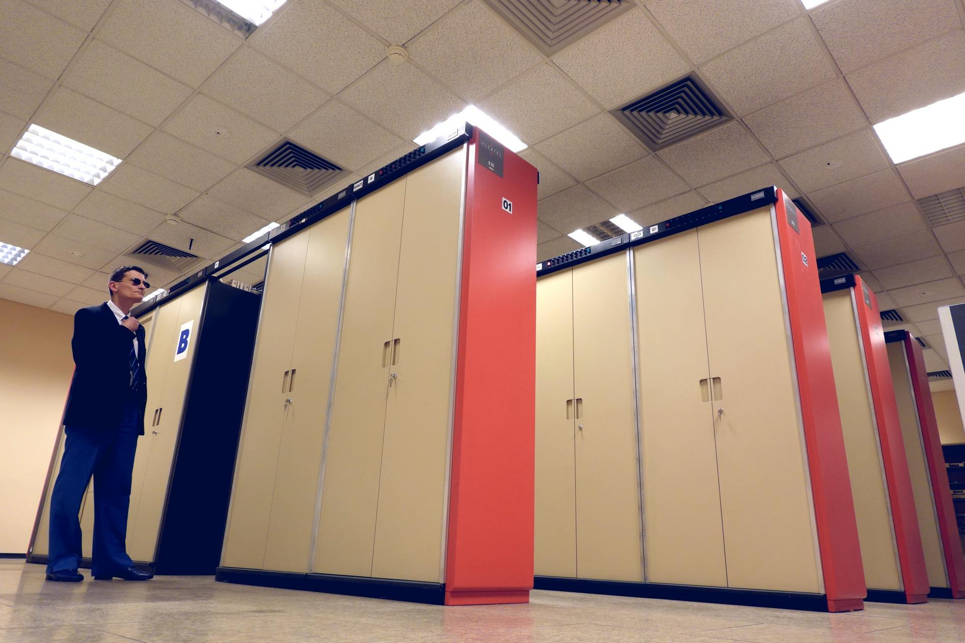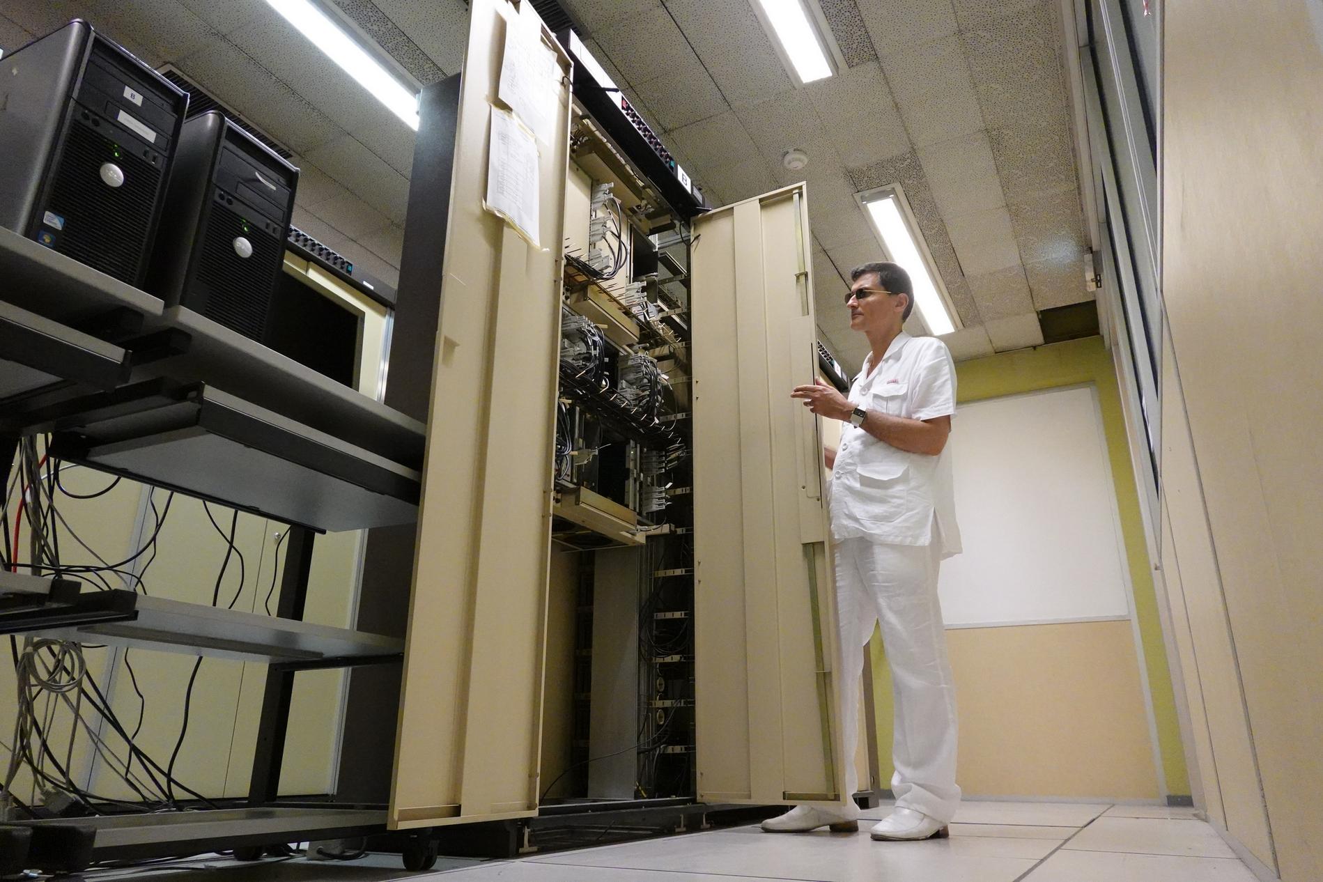 Ci-dessus : vue des tous premiers CSN (Centre Satellite Numérique) mis en service ; nous reconnaissons la présentation en baies ne comportant pas de portes. (en lieu et place, des panneaux en plexiglas qui sont absents sur l'image.)