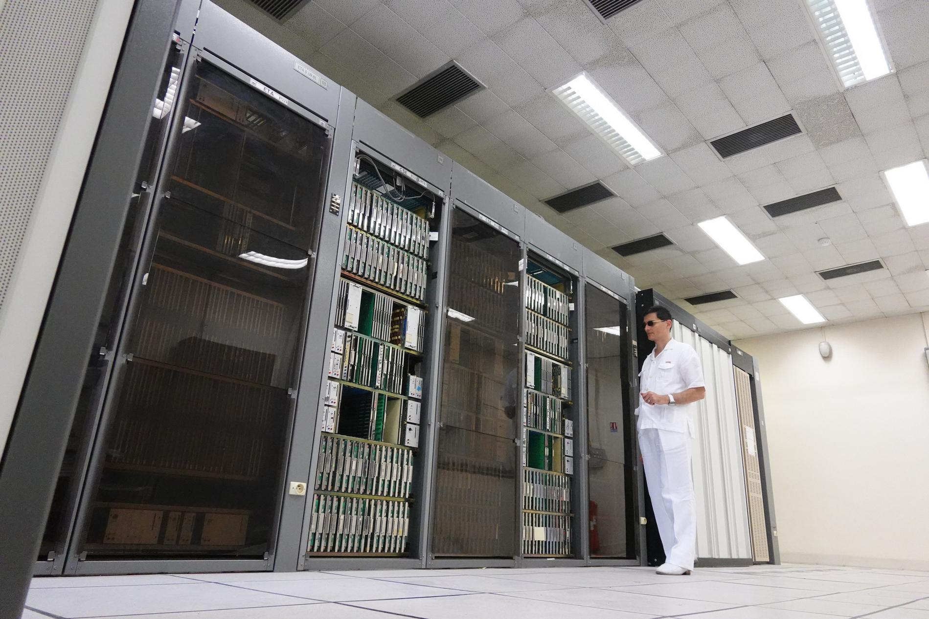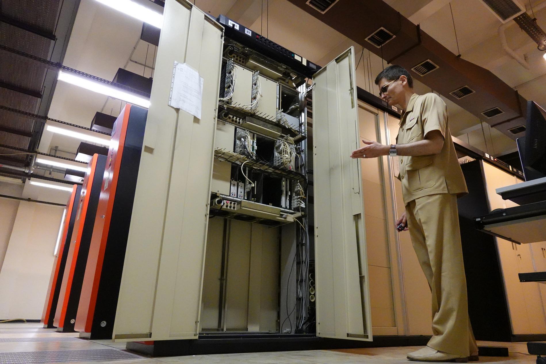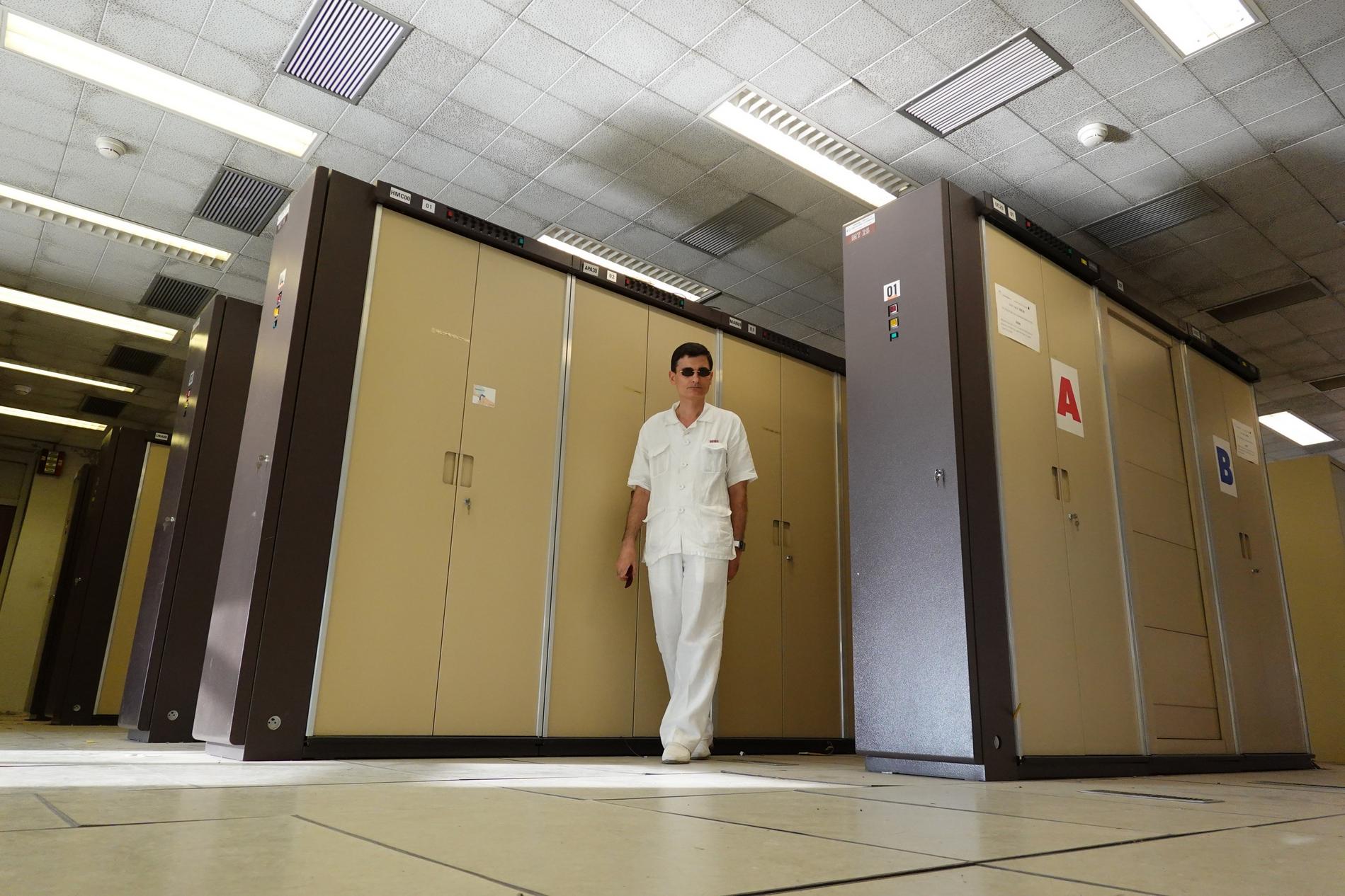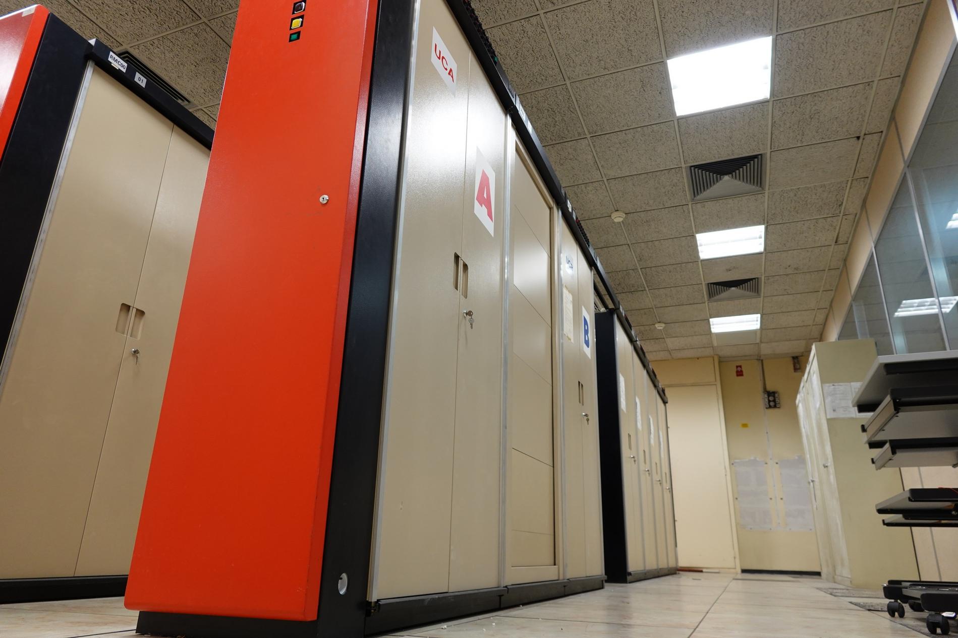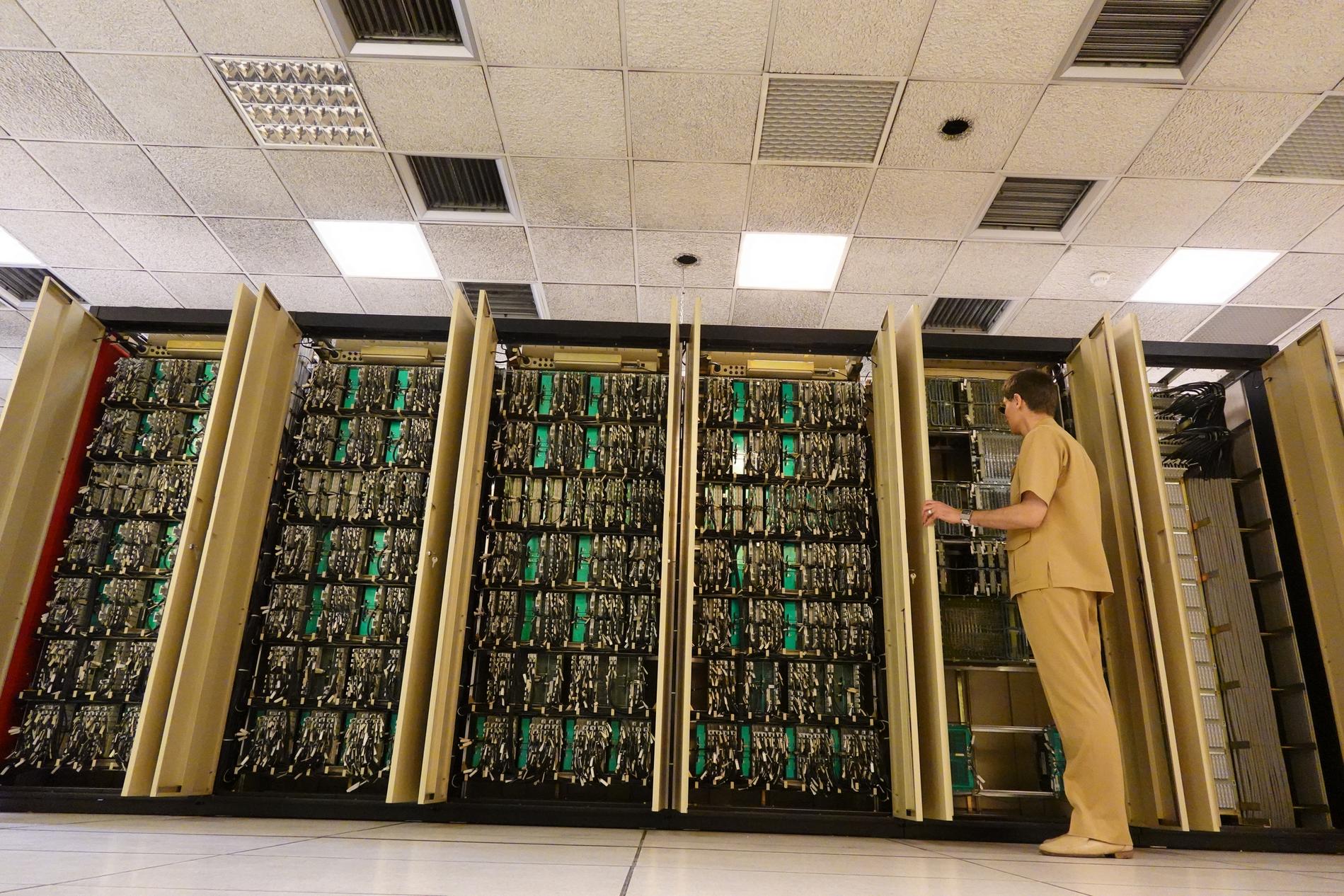 Ci-dessus : vue des tous premiers CSN (Centre Satellite Numérique) mis en service ; nous reconnaissons la présentation en baies ne comportant pas de portes. (en lieu et place, des panneaux en plexiglas qui sont absents sur l'image.)