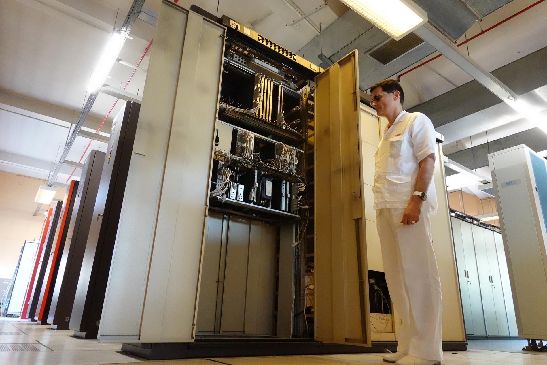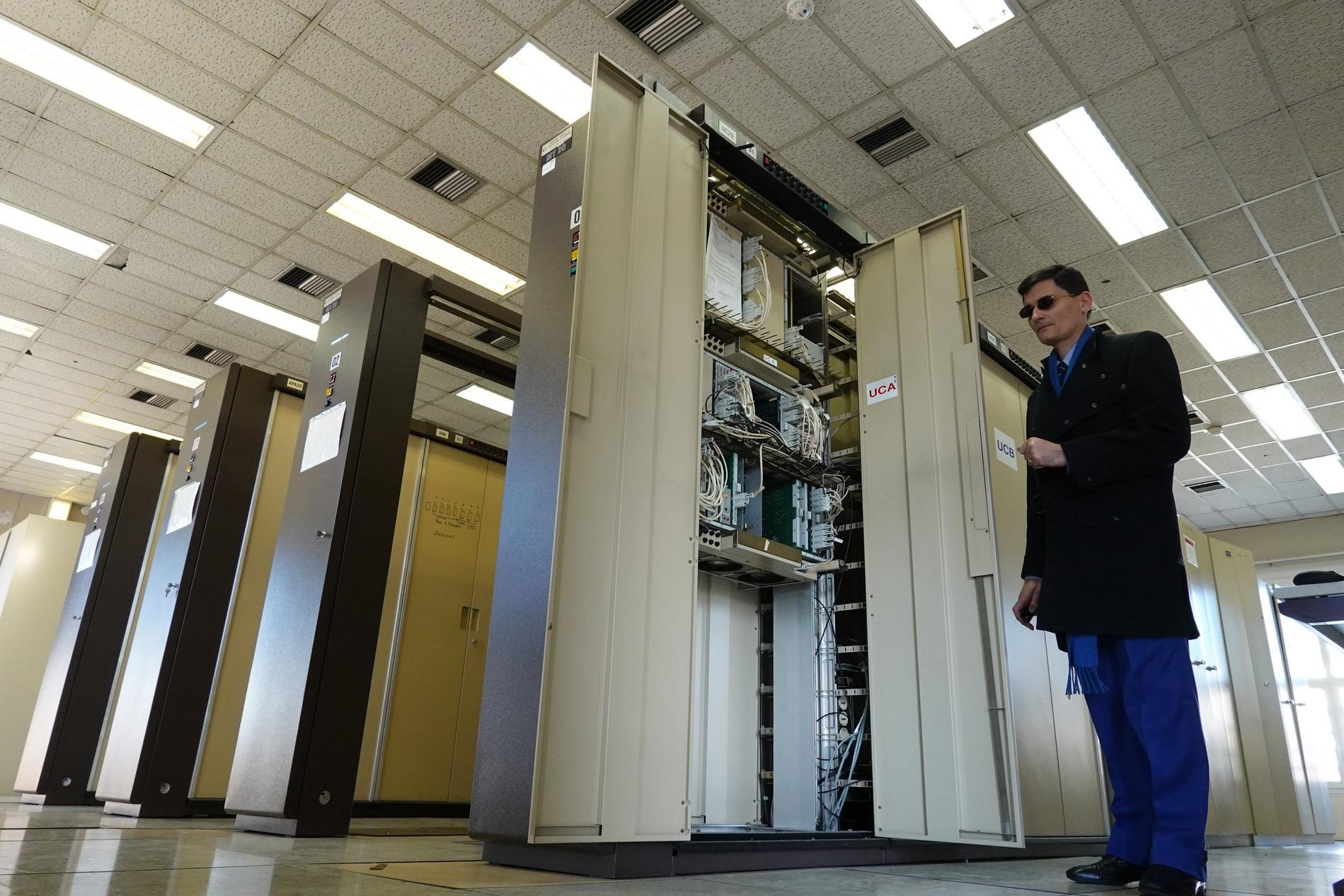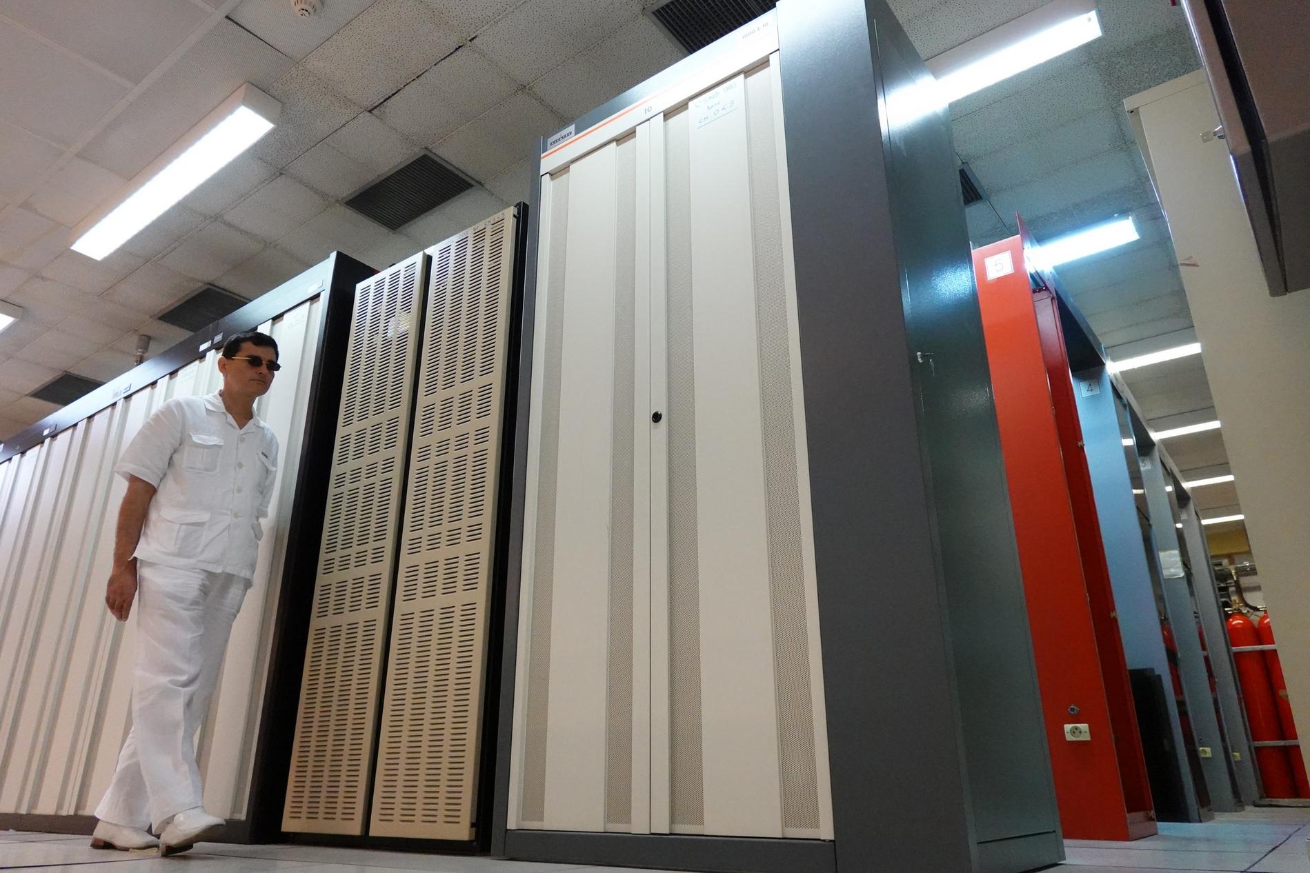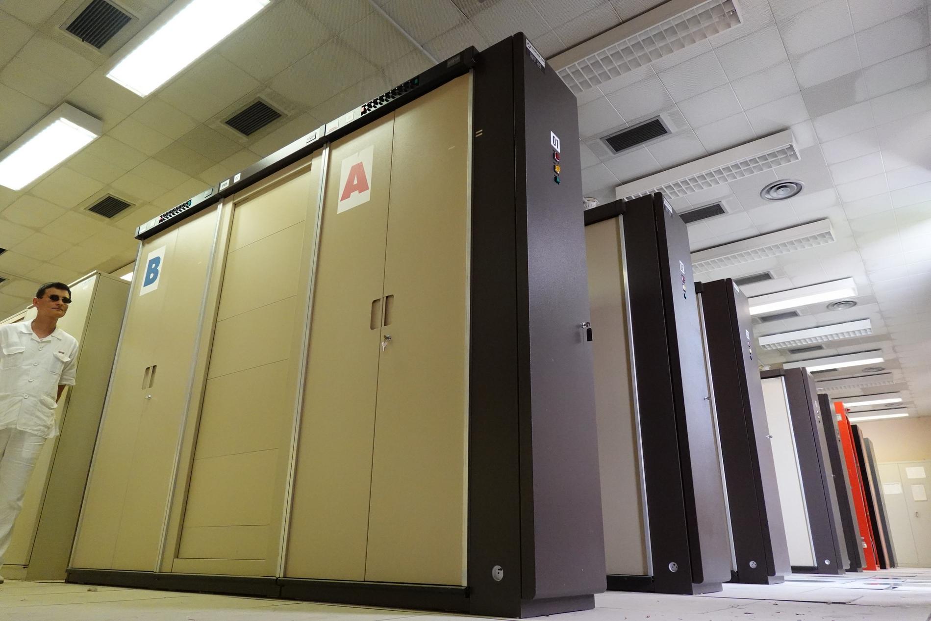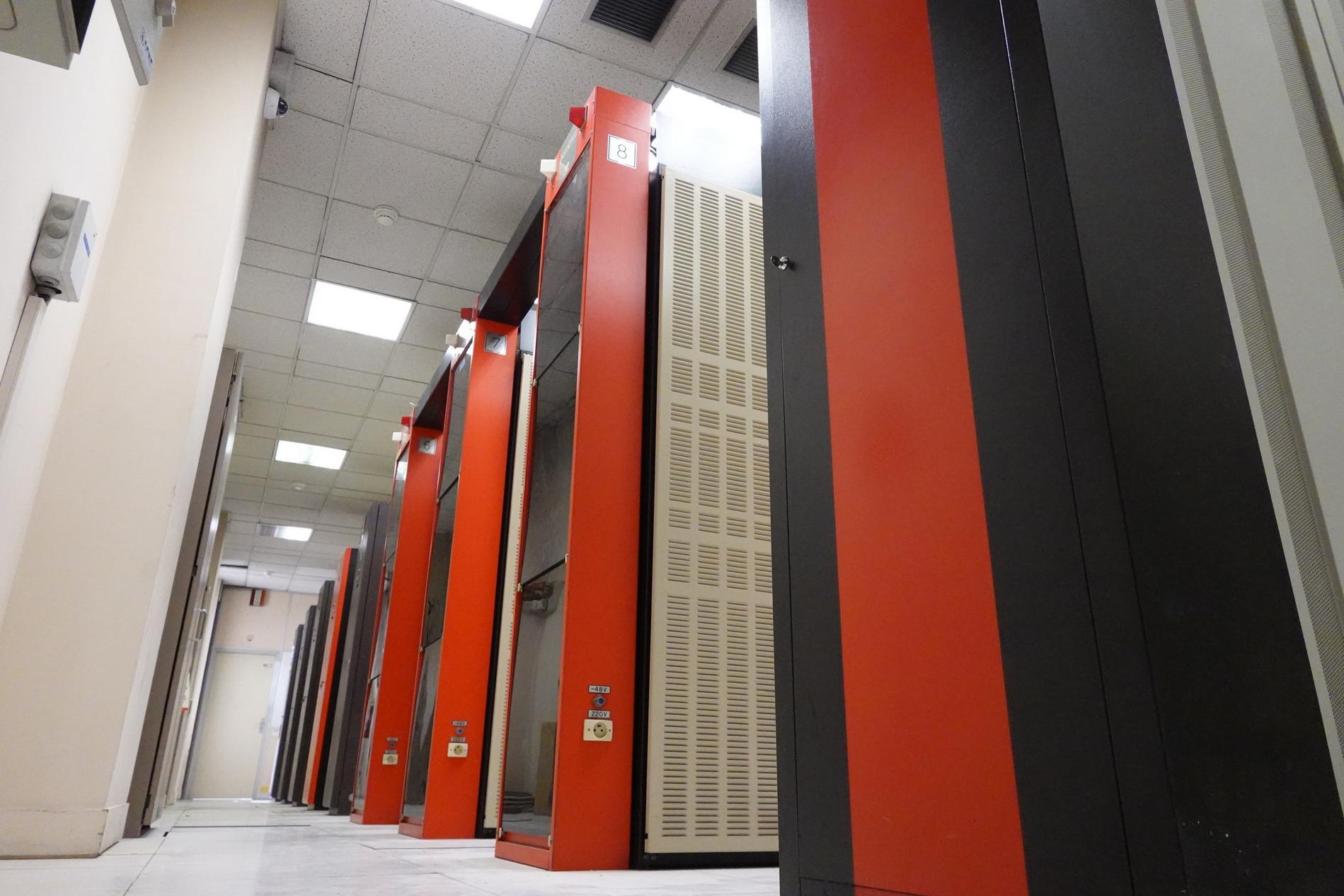 Ci-dessus : vue des tous premiers CSN (Centre Satellite Numérique) mis en service ; nous reconnaissons la présentation en baies ne comportant pas de portes. (en lieu et place, des panneaux en plexiglas qui sont absents sur l'image.)