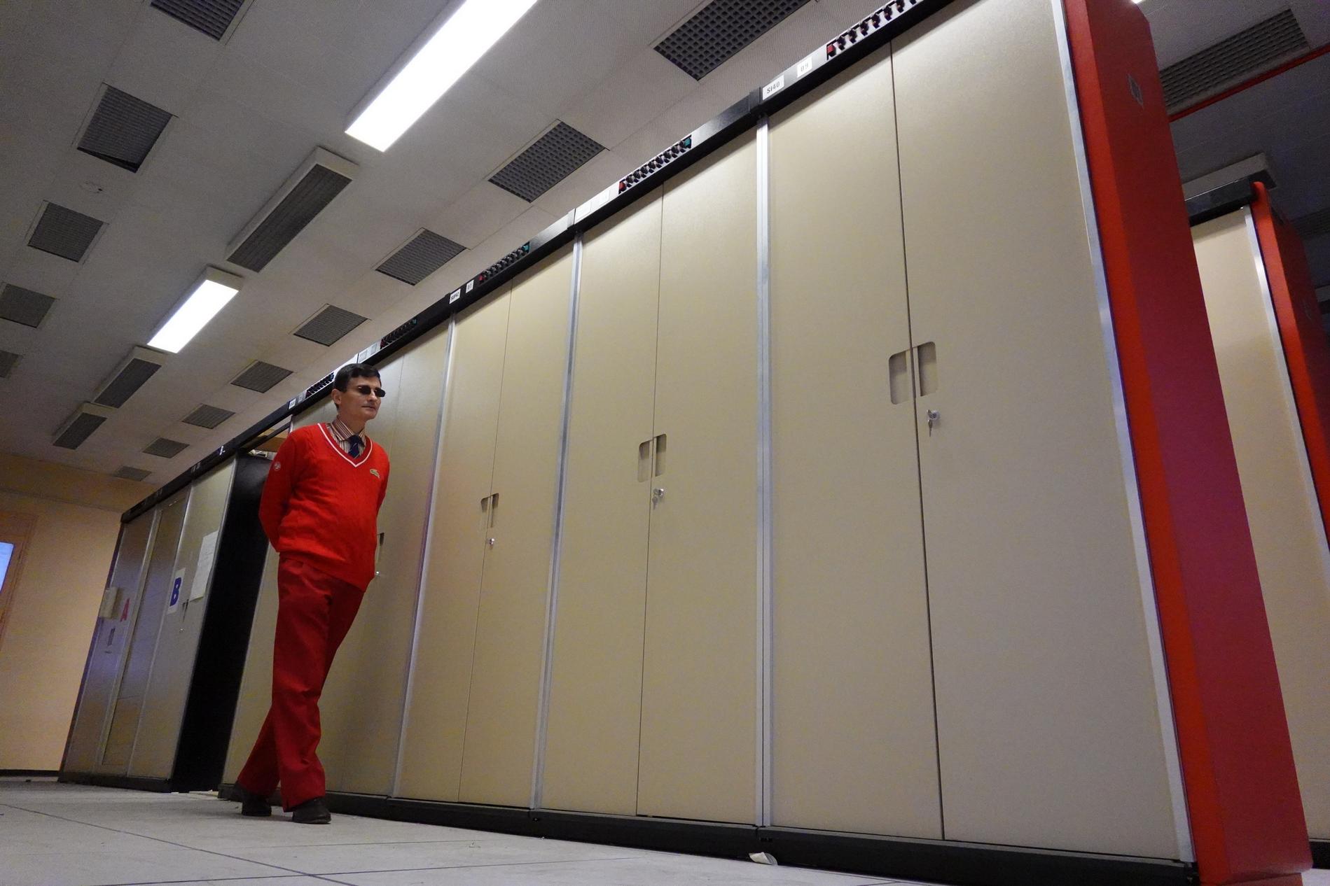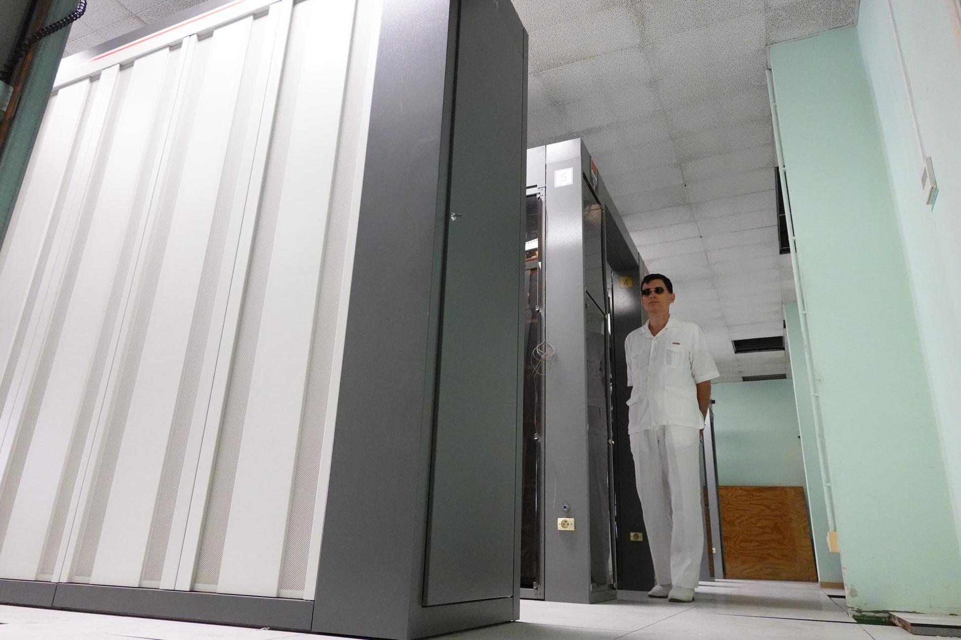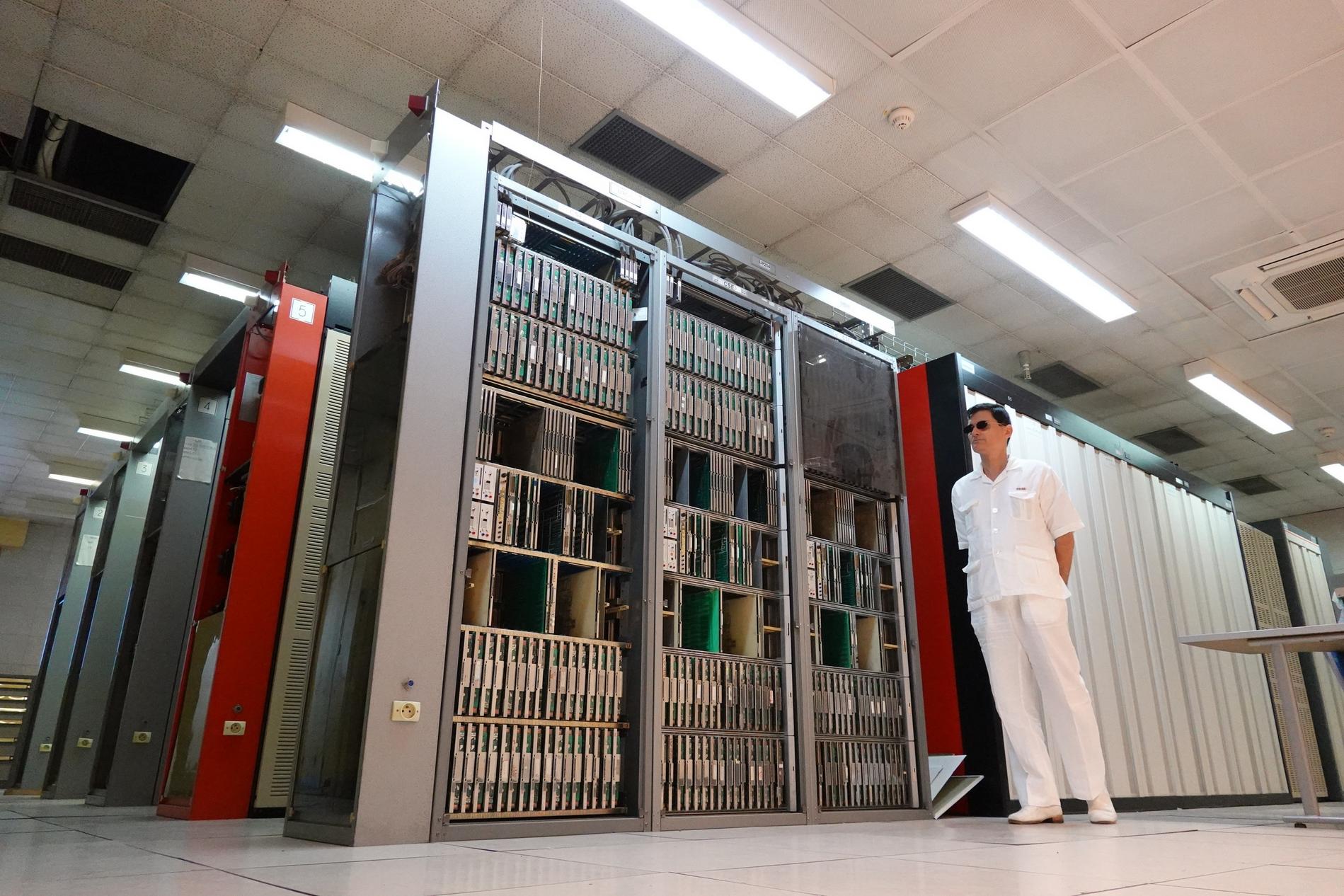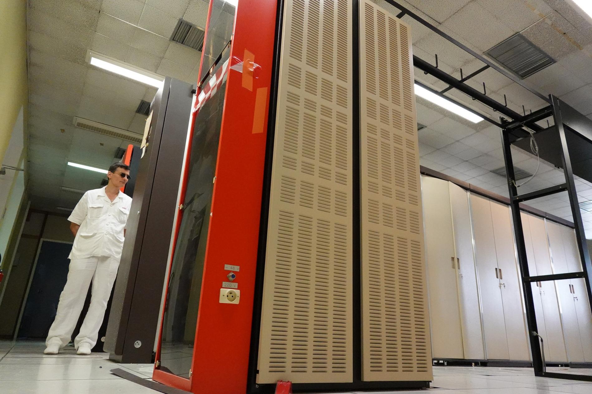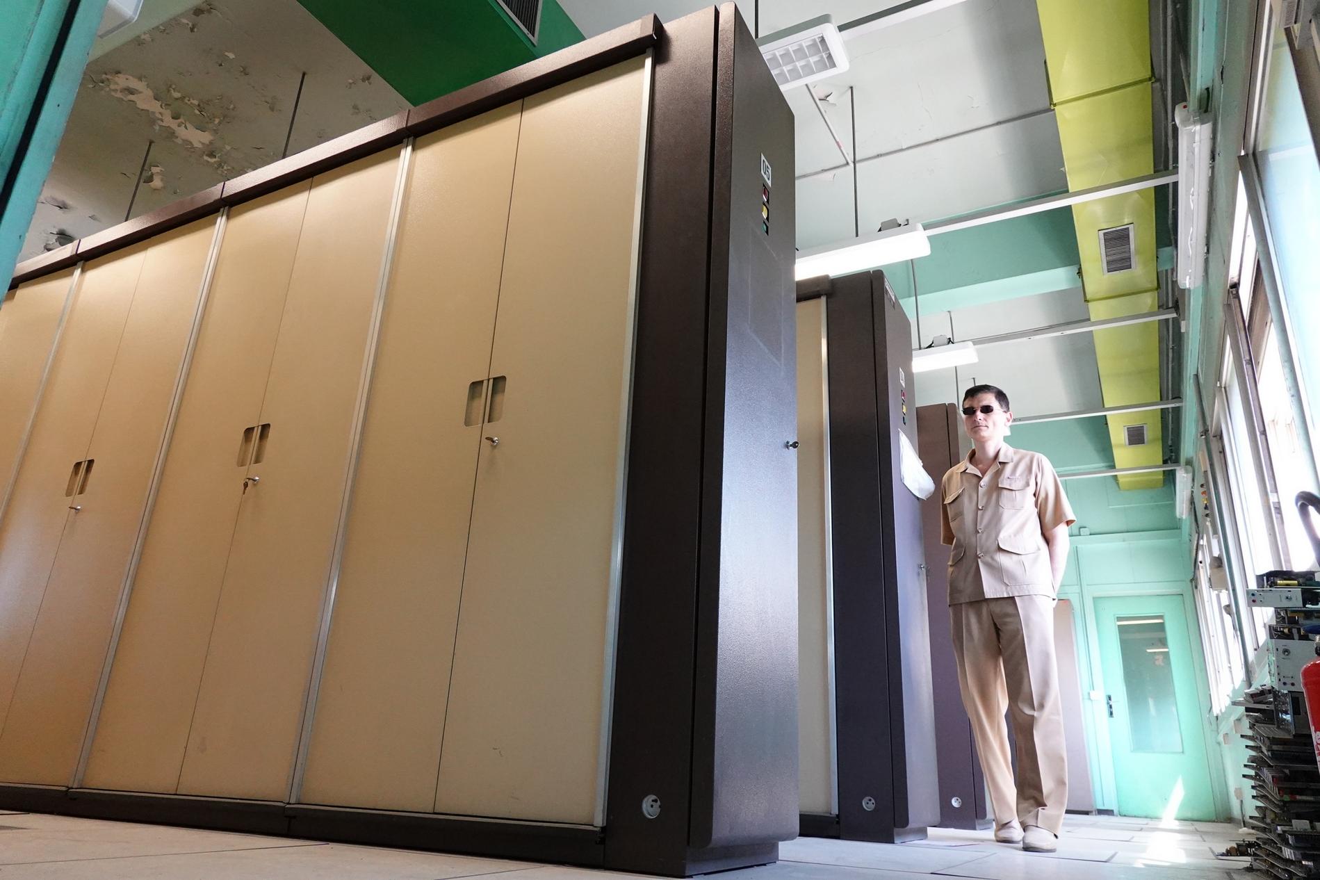 Ci-dessus : vue des tous premiers CSN (Centre Satellite Numérique) mis en service ; nous reconnaissons la présentation en baies ne comportant pas de portes. (en lieu et place, des panneaux en plexiglas qui sont absents sur l'image.)