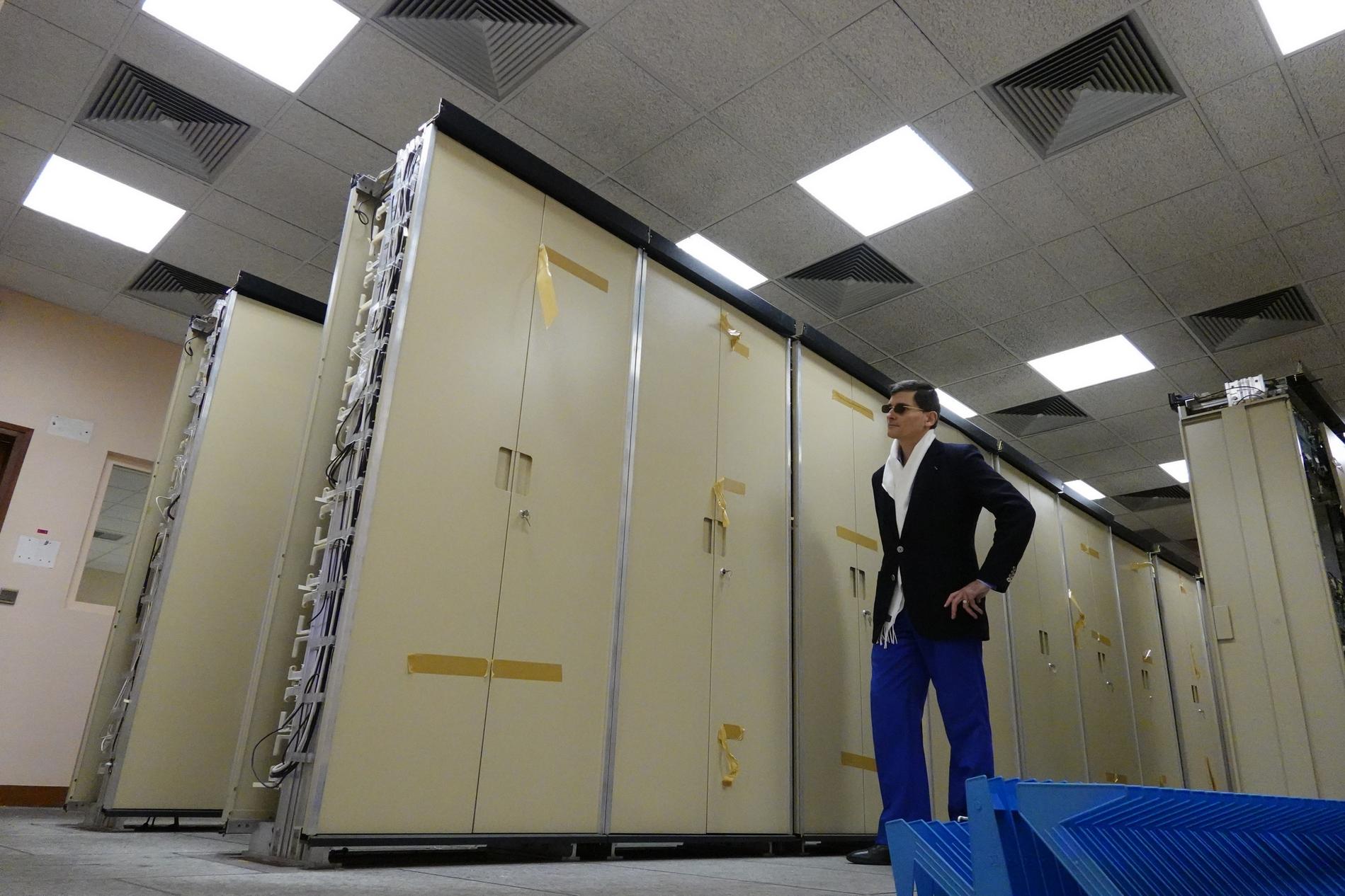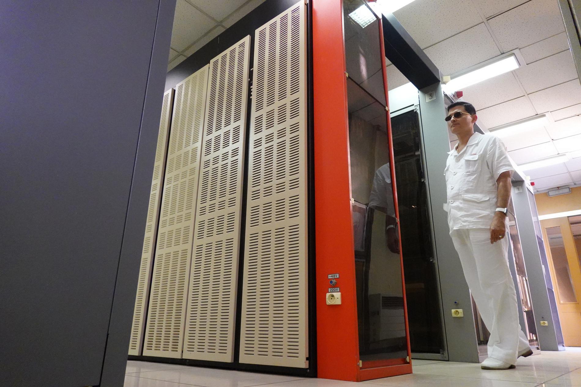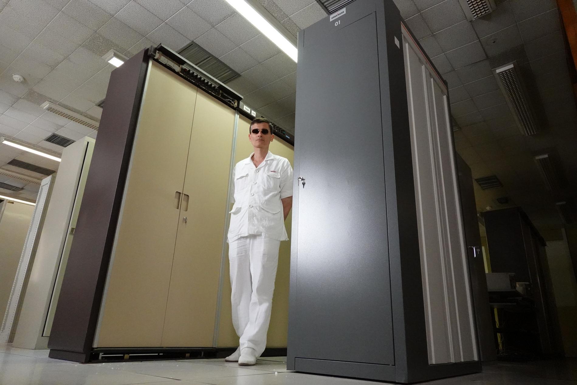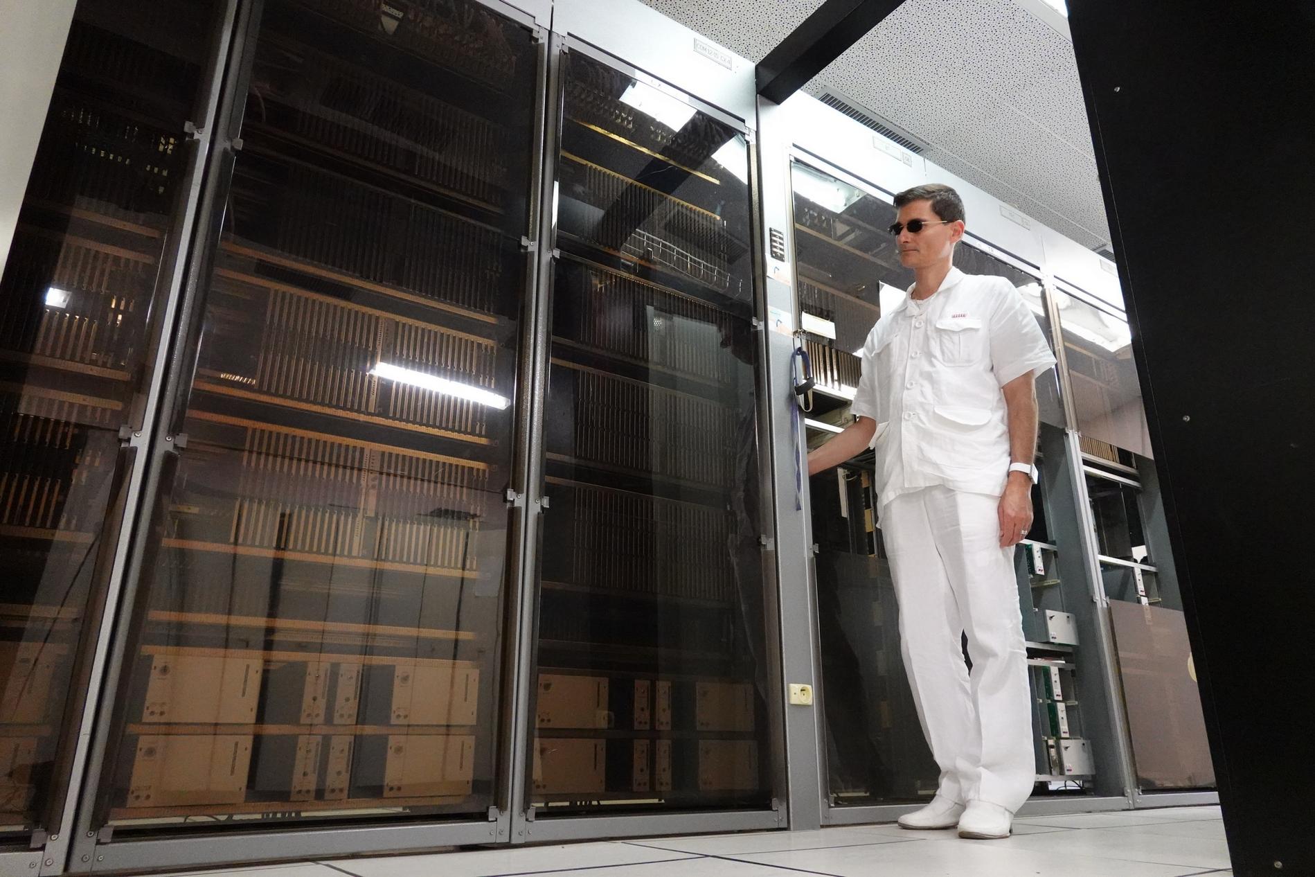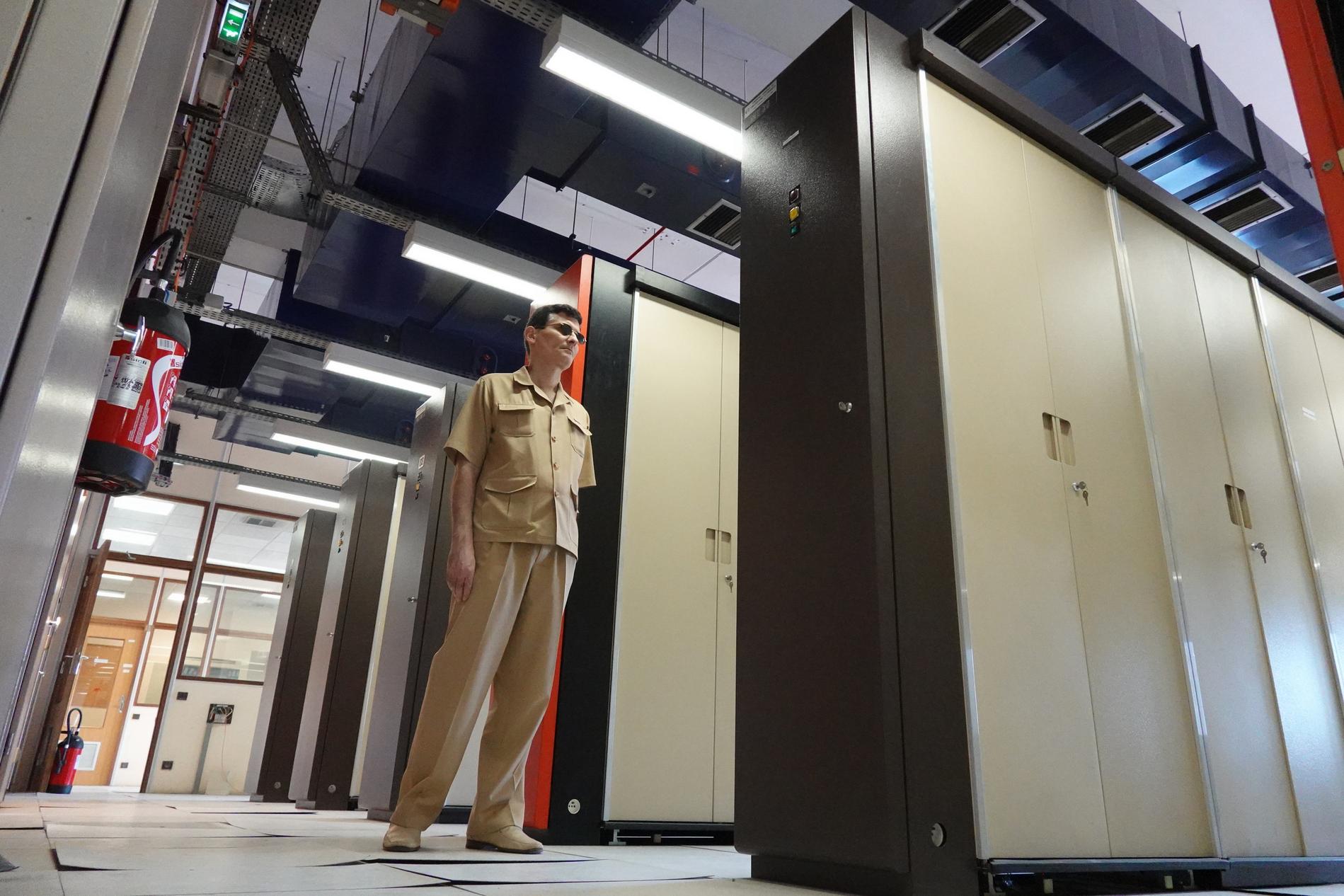 Ci-dessus : vue des tous premiers CSN (Centre Satellite Numérique) mis en service ; nous reconnaissons la présentation en baies ne comportant pas de portes. (en lieu et place, des panneaux en plexiglas qui sont absents sur l'image.)