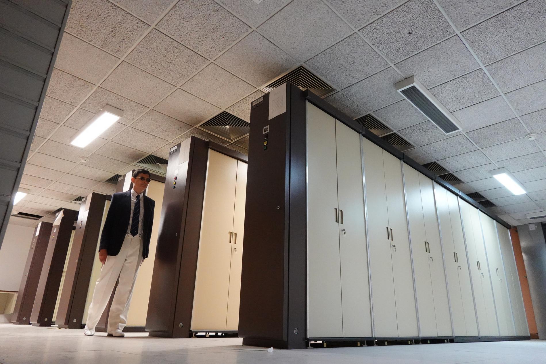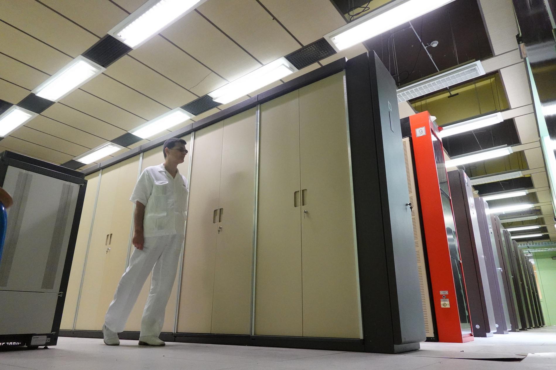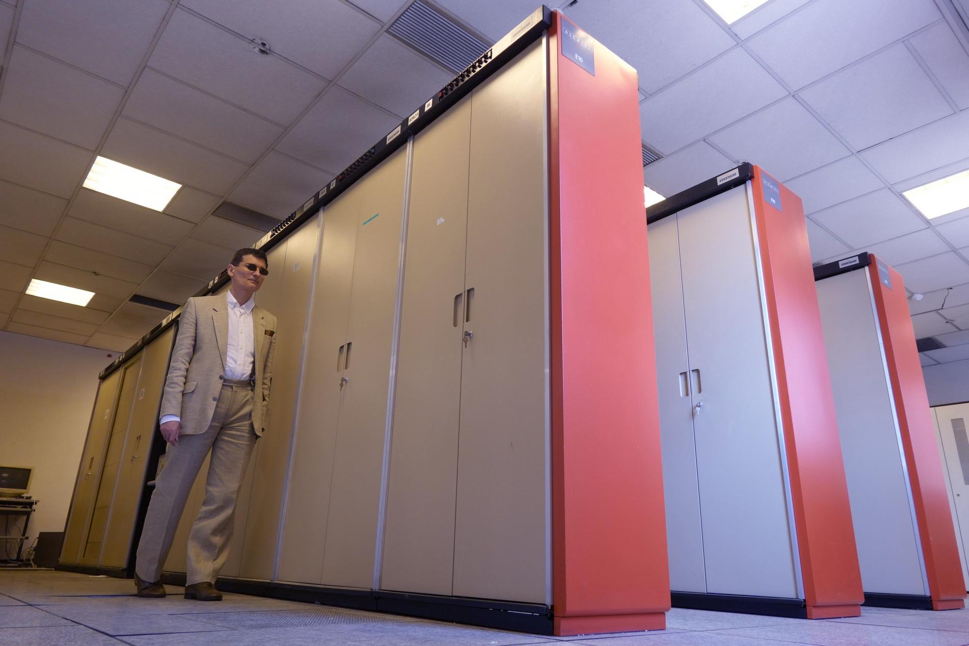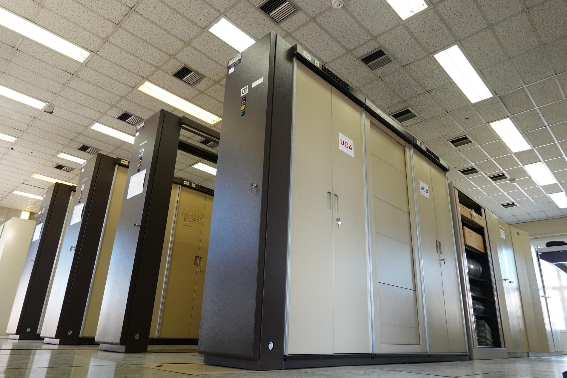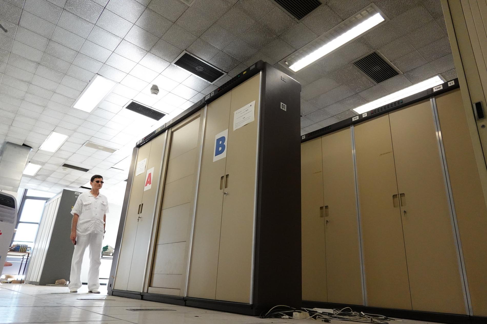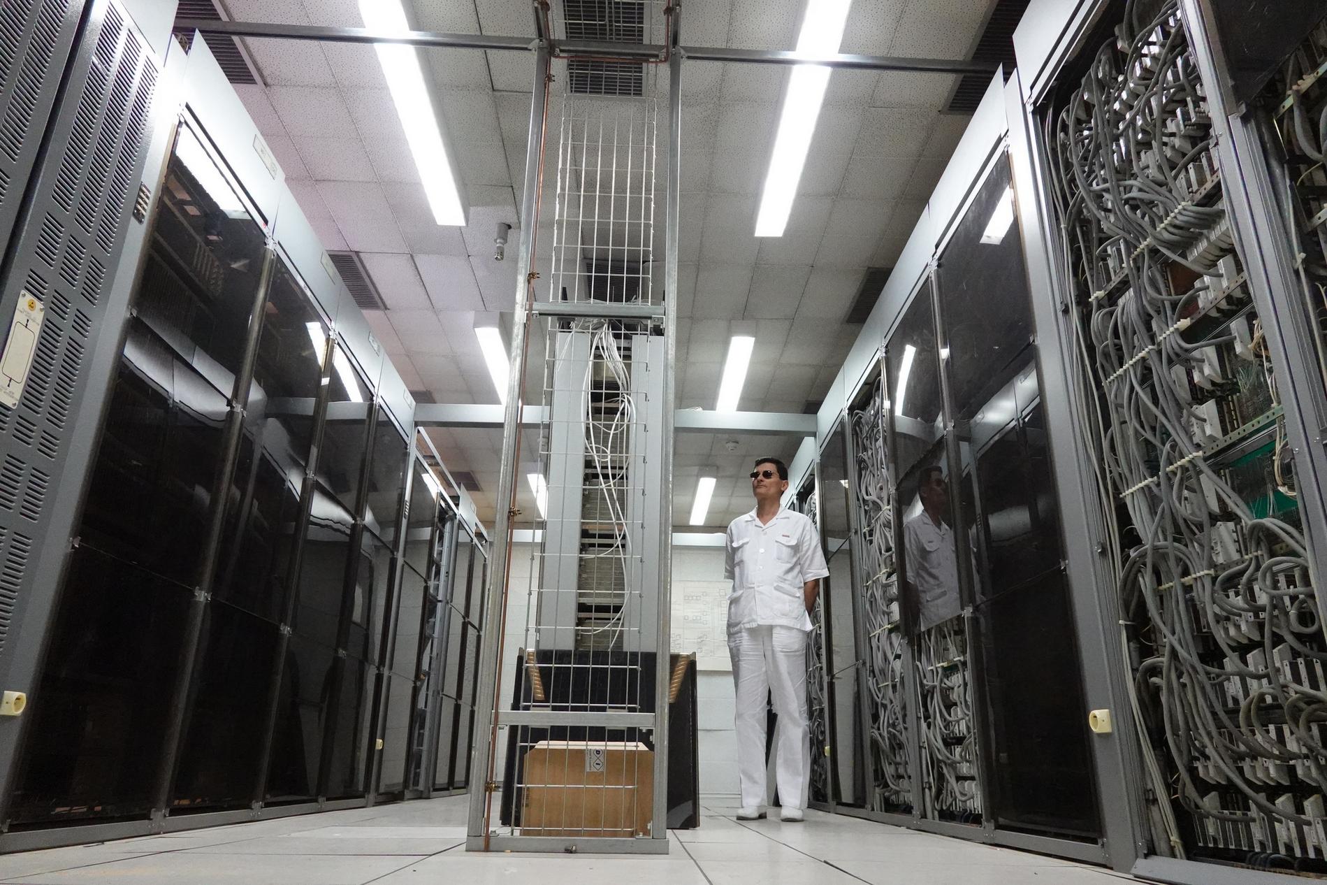 Ci-dessus : vue des tous premiers CSN (Centre Satellite Numérique) mis en service ; nous reconnaissons la présentation en baies ne comportant pas de portes. (en lieu et place, des panneaux en plexiglas qui sont absents sur l'image.)