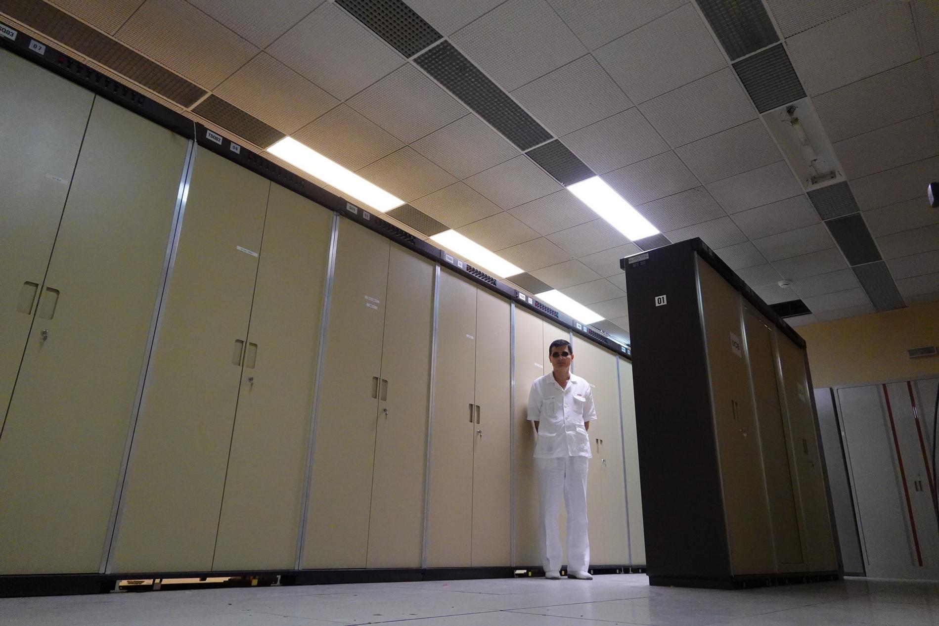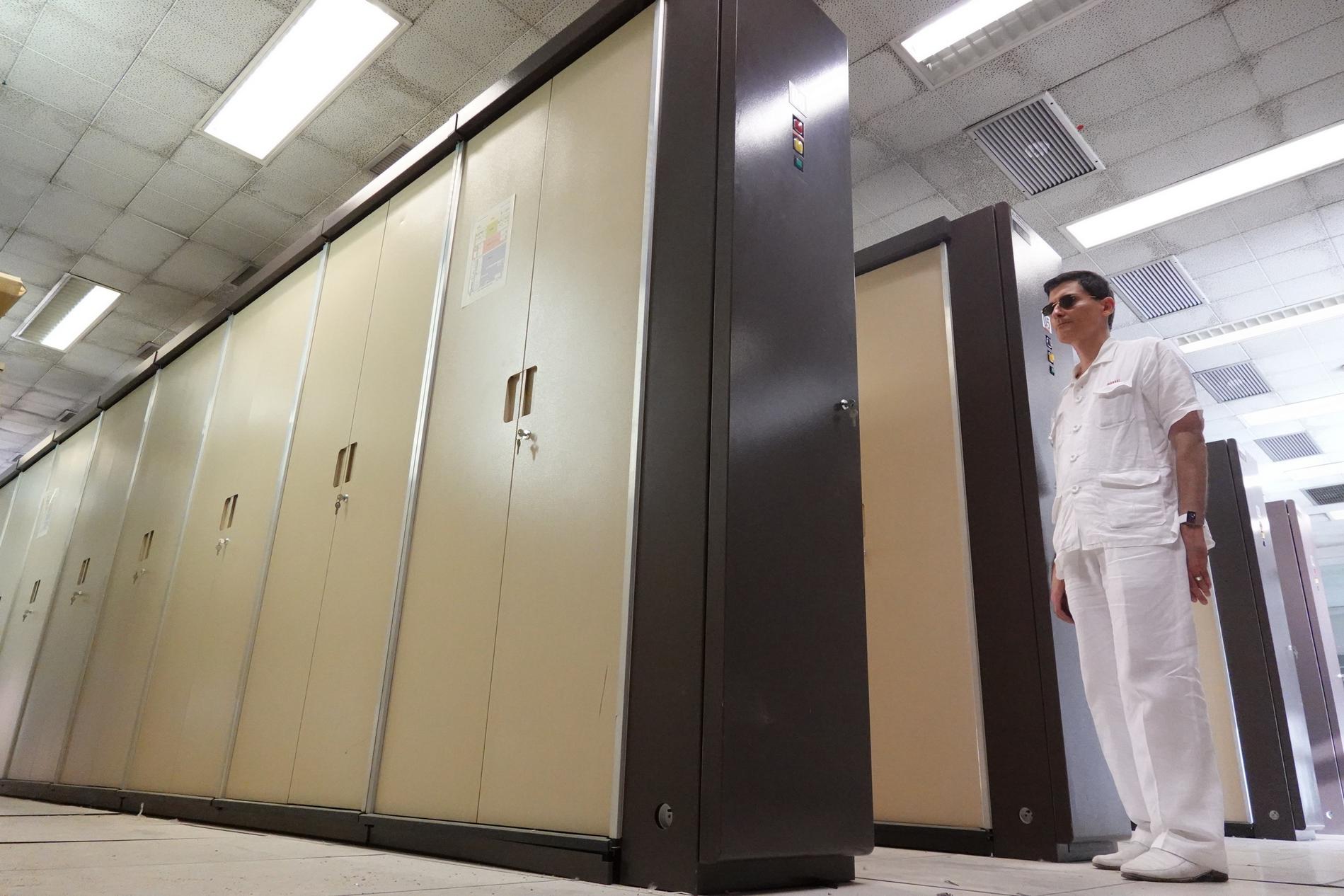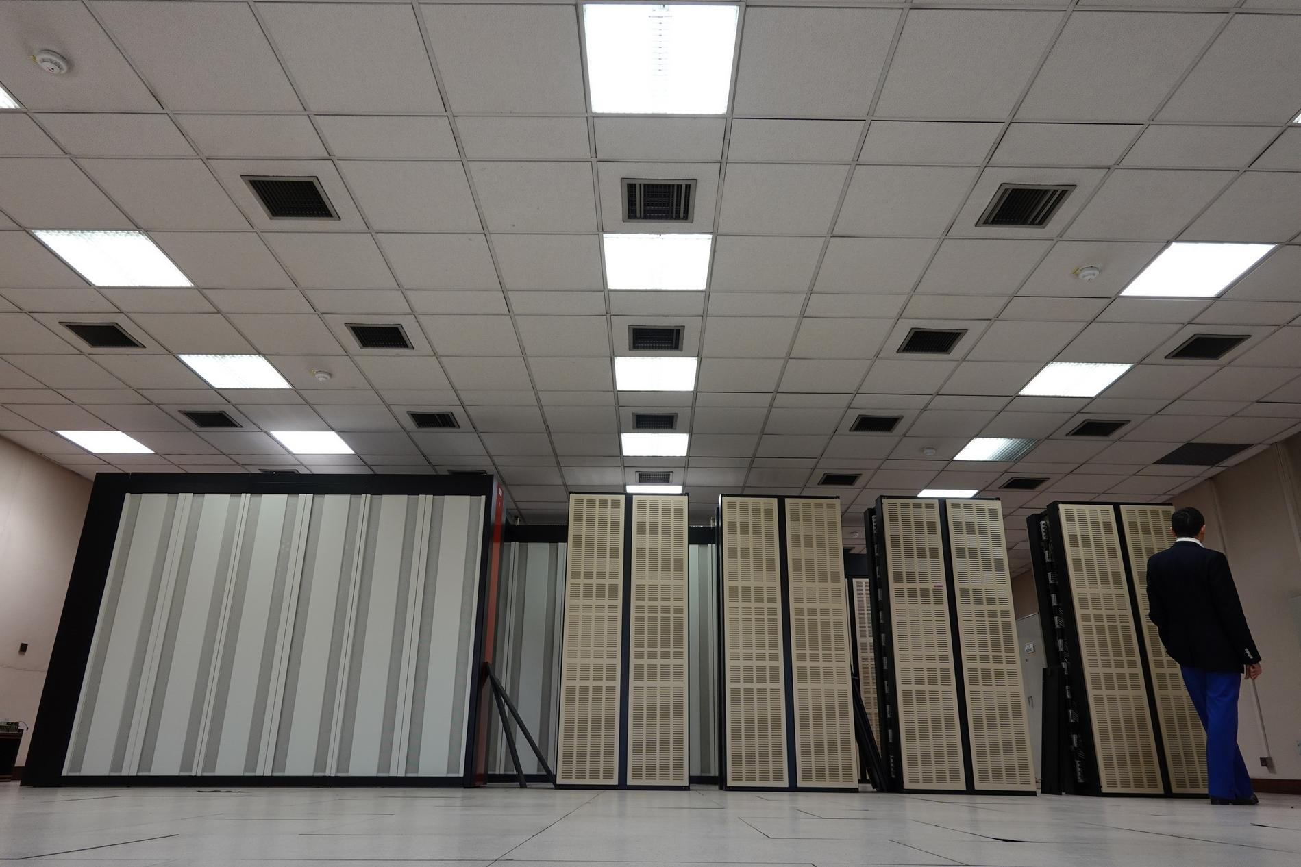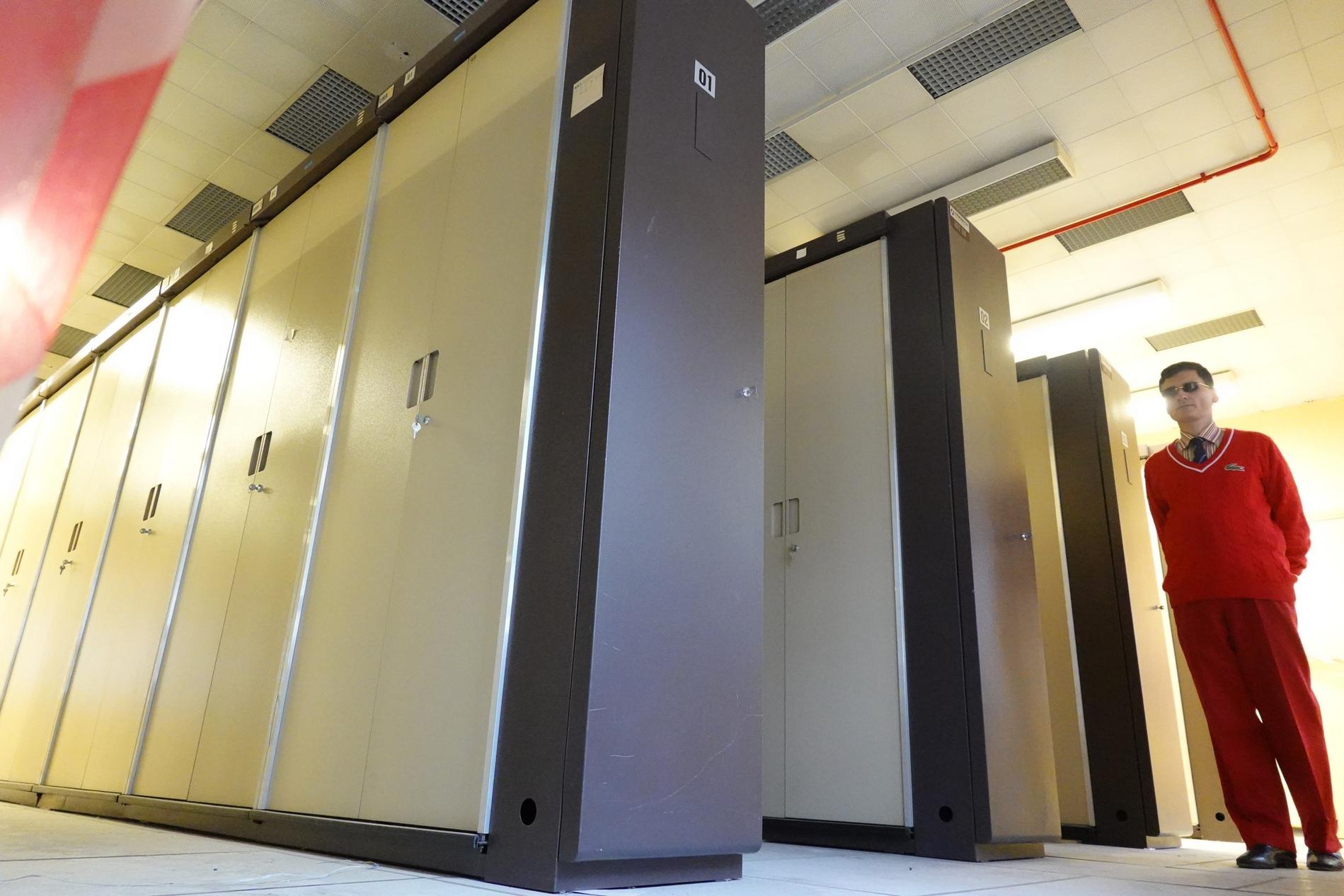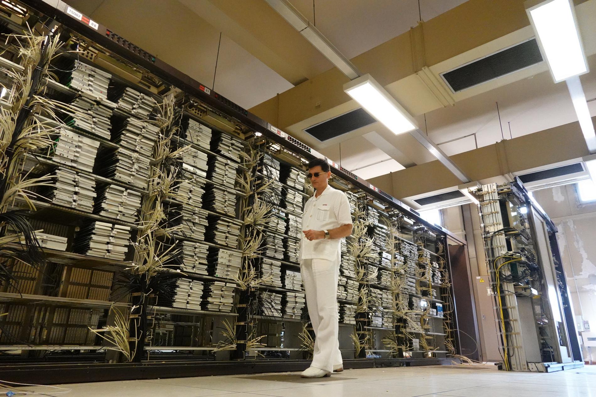 Ci-dessus : vue des tous premiers CSN (Centre Satellite Numérique) mis en service ; nous reconnaissons la présentation en baies ne comportant pas de portes. (en lieu et place, des panneaux en plexiglas qui sont absents sur l'image.)