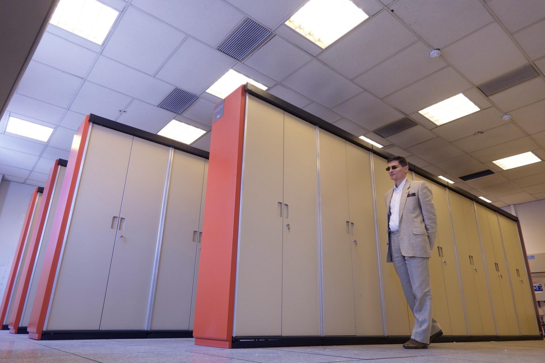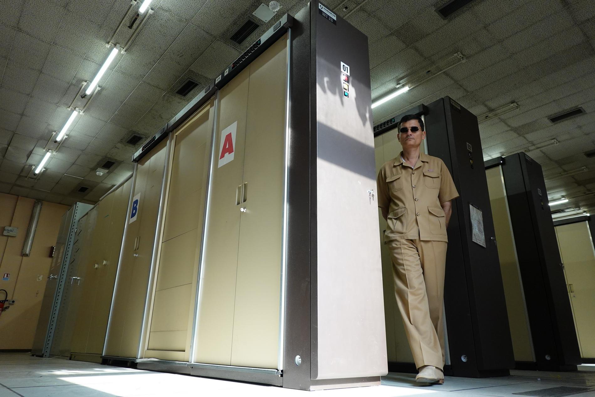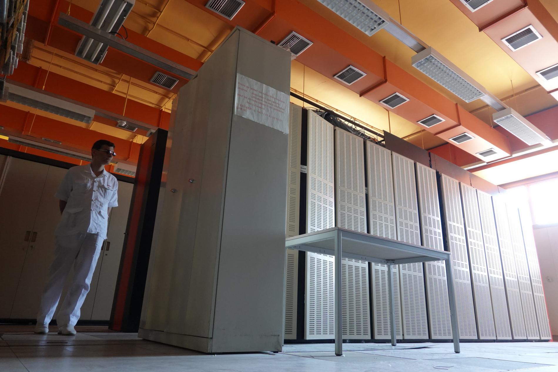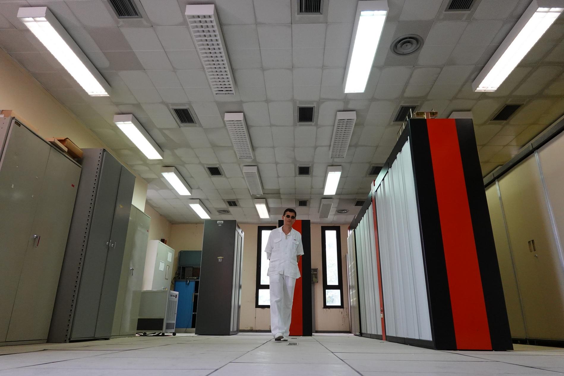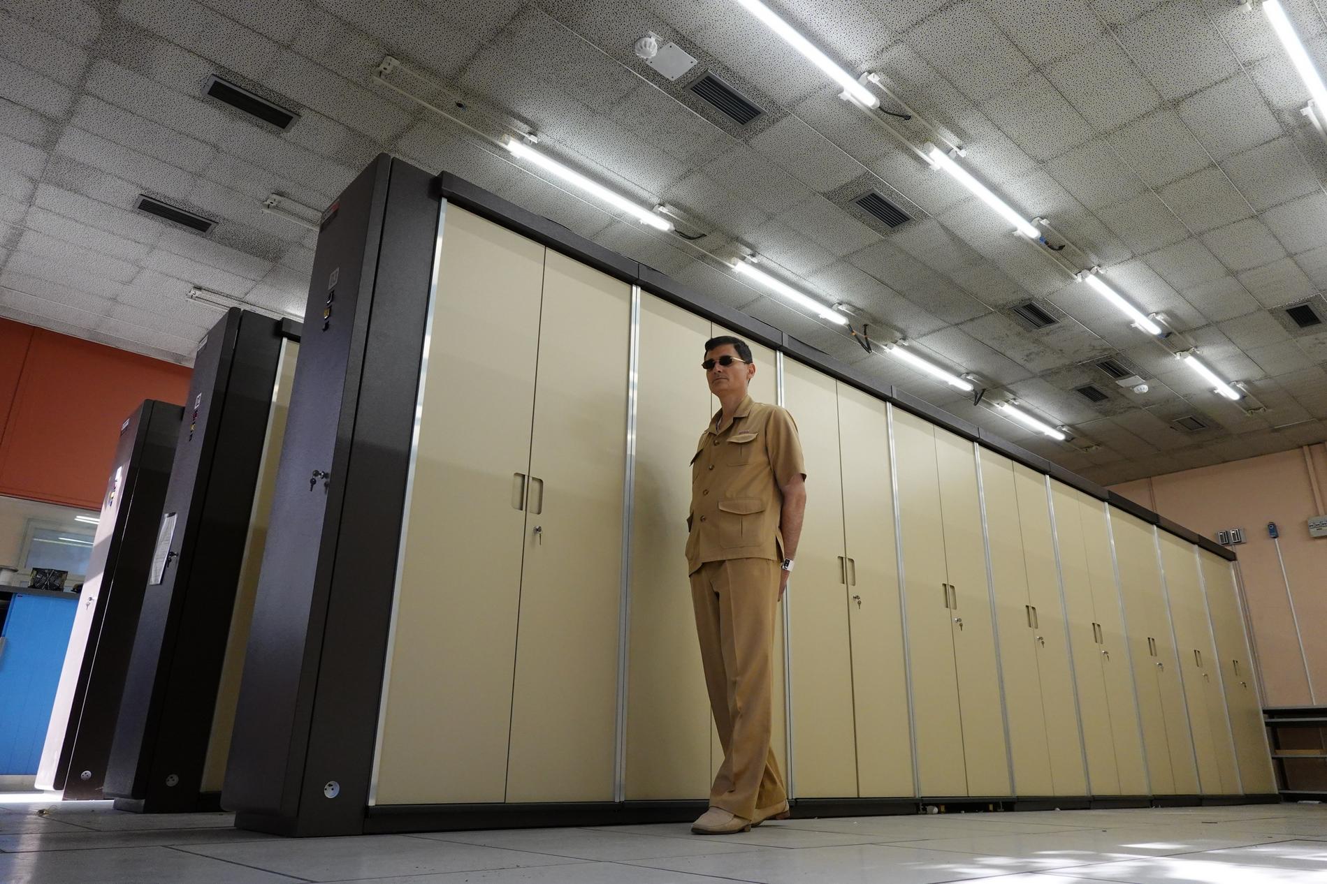 Ci-dessus : vue des tous premiers CSN (Centre Satellite Numérique) mis en service ; nous reconnaissons la présentation en baies ne comportant pas de portes. (en lieu et place, des panneaux en plexiglas qui sont absents sur l'image.)